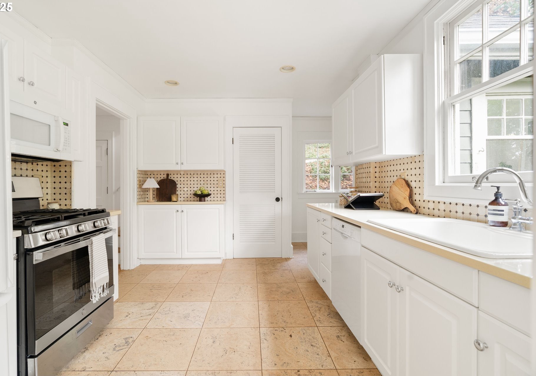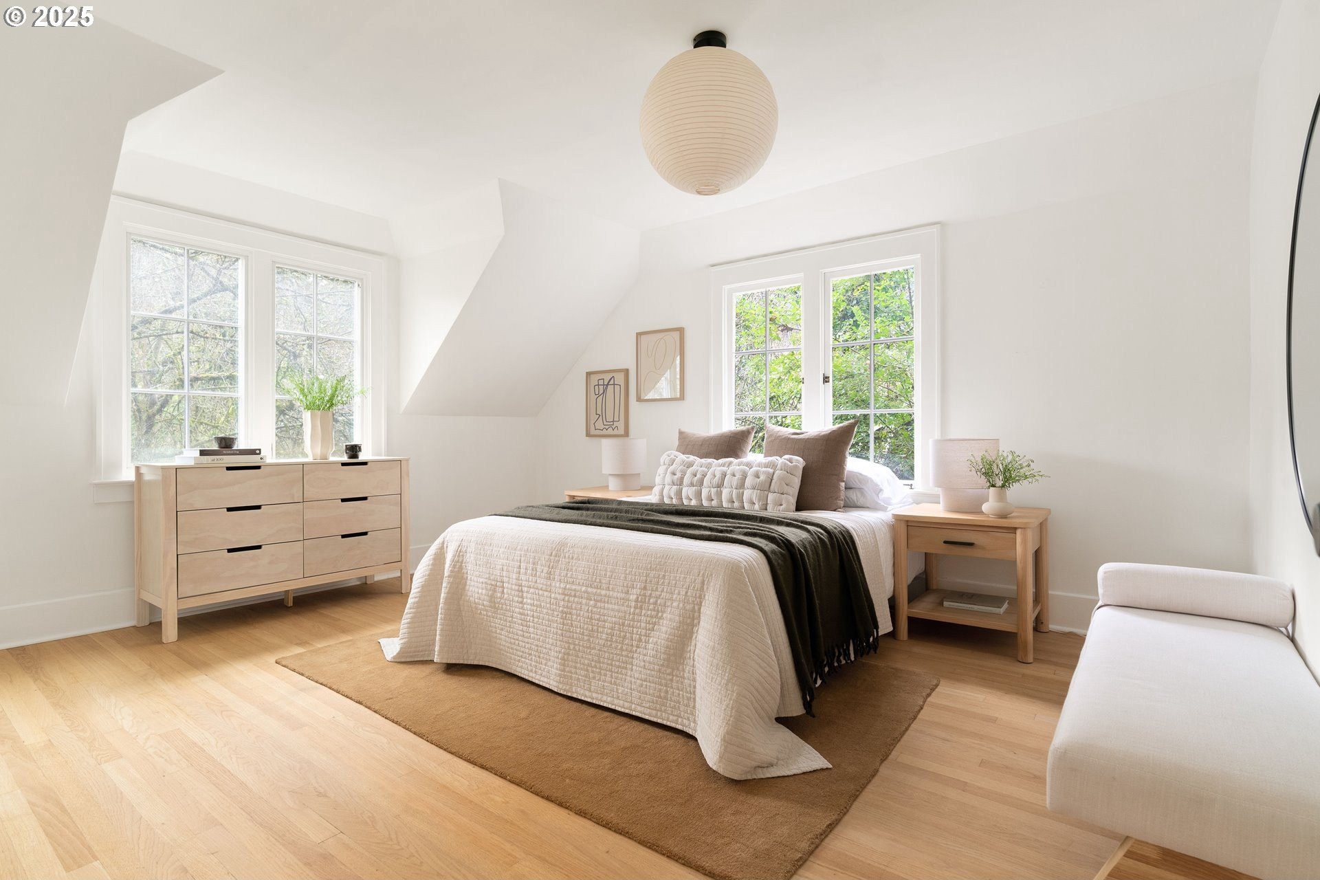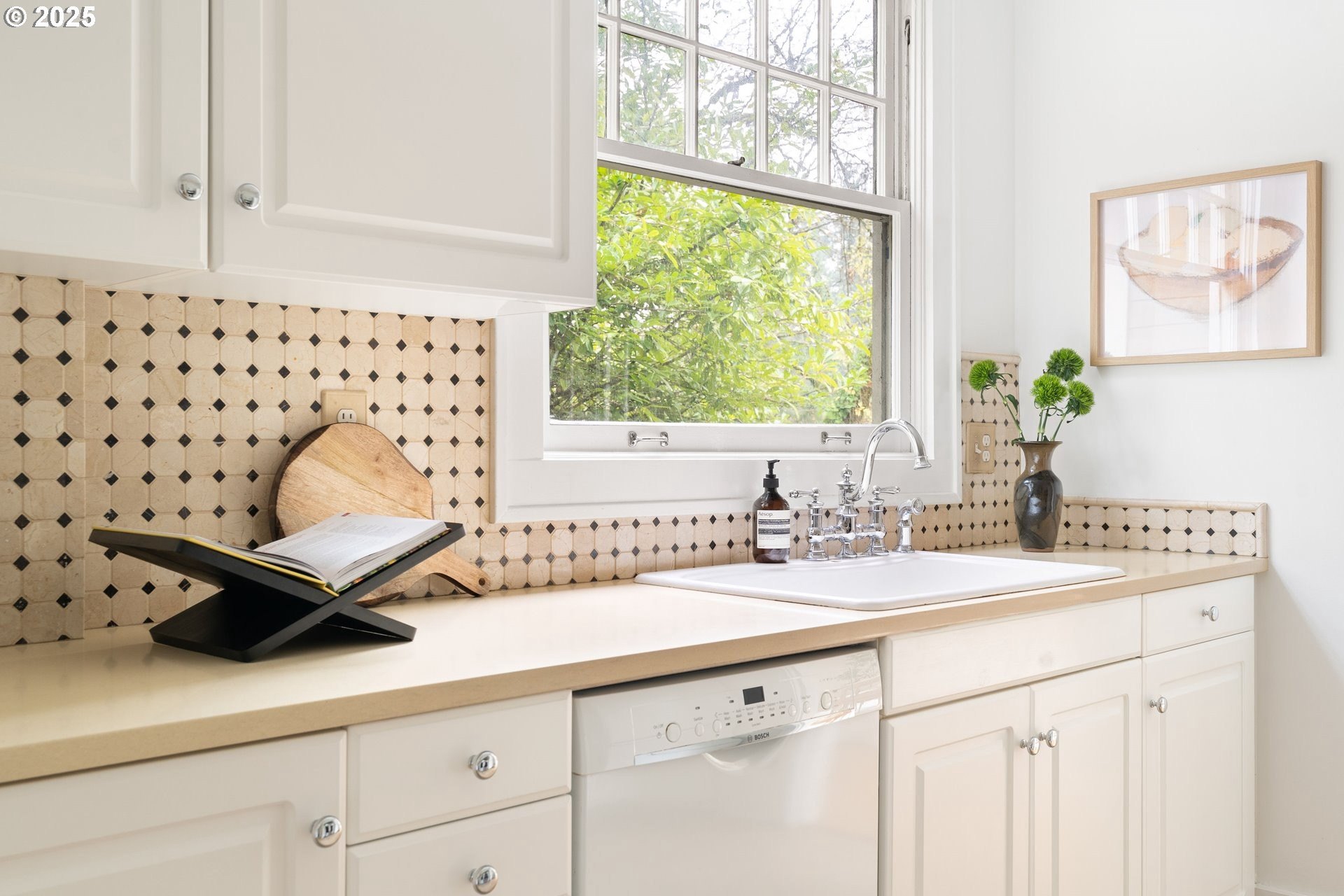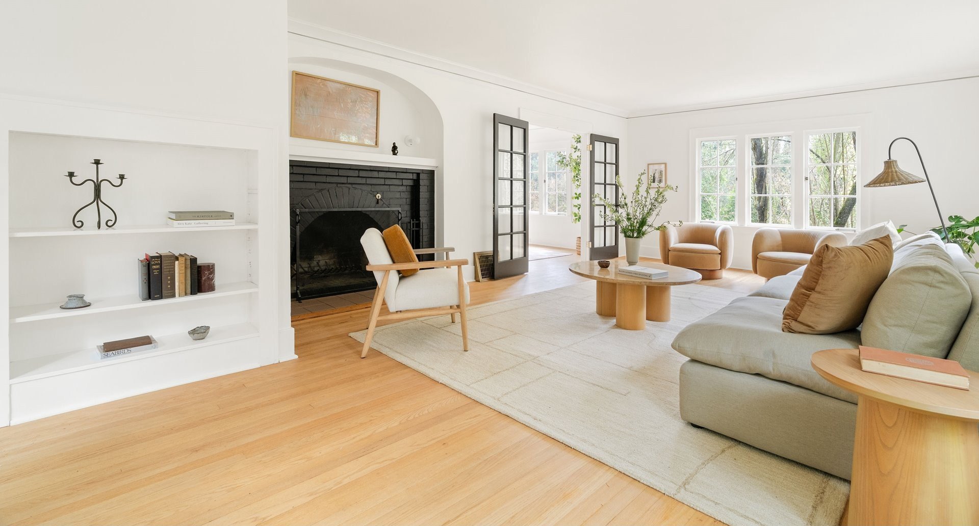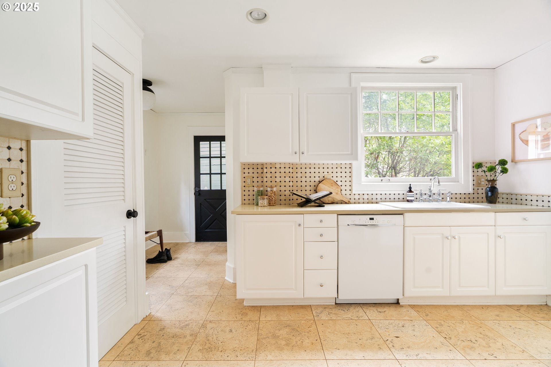 Perched above Burnside in Kings Heights, this south-facing home pairs vintage charm with thoughtful modern updates for a collected and stylish feel. Inside, gorgeous oak floors, built-ins, and French doors bring warmth to the light filled main level, which offers a spacious living room with fireplace, dining room, inviting deck, and bright kitchen. Upstairs, three serene bedrooms and a full bath, recently highlighted by Domino Magazine online, create a calm and cohesive retreat. The lower level offers a private suite that includes its own bedroom, full bath, den with surround sound speakers, and direct access to the backyard, offering flexibility for guests, long term stays, creative work, or additional living space. Set among the trees with quick access to top schools, trails, parks, cafes, boutiques, and some of Portland's favorite westside spots, this special and chic home offers a unique blend of elevated hillside living and immediate city convenience.