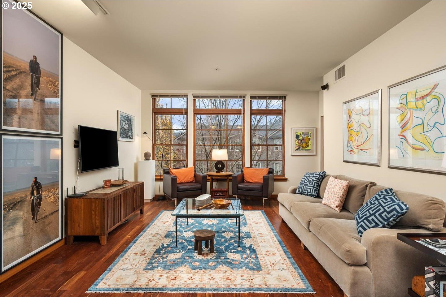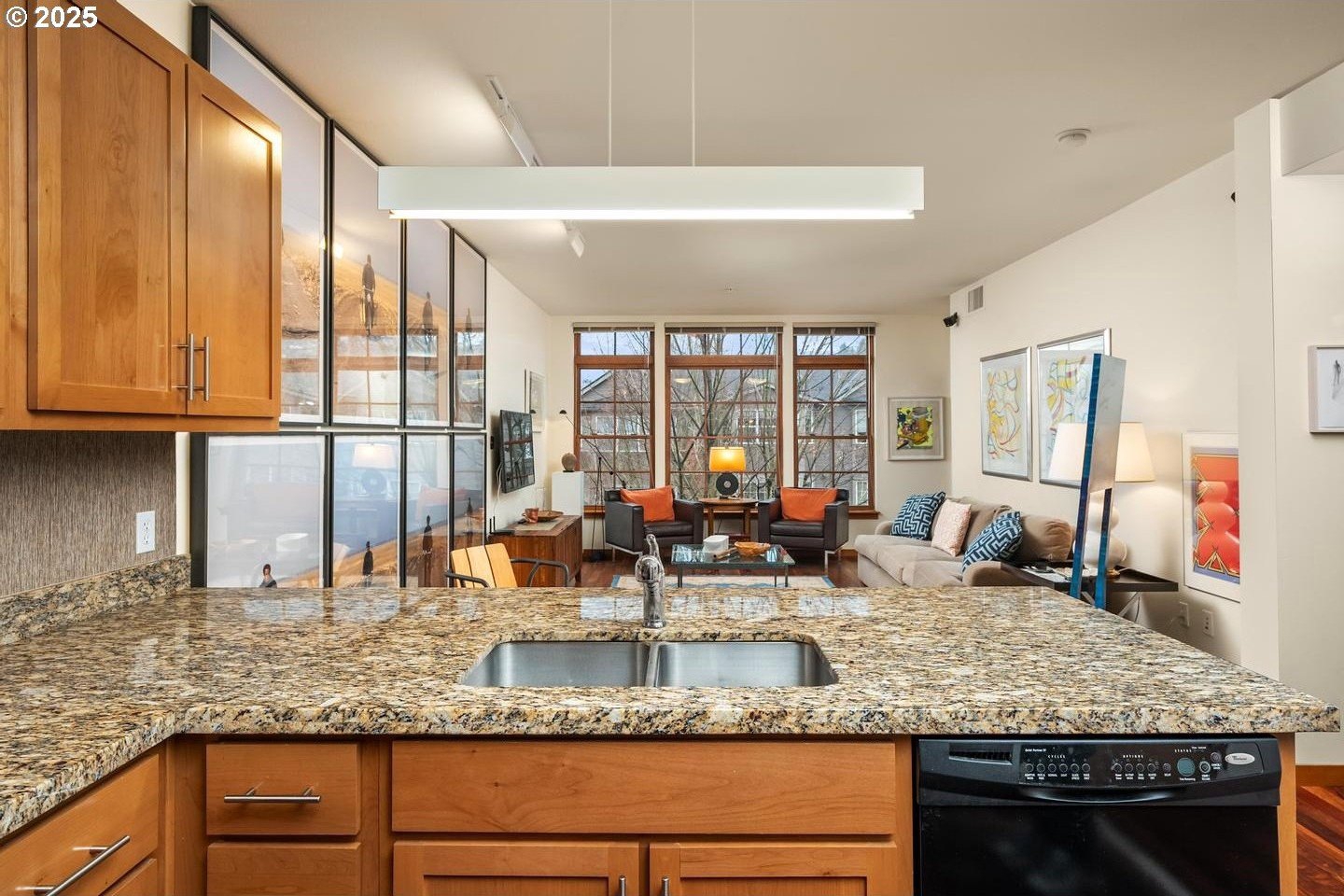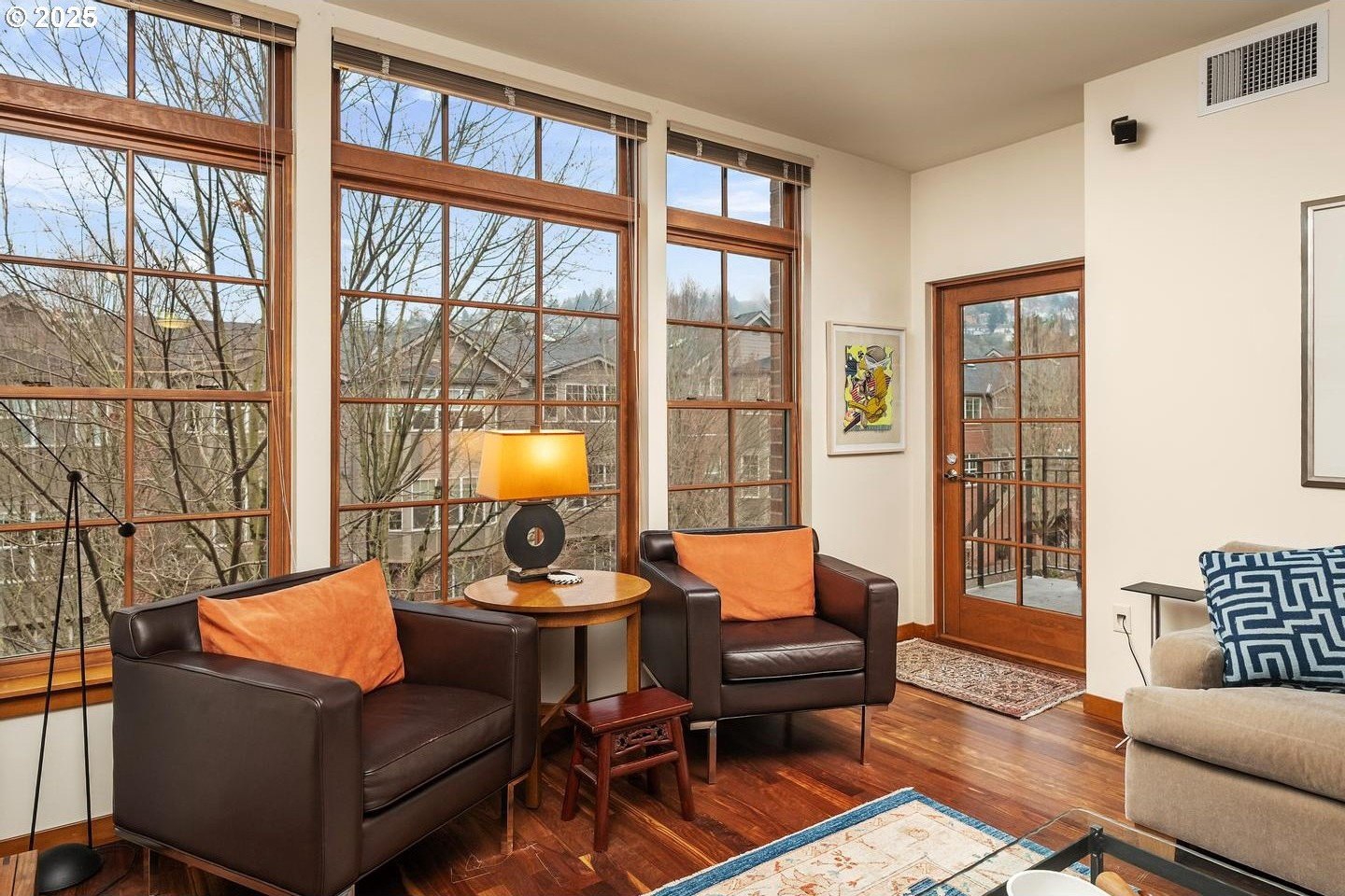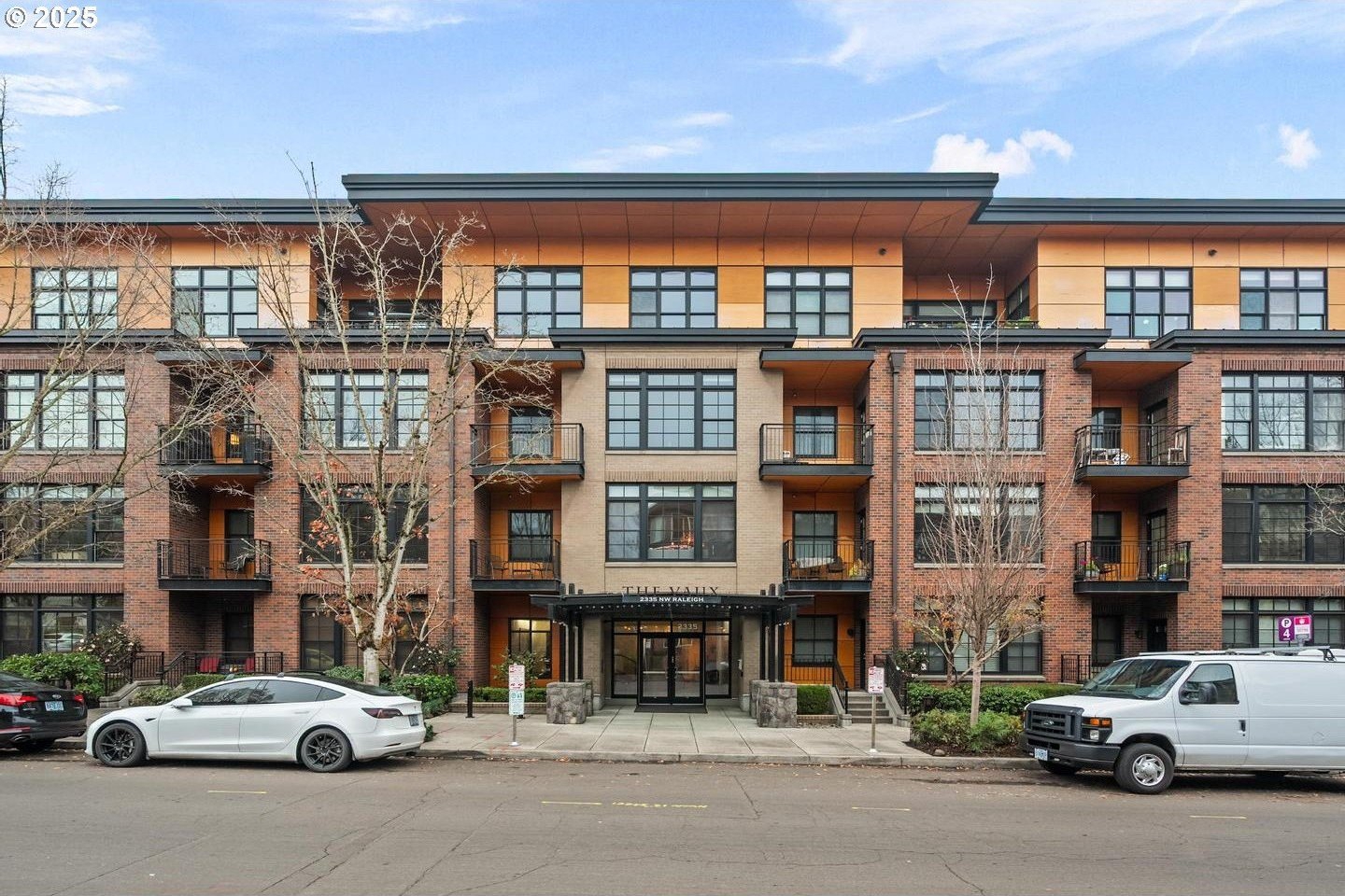 Impeccably maintained 1BR/1BA condo in The Vaux, perfectly situated in Portland's highly walkable NW District. This third-floor, south-facing home overlooks treetops with views of the West Hills and stunning sunsets. The open living/dining/kitchen layout features Caribbean Rosewood wood floors, whereas the kitchen features granite counters, a gas range, bar seating, & under-cabinet lighting. Enjoy indoor-outdoor living with a covered balcony. Recent seller updates include kitchen & bathroom wallpaper, updated lighting, newer washer/dryer, & disposal. Deeded parking & a generous storage closet included. Just moments from cafes, restaurants, grocery stores, Forest Park, Washington Park, the Pearl, Alphabet District, downtown Portland and public transportation (1/2 block to bus & about 5 blocks to light rail).
