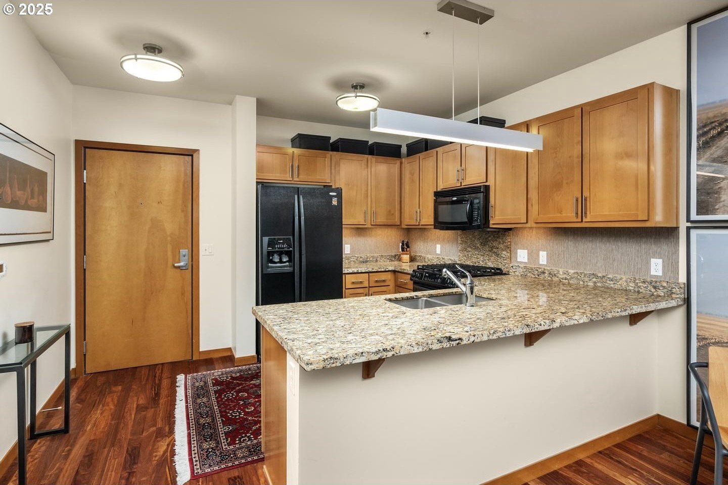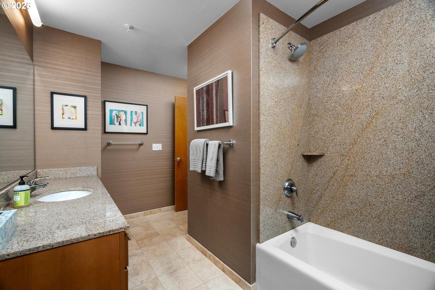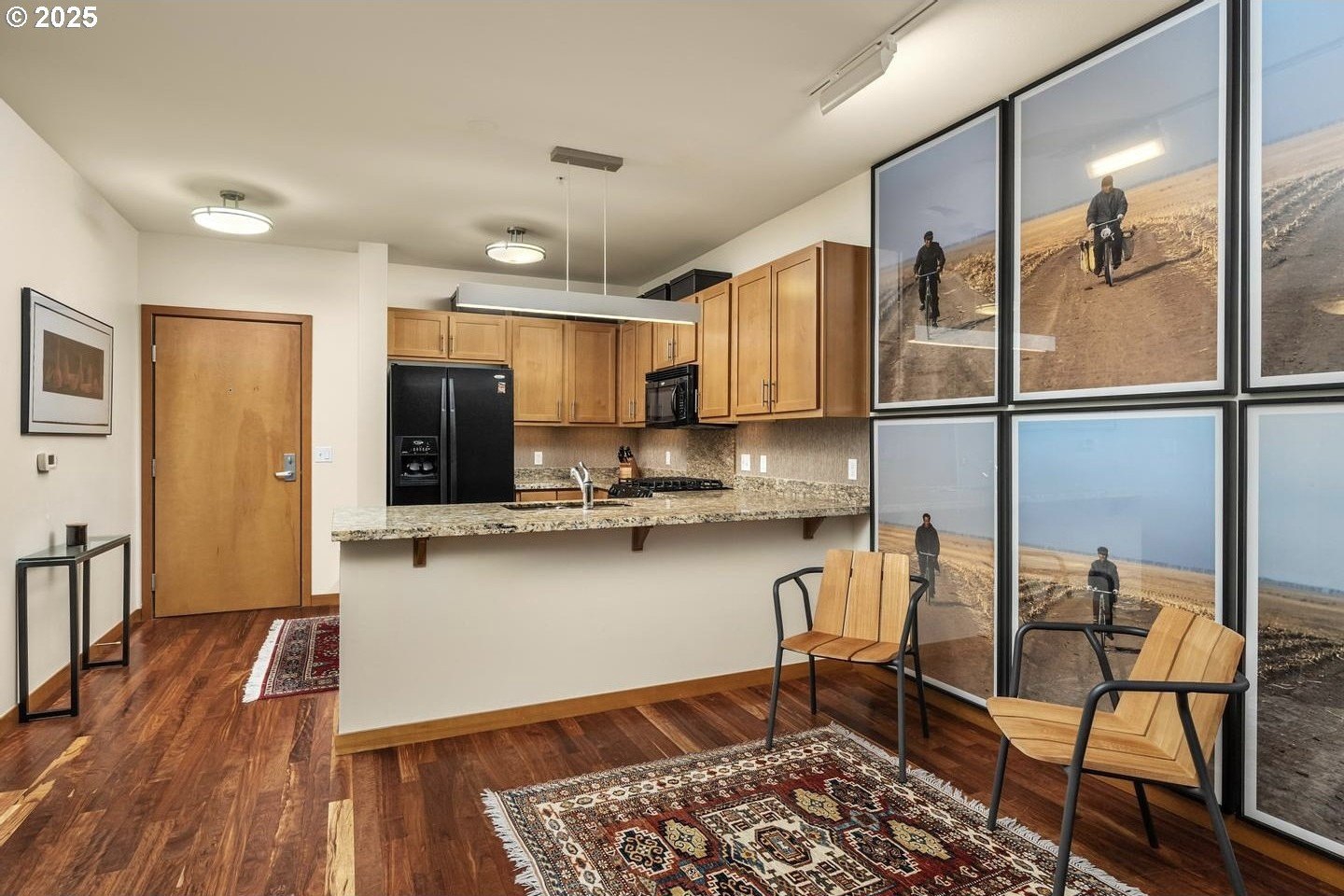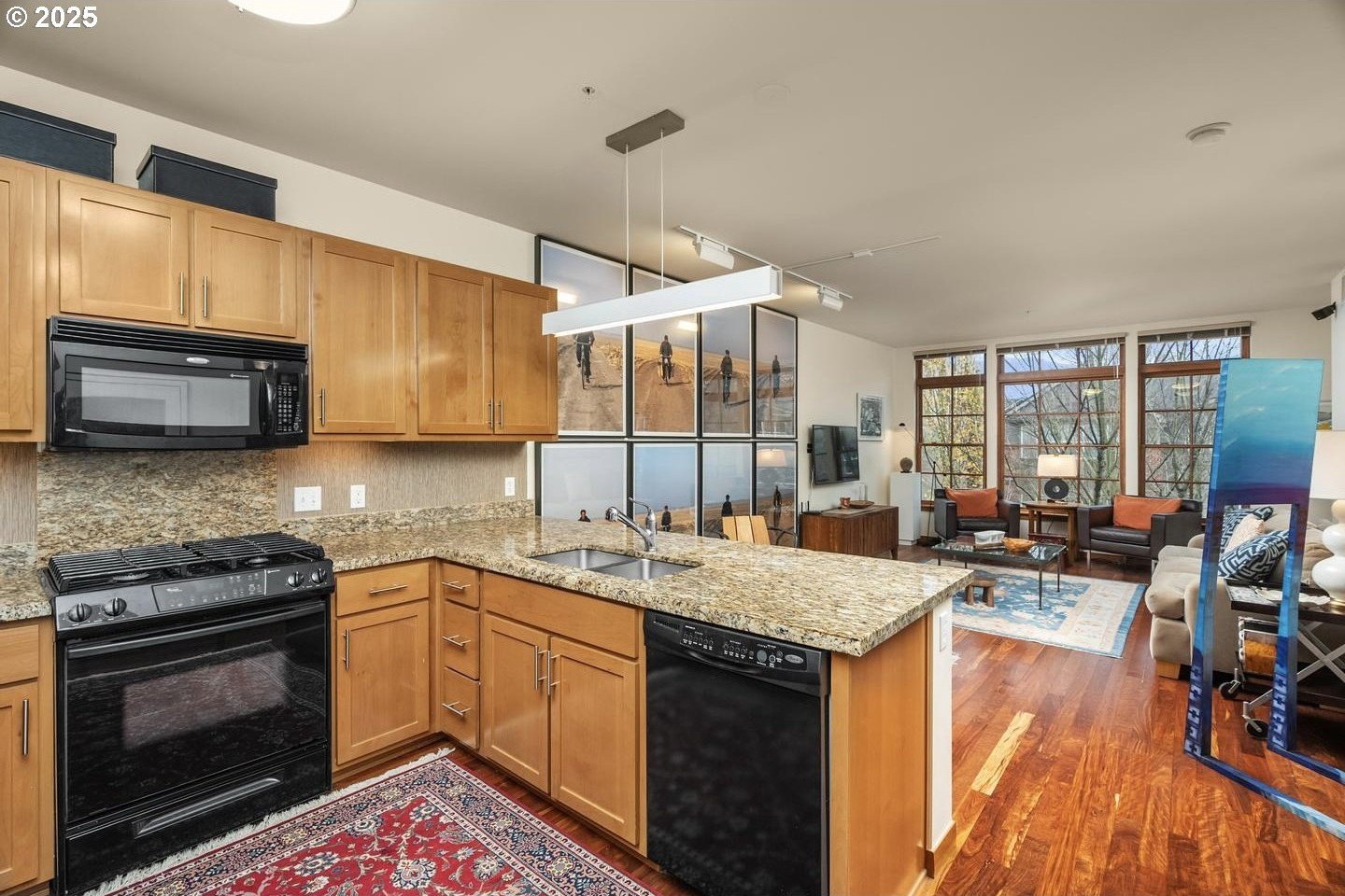 Impeccably maintained 1BR/1BA condo in The Vaux, perfectly situated in Portland's highly walkable NW District. This third-floor, south-facing home overlooks treetops with views of the West Hills and stunning sunsets. The open living/dining/kitchen layout features Caribbean Rosewood wood floors, whereas the kitchen features granite counters, a gas range, bar seating, & under-cabinet lighting. Enjoy indoor-outdoor living with a covered balcony. Recent seller updates include kitchen & bathroom wallpaper, updated lighting, newer washer/dryer, & disposal. Deeded parking & a generous storage closet included. Just moments from cafes, restaurants, grocery stores, Forest Park, Washington Park, the Pearl, Alphabet District, downtown Portland and public transportation (1/2 block to bus & about 5 blocks to light rail).