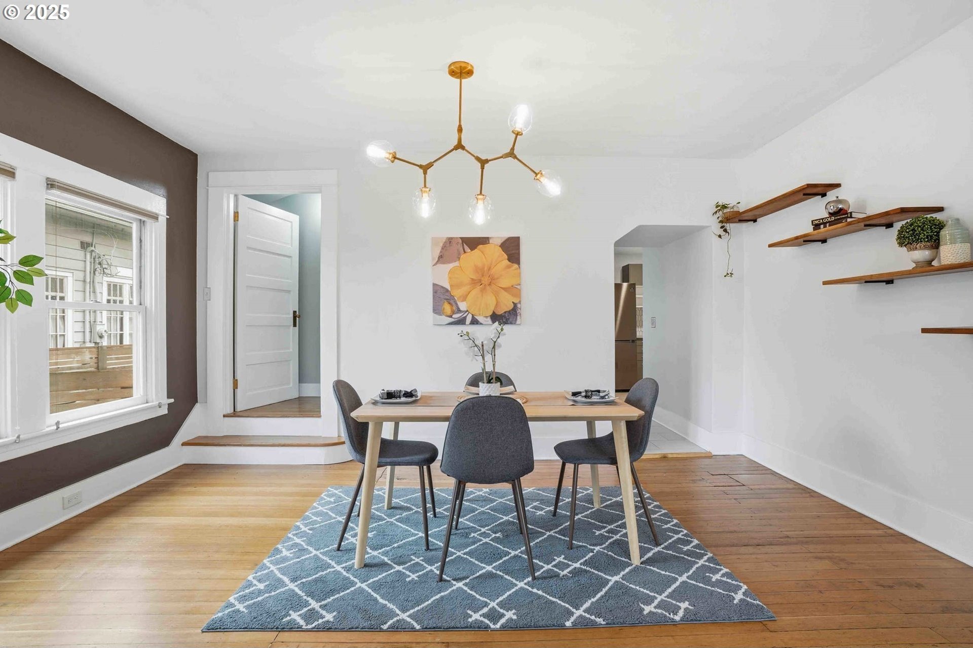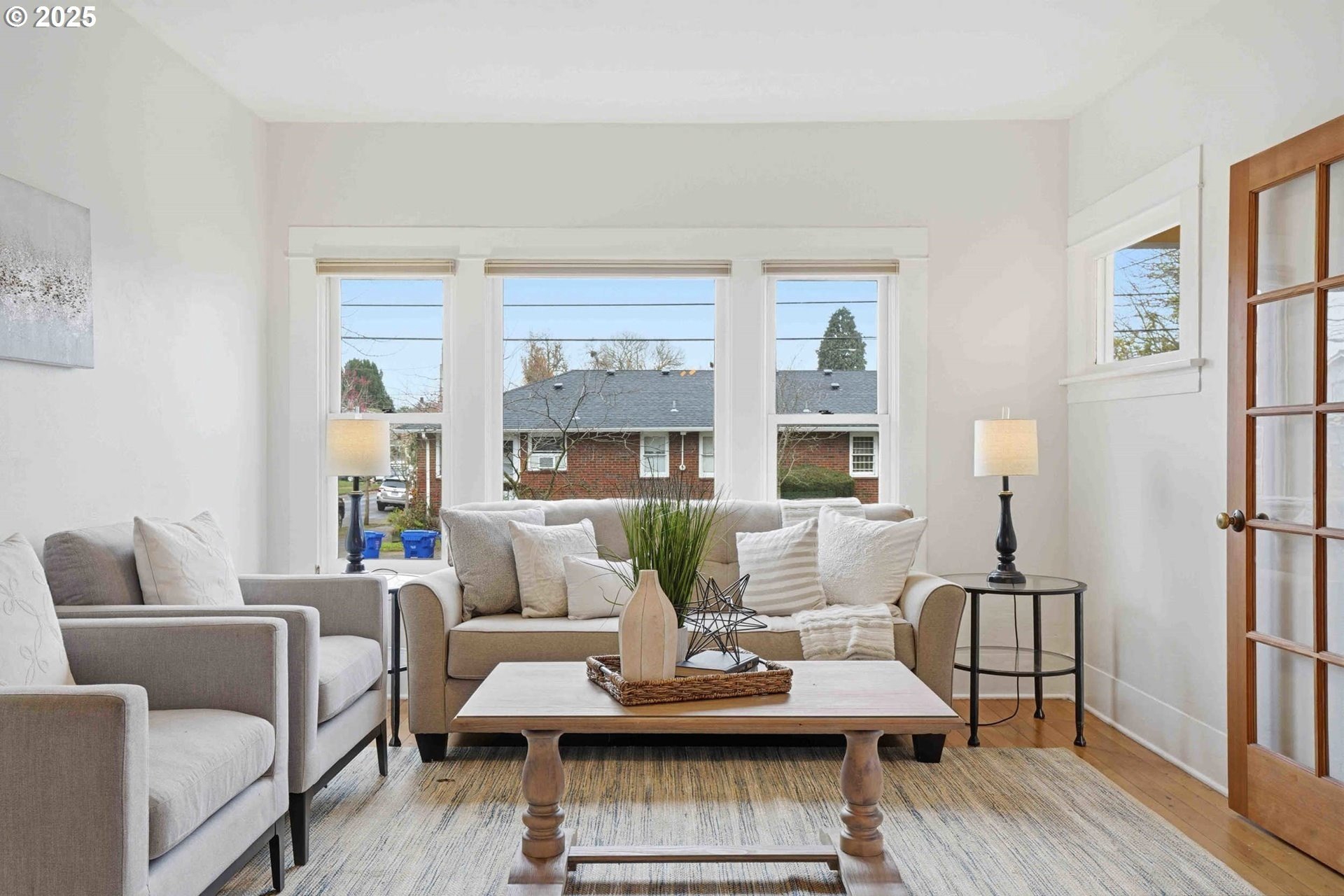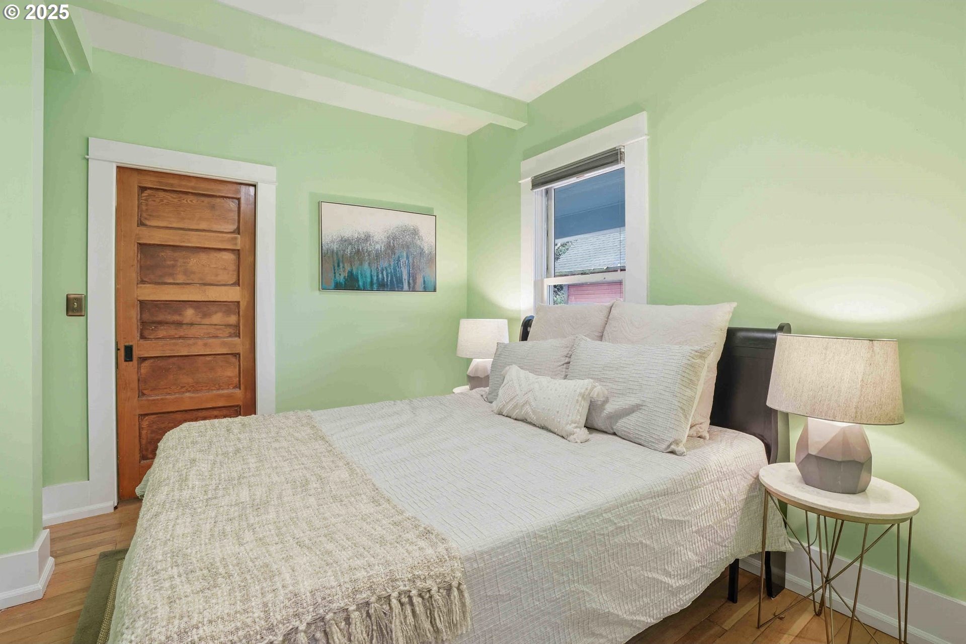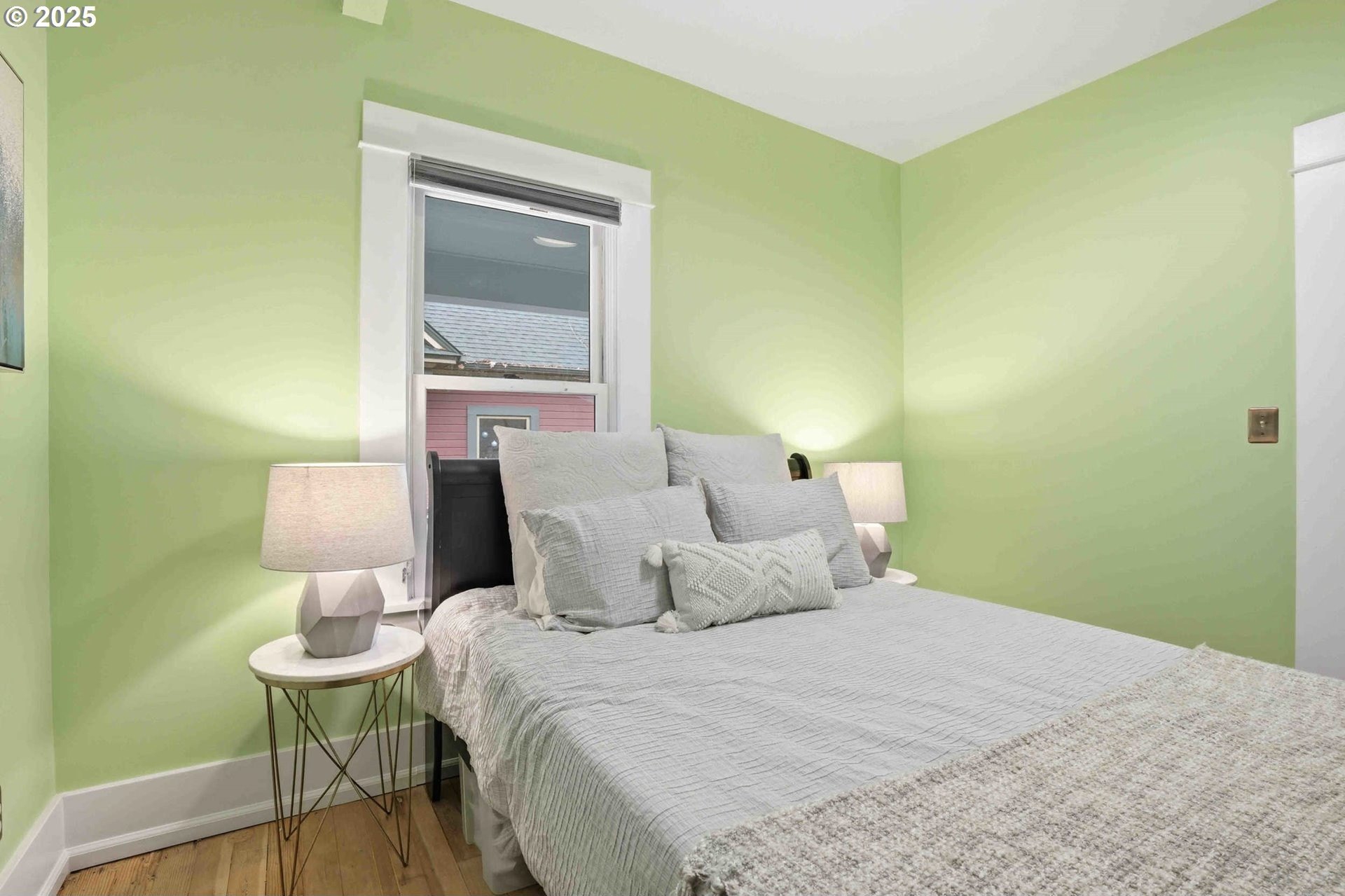 Classic 1902 North Portland bungalow with modern updates - a light, bright home in the historic Humboldt neighborhood, known for its tree-lined streets, historic architecture, and strong community character. Inside, a beautifully renovated kitchen features a striking tile backsplash that catches the morning light and opens directly to the south-facing wrap-around covered porch, creating an easy indoor-outdoor flow. Both bathrooms have been updated with clean, modern tile surrounds, and the upper-level primary suite includes built-ins and a versatile bonus room suitable for a variety of uses. Large windows throughout give the home an open, airy feel. Radiant floor heating with a tankless boiler and double-pane windows provide efficient year-round comfort. An exterior entry leads to a spacious basement offering abundant storage, workshop potential, or project space. The fully fenced yard includes garden boxes and mature plantings that will burst with color in the spring. Established blueberry and raspberry bushes and apple and plum trees round out this urban oasis. Fresh exterior paint and the classic bungalow facade highlight the home's long-standing charm and thoughtful upkeep. Humboldt offers convenient access to nearby shops, dining, transit, parks, and neighborhood amenities. Known for its historic roots and creative energy, the area continues to be one of North Portland's most engaging and well-loved communities. A rare blend of early-century architecture, contemporary updates, bright interiors, generous outdoor space, and a location with everyday conveniences close at hand. Ready for its next chapter.