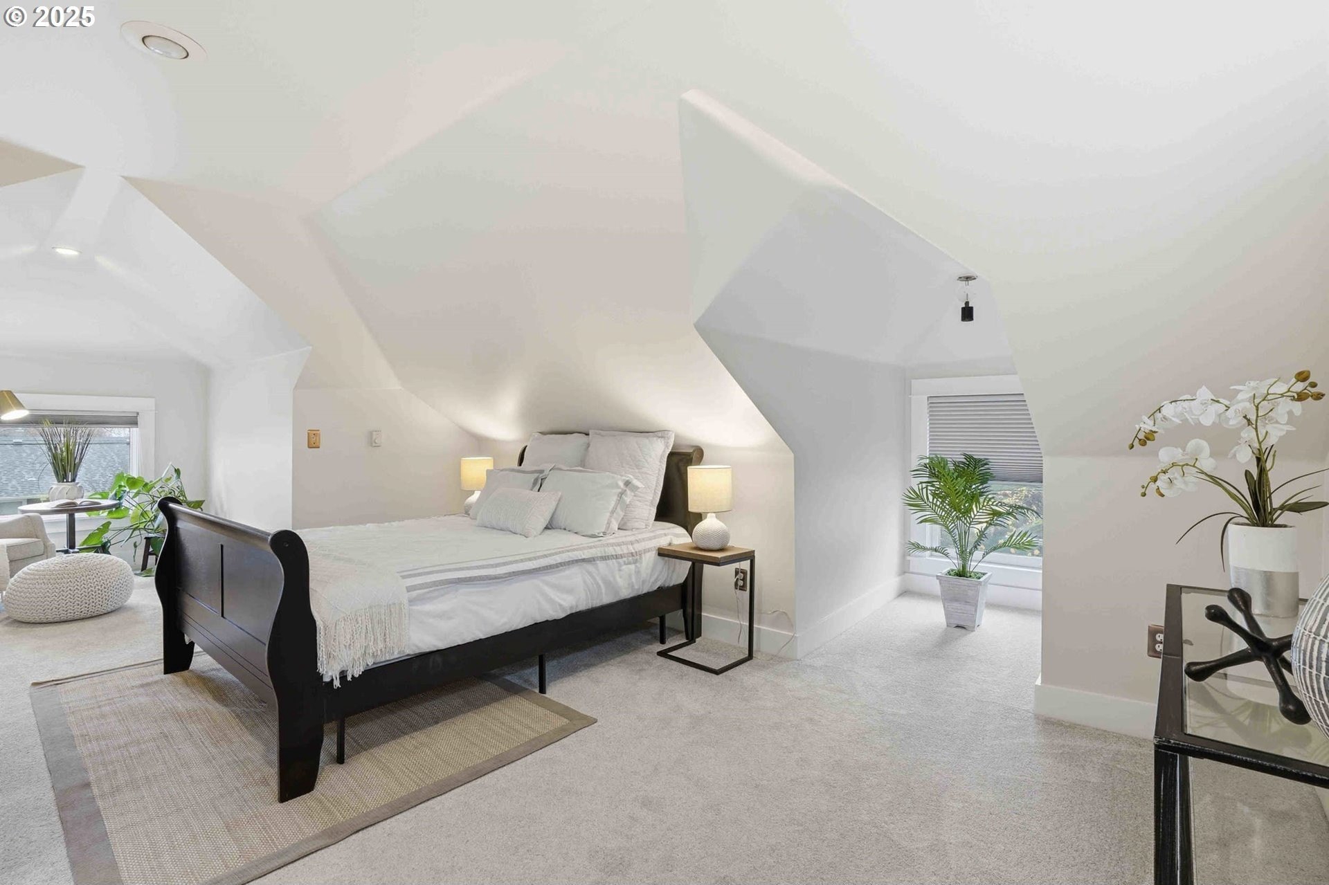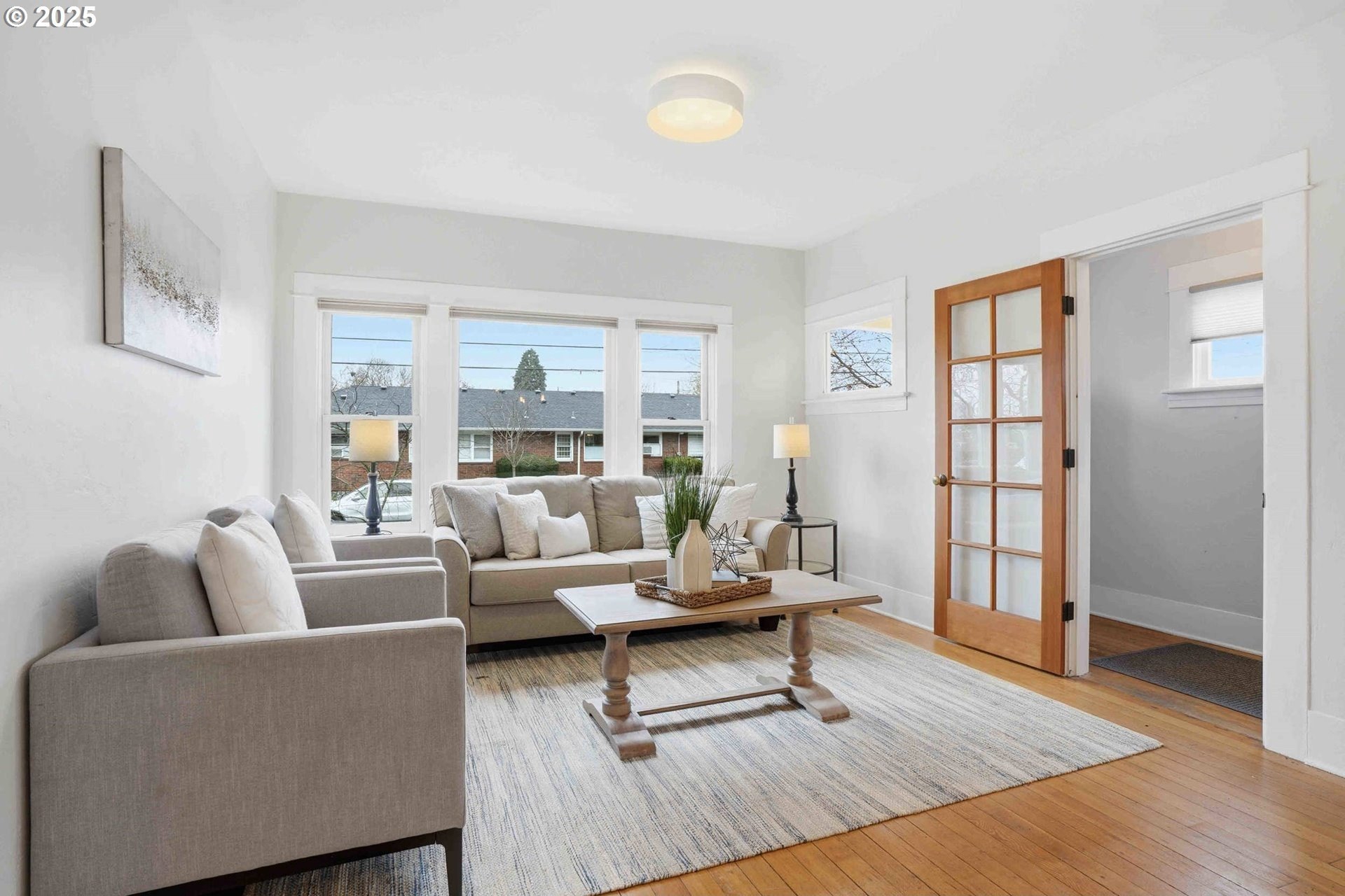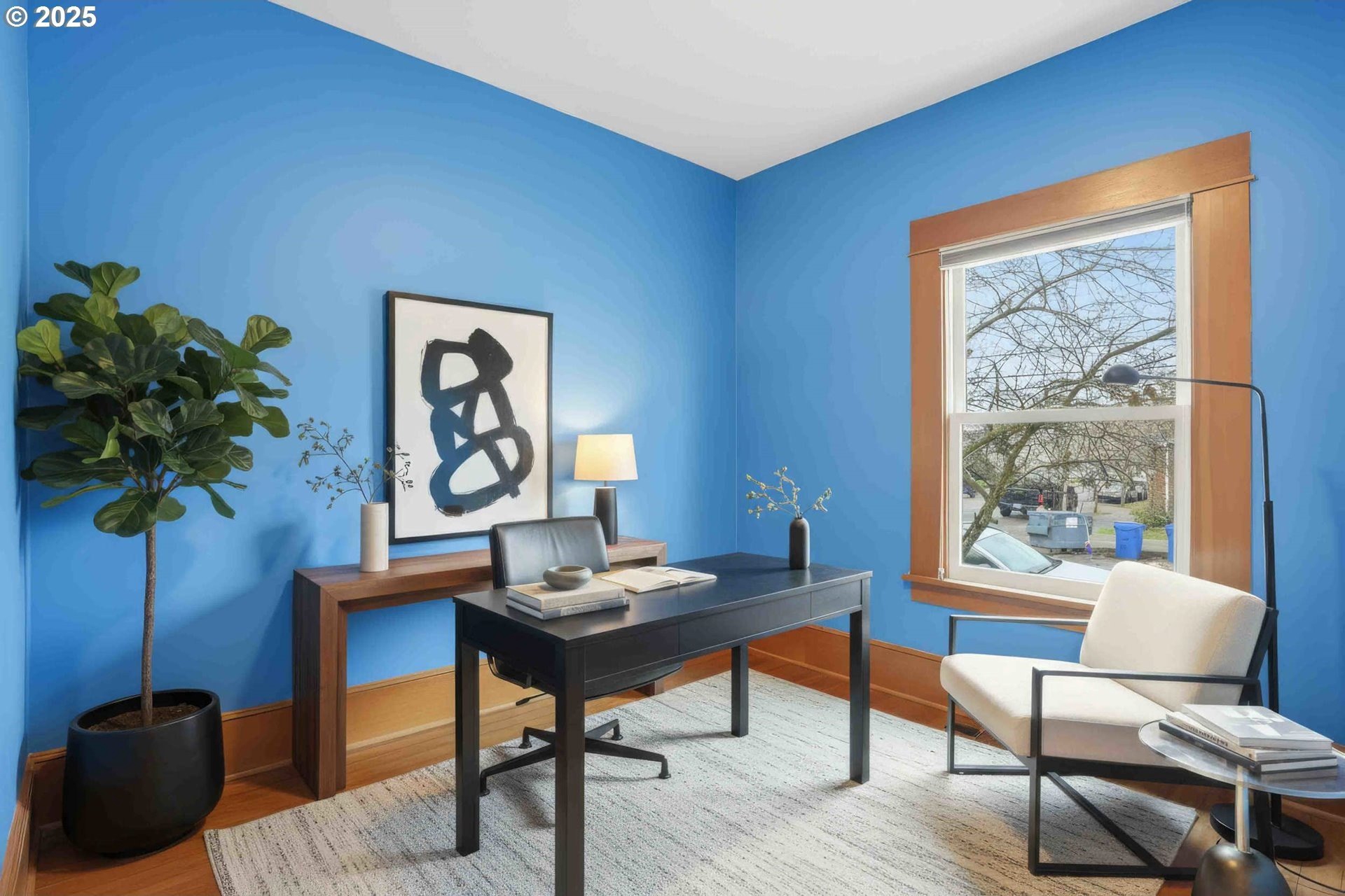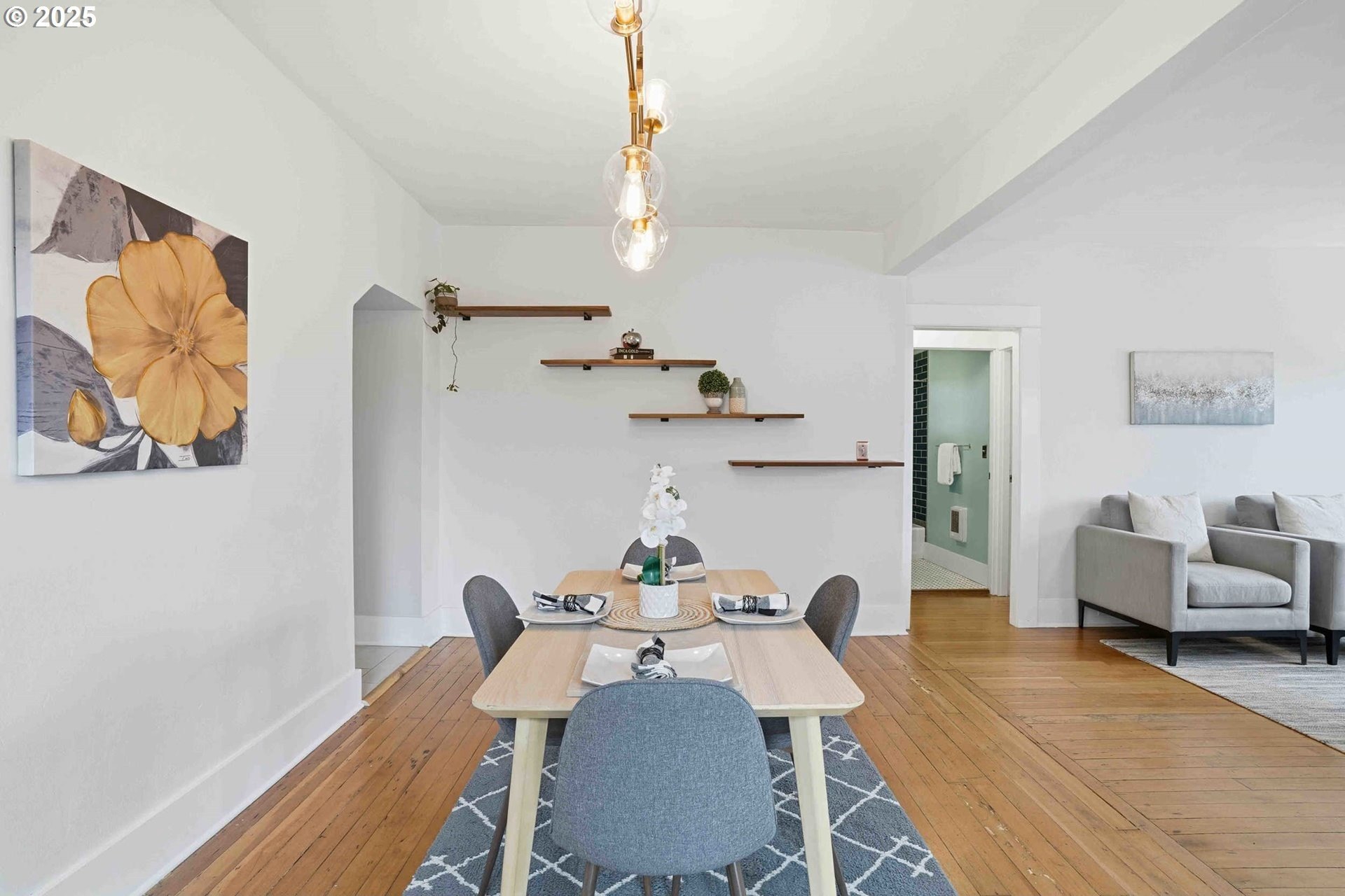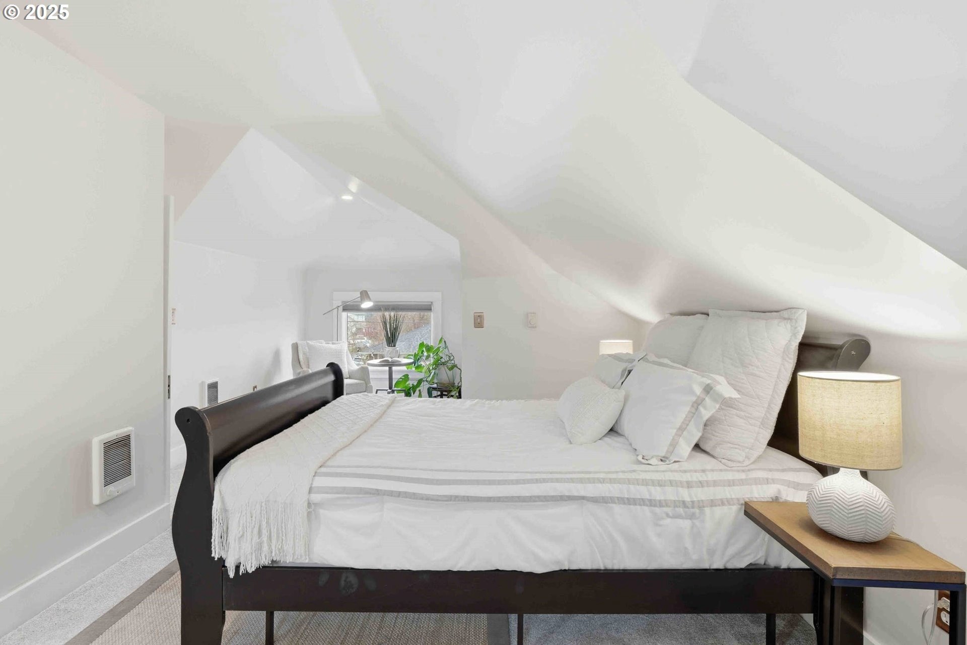 Classic 1902 North Portland bungalow with modern updates - a light, bright home in the historic Humboldt neighborhood, known for its tree-lined streets, historic architecture, and strong community character. Inside, a beautifully renovated kitchen features a striking tile backsplash that catches the morning light and opens directly to the south-facing wrap-around covered porch, creating an easy indoor-outdoor flow. Both bathrooms have been updated with clean, modern tile surrounds, and the upper-level primary suite includes built-ins and a versatile bonus room suitable for a variety of uses. Large windows throughout give the home an open, airy feel. Radiant floor heating with a tankless boiler and double-pane windows provide efficient year-round comfort. An exterior entry leads to a spacious basement offering abundant storage, workshop potential, or project space. The fully fenced yard includes garden boxes and mature plantings that will burst with color in the spring. Established blueberry and raspberry bushes and apple and plum trees round out this urban oasis. Fresh exterior paint and the classic bungalow facade highlight the home's long-standing charm and thoughtful upkeep. Humboldt offers convenient access to nearby shops, dining, transit, parks, and neighborhood amenities. Known for its historic roots and creative energy, the area continues to be one of North Portland's most engaging and well-loved communities. A rare blend of early-century architecture, contemporary updates, bright interiors, generous outdoor space, and a location with everyday conveniences close at hand. Ready for its next chapter.