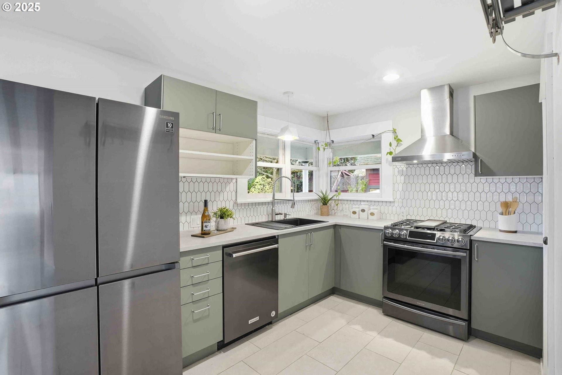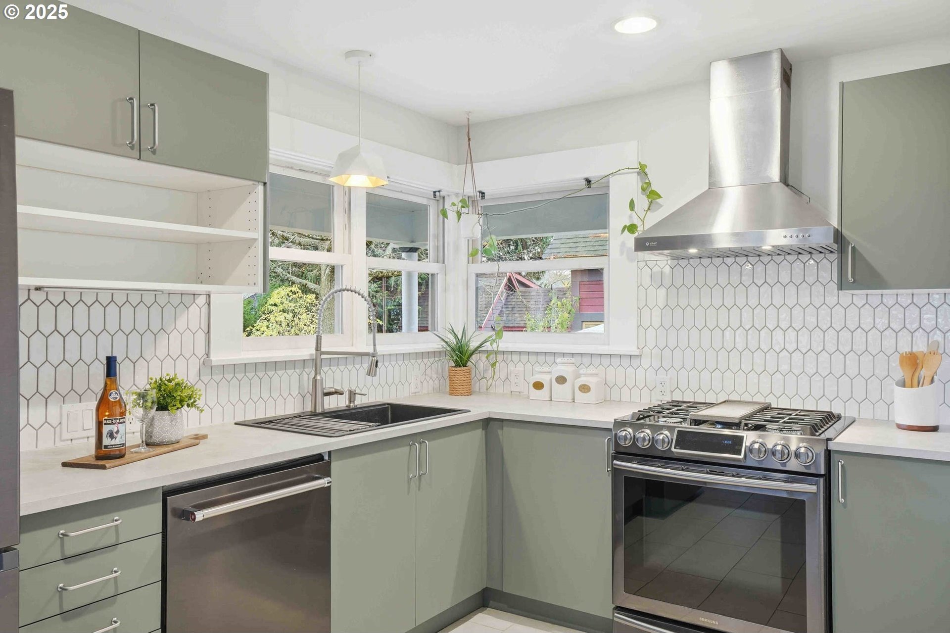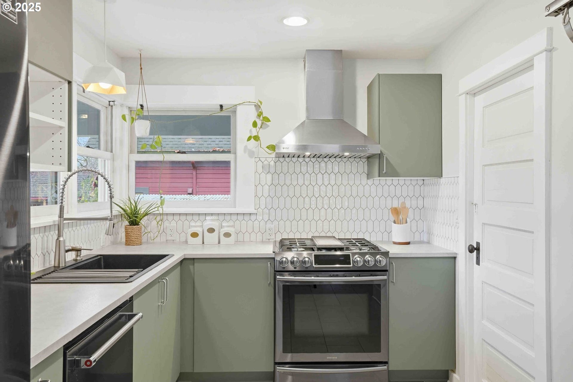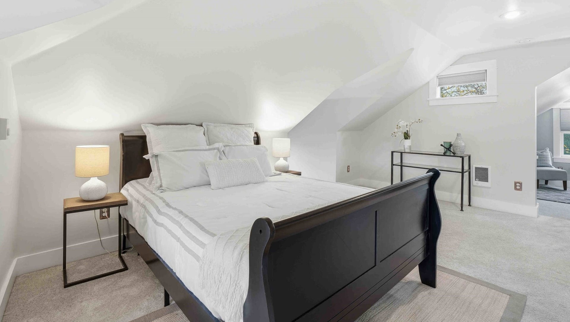 Classic 1902 North Portland bungalow with modern updates - a light, bright home in the historic Humboldt neighborhood, known for its tree-lined streets, historic architecture, and strong community character. Inside, a beautifully renovated kitchen features a striking tile backsplash that catches the morning light and opens directly to the south-facing wrap-around covered porch, creating an easy indoor-outdoor flow. Both bathrooms have been updated with clean, modern tile surrounds, and the upper-level primary suite includes built-ins and a versatile bonus room suitable for a variety of uses. Large windows throughout give the home an open, airy feel. Radiant floor heating with a tankless boiler and double-pane windows provide efficient year-round comfort. An exterior entry leads to a spacious basement offering abundant storage, workshop potential, or project space. The fully fenced yard includes garden boxes and mature plantings that will burst with color in the spring. Established blueberry and raspberry bushes and apple and plum trees round out this urban oasis. Fresh exterior paint and the classic bungalow facade highlight the home's long-standing charm and thoughtful upkeep. Humboldt offers convenient access to nearby shops, dining, transit, parks, and neighborhood amenities. Known for its historic roots and creative energy, the area continues to be one of North Portland's most engaging and well-loved communities. A rare blend of early-century architecture, contemporary updates, bright interiors, generous outdoor space, and a location with everyday conveniences close at hand. Ready for its next chapter.