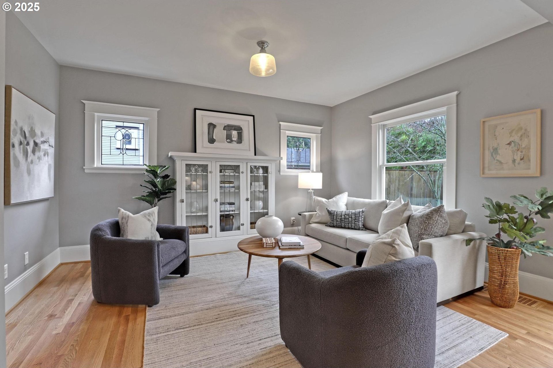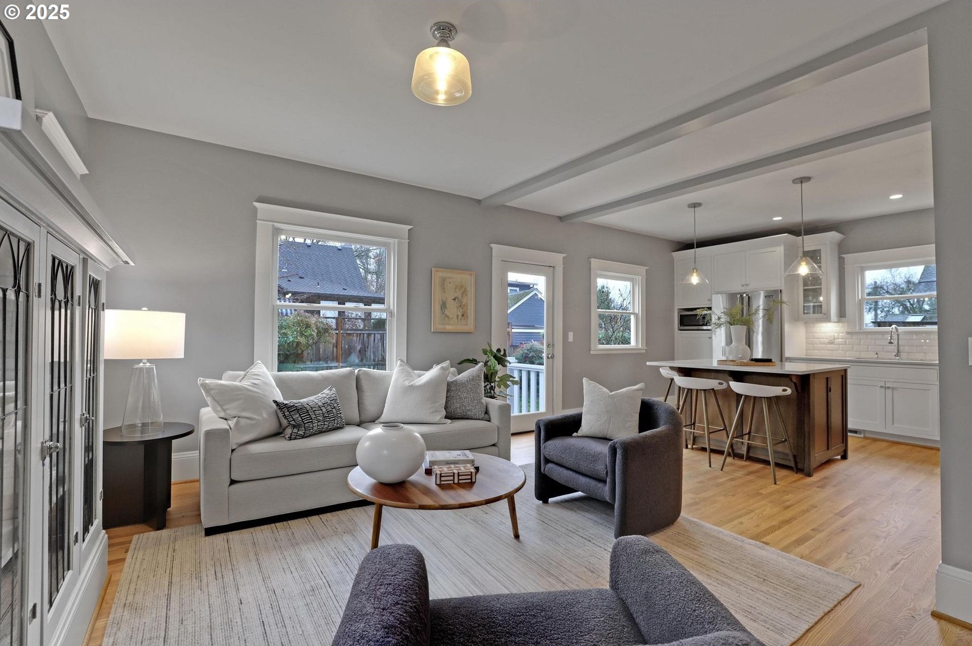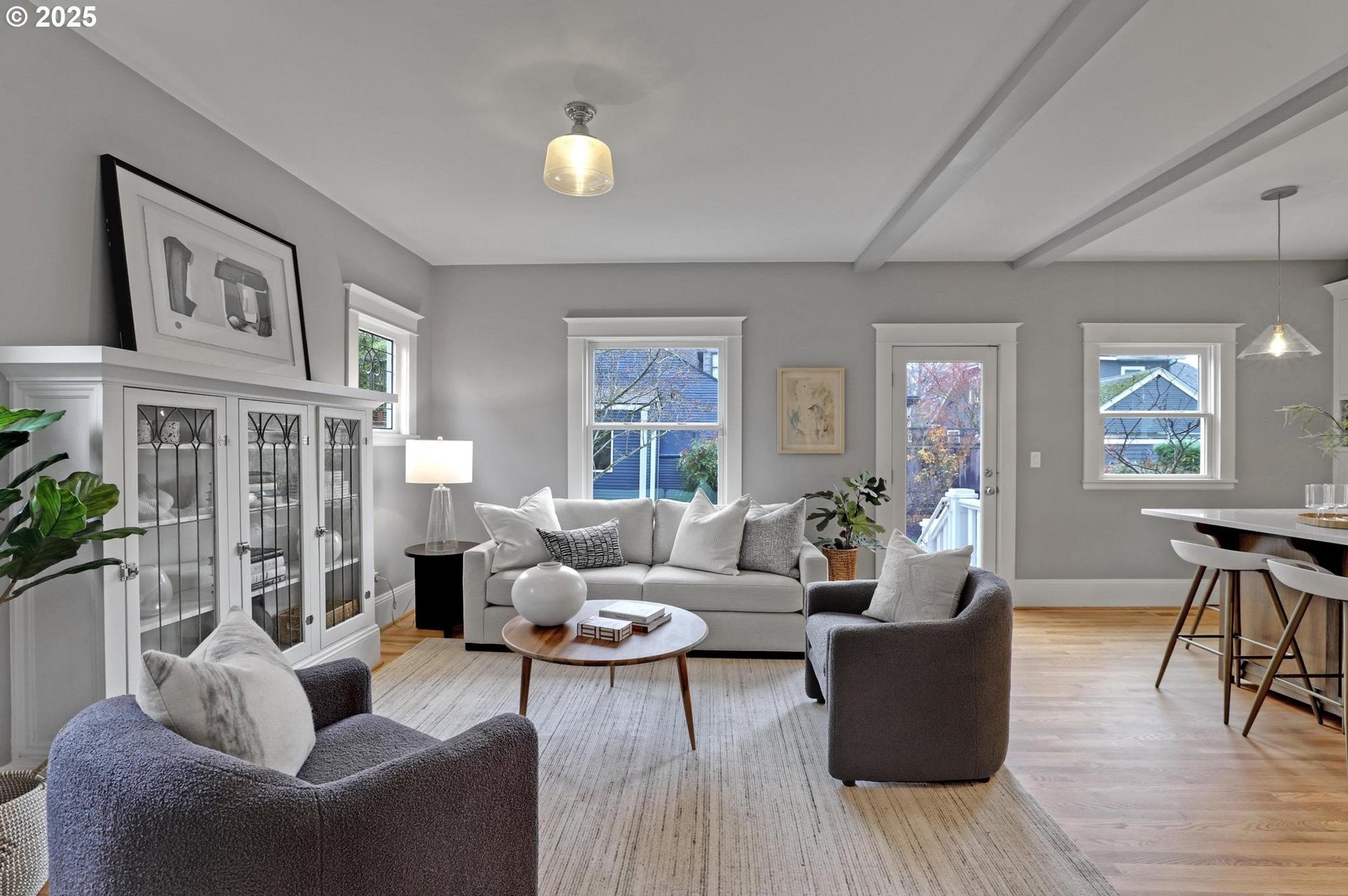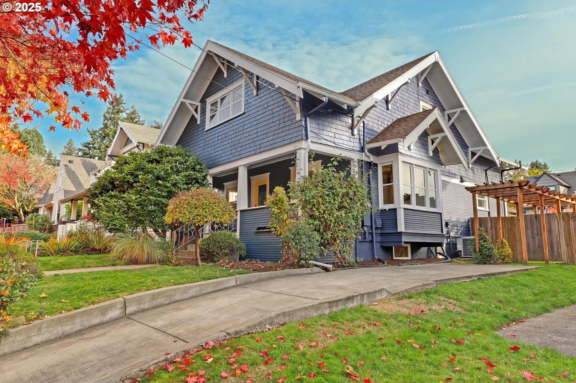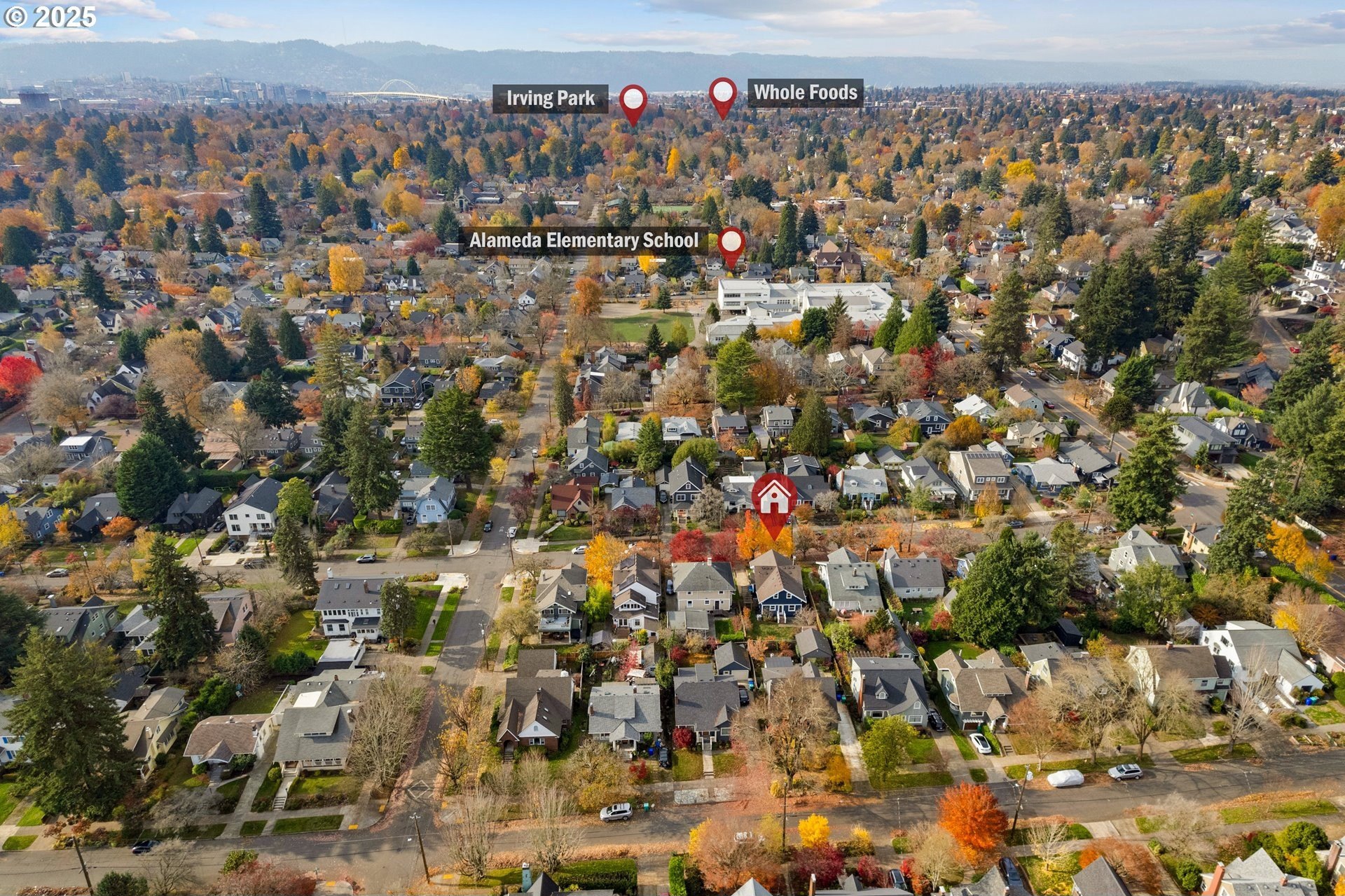 Nestled in the heart of Portland's sought-after Alameda neighborhood, this beautifully remodeled home blends timeless charm with modern comfort. This gorgeous light-filled home sits graciously above the ideal, quiet and tree-lined street. Fabulous covered front porch to enjoy the view. With brand new exterior paint, the curb appeal is welcoming and wonderful. The entryway opens to newly refinished hardwoods on the entire main floor, and an elegant formal living room with chic wood-burning fireplace and boxed beamed ceilings. The formal dining room features charming original leaded-glass built-ins, a large bay window with bench seating and more boxed beam ceilings. Big picture windows and natural light everywhere! Enter the big, beautiful and open kitchen with seamless connection to most fabulous great room. Perfect area for everyday family togetherness and entertaining large groups. The heart of this gourmet kitchen is a large cook's island with quartz countertops, custom cabinetry and seating for four. Stainless-steel appliances include Viking professional gas range and ZEPH'R range hood, Viking refrigerator and a Bosch dishwasher. The great room features the original charming leaded glass windows and built-ins. Easy outdoor access from the kitchen and great room into a large, fully fenced backyard, ideal for barbecues and watching kids play while you cook. Lovely half bath off the hallway for easy circular flow of entire main floor. Upstairs there are three generous bedrooms and two bathrooms, including a stunning vaulted primary suite with walk-in closet and private bath. The entire ensuite lives large and beautifully! The finished lower level adds flexibility for guests with a fourth bedroom, full bath, ideal office space, laundry room, along with a family room everyone will love. Please see impressive "Home Improvements & Highlights" list and carefully curated "What's Nearby" list for all the fun restaurants, cafes, parks and shopping. Open 12/6 & 12/7, 1-3 pm. [Home Energy Score = 3. HES Report