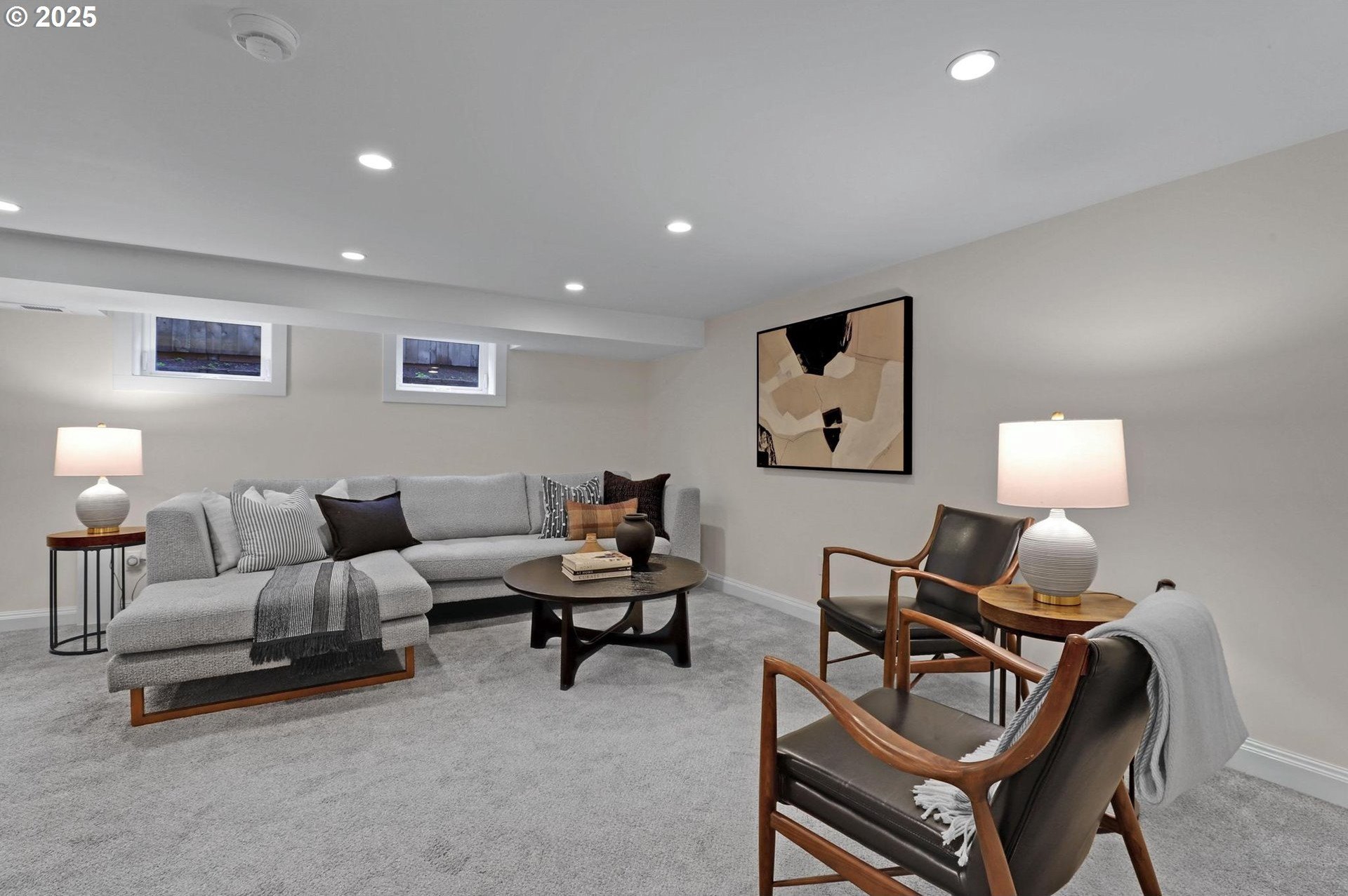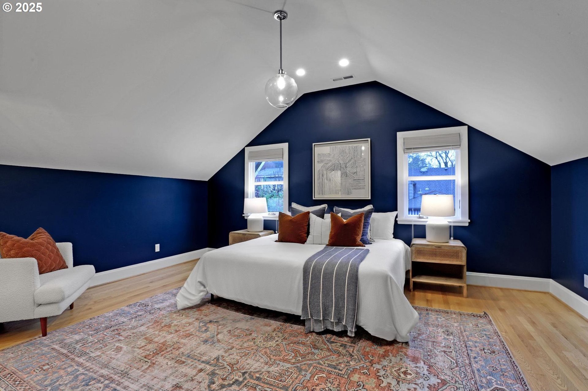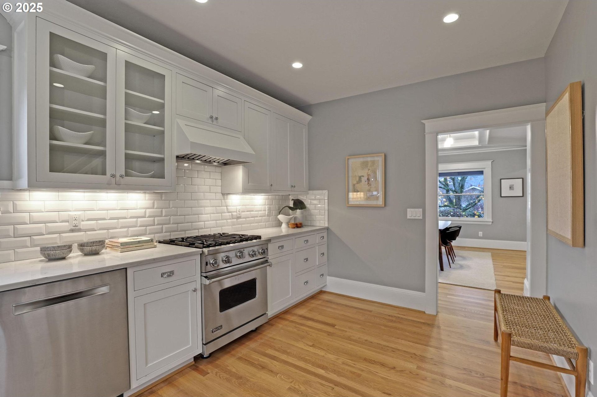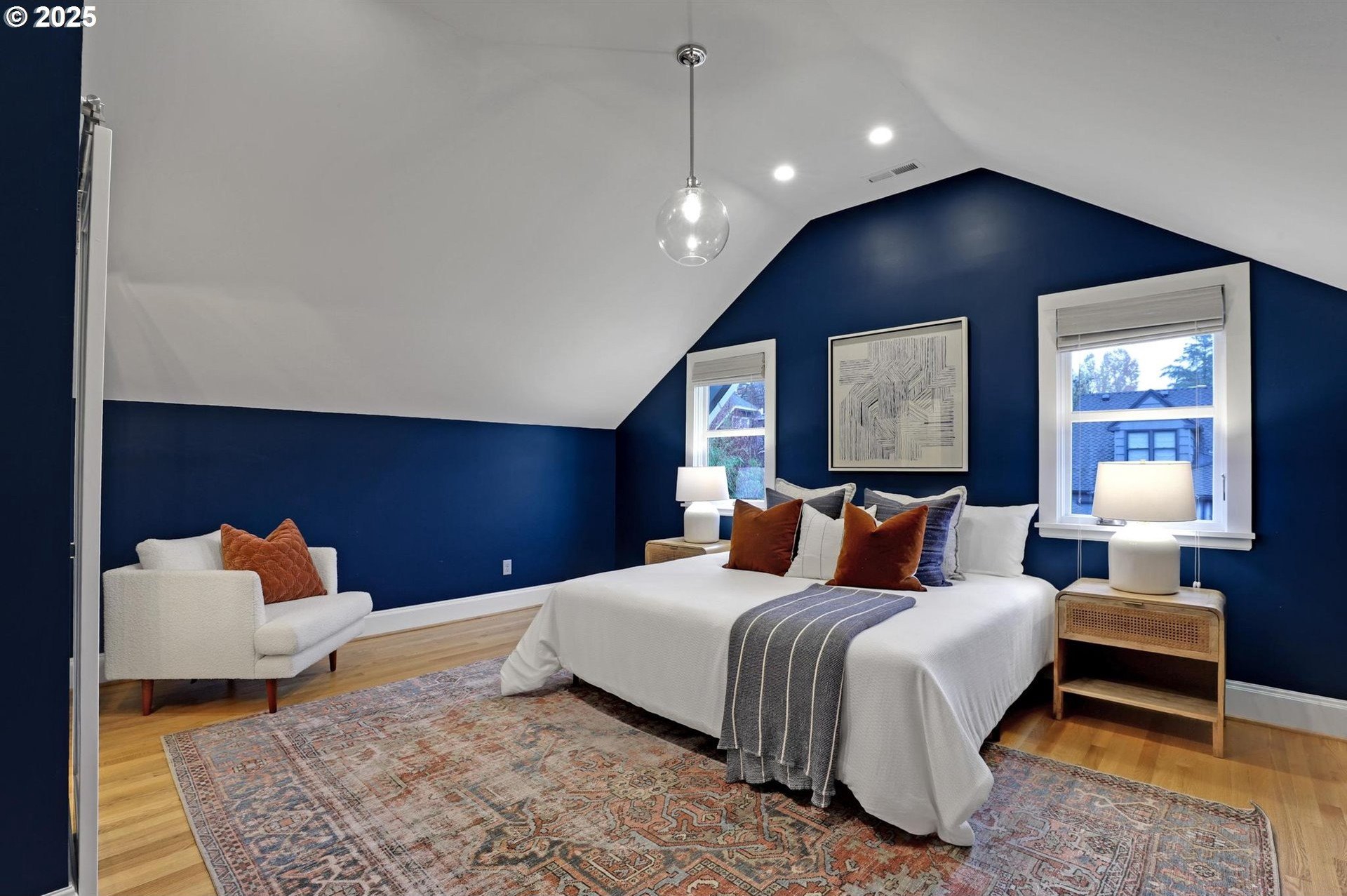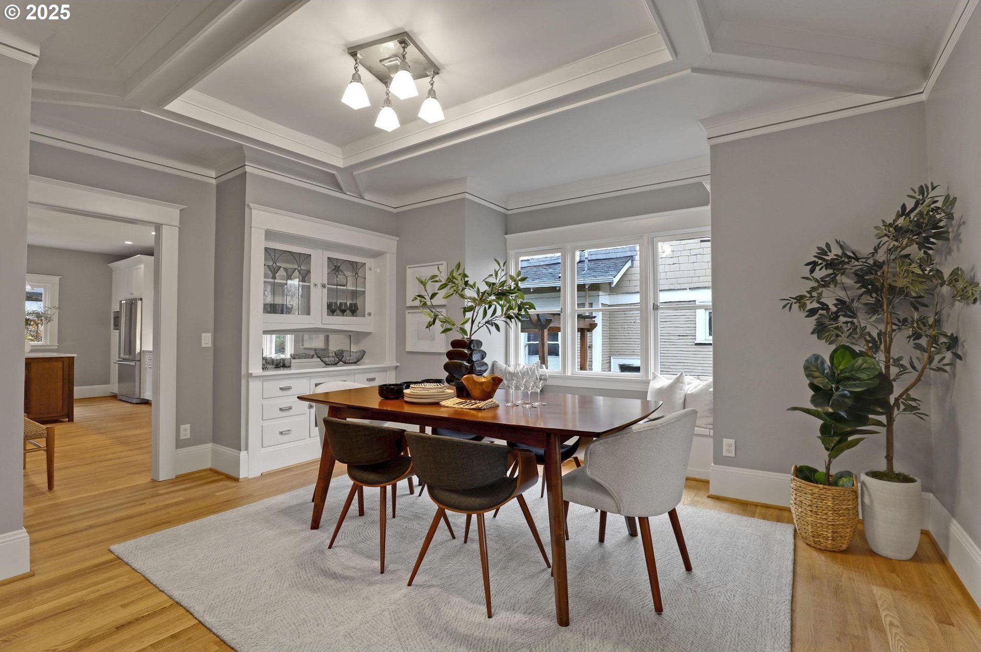 Nestled in the heart of Portland's sought-after Alameda neighborhood, this beautifully remodeled home blends timeless charm with modern comfort. This gorgeous light-filled home sits graciously above the ideal, quiet and tree-lined street. Fabulous covered front porch to enjoy the view. With brand new exterior paint, the curb appeal is welcoming and wonderful. The entryway opens to newly refinished hardwoods on the entire main floor, and an elegant formal living room with chic wood-burning fireplace and boxed beamed ceilings. The formal dining room features charming original leaded-glass built-ins, a large bay window with bench seating and more boxed beam ceilings. Big picture windows and natural light everywhere! Enter the big, beautiful and open kitchen with seamless connection to most fabulous great room. Perfect area for everyday family togetherness and entertaining large groups. The heart of this gourmet kitchen is a large cook's island with quartz countertops, custom cabinetry and seating for four. Stainless-steel appliances include Viking professional gas range and ZEPH'R range hood, Viking refrigerator and a Bosch dishwasher. The great room features the original charming leaded glass windows and built-ins. Easy outdoor access from the kitchen and great room into a large, fully fenced backyard, ideal for barbecues and watching kids play while you cook. Lovely half bath off the hallway for easy circular flow of entire main floor. Upstairs there are three generous bedrooms and two bathrooms, including a stunning vaulted primary suite with walk-in closet and private bath. The entire ensuite lives large and beautifully! The finished lower level adds flexibility for guests with a fourth bedroom, full bath, ideal office space, laundry room, along with a family room everyone will love. Please see impressive "Home Improvements & Highlights" list and carefully curated "What's Nearby" list for all the fun restaurants, cafes, parks and shopping. Open 12/6 & 12/7, 1-3 pm. [Home Energy Score = 3. HES Report