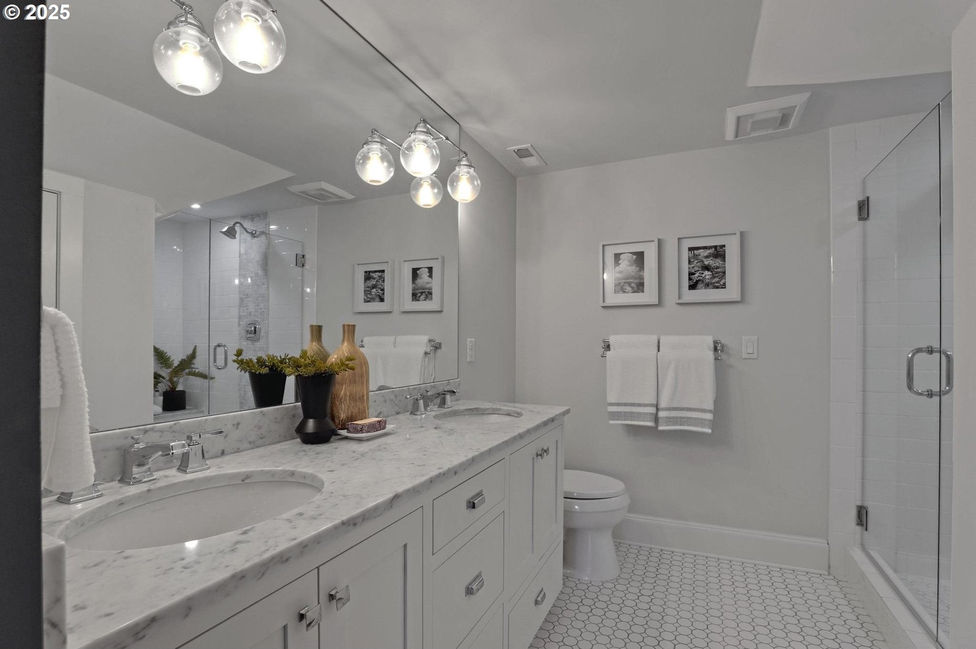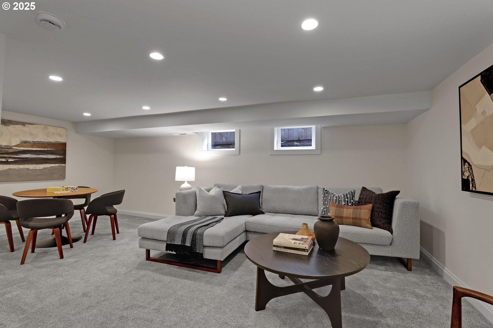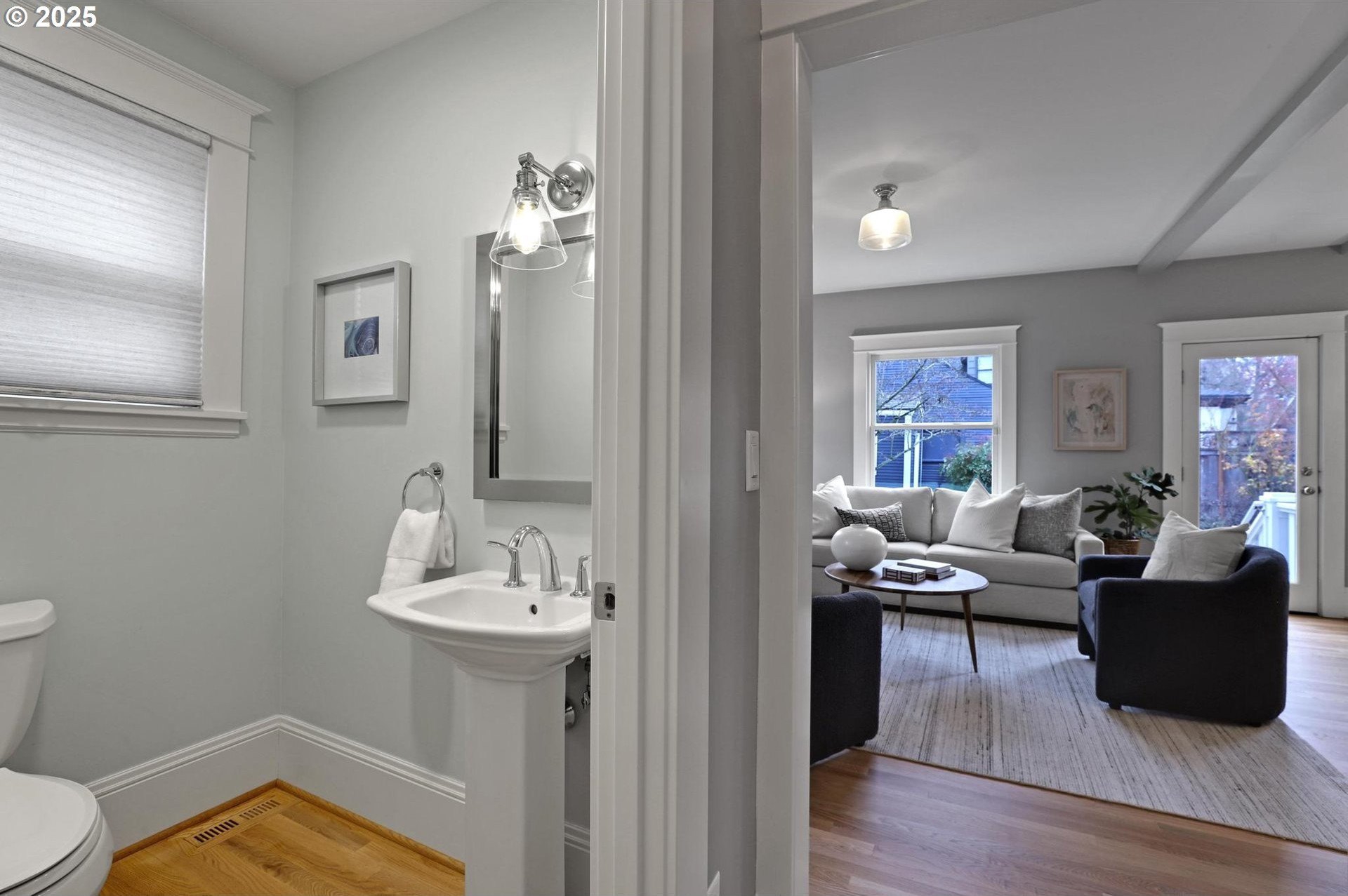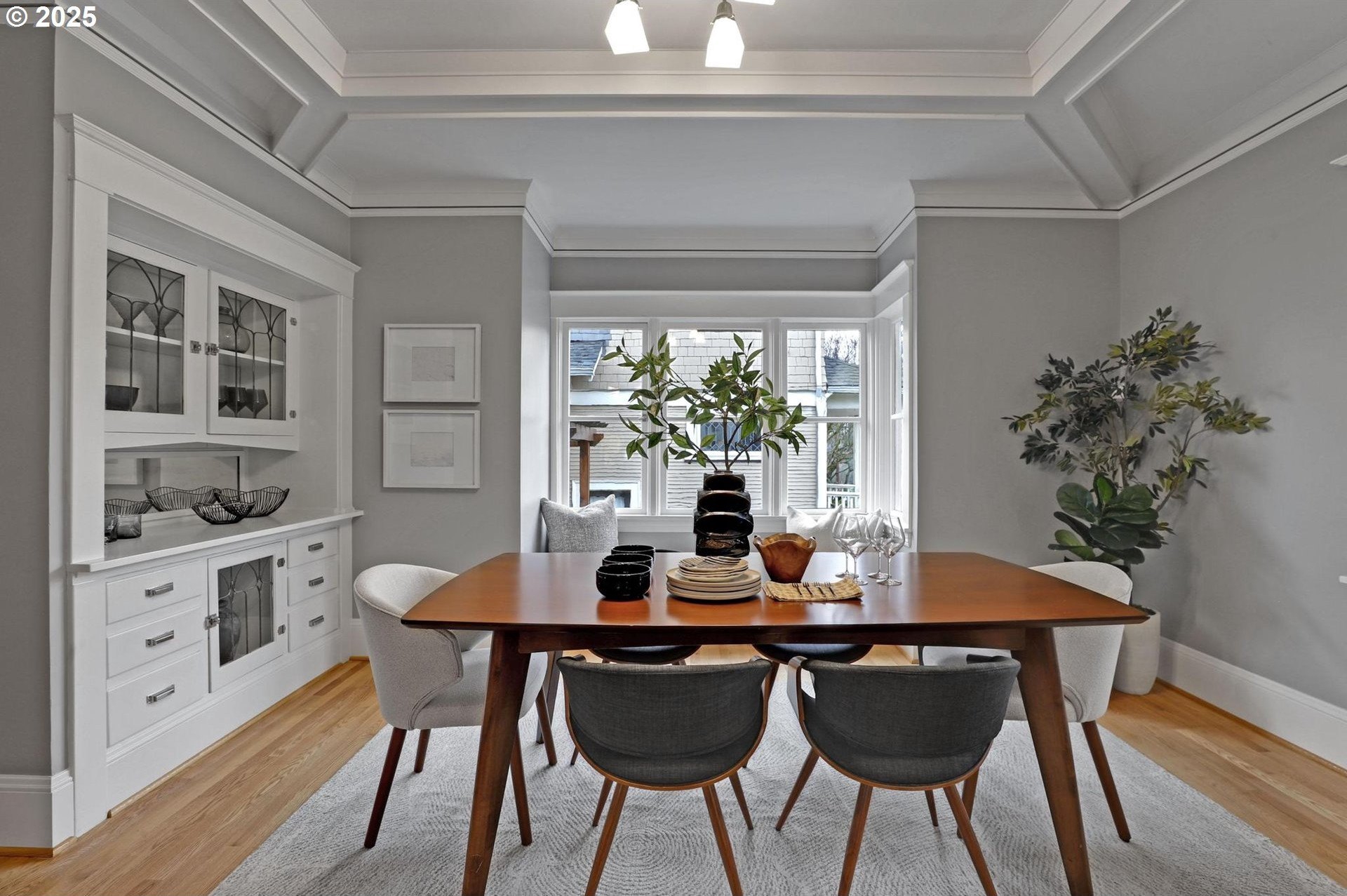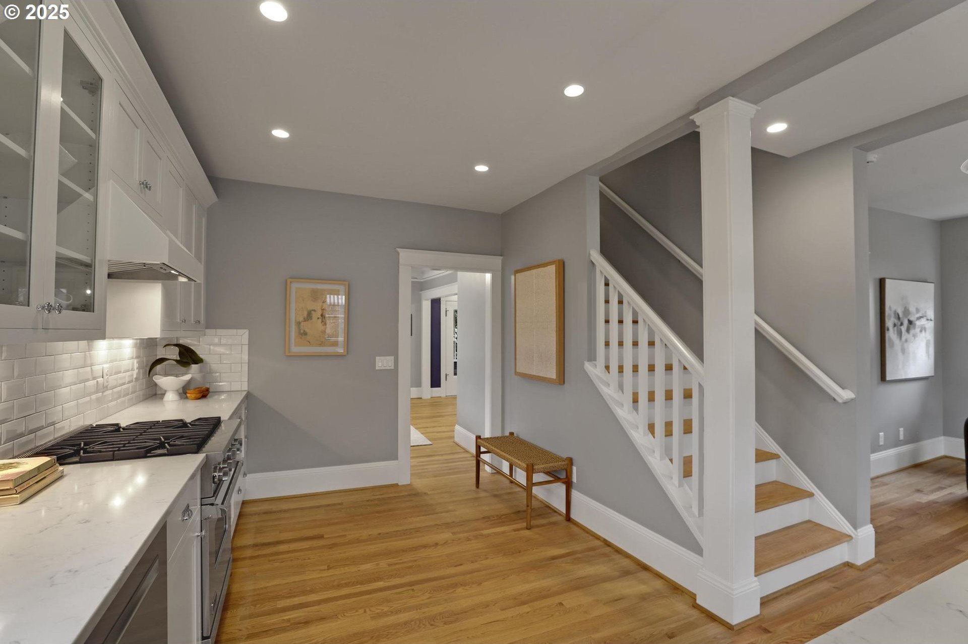 Nestled in the heart of Portland's sought-after Alameda neighborhood, this beautifully remodeled home blends timeless charm with modern comfort. This gorgeous light-filled home sits graciously above the ideal, quiet and tree-lined street. Fabulous covered front porch to enjoy the view. With brand new exterior paint, the curb appeal is welcoming and wonderful. The entryway opens to newly refinished hardwoods on the entire main floor, and an elegant formal living room with chic wood-burning fireplace and boxed beamed ceilings. The formal dining room features charming original leaded-glass built-ins, a large bay window with bench seating and more boxed beam ceilings. Big picture windows and natural light everywhere! Enter the big, beautiful and open kitchen with seamless connection to most fabulous great room. Perfect area for everyday family togetherness and entertaining large groups. The heart of this gourmet kitchen is a large cook's island with quartz countertops, custom cabinetry and seating for four. Stainless-steel appliances include Viking professional gas range and ZEPH'R range hood, Viking refrigerator and a Bosch dishwasher. The great room features the original charming leaded glass windows and built-ins. Easy outdoor access from the kitchen and great room into a large, fully fenced backyard, ideal for barbecues and watching kids play while you cook. Lovely half bath off the hallway for easy circular flow of entire main floor. Upstairs there are three generous bedrooms and two bathrooms, including a stunning vaulted primary suite with walk-in closet and private bath. The entire ensuite lives large and beautifully! The finished lower level adds flexibility for guests with a fourth bedroom, full bath, ideal office space, laundry room, along with a family room everyone will love. Please see impressive "Home Improvements & Highlights" list and carefully curated "What's Nearby" list for all the fun restaurants, cafes, parks and shopping. Open 12/6 & 12/7, 1-3 pm. [Home Energy Score = 3. HES Report