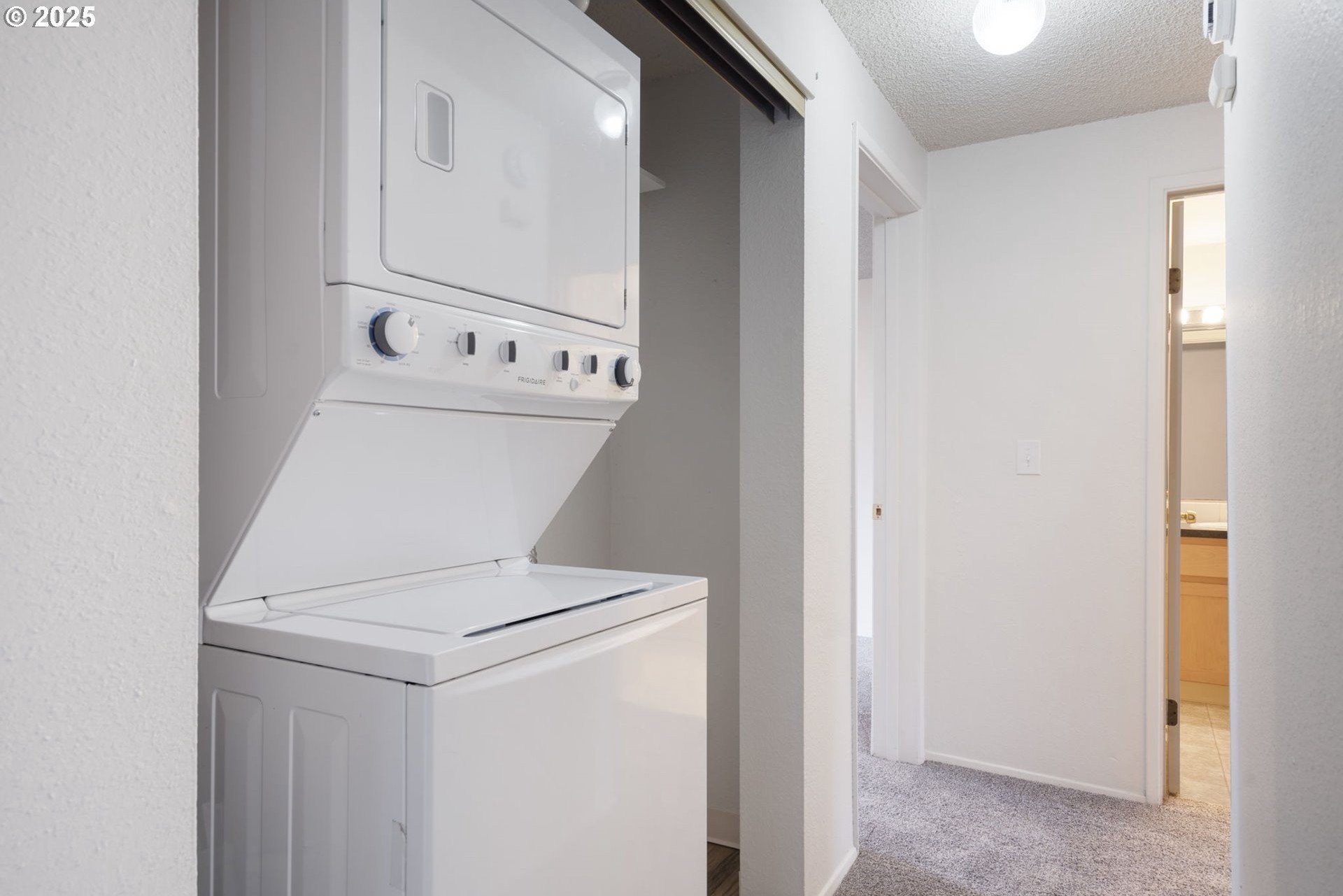 Experience easy, low-maintenance living in this inviting 2-bedroom condo in the heart of Mountain Park. Surrounded by lush trees and scenic trails, this home features a bright, open layout with a sunlit living room, dining nook, and a well-equipped kitchen with all appliances included. Enjoy the convenience of an in-unit washer and dryer, plus your own, up front, assigned parking space and ample guest parking nearby. Take advantage of the outdoor pool, community garden areas, wooded walking paths, and full access to Mountain Park's recreation center with an indoor pool, fitness center, tennis/pickleball courts, and group classes. Commuting is a breeze with quick access to I-5 and 217. You'll be moments from New Seasons, Starbucks, OHSU, PCC, Lewis and Clark, Tryon Creek State Park, and only minutes from downtown Lake Oswego's shops, dining, events, and farmers market. A perfect chance to stop renting and start building equity in a vibrant community.