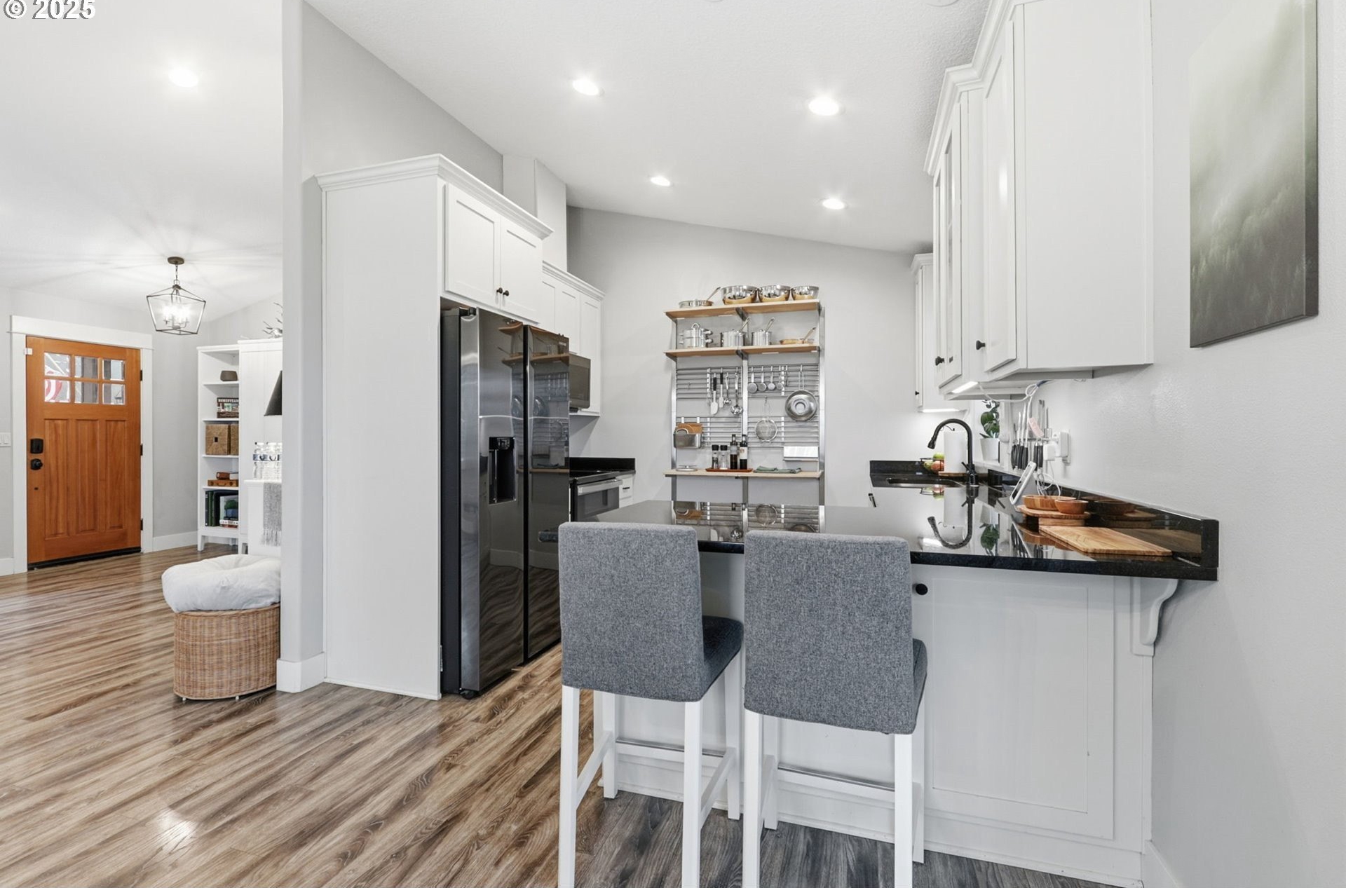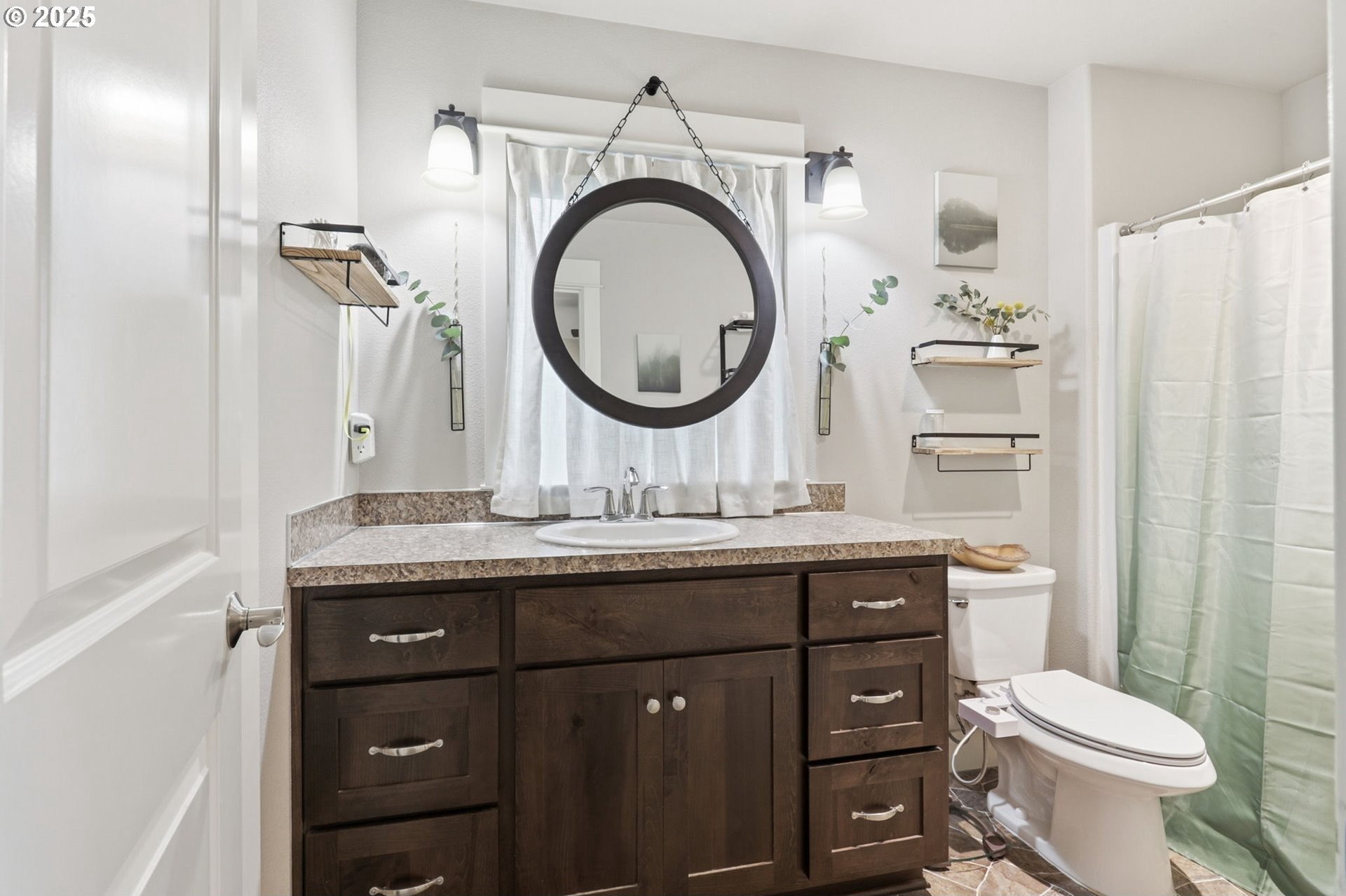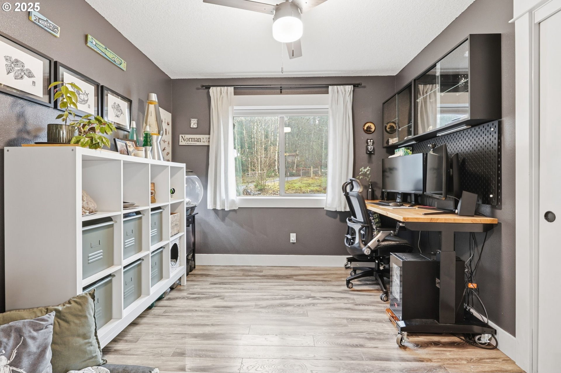 Welcome to this beautiful 3-bedroom, 2-bathroom home situated on just over 8 private, sloped acres of wooded land in Yacolt. Inside, the bright, open-concept floor plan is instantly inviting, with vaulted ceilings and abundant windows that fill the space with natural light and showcase serene year-round tree views. The property is an outdoor enthusiast's and homesteader's dream. It features invaluable direct river front access and a highly productive outdoor setup, including an established orchard, ready-to-use raised garden beds, a functional chicken coop, and a large hoop house for extended-season growing. All of this is protected within a fully enclosed, deer-fenced yard. The beautiful outdoor patio with a view is perfect for relaxation, and the spacious 20x24 detached garage provides excellent secure parking and outstanding potential for a dedicated workshop