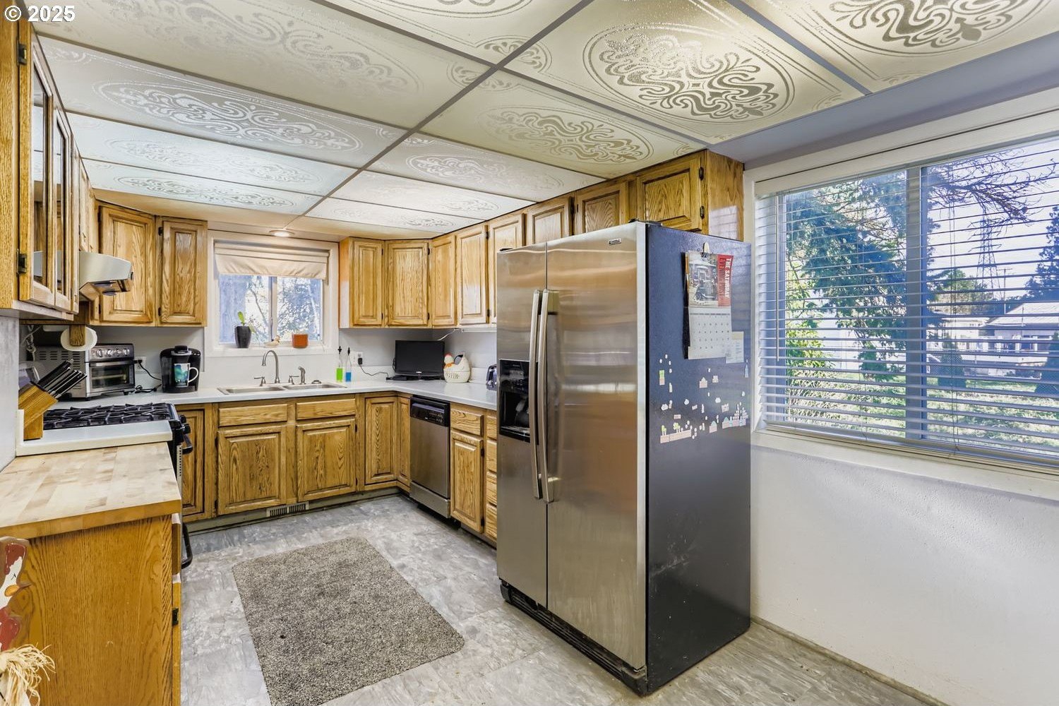 Cottage style Milwaukie home offering four bedrooms, two bathrooms, and an unfinished basement with useful storage and future potential. The main level features a bright living area, an efficient kitchen with ample cabinetry, and a dining space with easy access to the outdoors. The fully fenced 0.56-acre lot provides room for gardening, outdoor seating, play areas, RV parking, and a 2-car detached garage. Bedrooms are well-sized, and the layout offers flexibility for work, guests, or additional living needs. Interior updates include refreshed finishes and updated flooring. A long driveway and spacious lot add convenience and usable space. Convenient location with access to parks, shopping, schools, and major routes.