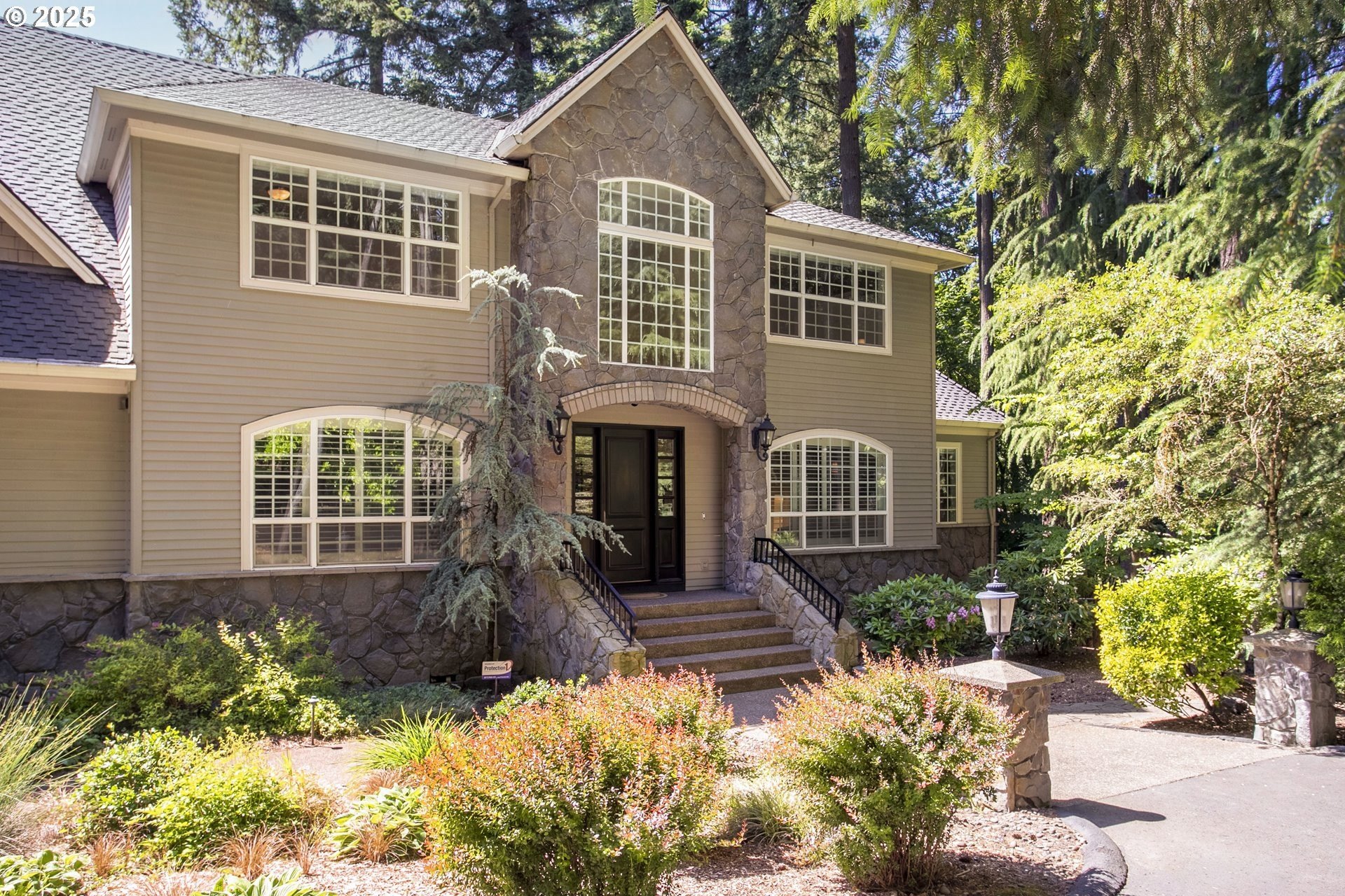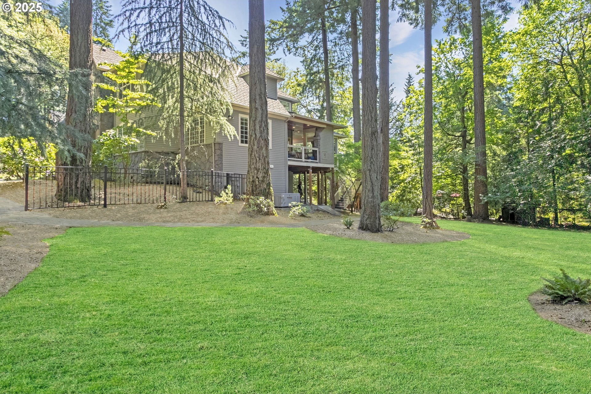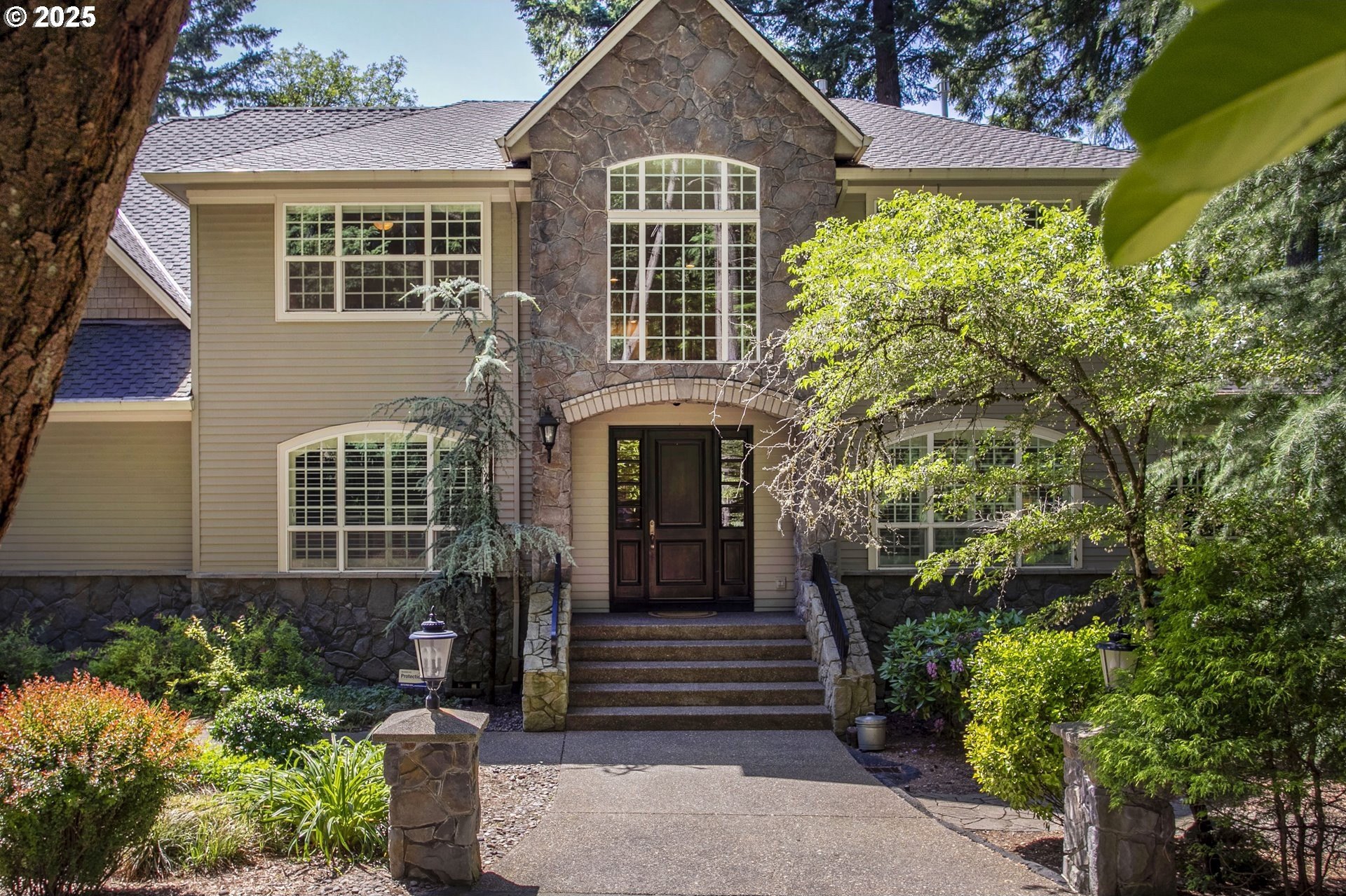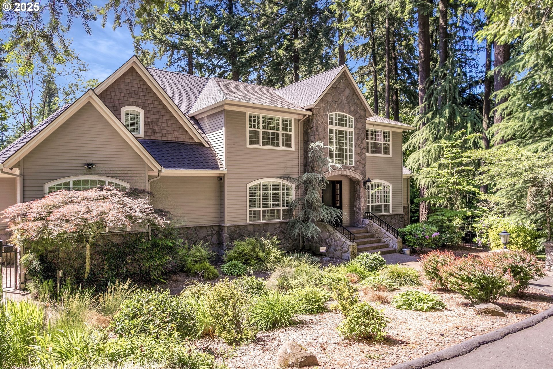 Welcome to a stunning traditional residence nestled in Lake Oswego's coveted Westridge neighborhood, complete with exclusive Lake Easement privileges. Designed for generational living, this exceptional residence offers approximately 5,531 sq. ft. of finished luxury plus 1,105 sq. ft. of unfinished lower-level space ideal for storage, hobbies, or a workshop; all accessible by a three-story elevator. Built in 2003 and thoughtfully crafted across three levels, the home blends timeless elegance with modern functionality. The heart of the home is the expansive, open concept kitchen featuring a granite island with eating bar, double ovens, instant hot water, a butler's pantry, and a wet bar, perfect for everyday living and effortless entertaining. The formal dining room opens to a covered patio with an outdoor fireplace, creating a seamless indoor/outdoor gathering space. The inviting family room showcases a gas fireplace and large windows that fill the space with natural light, while a separate formal living room and a main level office with custom built-ins provide flexible and refined living areas. Upstairs, the vaulted primary suite offers a serene retreat with a spa inspired ensuite bathroom featuring a soaking tub, dual vanities, a tiled shower, and an oversized walk-in closet. The second and third bedrooms each enjoy their own ensuite bathrooms and walk-in closets, offering privacy and comfort for family or guests. The lower level includes a dedicated home theater with reclined seating, along with abundant storage options. Set on a .62-acre, fully fenced lot, the property offers exceptional space and privacy. The 4-car garage, finished with classic black and white tile, built-in storage, workbench, and compressor, is a hobbyist's dream. A true standout, this home unites elegance, space, and modern convenience in an unbeatable Lake Oswego location.