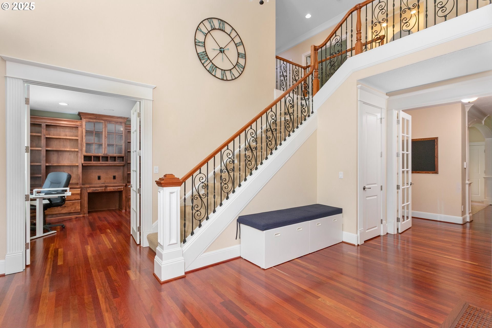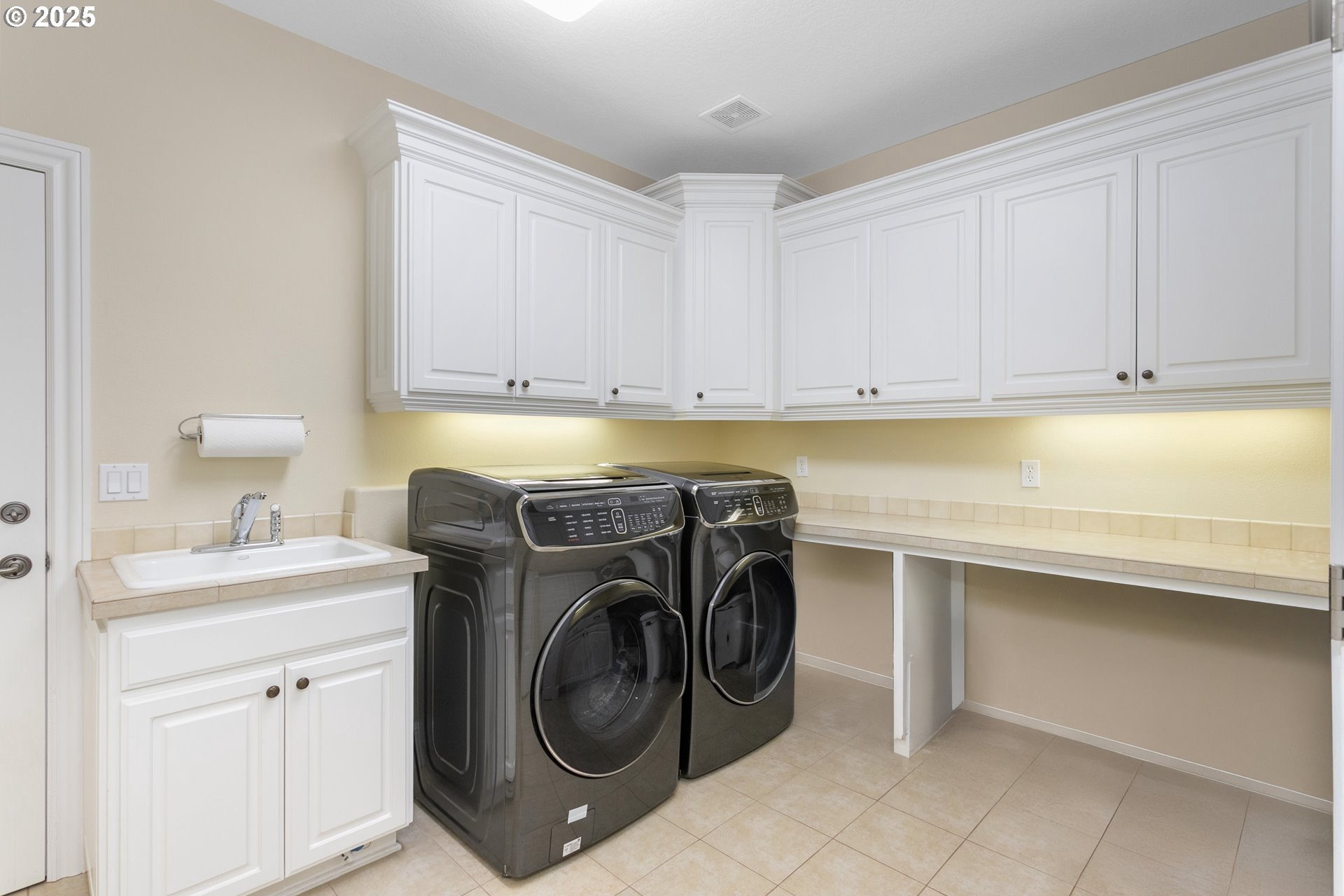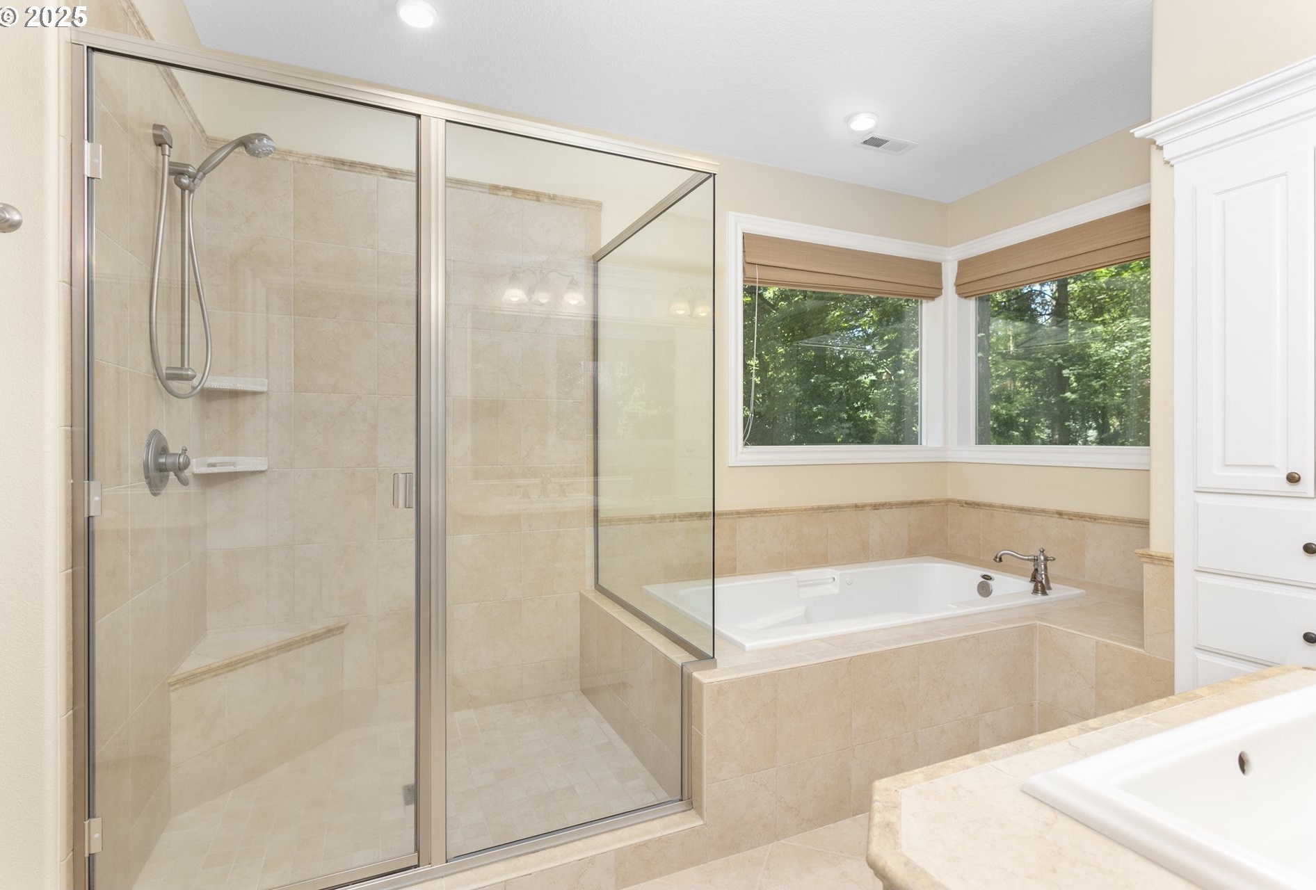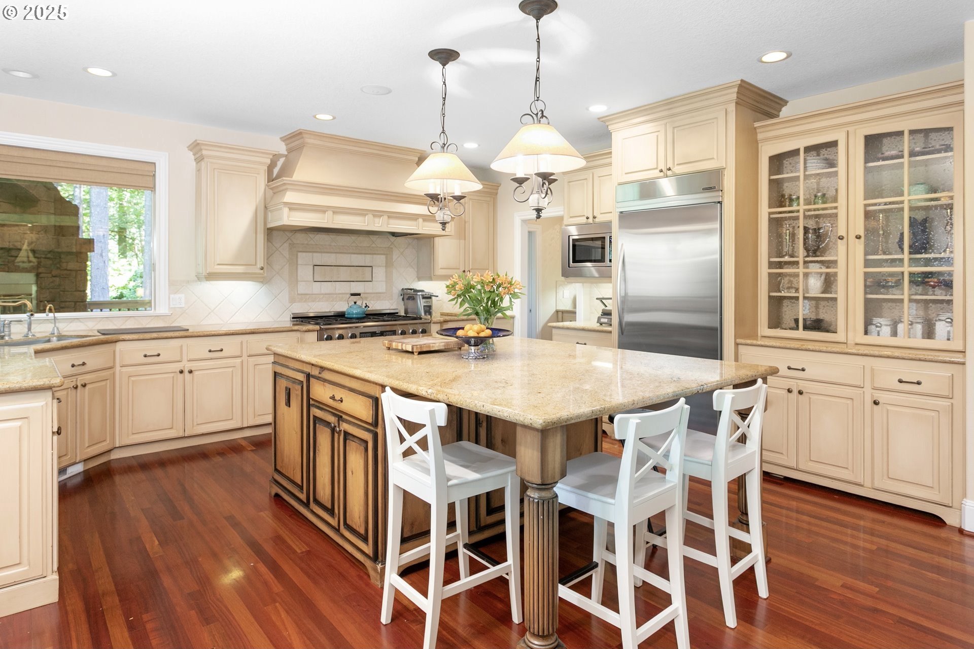 Welcome to a stunning traditional residence nestled in Lake Oswego's coveted Westridge neighborhood, complete with exclusive Lake Easement privileges. Designed for generational living, this exceptional residence offers approximately 5,531 sq. ft. of finished luxury plus 1,105 sq. ft. of unfinished lower-level space ideal for storage, hobbies, or a workshop; all accessible by a three-story elevator. Built in 2003 and thoughtfully crafted across three levels, the home blends timeless elegance with modern functionality. The heart of the home is the expansive, open concept kitchen featuring a granite island with eating bar, double ovens, instant hot water, a butler's pantry, and a wet bar, perfect for everyday living and effortless entertaining. The formal dining room opens to a covered patio with an outdoor fireplace, creating a seamless indoor/outdoor gathering space. The inviting family room showcases a gas fireplace and large windows that fill the space with natural light, while a separate formal living room and a main level office with custom built-ins provide flexible and refined living areas. Upstairs, the vaulted primary suite offers a serene retreat with a spa inspired ensuite bathroom featuring a soaking tub, dual vanities, a tiled shower, and an oversized walk-in closet. The second and third bedrooms each enjoy their own ensuite bathrooms and walk-in closets, offering privacy and comfort for family or guests. The lower level includes a dedicated home theater with reclined seating, along with abundant storage options. Set on a .62-acre, fully fenced lot, the property offers exceptional space and privacy. The 4-car garage, finished with classic black and white tile, built-in storage, workbench, and compressor, is a hobbyist's dream. A true standout, this home unites elegance, space, and modern convenience in an unbeatable Lake Oswego location.
