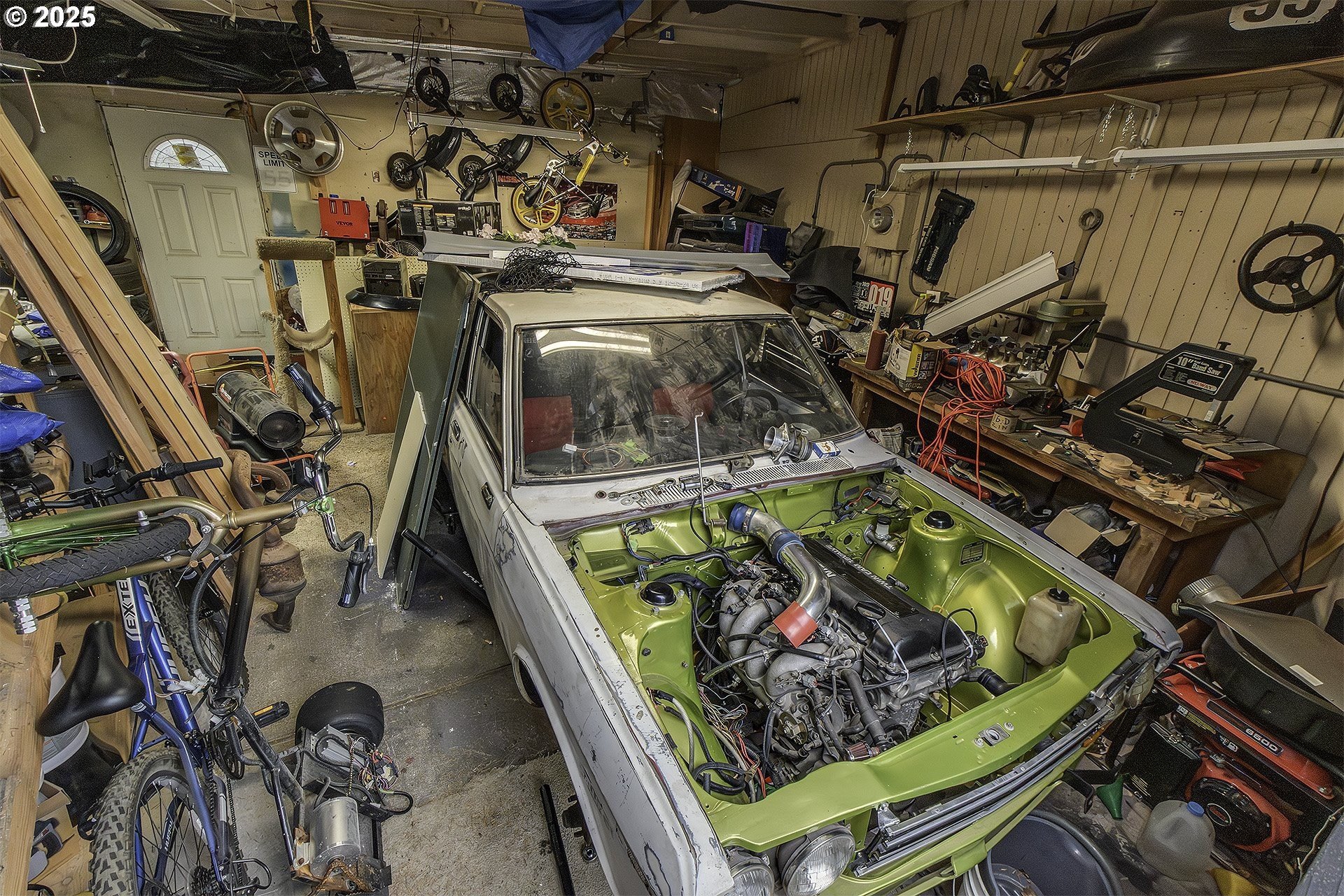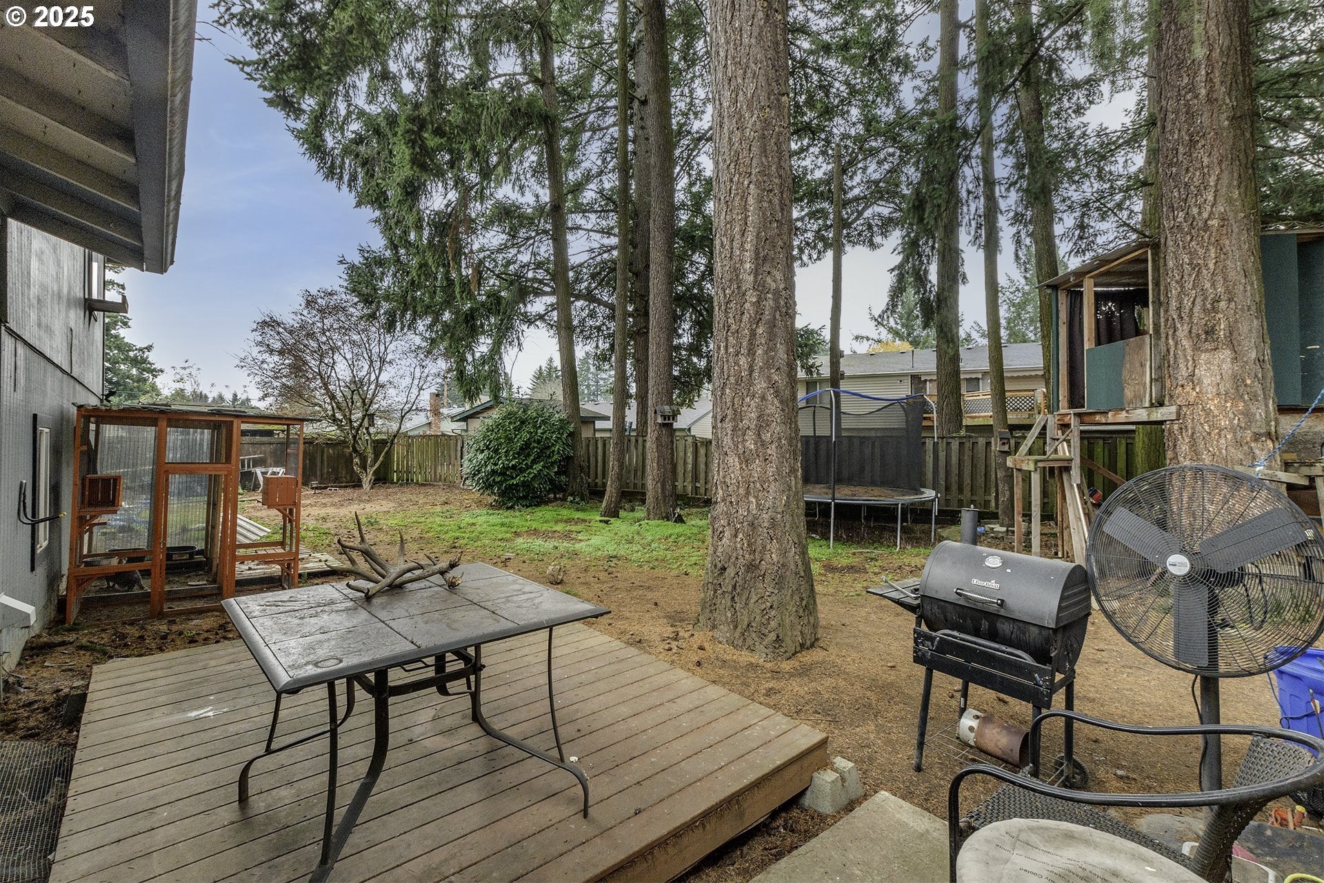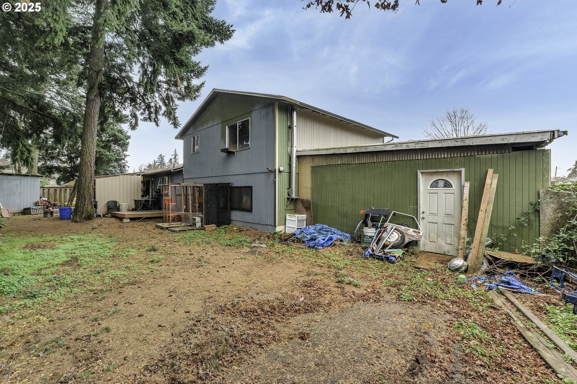 Tucked away on a peaceful cul de sac, this home offers a rare combination of space, privacy, and opportunity. The property features a large fenced backyard surrounded by mature old growth trees, a spacious 21x20 shop with convenient drive through access to the yard which is ideal for hobbies, storage, or projects. Inside, the home features a gas fireplace, ceiling fans, and a primary suite with a walk in closet. The garage has been partially converted by a previous owner into private guest quarters, offering flexibility for extended family, guests, or a home office. While the home needs some cosmetic updates, it presents an excellent opportunity for a buyer looking to add value and create their dream space. Located just minutes from shopping, dining, and parks, the home offers easy access to Glendoveer Golf Course, local trails, schools, and public transit, making it a great blend of convenience and quiet neighborhood living. Come see the potential this property offers and imagine the possibilities.