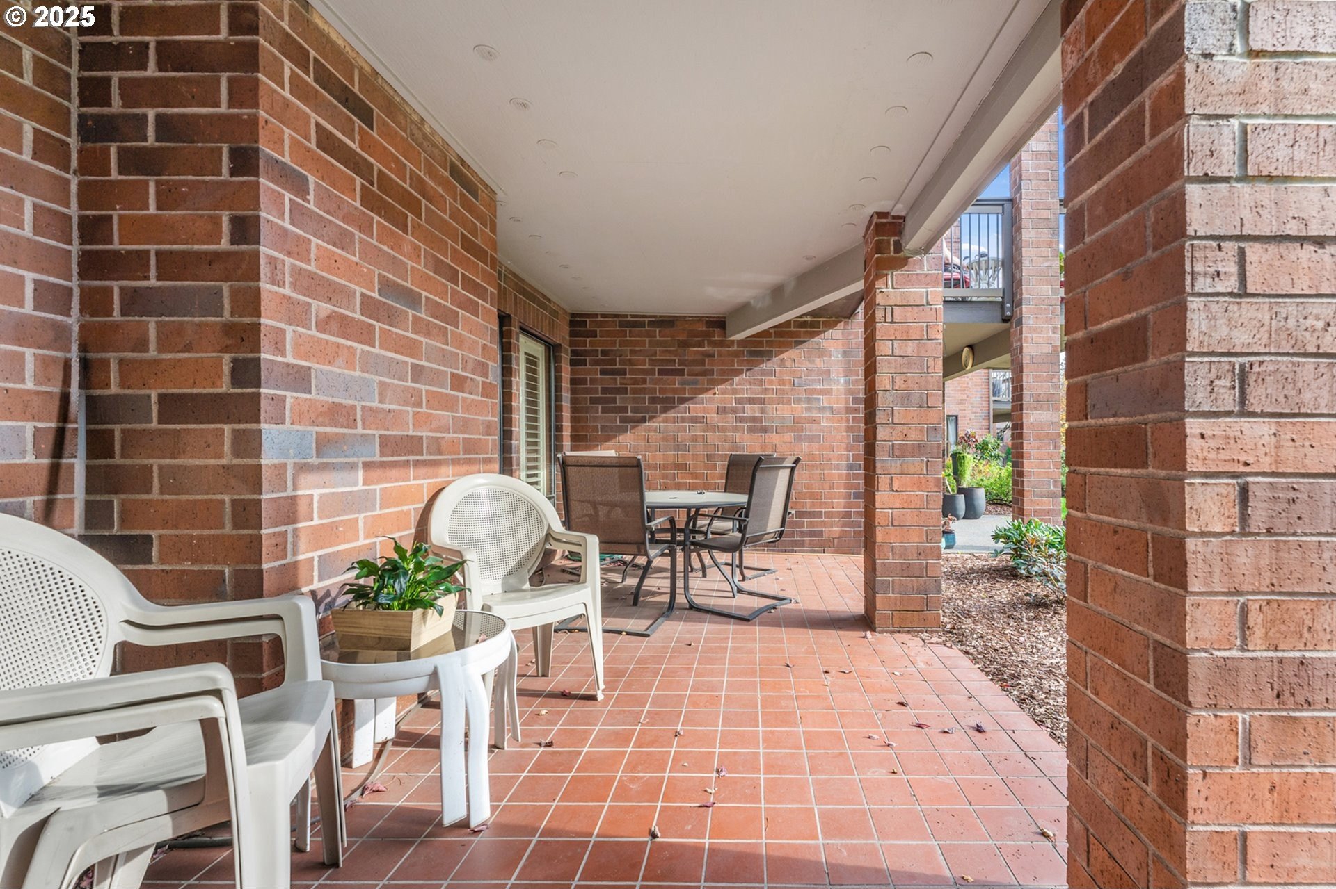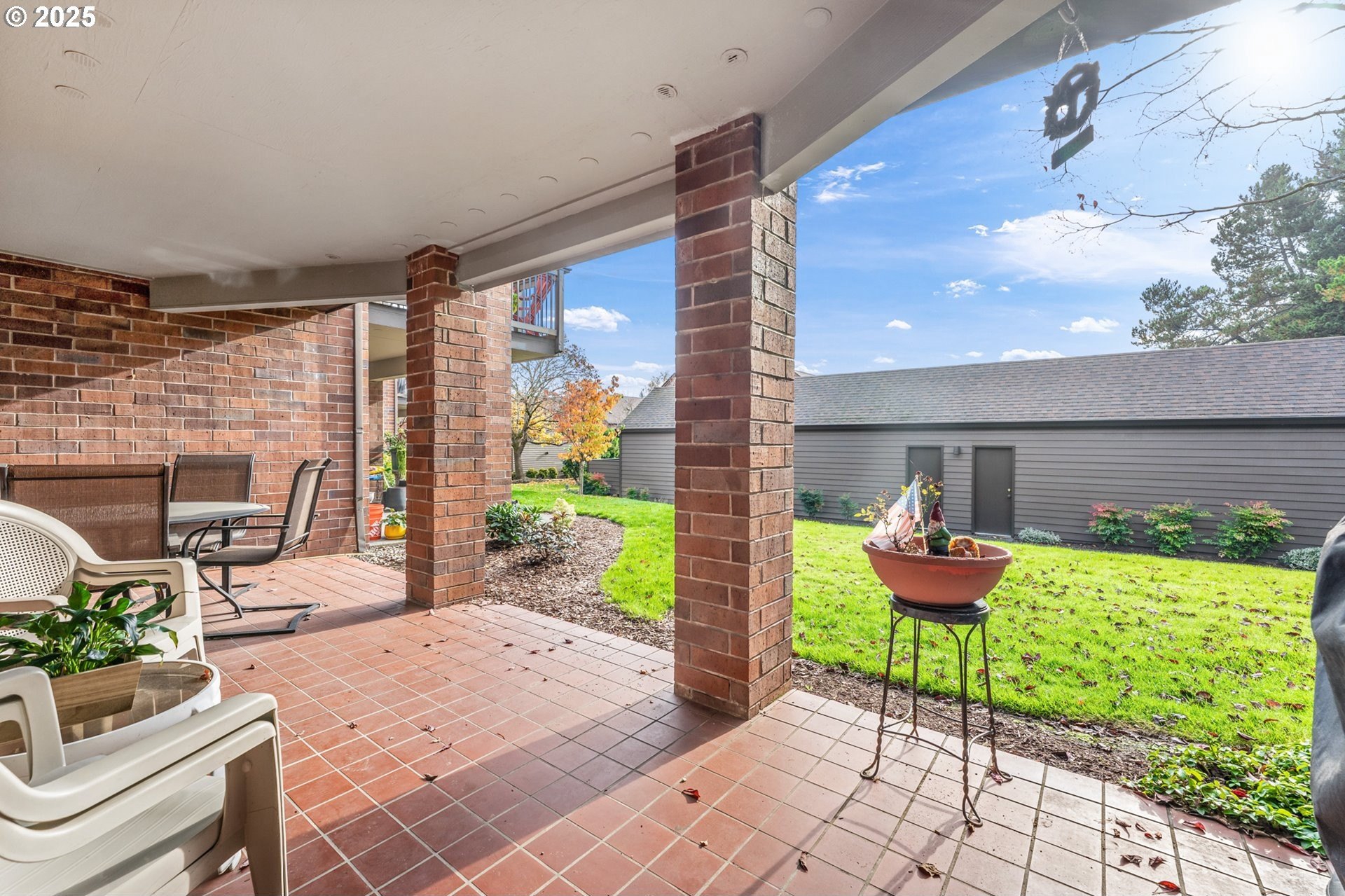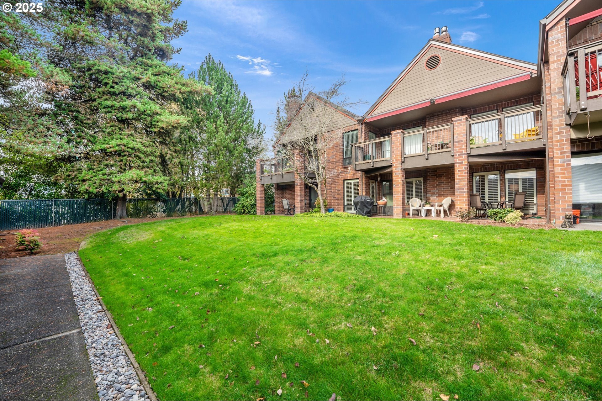 Tucked away at the top of the hill where the street ends, this peaceful and private retreat is one of the premier homes in The Fountains at Summerfield-Tigard's sought-after 55+ active community! Featuring the most extensive floor plan in the complex at 1,336 sq ft, this single-level two-bedroom, two-bath condo offers comfort, style, and convenience all in one inviting package. Step inside to a light-filled, open layout where the living and dining areas flow seamlessly, creating the perfect space for entertaining or relaxing. The gas fireplace insert adds warmth on cool Oregon mornings, while access to the 24' x 10' covered patio invites you to unwind outdoors year-round. The beautifully updated kitchen is a showstopper, featuring granite countertops, upgraded cabinetry, and a breakfast bar-ideal for casual dining or chatting with friends while you cook. The spacious primary suite offers double closets and a walk-in shower, while the second bedroom and bath provide excellent guest accommodations or flex space. You'll appreciate the in-unit washer and dryer, ample storage, and a pristine detached garage with room for both your car and a golf cart. A secure building entry and meticulously maintained grounds add peace of mind. Monthly HOA dues of $525 cover water, sewer, basic cable, garbage, landscaping, exterior maintenance, lighting, and even annual window cleaning-so you can focus on enjoying life! Experience vibrant 55+ living with access to Summerfield's incredible amenities: a 9-hole golf course (optional $750 annual pass), pickleball and tennis courts, fitness center, library, swimming pool, and a bustling clubhouse filled with social activities. Come home to your own private hideaway at The Fountains at Summerfield-where every day feels like a getaway!