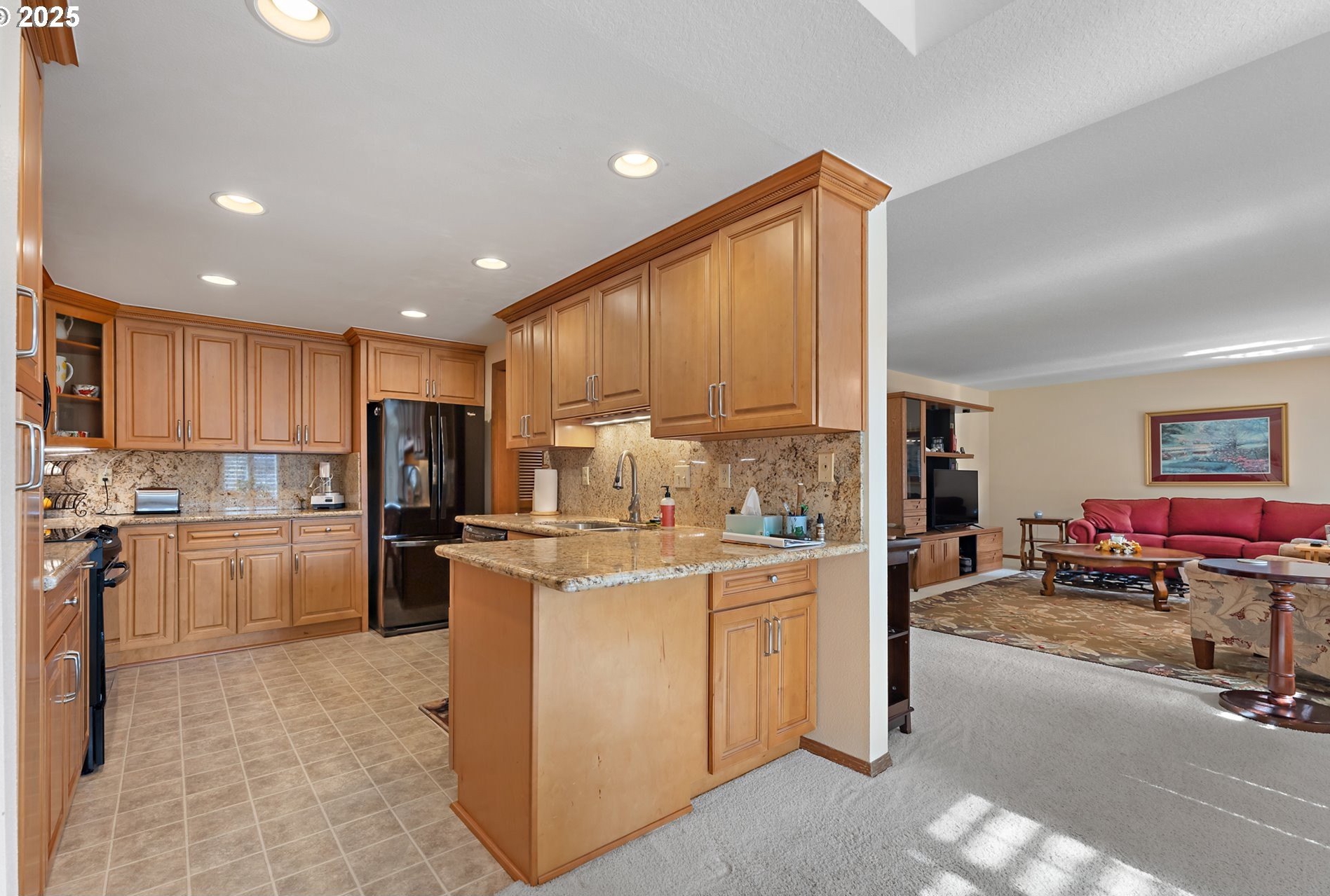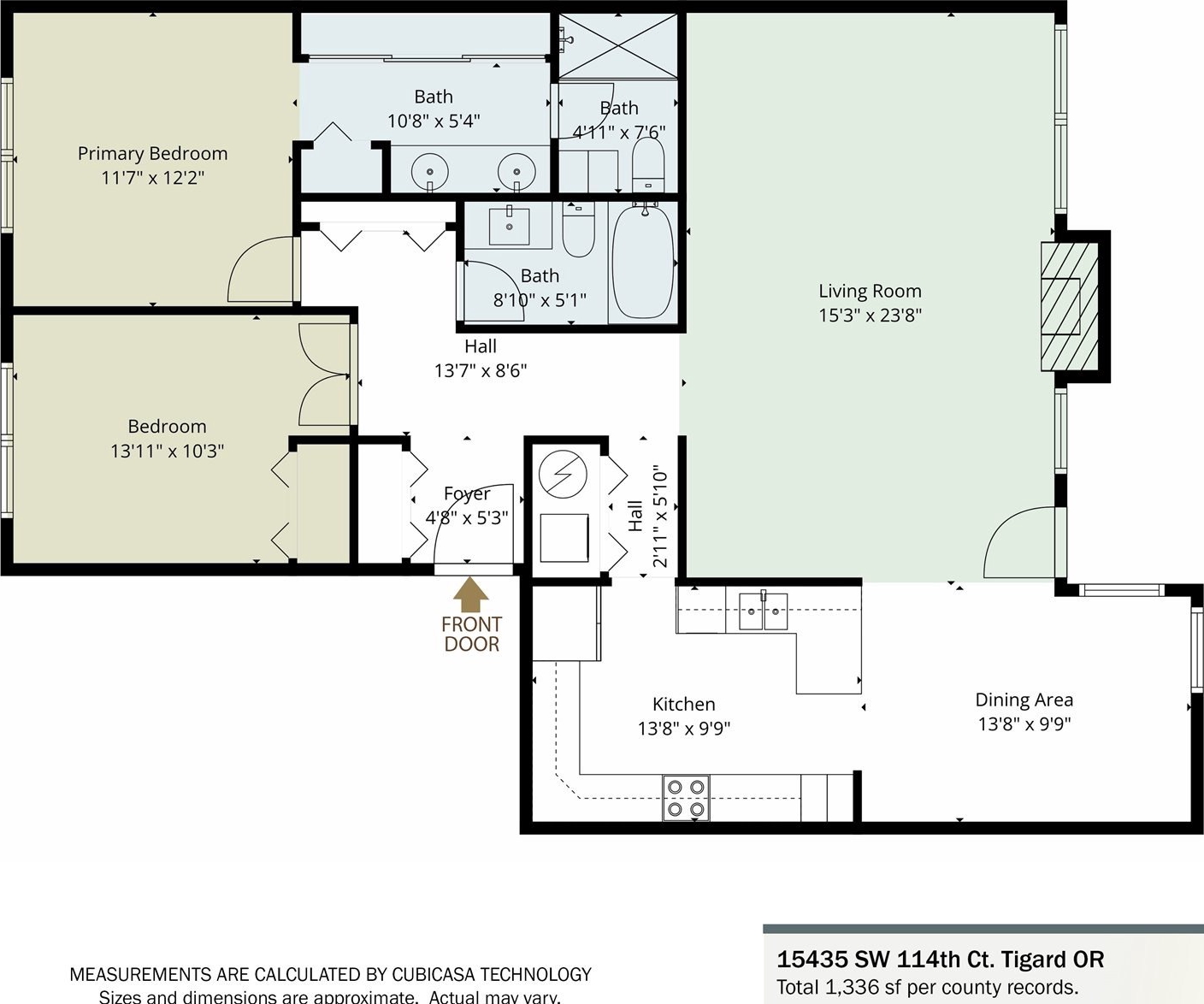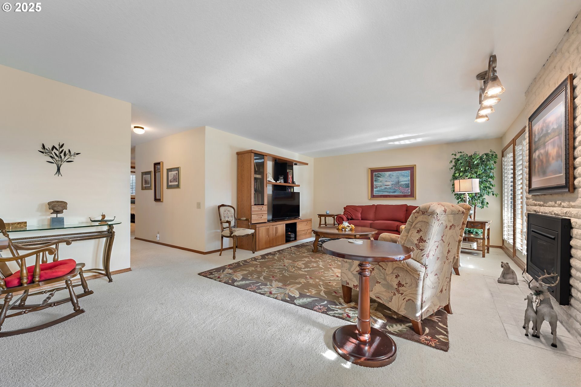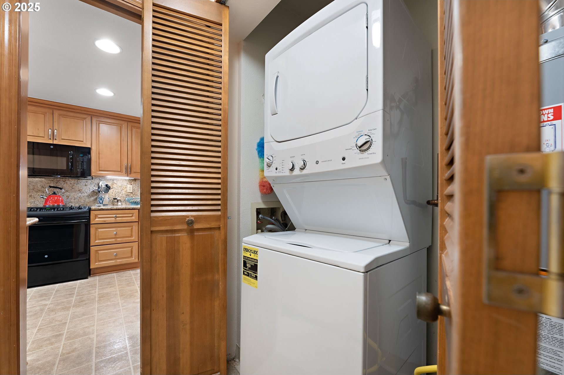Tucked away at the top of the hill where the street ends, this peaceful and private retreat is one of the premier homes in The Fountains at Summerfield-Tigard's sought-after 55+ active community! Featuring the most extensive floor plan in the complex at 1,336 sq ft, this single-level two-bedroom, two-bath condo offers comfort, style, and convenience all in one inviting package. Step inside to a light-filled, open layout where the living and dining areas flow seamlessly, creating the perfect space for entertaining or relaxing. The gas fireplace insert adds warmth on cool Oregon mornings, while access to the 24' x 10' covered patio invites you to unwind outdoors year-round. The beautifully updated kitchen is a showstopper, featuring granite countertops, upgraded cabinetry, and a breakfast bar-ideal for casual dining or chatting with friends while you cook. The spacious primary suite offers double closets and a walk-in shower, while the second bedroom and bath provide excellent guest accommodations or flex space. You'll appreciate the in-unit washer and dryer, ample storage, and a pristine detached garage with room for both your car and a golf cart. A secure building entry and meticulously maintained grounds add peace of mind. Monthly HOA dues of $525 cover water, sewer, basic cable, garbage, landscaping, exterior maintenance, lighting, and even annual window cleaning-so you can focus on enjoying life! Experience vibrant 55+ living with access to Summerfield's incredible amenities: a 9-hole golf course (optional $750 annual pass), pickleball and tennis courts, fitness center, library, swimming pool, and a bustling clubhouse filled with social activities. Come home to your own private hideaway at The Fountains at Summerfield-where every day feels like a getaway!