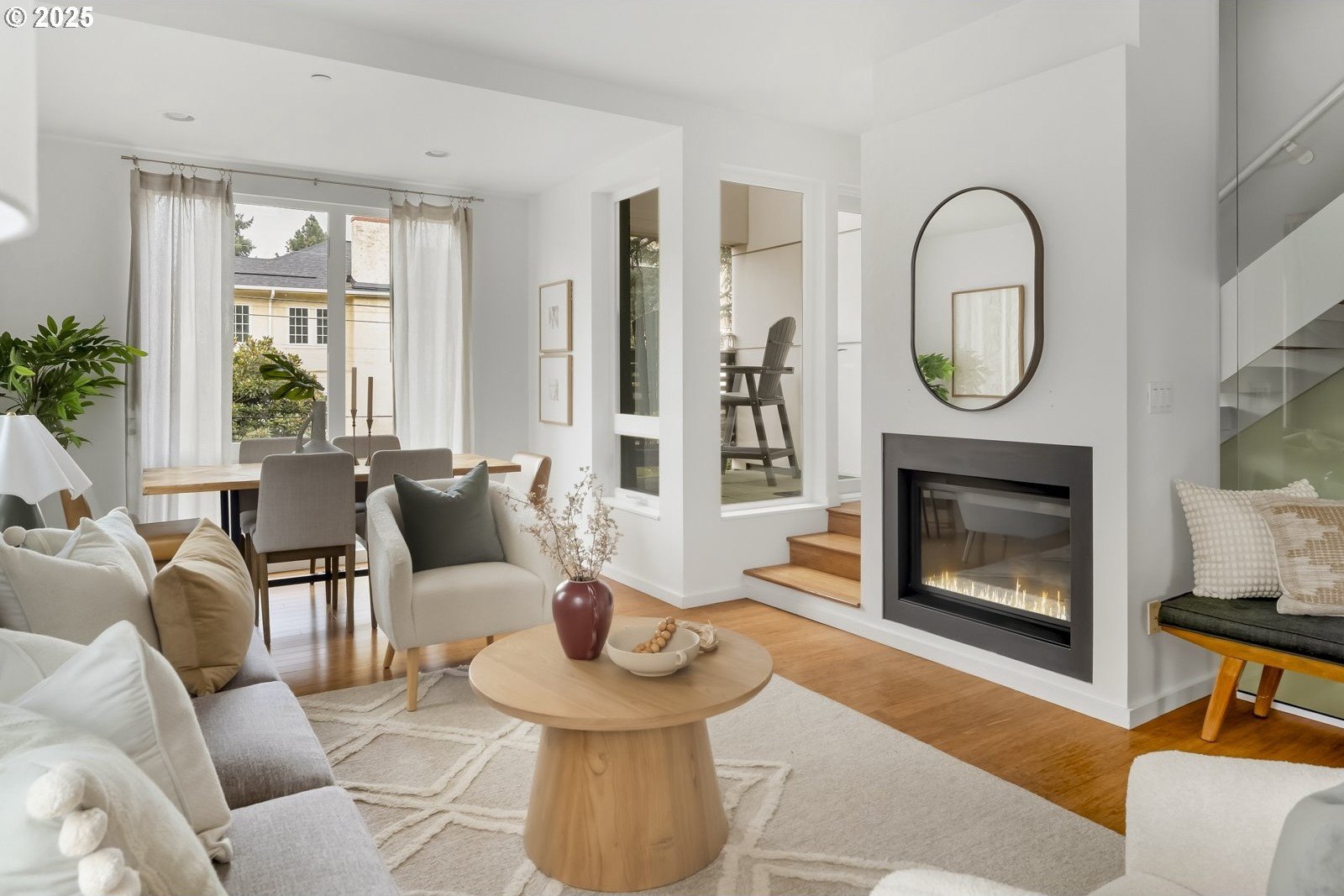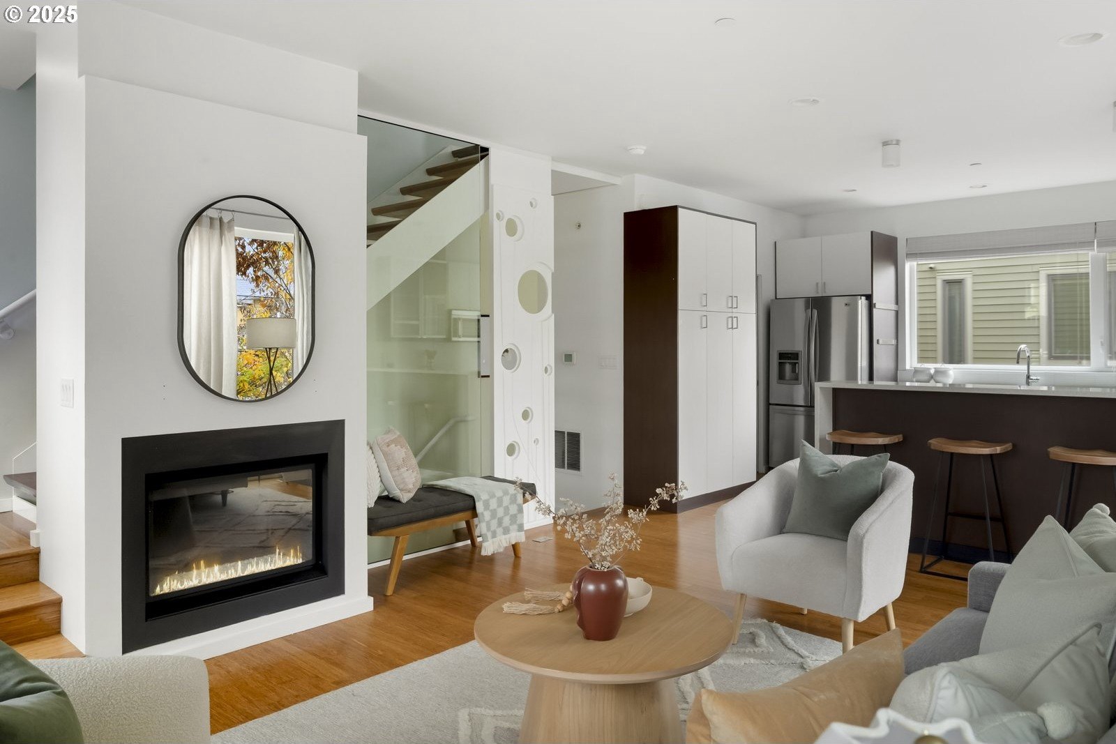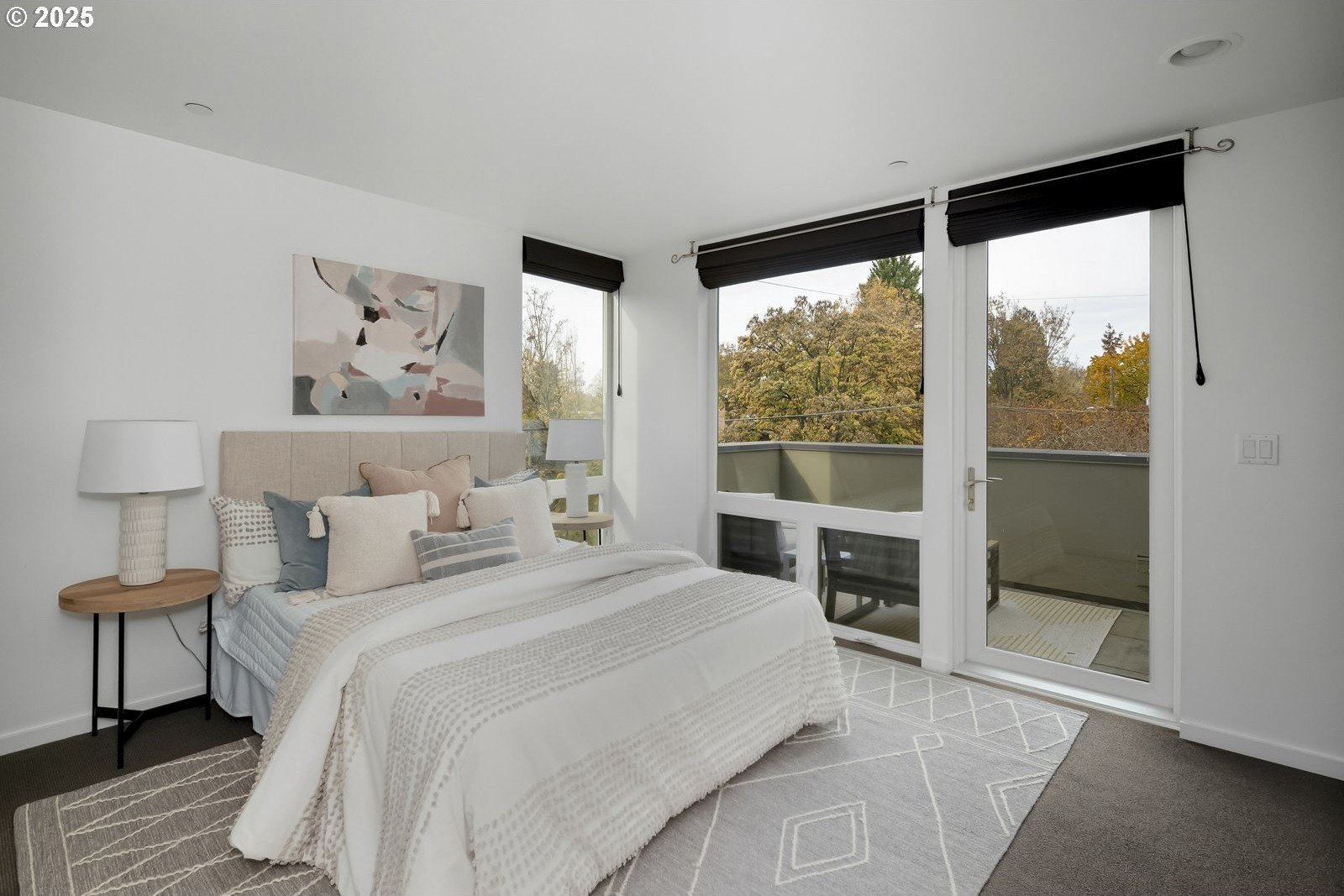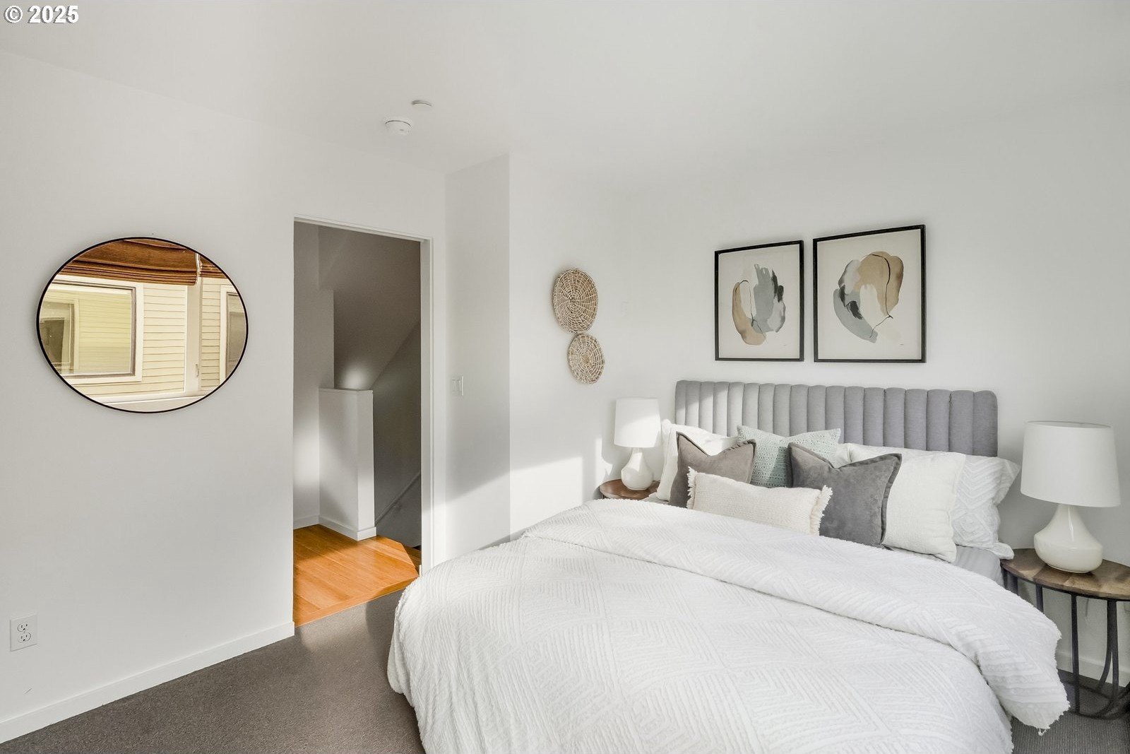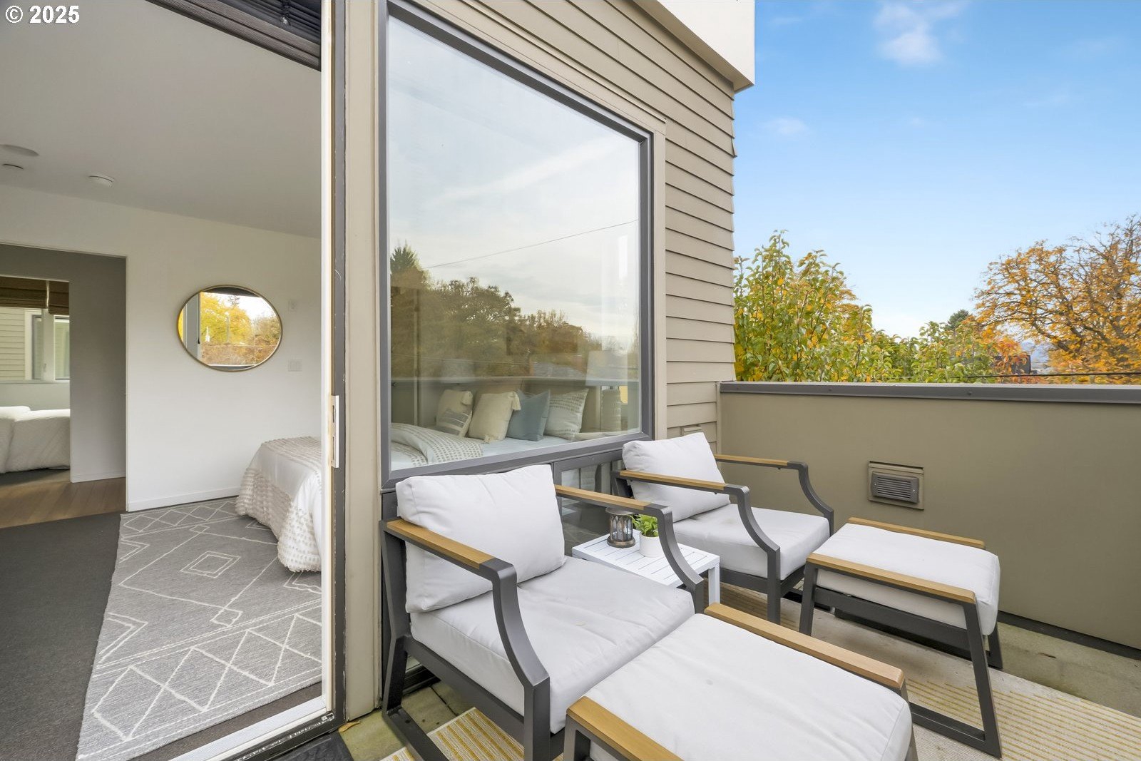 Located in the heart of historic Irvington, this rare end-unit townhouse-style condo offers modern comfort within one of Portland's most beloved neighborhoods. It truly lives like a detached home with its own front door, attached garage, and thoughtful upgrades throughout. The cook's kitchen is a true centerpiece-Neil Kelly cabinetry, deep drawers, quartz counters, pantry, and a generous eating bar that flows into an open living and dining area. Floor-to-ceiling windows on three sides bathe the home in natural light, creating a warm, inviting feel in every season. A gas fireplace and balcony with gas/water hookups make indoor-outdoor living effortless. Upstairs, two luminous primary suites feature wool carpet, Neil Kelly closets, and spa-inspired baths-one with an oversized soaking tub, the other with double shower heads. The larger suite offers a private balcony that catches the morning light and feels made for coffee, calm and a little container garden magic. Flexible laundry options include hookups upstairs or in the oversized garage with abundant storage. A Home Energy Score of 10 reflects the home's efficiency and low-impact design. And then-there's the rooftop. Nearly 500 sq ft of open sky, framed by views of the city, the West Hills, and winter views of Mt. Hood. An established garden with mature plantings and a drip system creates a sanctuary that feels both elevated and grounded, like a modern treehouse above the neighborhood. Sunsets here are unforgettable-golden light settling over the rooftops, the soft shimmer of "komorebi" as sunlight filters through nearby cherry trees. It's a place for long summer dinners, peaceful mornings, and quiet, starlit evenings. Set within a warm, connected community and surrounded by parks, grocery stores, cafes, restaurants, and transit-plus Grant School District-this home offers a rare blend of privacy, light, beauty, and effortless city living. [Home Energy Score = 9. HES Report