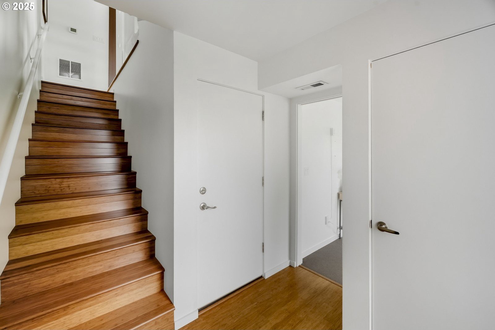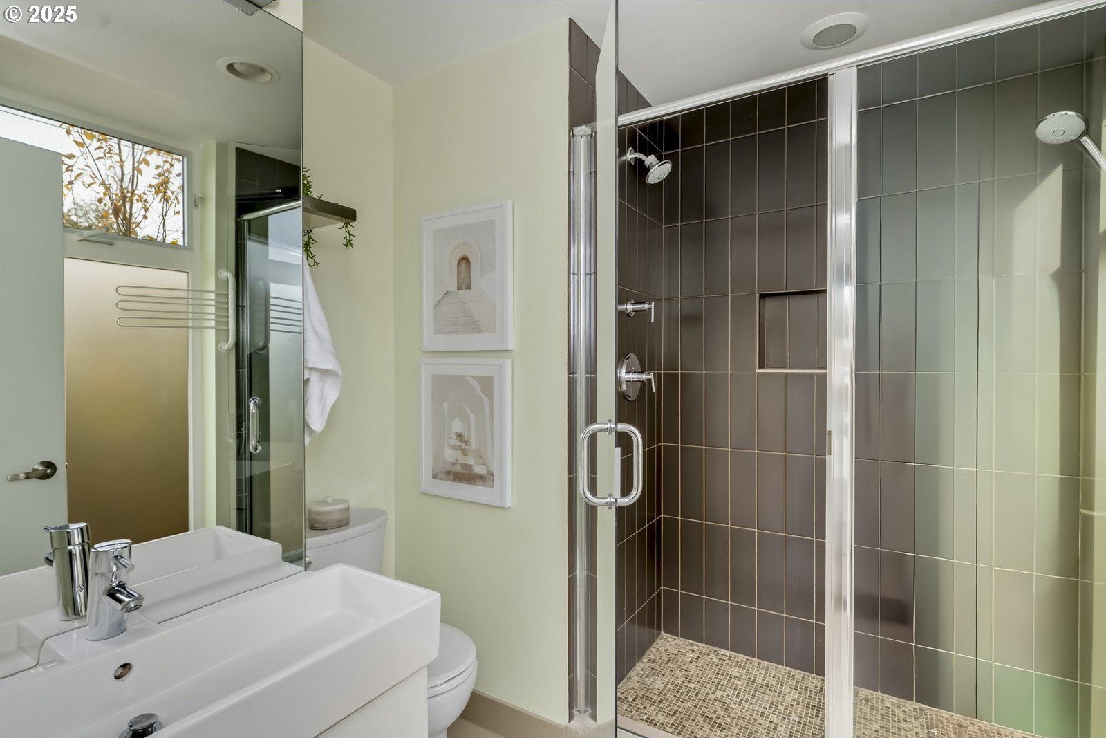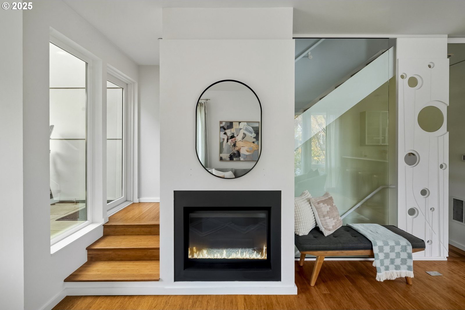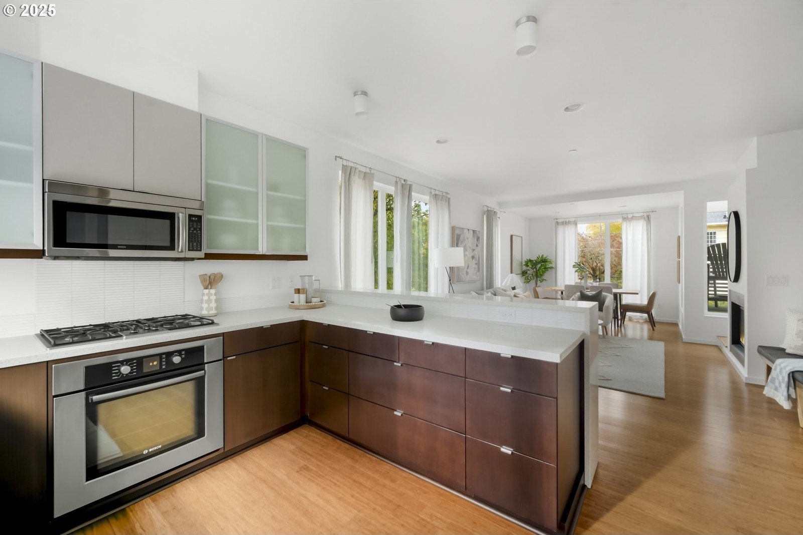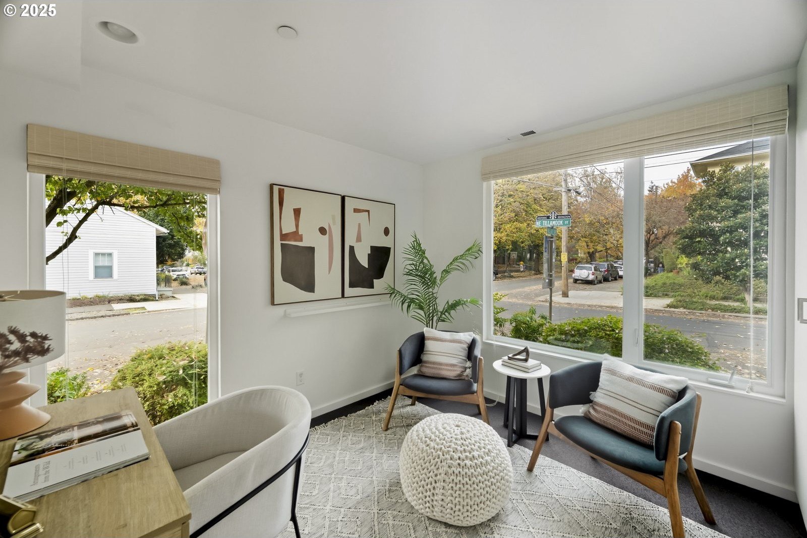 Located in the heart of historic Irvington, this rare end-unit townhouse-style condo offers modern comfort within one of Portland's most beloved neighborhoods. It truly lives like a detached home with its own front door, attached garage, and thoughtful upgrades throughout. The cook's kitchen is a true centerpiece-Neil Kelly cabinetry, deep drawers, quartz counters, pantry, and a generous eating bar that flows into an open living and dining area. Floor-to-ceiling windows on three sides bathe the home in natural light, creating a warm, inviting feel in every season. A gas fireplace and balcony with gas/water hookups make indoor-outdoor living effortless. Upstairs, two luminous primary suites feature wool carpet, Neil Kelly closets, and spa-inspired baths-one with an oversized soaking tub, the other with double shower heads. The larger suite offers a private balcony that catches the morning light and feels made for coffee, calm and a little container garden magic. Flexible laundry options include hookups upstairs or in the oversized garage with abundant storage. A Home Energy Score of 10 reflects the home's efficiency and low-impact design. And then-there's the rooftop. Nearly 500 sq ft of open sky, framed by views of the city, the West Hills, and winter views of Mt. Hood. An established garden with mature plantings and a drip system creates a sanctuary that feels both elevated and grounded, like a modern treehouse above the neighborhood. Sunsets here are unforgettable-golden light settling over the rooftops, the soft shimmer of "komorebi" as sunlight filters through nearby cherry trees. It's a place for long summer dinners, peaceful mornings, and quiet, starlit evenings. Set within a warm, connected community and surrounded by parks, grocery stores, cafes, restaurants, and transit-plus Grant School District-this home offers a rare blend of privacy, light, beauty, and effortless city living. [Home Energy Score = 9. HES Report