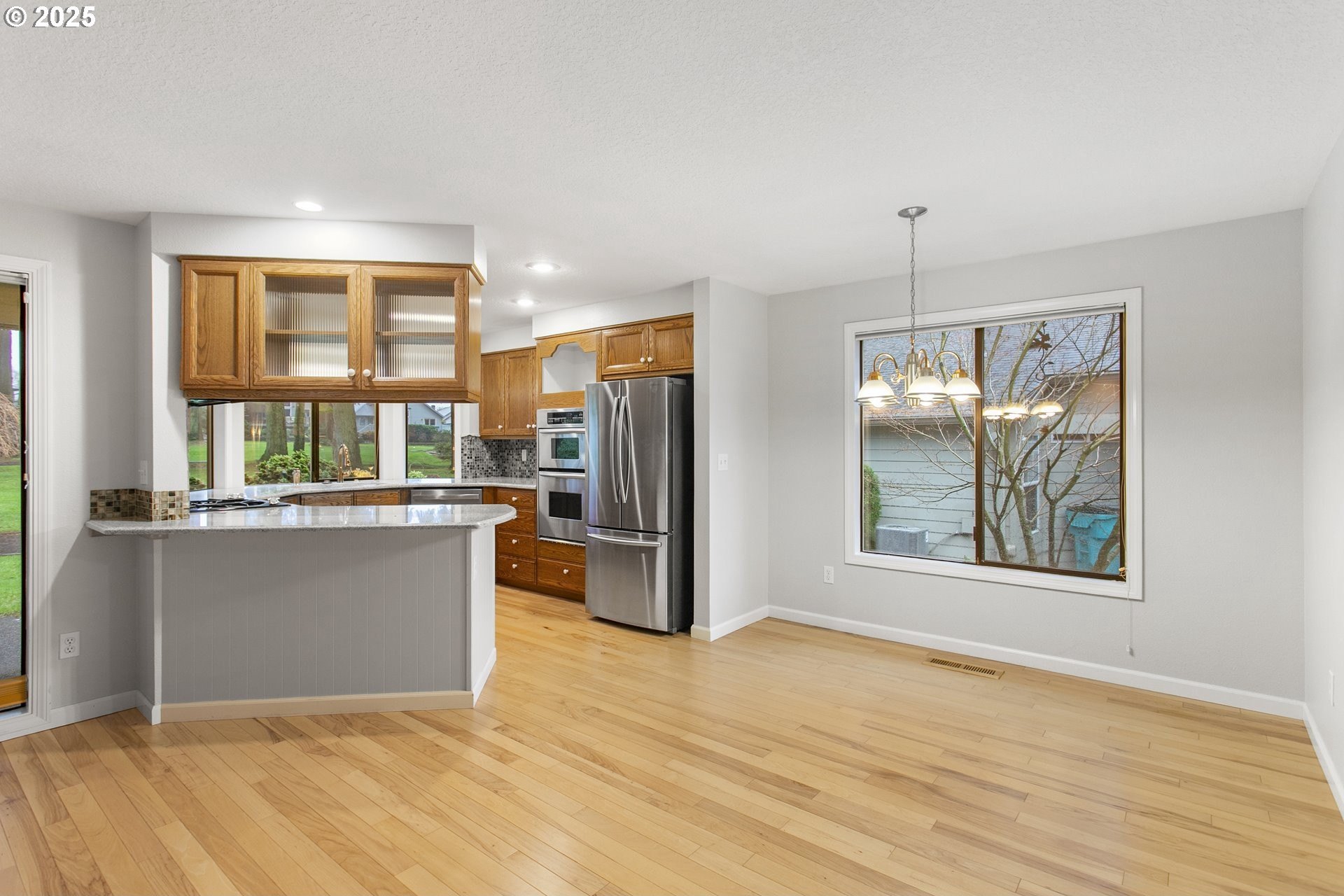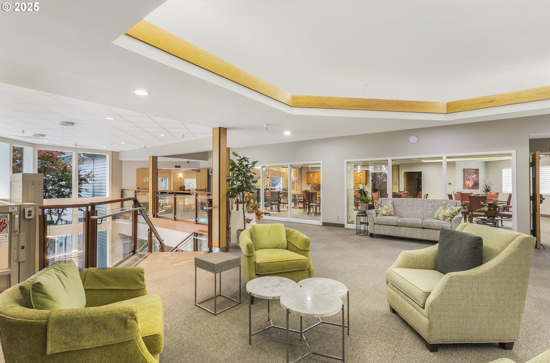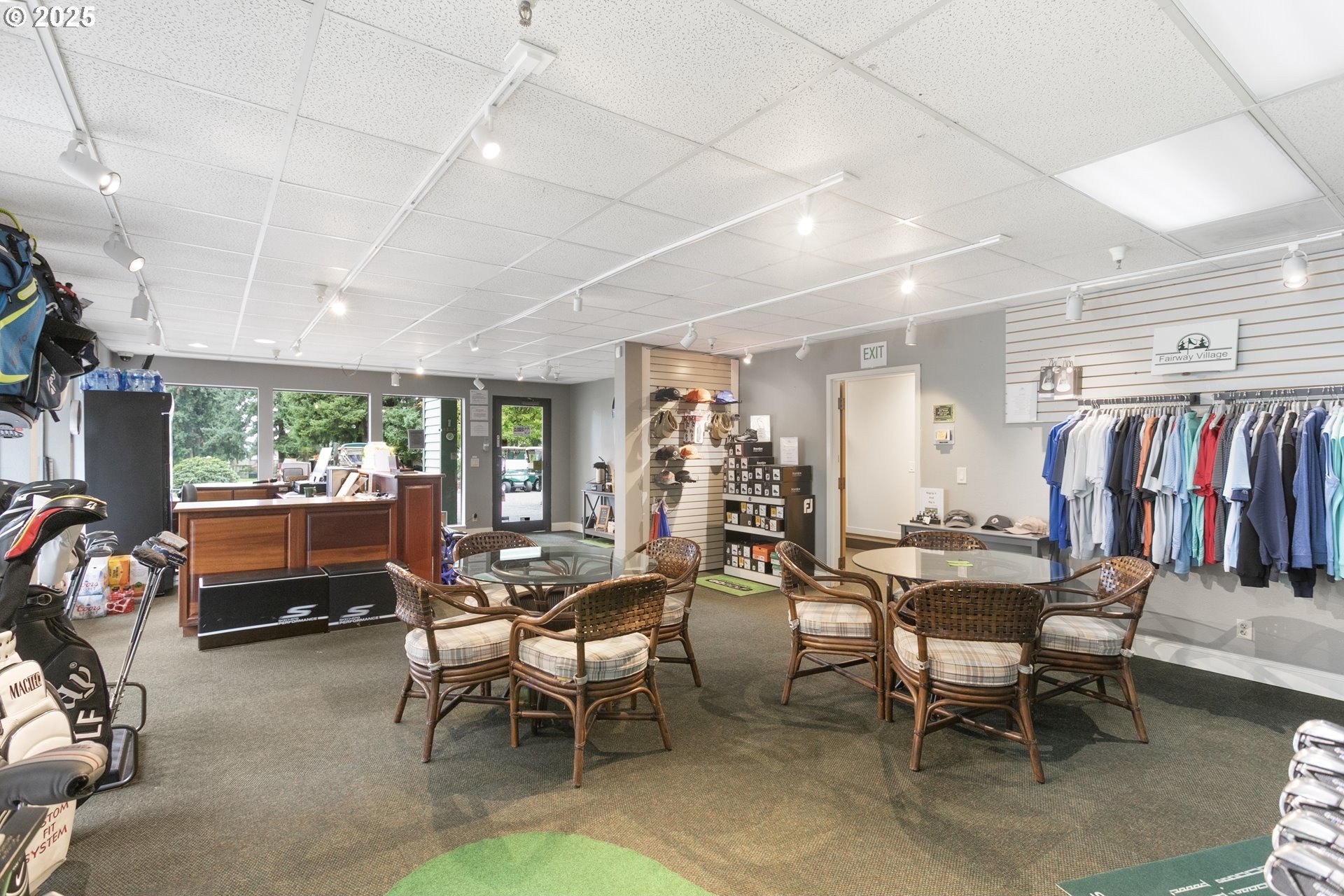 The Englewood residence is a distinguished one-level home situated within a 55+ planned community that offers a comprehensive array of amenities. The property features a notably long driveway and a spacious backyard that overlooks the manicured fairway, providing unobstructed views without concerns of golf balls or netting. Located between the 6th and 7th fairways, with the golf path on the opposite side, the home offers a prime location for golf enthusiasts. Interior features include crown molding and tall ceilings in the entryway, complemented by glass doors that lead into a relaxing den. The living room is spacious and vaulted, accentuated by a warm gas fireplace and numerous windows that allow for ample natural light. The open-concept design extends to a large dining area, creating an inviting space for gatherings. The kitchen, nook, and family room are designed to overlook the fairway, with tall floor-to-ceiling windows adjacent to the patio door that enhance the indoor-outdoor connection. The covered patio and walkway provide easy access to the fairway and around the home, ideal for outdoor entertaining. The backyard is notably large, a rare feature on the course. The primary bathroom is spacious and well-appointed, featuring a step-in shower, soaking tub, dual sinks, and a separate water closet. The home boasts beautiful hardwood floors, white woodwork, and a kitchen equipped with solid countertops, stainless steel appliances, a gas cooktop, a wall oven, a microwave, and a full-height tile backsplash. A bay window overlooking the fairway adds to the aesthetic.The community caters to residents aged 55 and older and includes a variety of amenities such as a clubhouse, scheduled activities, exercise facilities, sauna, swimming pool, billiards, ping-pong, arts and crafts studio, ballroom, library, and meeting or event rooms. This combination of luxurious home features and comprehensive community amenities makes this Englewood an exceptional choice in the Village!