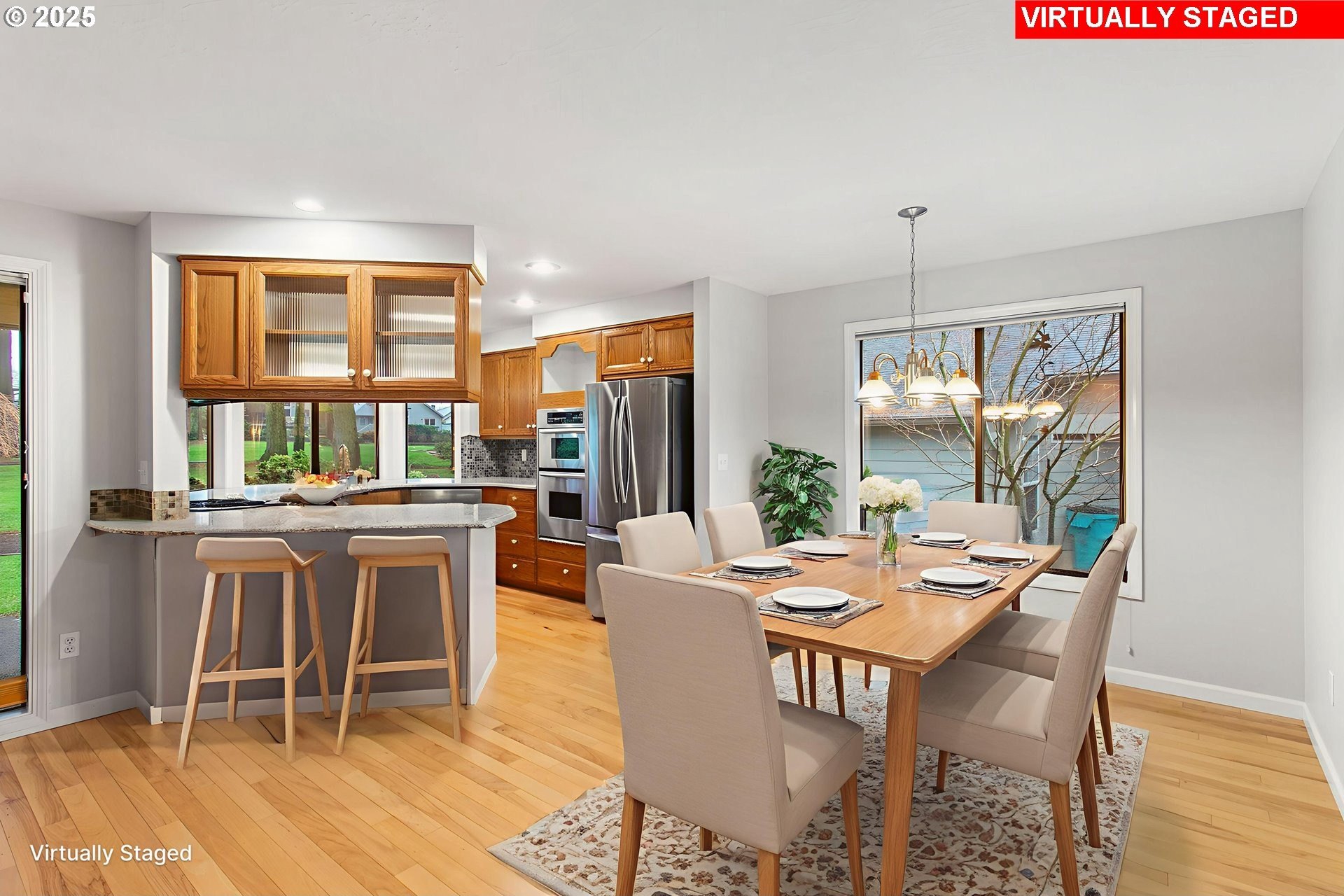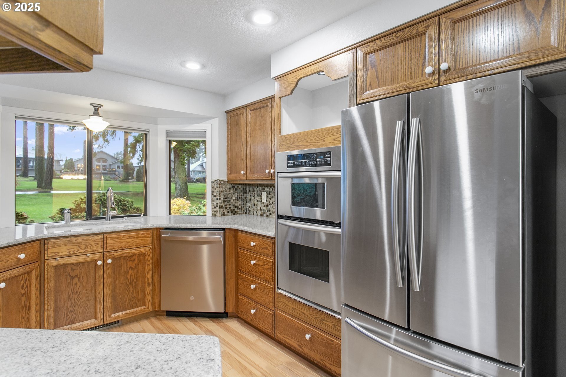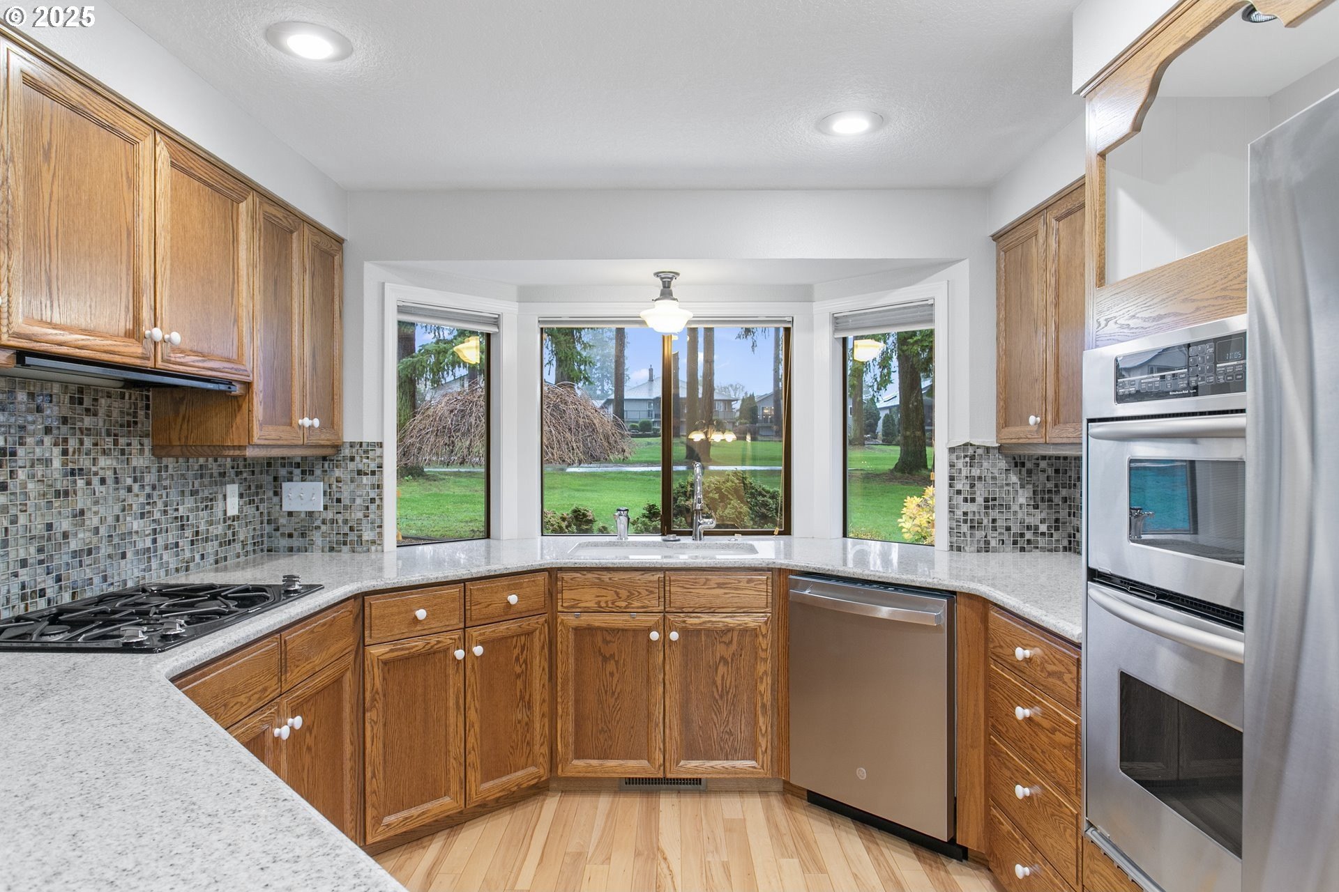 The Englewood residence is a distinguished one-level home situated within a 55+ planned community that offers a comprehensive array of amenities. The property features a notably long driveway and a spacious backyard that overlooks the manicured fairway, providing unobstructed views without concerns of golf balls or netting. Located between the 6th and 7th fairways, with the golf path on the opposite side, the home offers a prime location for golf enthusiasts. Interior features include crown molding and tall ceilings in the entryway, complemented by glass doors that lead into a relaxing den. The living room is spacious and vaulted, accentuated by a warm gas fireplace and numerous windows that allow for ample natural light. The open-concept design extends to a large dining area, creating an inviting space for gatherings. The kitchen, nook, and family room are designed to overlook the fairway, with tall floor-to-ceiling windows adjacent to the patio door that enhance the indoor-outdoor connection. The covered patio and walkway provide easy access to the fairway and around the home, ideal for outdoor entertaining. The backyard is notably large, a rare feature on the course. The primary bathroom is spacious and well-appointed, featuring a step-in shower, soaking tub, dual sinks, and a separate water closet. The home boasts beautiful hardwood floors, white woodwork, and a kitchen equipped with solid countertops, stainless steel appliances, a gas cooktop, a wall oven, a microwave, and a full-height tile backsplash. A bay window overlooking the fairway adds to the aesthetic.The community caters to residents aged 55 and older and includes a variety of amenities such as a clubhouse, scheduled activities, exercise facilities, sauna, swimming pool, billiards, ping-pong, arts and crafts studio, ballroom, library, and meeting or event rooms. This combination of luxurious home features and comprehensive community amenities makes this Englewood an exceptional choice in the Village!