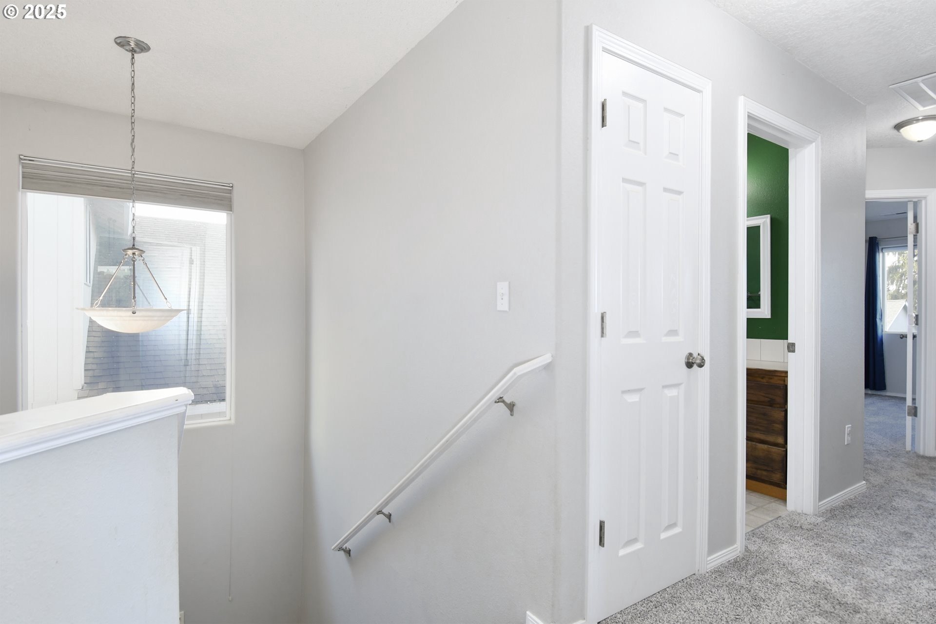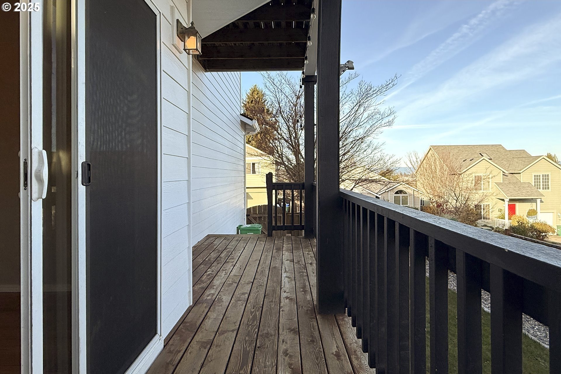 This beautiful 2-Story home includes 3 bedrooms & 2.5 bathrooms all on 1777 sqft with a view of Mt St Helens from the Primary Suite balcony. Main Floor has a Living room with new carpet, a gas fireplace and newly added loft for extra space. Kitchen has a disposal, plenty of storage, stainless steel appliances with a free-standing fridge, range and built- in dishwasher Also on the main floor is a dining area with slider to deck, laundry room with sink and a half bath. Upstairs there are 3 bedrooms. First is the primary with walk-in closet and ensuite bathroom with full shower and jetted tub. The other bedrooms are standard size with closets and there is a 2nd full bathroom. Home has a fenced yard with a small deck and attached oversized 2 car garage all on a corner lot.