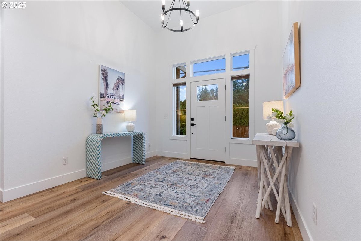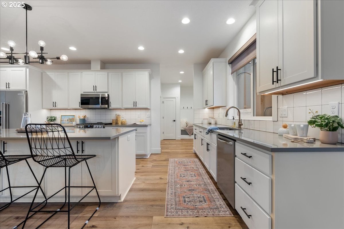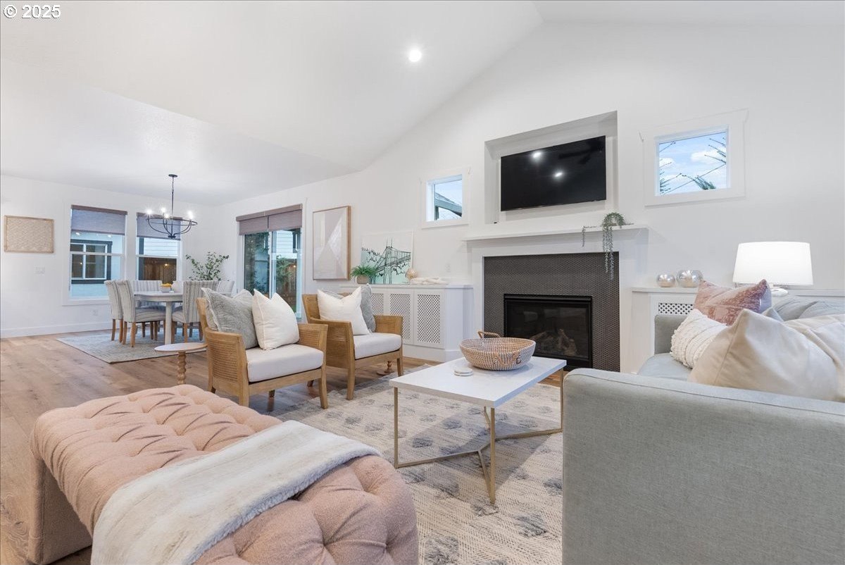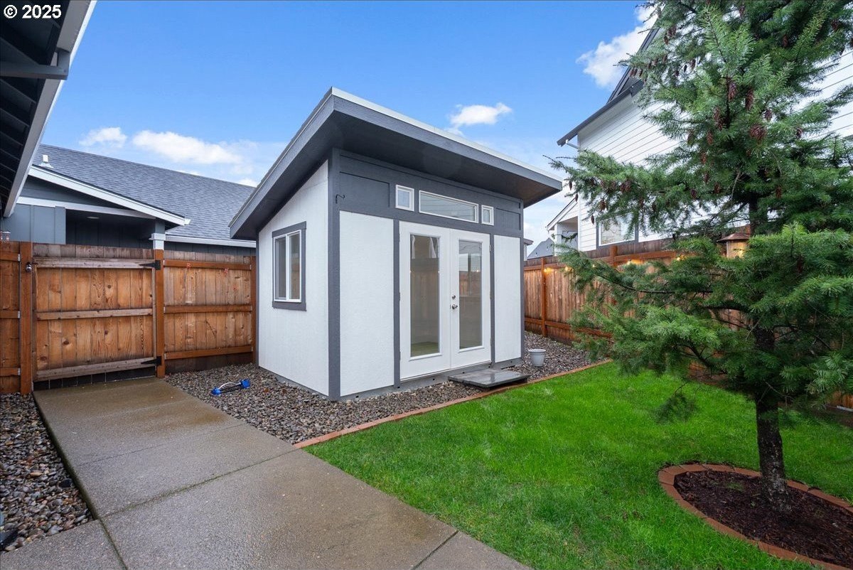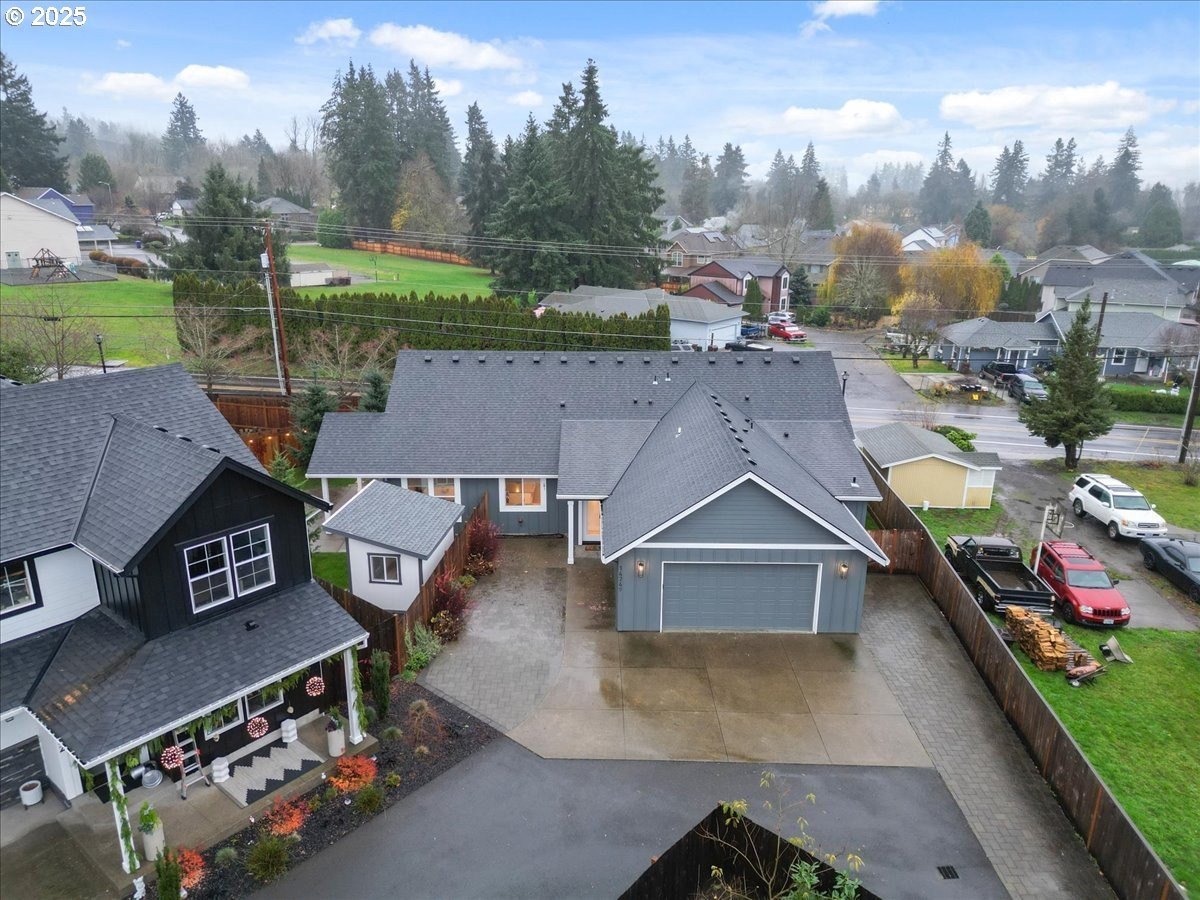 Discover refined living in this exceptional newer built home featuring high-end finishes and beautifully curated indoor-outdoor spaces. This 3 bed, 2 bath home offers thoughtfully designed living, blending modern elegance with everyday comfort.Step inside to an open-concept layout showcasing upgraded flooring, designer lighting, and a gourmet kitchen equipped with stainless steel appliances, sleek quartz countertops, custom cabinetry, and an oversized island perfect for entertaining. The living area is anchored by a contemporary built-in entertainment setup, complete with a mounted TV for a polished, move-in-ready feel.The primary suite features a spa-like bath with luxurious surfaces, a walk-in shower, and generous storage. Every space reflects attention to detail and elevated craftsmanship.Outside, the property continues to impress with a fully finished shed-ideal as an office, studio, or hobby space-along with a tranquil water feature that adds a relaxing ambiance to the backyard. The outdoor area is designed for both downtime and gatherings, providing a peaceful retreat just minutes from the conveniences of Oregon City.A rare blend of luxury, functionality, and modern style-this home is truly turnkey and ready to enjoy.