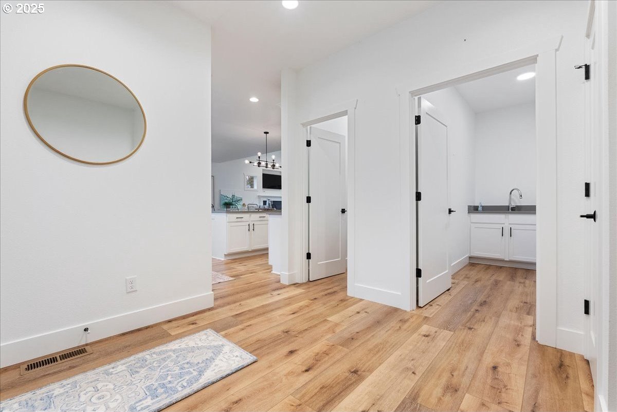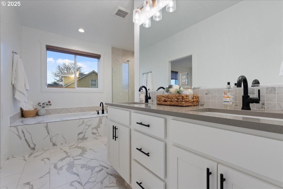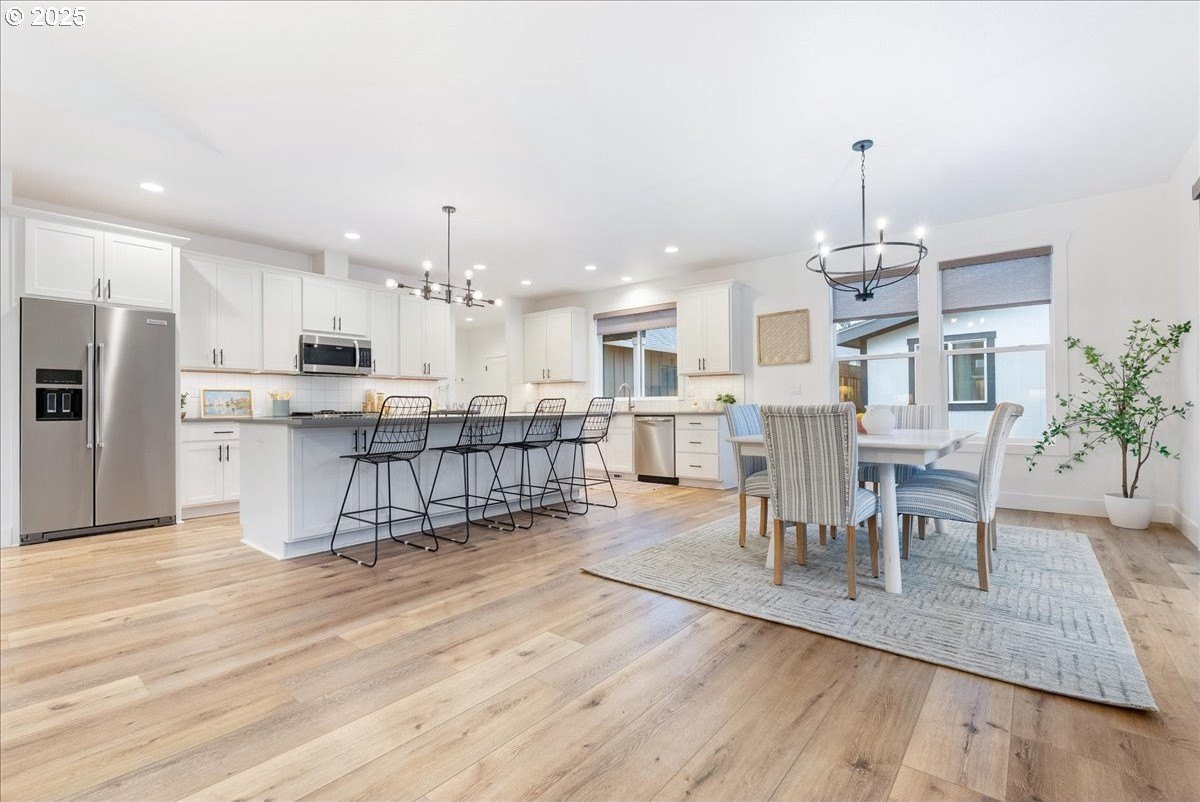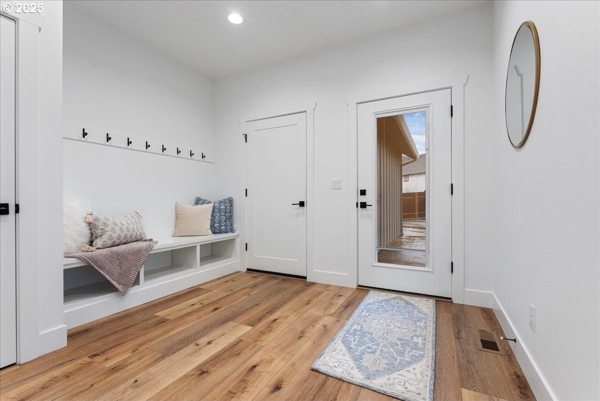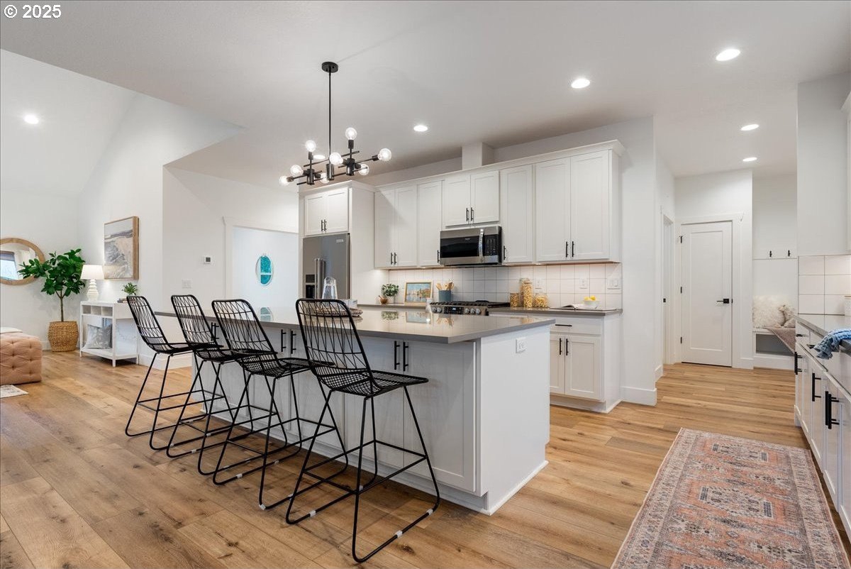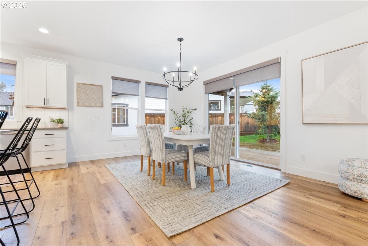 Discover refined living in this exceptional newer built home featuring high-end finishes and beautifully curated indoor-outdoor spaces. This 3 bed, 2 bath home offers thoughtfully designed living, blending modern elegance with everyday comfort.Step inside to an open-concept layout showcasing upgraded flooring, designer lighting, and a gourmet kitchen equipped with stainless steel appliances, sleek quartz countertops, custom cabinetry, and an oversized island perfect for entertaining. The living area is anchored by a contemporary built-in entertainment setup, complete with a mounted TV for a polished, move-in-ready feel.The primary suite features a spa-like bath with luxurious surfaces, a walk-in shower, and generous storage. Every space reflects attention to detail and elevated craftsmanship.Outside, the property continues to impress with a fully finished shed-ideal as an office, studio, or hobby space-along with a tranquil water feature that adds a relaxing ambiance to the backyard. The outdoor area is designed for both downtime and gatherings, providing a peaceful retreat just minutes from the conveniences of Oregon City.A rare blend of luxury, functionality, and modern style-this home is truly turnkey and ready to enjoy.