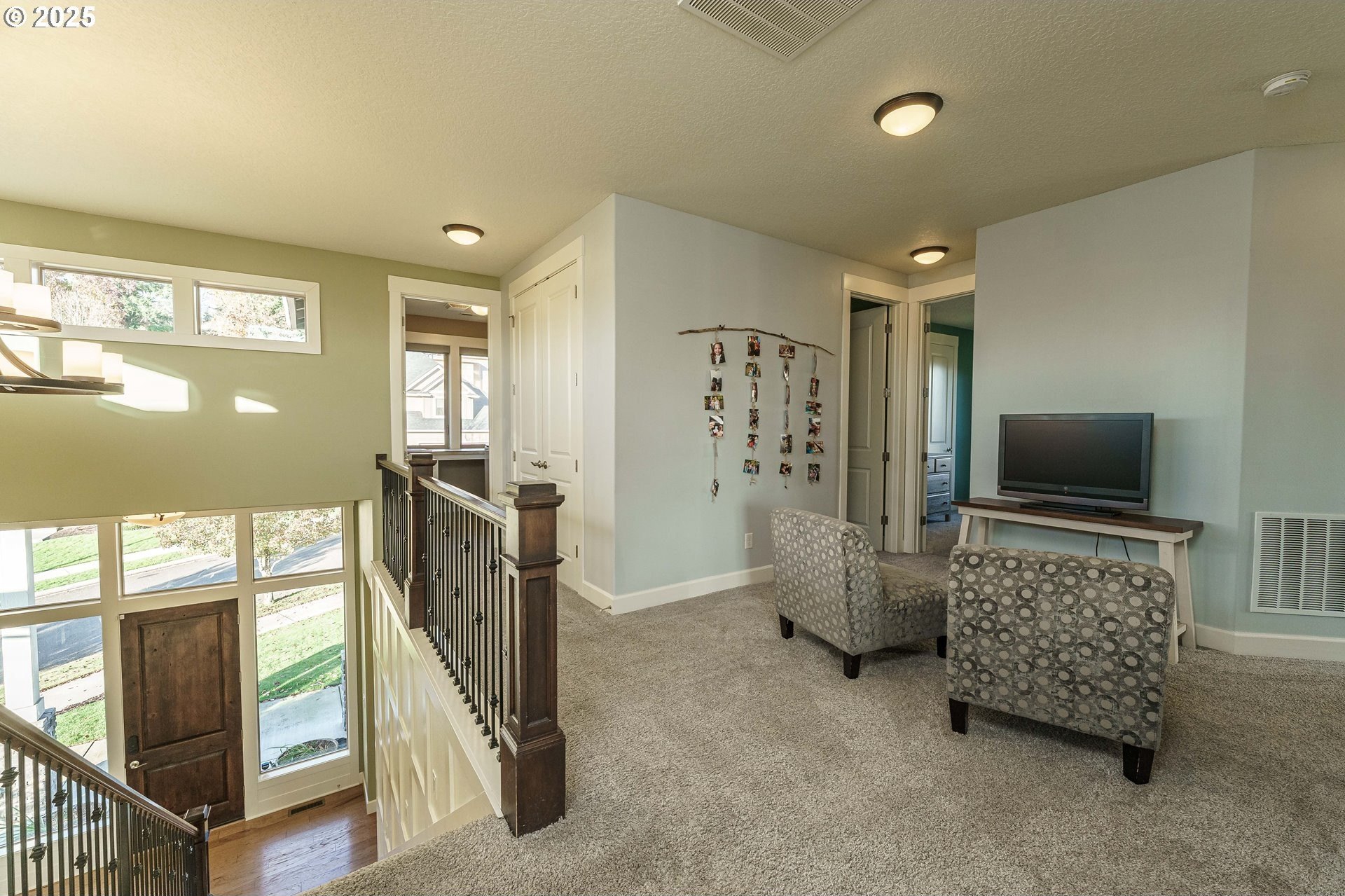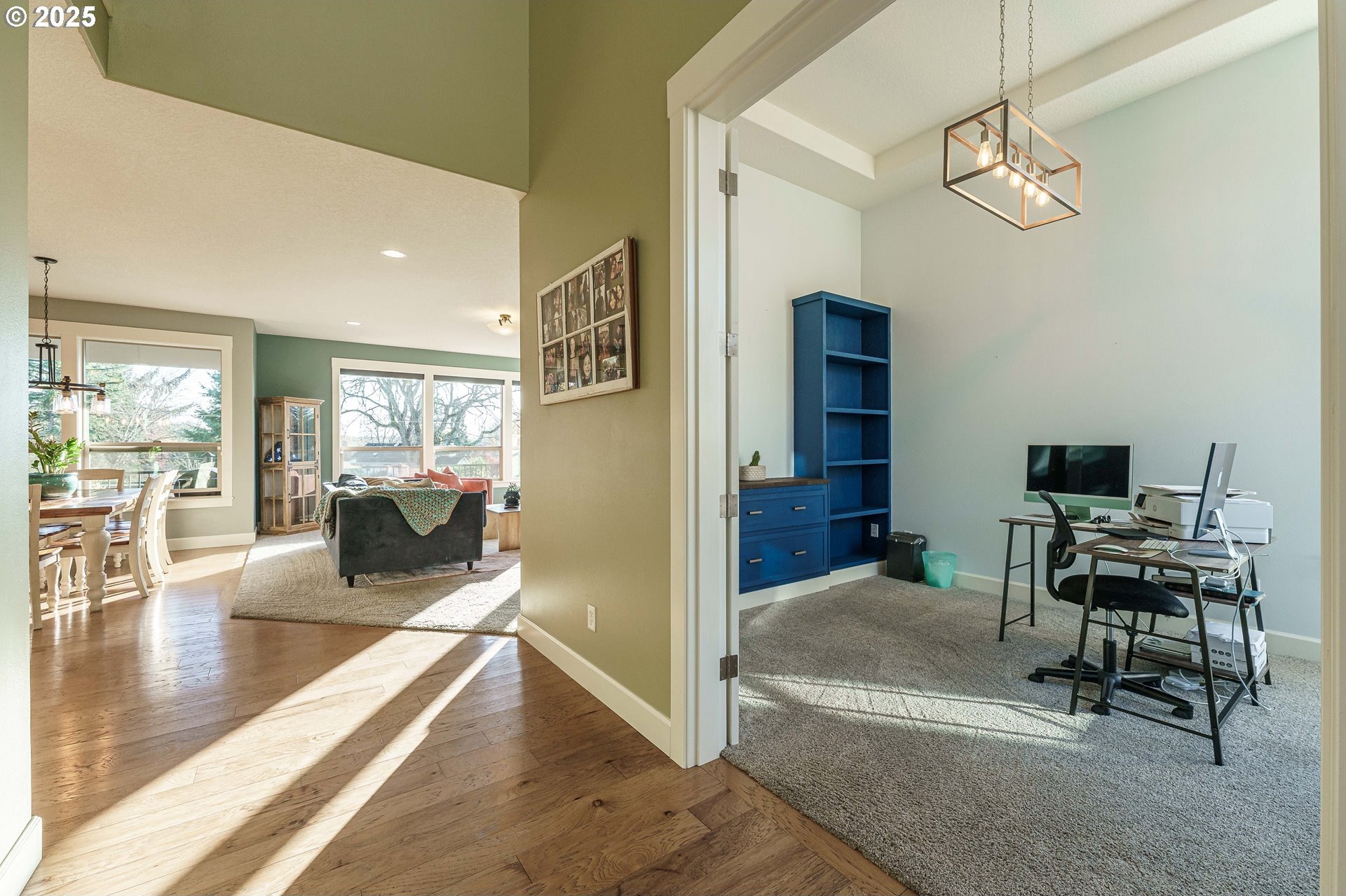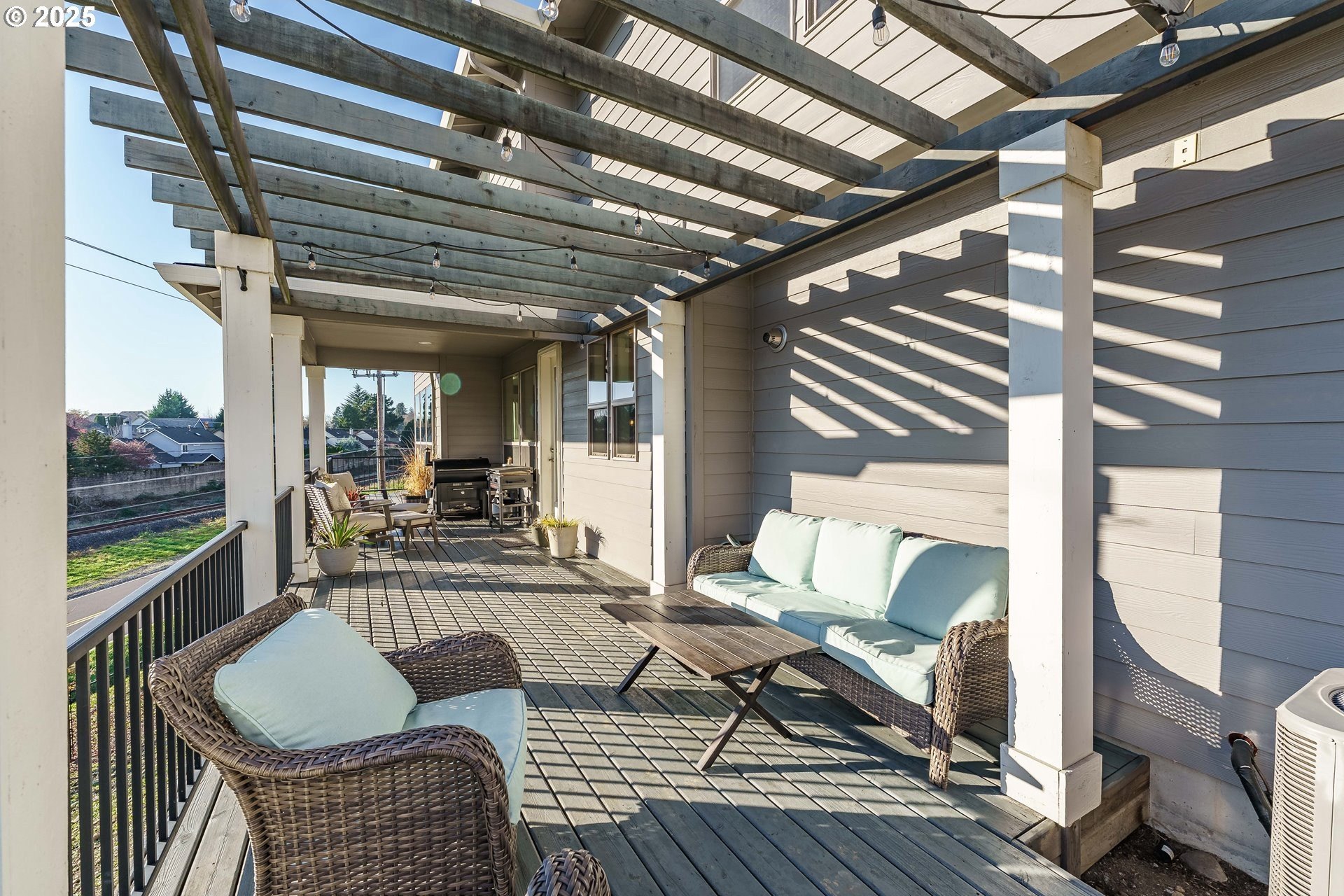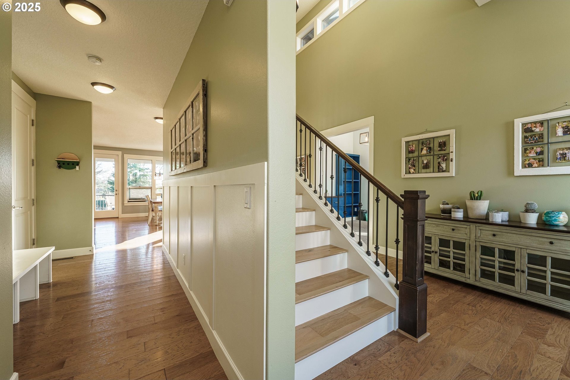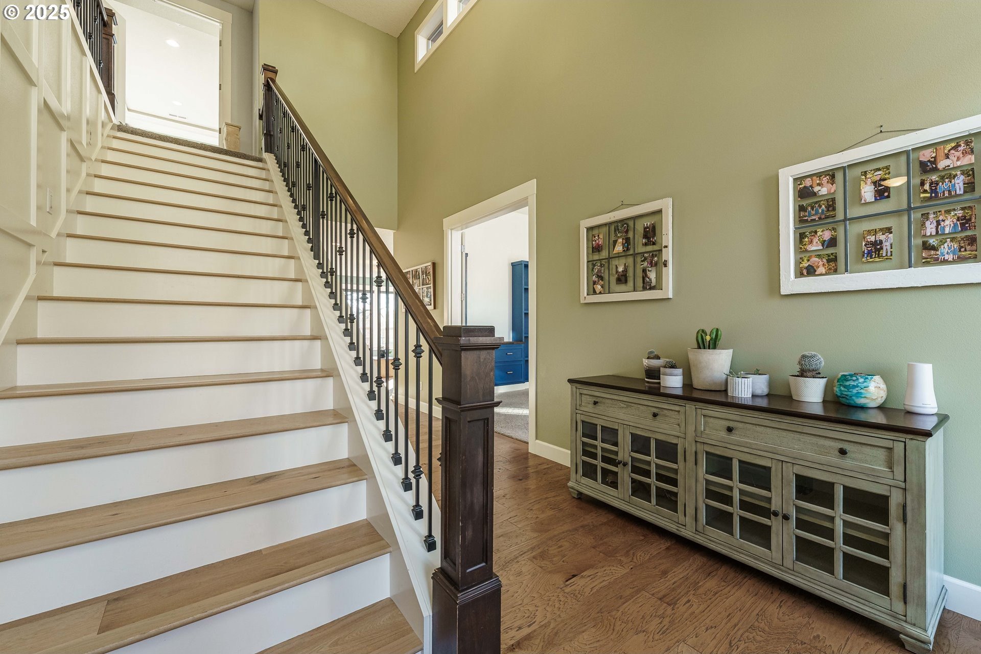 Step inside this impeccable home filled with comfort, style, and incredible natural light-thanks to 47 windows that brighten every corner. A soaring entry and rich, engineered hardwood floors set an impressive tone and is complemented by high ceilings and tall doors throughout both levels.The heart of the home is an immaculate gourmet kitchen featuring lavish cabinetry, slab granite counters, stainless steel appliances, a gas cooktop, pantry, and a generous island with eating bar. The cozy dining area flows seamlessly into a spacious great room with a gas fireplace, making it perfect for both everyday living and entertaining guests. Retreat to the beautiful primary suite, complete with tile counters, soaking tub, walk-in tile shower, dual vanity and large walk-in closet. With 4 bedrooms, 2.5 baths, and a main-floor den, there's room for everyone.Step outside to an expansive, partially covered deck where you can relax or entertain while taking in territorial views. This home sits on a quiet cul-de-sac in a neighborhood of well-kept, quality-built homes. Additional highlights include: oversized 3-car tandem garage with an EV charging station, central A/C, gas forced-air heat, plumbed for central vac. Built in 2016, this wonderful home is the perfect blend of modern convenience, thoughtful design, and everyday livability-ready to welcome its next owner. Conveniently located close to Hwy 14, restaurants, and just 15 minutes to PDX.