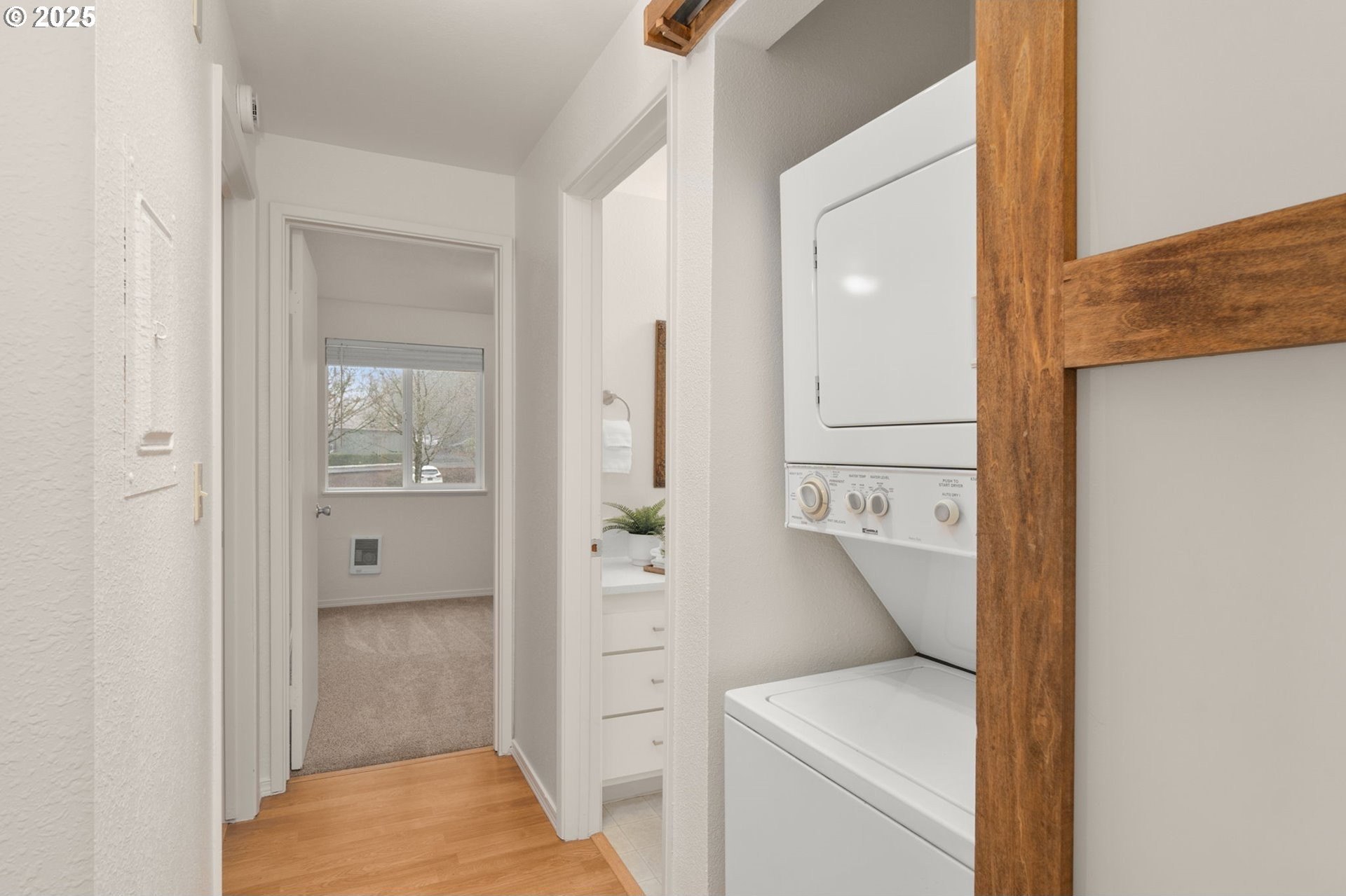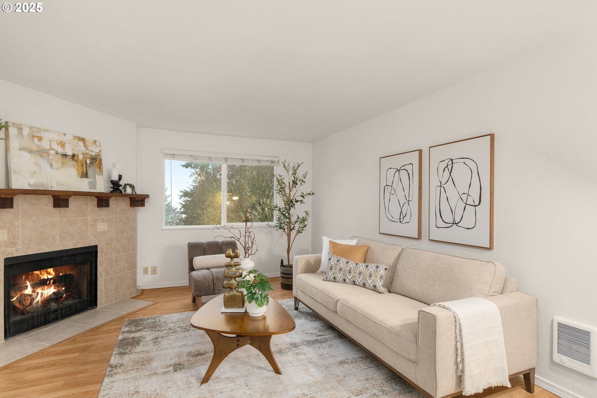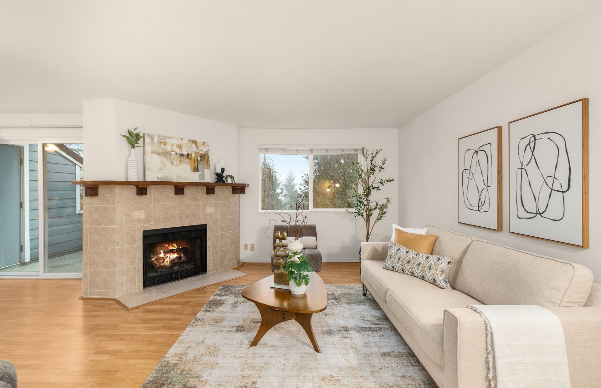 Updated condo in Lake Oswego's Mountain Park community! This desirable top floor unit features a full interior repaint, a living room with a fireplace, large windows, and a dining area that opens to a spacious patio with treetop views and an exterior storage closet. The kitchen includes new quartz counters, a new sink, updated hardware, a full suite of appliances with a built-in microwave, and a bar-top opening to the dining room. Two well-sized bedrooms, an updated bathroom with new quartz counters and hardware, a stackable washer/dryer, and additional interior storage complete the layout. Community amenities include an onsite pool, hot tub, reserved parking, and guest parking. Mountain Park residents also have access to multiple pools, a gym, sports courts, fitness and yoga rooms, community spaces, and extensive walking paths. Convenient location close to shops, parks, dining, and major commute routes. This unit is clean, bright, all you have to do is move in!