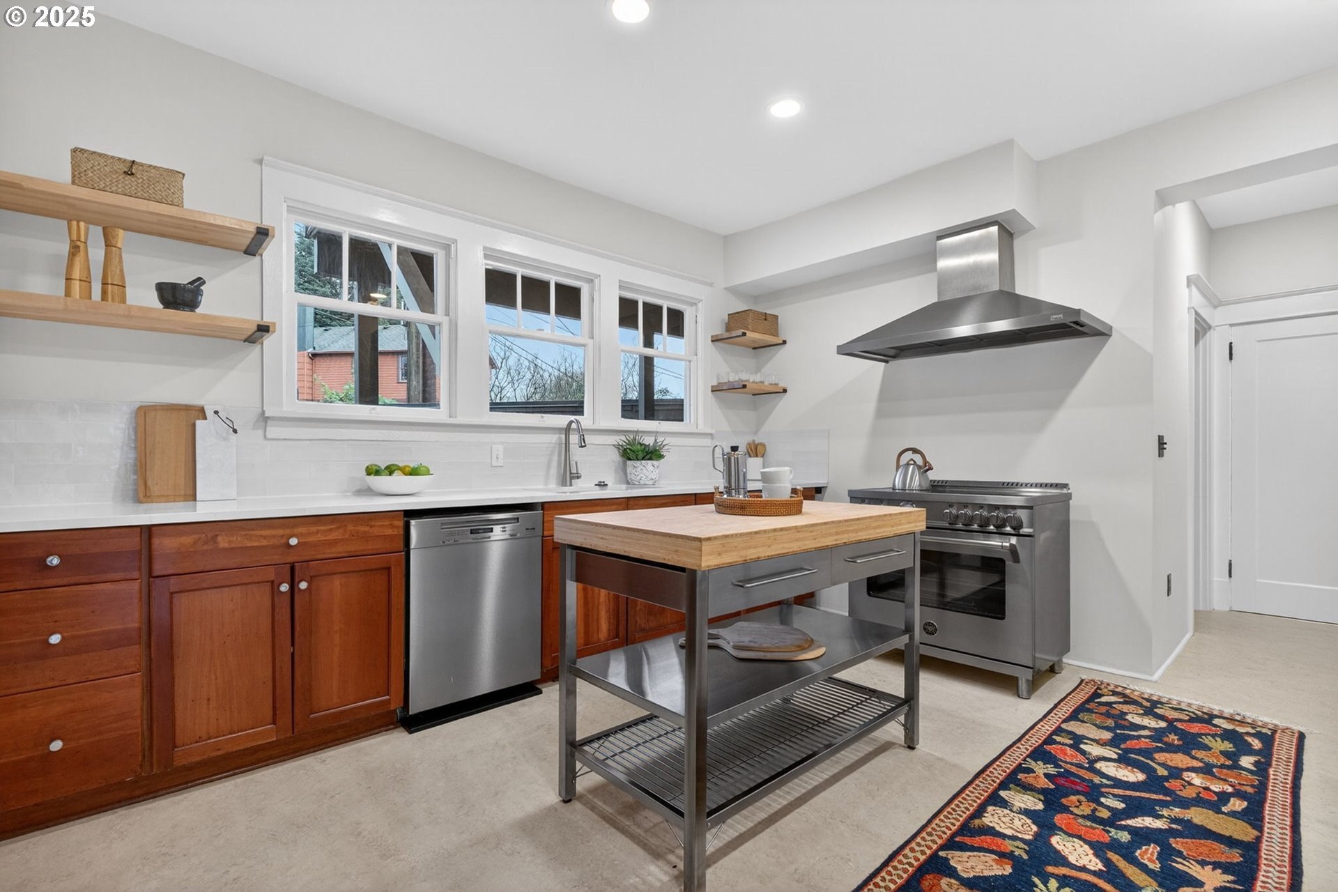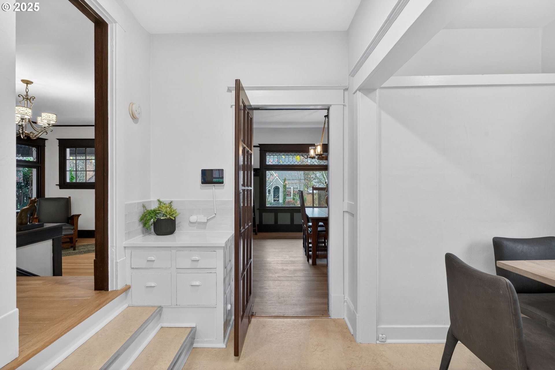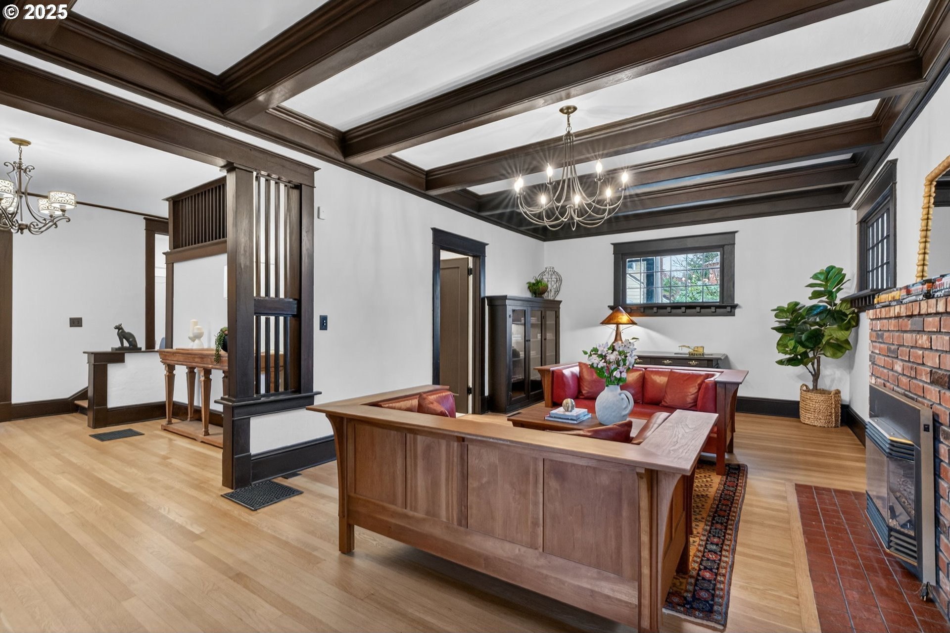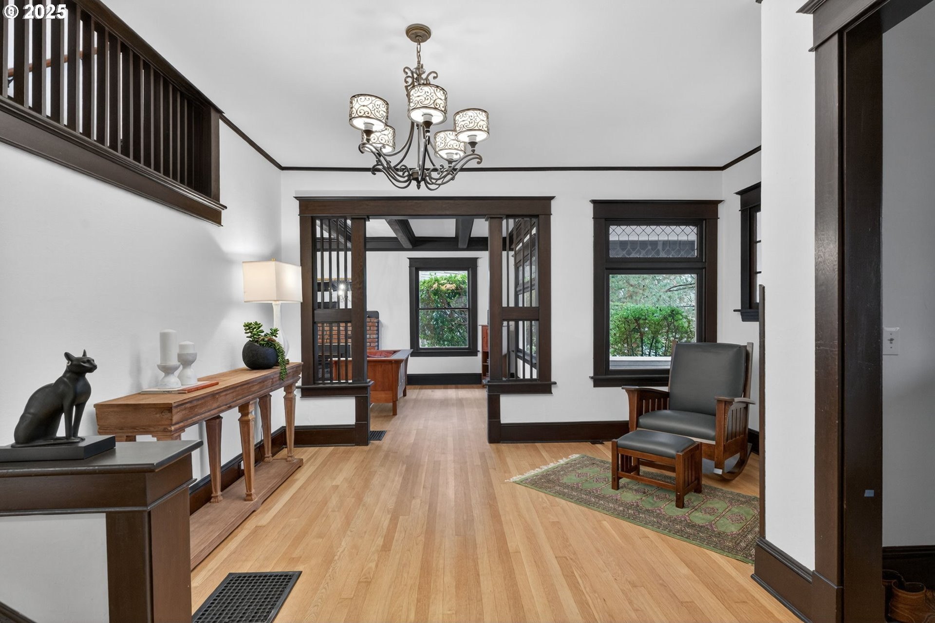 OPEN HOUSE SATURDAY 11-1 & SUNDAY 2-4! Located in historic Ladd's Addition, this distinguished 1908 residence embodies the timeless character of a Craftsman-influenced Portland Foursquare. Its front-gable roofline, wide overhanging eaves, and broad covered porch reflect early-Portland craftsmanship, complemented by original millwork and multi-pane windows highlighting its graceful facade. Set on a distinctive unique lot with rare, wide frontage for the neighborhood, the property offers a sense of privacy, lush mature landscaping, and the beauty of a designated Portland Heritage Tree #287. A spacious, detached three-car garage offers room for vehicles, storage, and versatile use. Inside, beautifully maintained period features include rich woodwork, leaded glass, original hardwood floors, beamed ceilings, and classic built-ins. Bright, spacious rooms flow effortlessly from the welcoming entry through the living and dining areas, with large picture windows framing tree-lined street views. The upper level features four comfortably sized bedrooms, a full bath, and a sunroom ideal for reading, office use, or creative pursuits. The expansive finished lower level adds even more versatility with generous bonus/living space, a full bathroom, and direct exterior access. With its quiet, friendly, village-like atmosphere and proximity to neighborhood markets, local eateries and more, Ladd's Addition offers an unmatched blend of history, charm, and convenience. A truly inviting place to live. [Home Energy Score = 1. HES Report