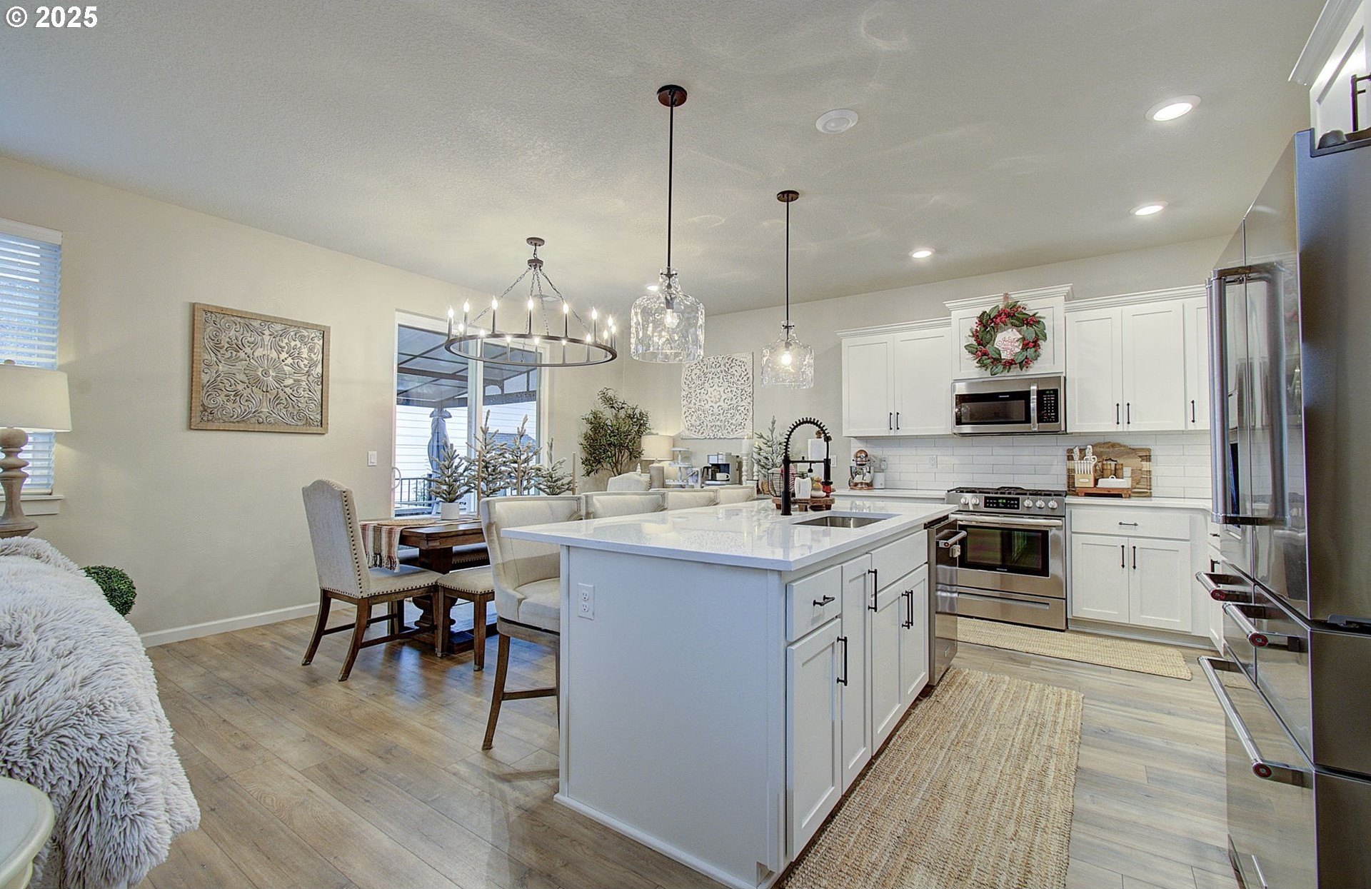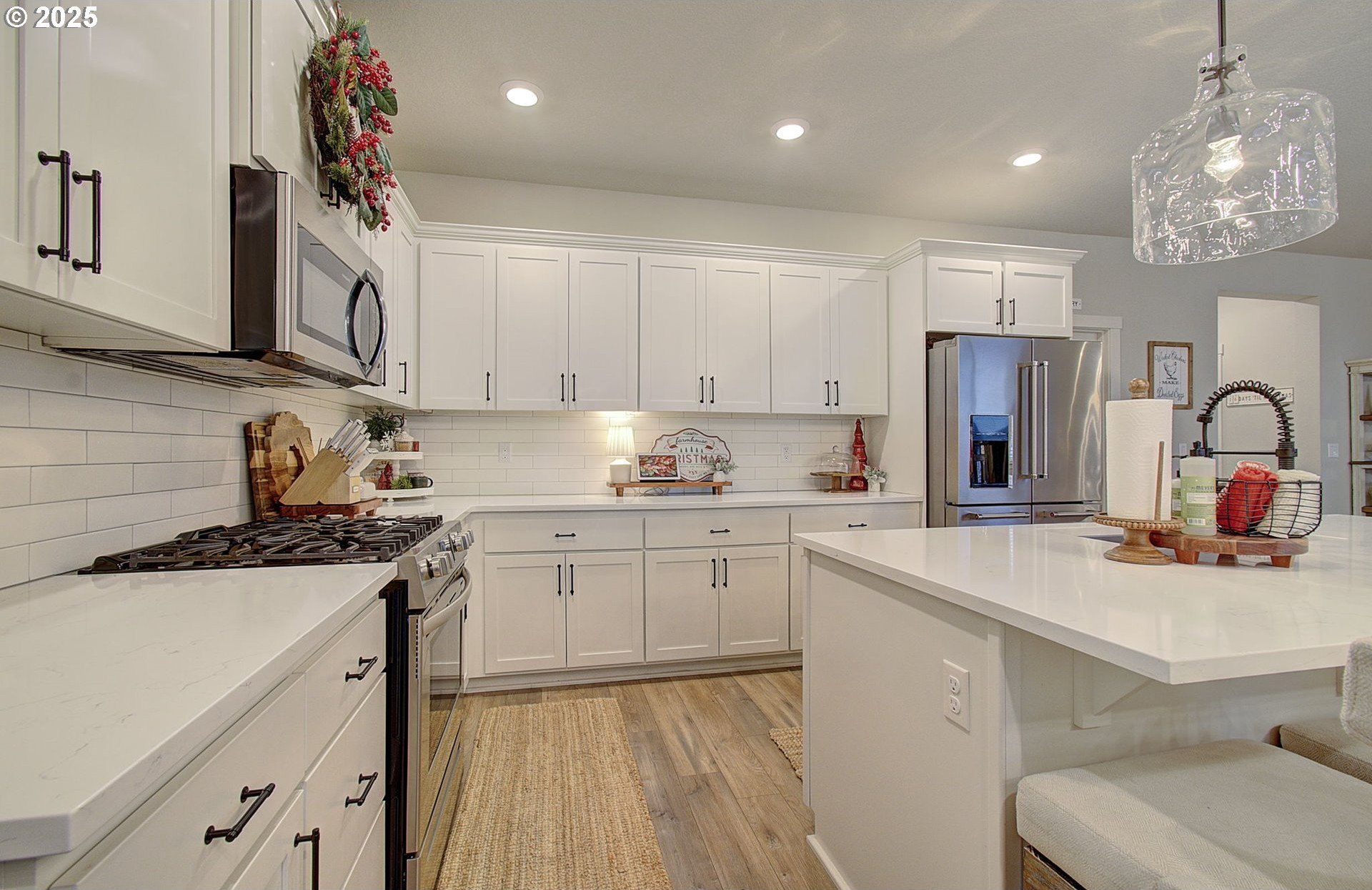 This Newer 3 bed, 2.5 bath home has a bright, open layout, with high-end finishes throughout. Giving it a polished, modern feel. The main floor has gorgeous luxury vinyl planking, gas fireplace, a large island, quartz slab, gas stove- updated hardware and lighting throughout! Upstairs has all new plush carpet (2025) An open family room, large laundry room, spacious bedrooms and the primary en-suite is not something to miss-especially the walk-in closet! The spacious 3-car garage offers plenty of room for storage or hobbies, and being on the corner lot adds extra breathing room. The fully fenced yard and covered composite deck make it a perfect place for relaxing or entertaining year-round! With 2,061 sqft of well-designed space, this home is move-in ready and easy to love! Come on by this weekend to the Open Houses! Please see the attached Amenities list!