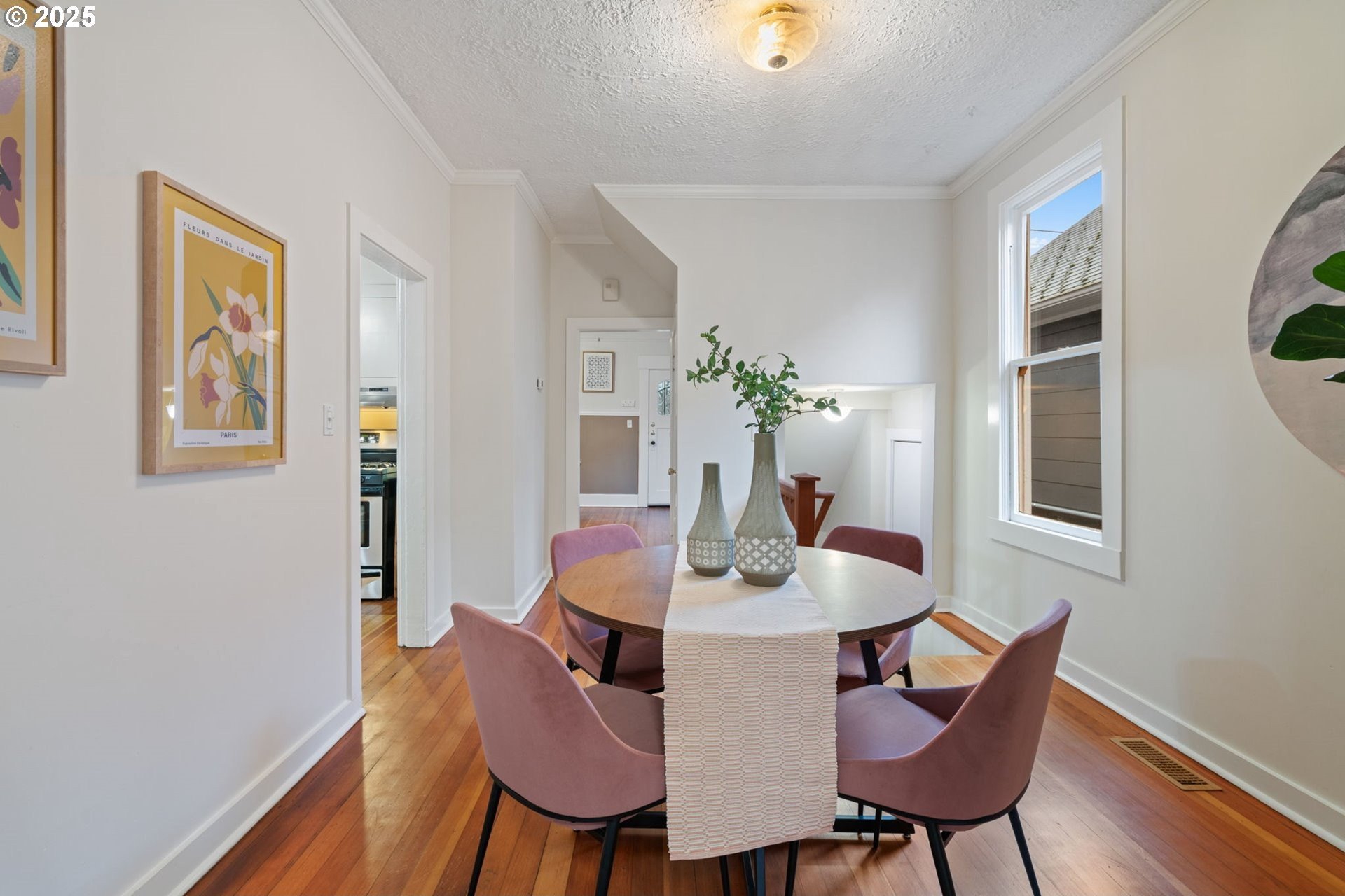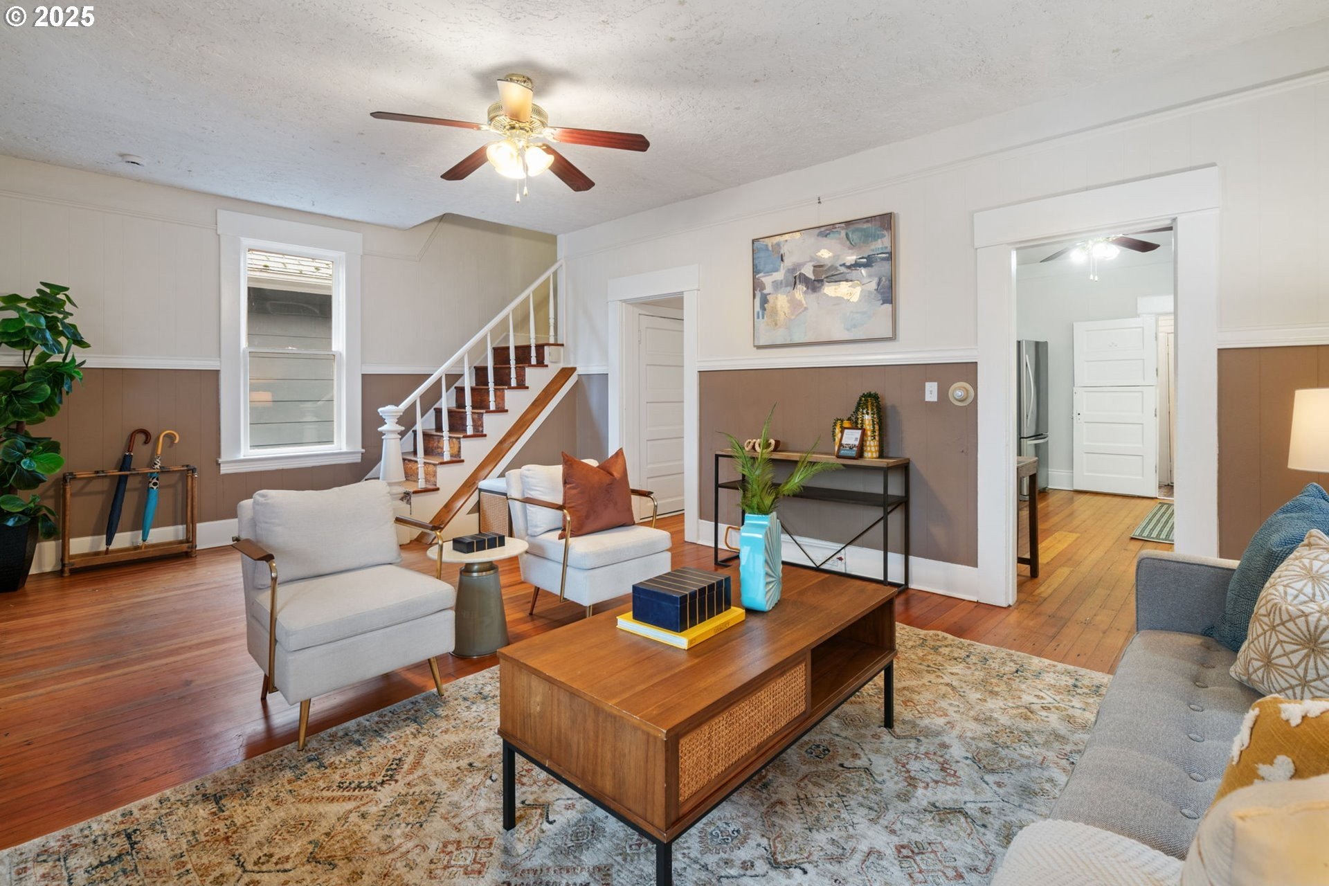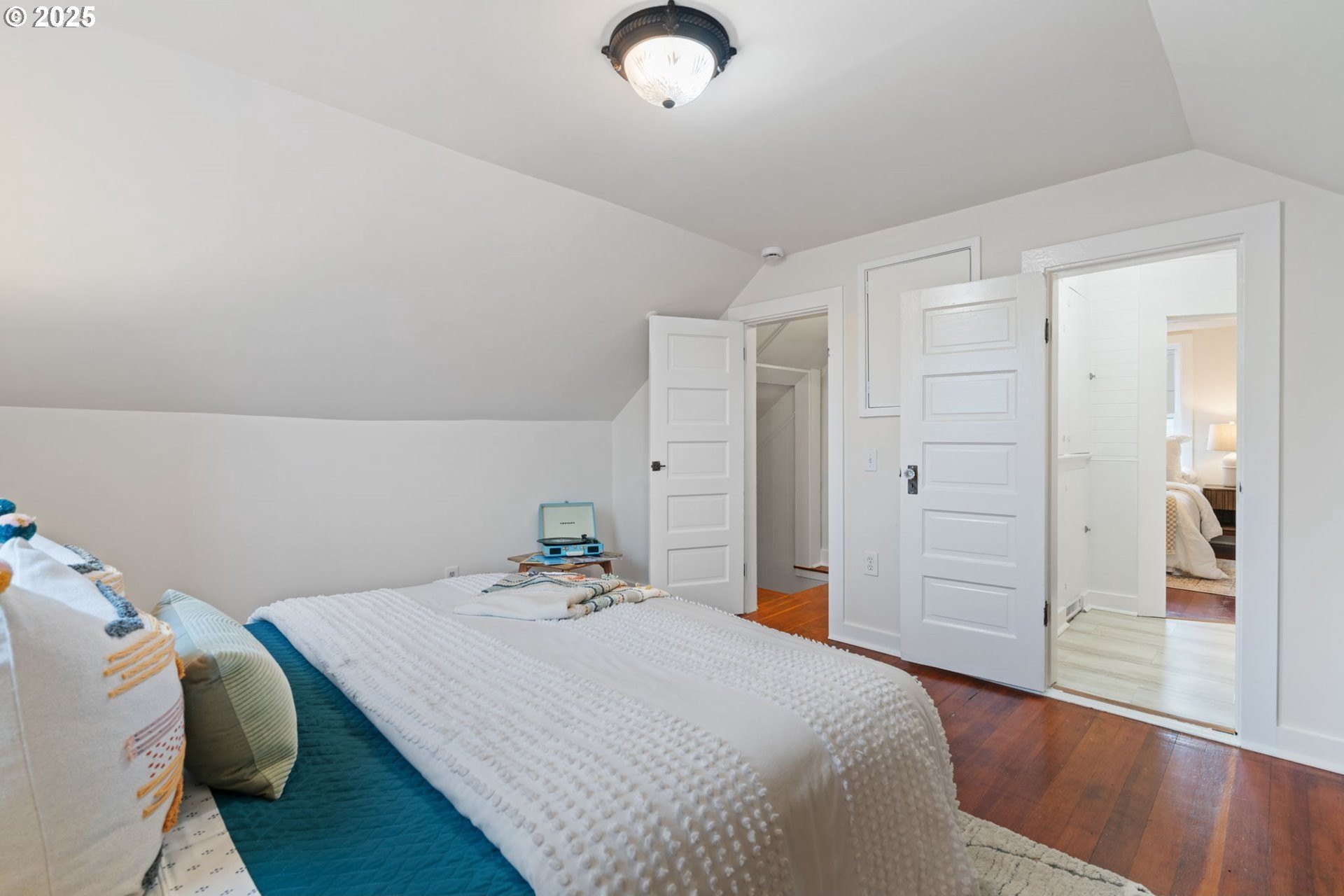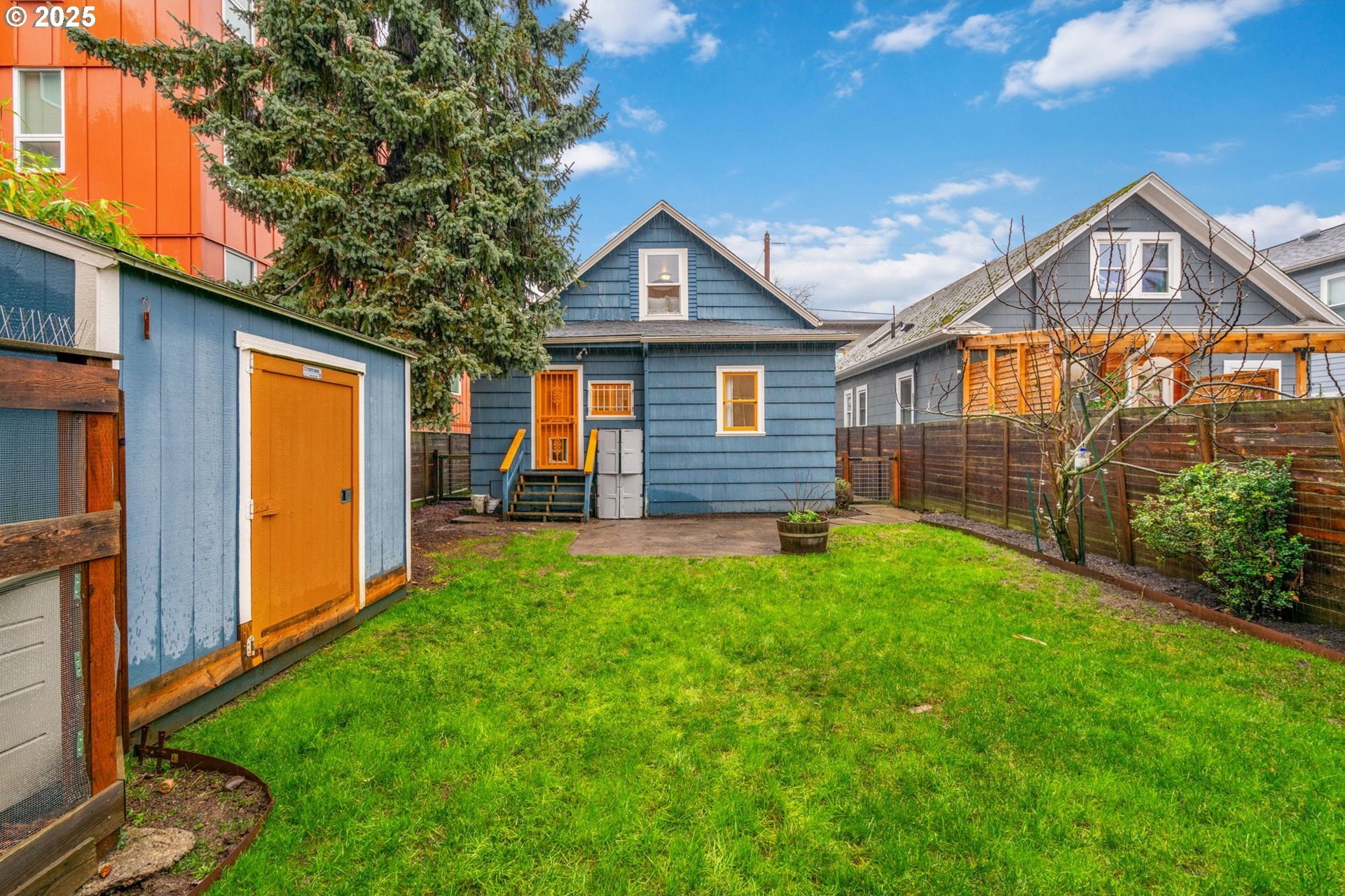 Right in the heart of the Alberta Arts District, this home puts Portland's best food, music, and local shops within easy reach while the dead-end street provides for a quiet retreat in the heart of the city. Enjoy the best of Portland knowing that when you are ready to relax you will be welcomed home to a charming covered front porch lined with grape vines and an inviting seating area. Inside, hardwood floors run throughout the main level, creating a warm inviting living room. The living and dining rooms connect seamlessly with a large kitchen that boasts plenty of space for holiday cooking and lots of storage - perfect for keeping family connected on busy mornings or for casual dinners, and with plenty of room for guests to gather. The layout flows beautifully for hosting, with an easy connection from the kitchen to the fully fenced backyard. Once outside you'll find space for gardening, mature rosemary, sage, a fig tree, and more. A storage shed and chicken run make this the true Portland experience. Back inside a convenient office, pantry, and tucked-away half bath round out the main floor for everyday convenience. Upstairs, two comfortable bedrooms share a Jack-and-Jill full bath, creating a smart and functional retreat. Downstairs, the finished basement adds a spacious family room plus a private bed-room suite with its own full bathroom, along with laundry on the same level - ideal for guests or a little extra separation.And when you're ready to head back out, the Alberta Arts District is right there again - bringing a vibrant, close-to-everythinglifestyle at your doorstep. [Home Energy Score = 3. HES Report