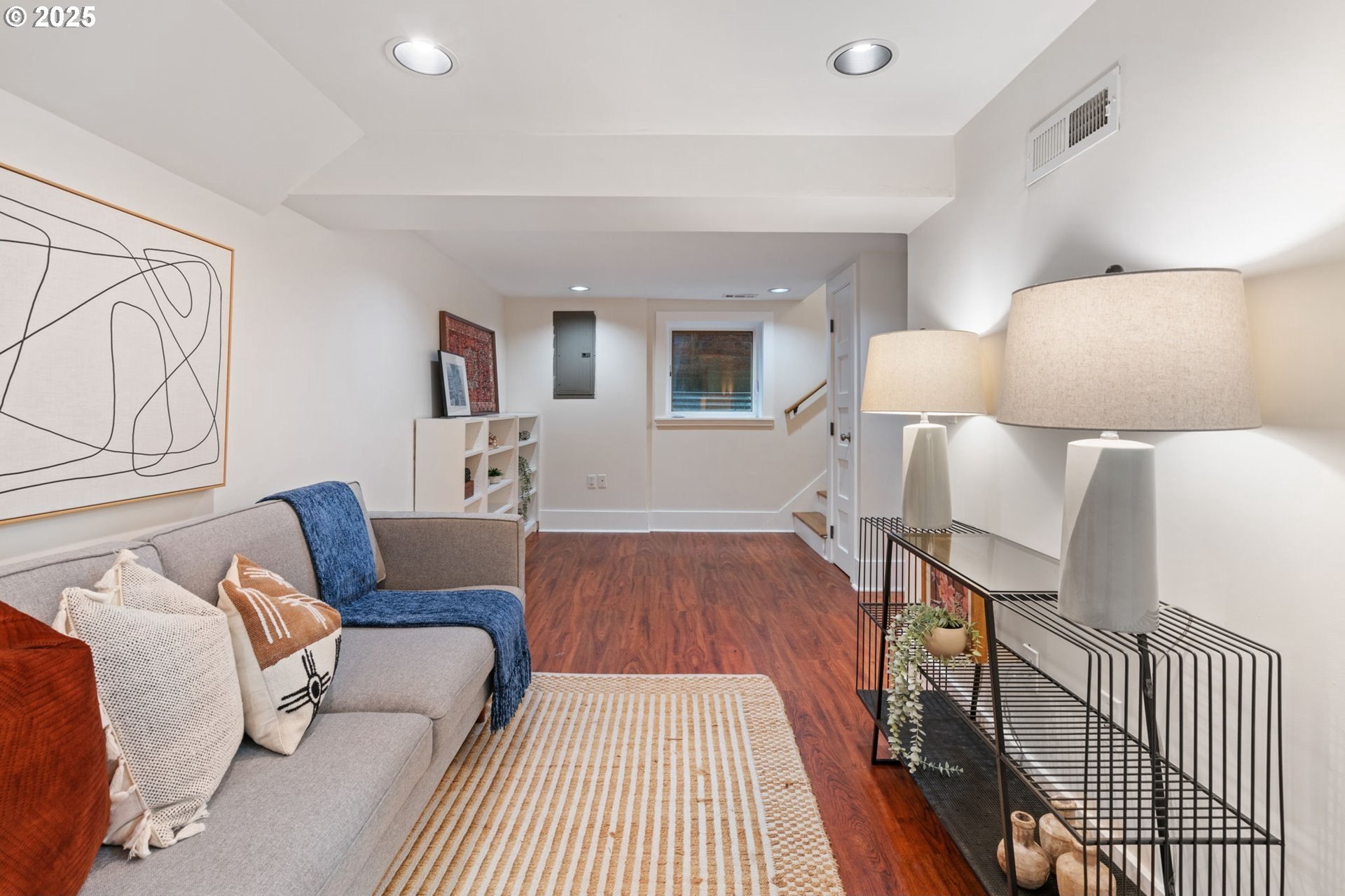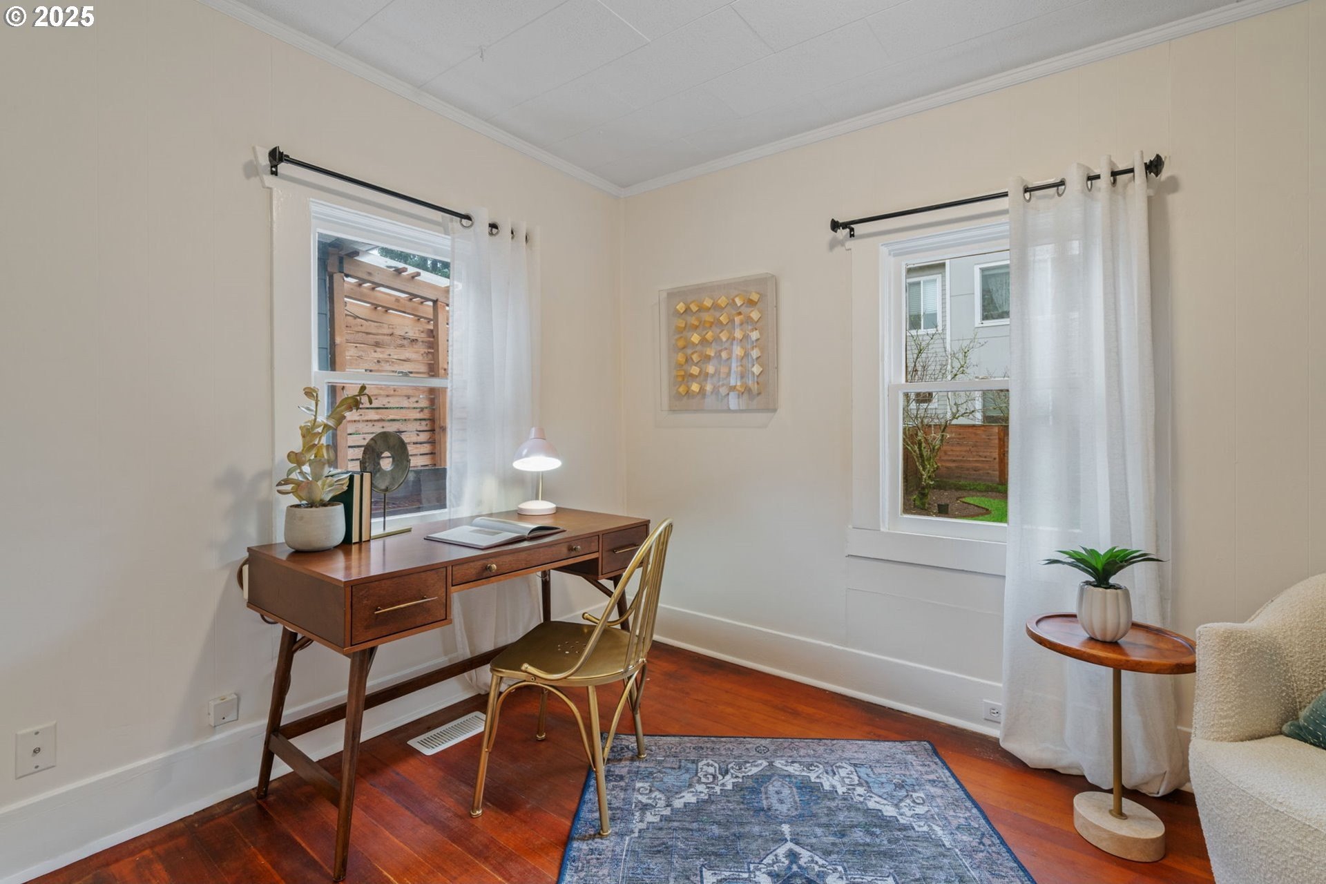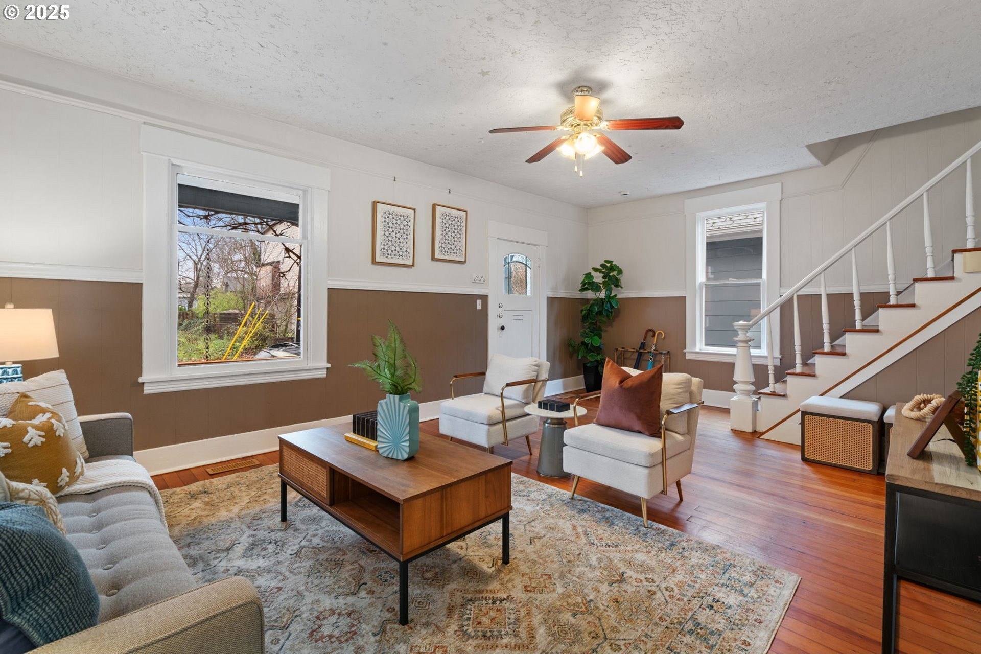 Right in the heart of the Alberta Arts District, this home puts Portland's best food, music, and local shops within easy reach while the dead-end street provides for a quiet retreat in the heart of the city. Enjoy the best of Portland knowing that when you are ready to relax you will be welcomed home to a charming covered front porch lined with grape vines and an inviting seating area. Inside, hardwood floors run throughout the main level, creating a warm inviting living room. The living and dining rooms connect seamlessly with a large kitchen that boasts plenty of space for holiday cooking and lots of storage - perfect for keeping family connected on busy mornings or for casual dinners, and with plenty of room for guests to gather. The layout flows beautifully for hosting, with an easy connection from the kitchen to the fully fenced backyard. Once outside you'll find space for gardening, mature rosemary, sage, a fig tree, and more. A storage shed and chicken run make this the true Portland experience. Back inside a convenient office, pantry, and tucked-away half bath round out the main floor for everyday convenience. Upstairs, two comfortable bedrooms share a Jack-and-Jill full bath, creating a smart and functional retreat. Downstairs, the finished basement adds a spacious family room plus a private bed-room suite with its own full bathroom, along with laundry on the same level - ideal for guests or a little extra separation.And when you're ready to head back out, the Alberta Arts District is right there again - bringing a vibrant, close-to-everythinglifestyle at your doorstep. [Home Energy Score = 3. HES Report
