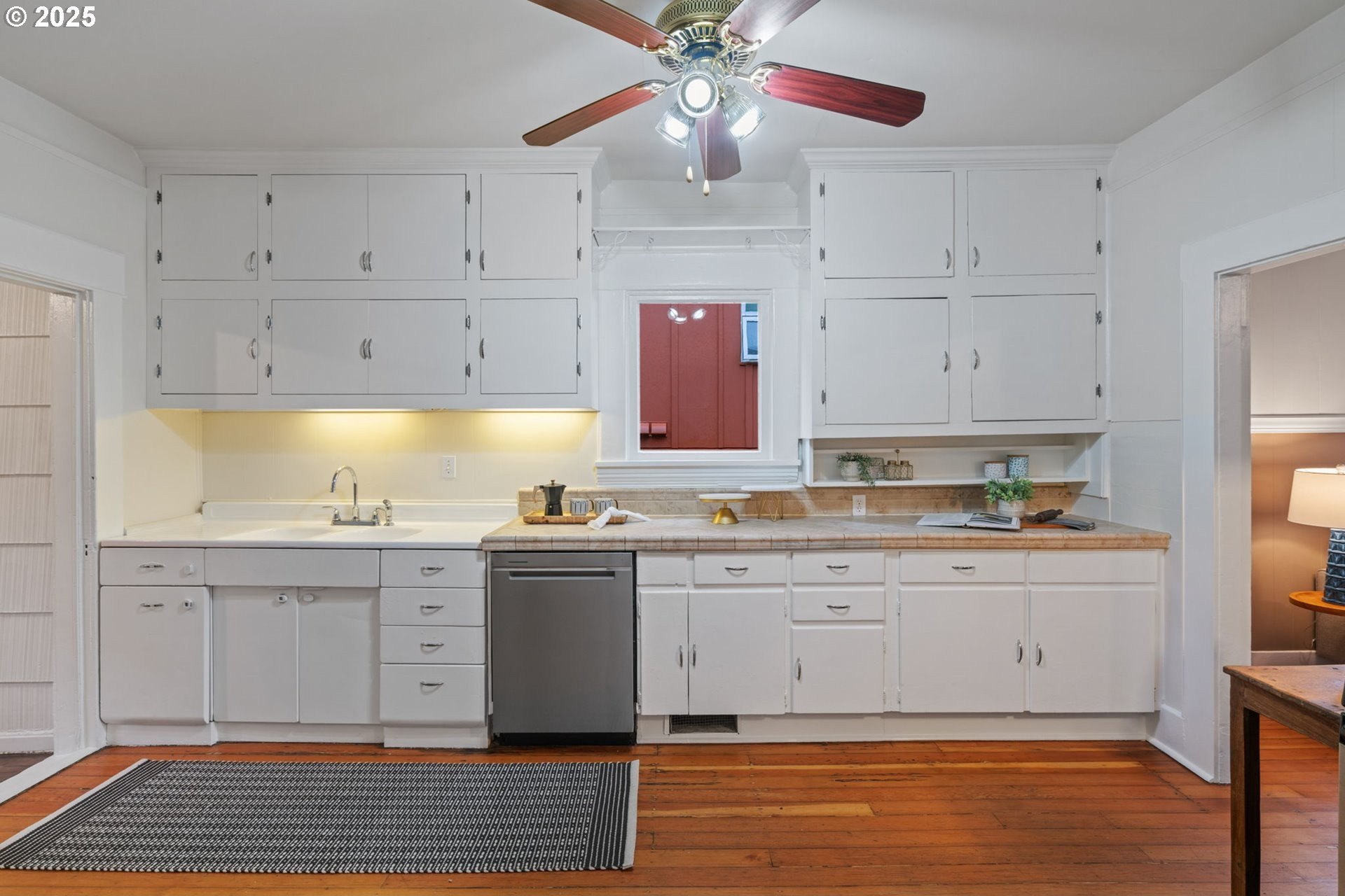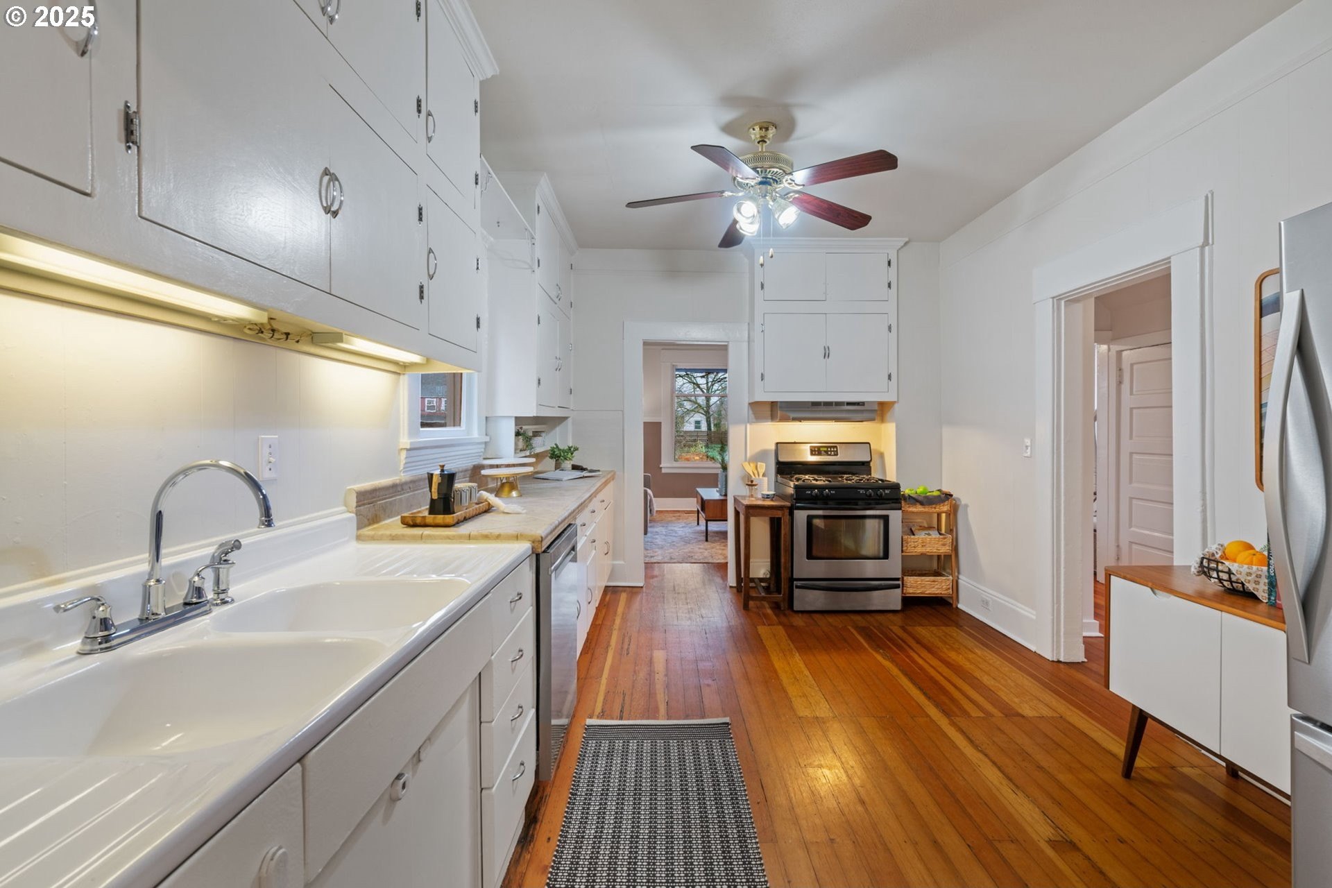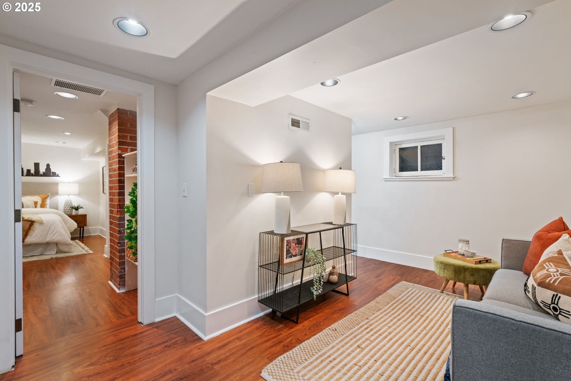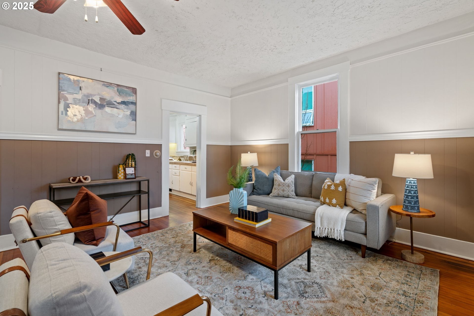 Right in the heart of the Alberta Arts District, this home puts Portland's best food, music, and local shops within easy reach while the dead-end street provides for a quiet retreat in the heart of the city. Enjoy the best of Portland knowing that when you are ready to relax you will be welcomed home to a charming covered front porch lined with grape vines and an inviting seating area. Inside, hardwood floors run throughout the main level, creating a warm inviting living room. The living and dining rooms connect seamlessly with a large kitchen that boasts plenty of space for holiday cooking and lots of storage - perfect for keeping family connected on busy mornings or for casual dinners, and with plenty of room for guests to gather. The layout flows beautifully for hosting, with an easy connection from the kitchen to the fully fenced backyard. Once outside you'll find space for gardening, mature rosemary, sage, a fig tree, and more. A storage shed and chicken run make this the true Portland experience. Back inside a convenient office, pantry, and tucked-away half bath round out the main floor for everyday convenience. Upstairs, two comfortable bedrooms share a Jack-and-Jill full bath, creating a smart and functional retreat. Downstairs, the finished basement adds a spacious family room plus a private bed-room suite with its own full bathroom, along with laundry on the same level - ideal for guests or a little extra separation.And when you're ready to head back out, the Alberta Arts District is right there again - bringing a vibrant, close-to-everythinglifestyle at your doorstep. [Home Energy Score = 3. HES Report