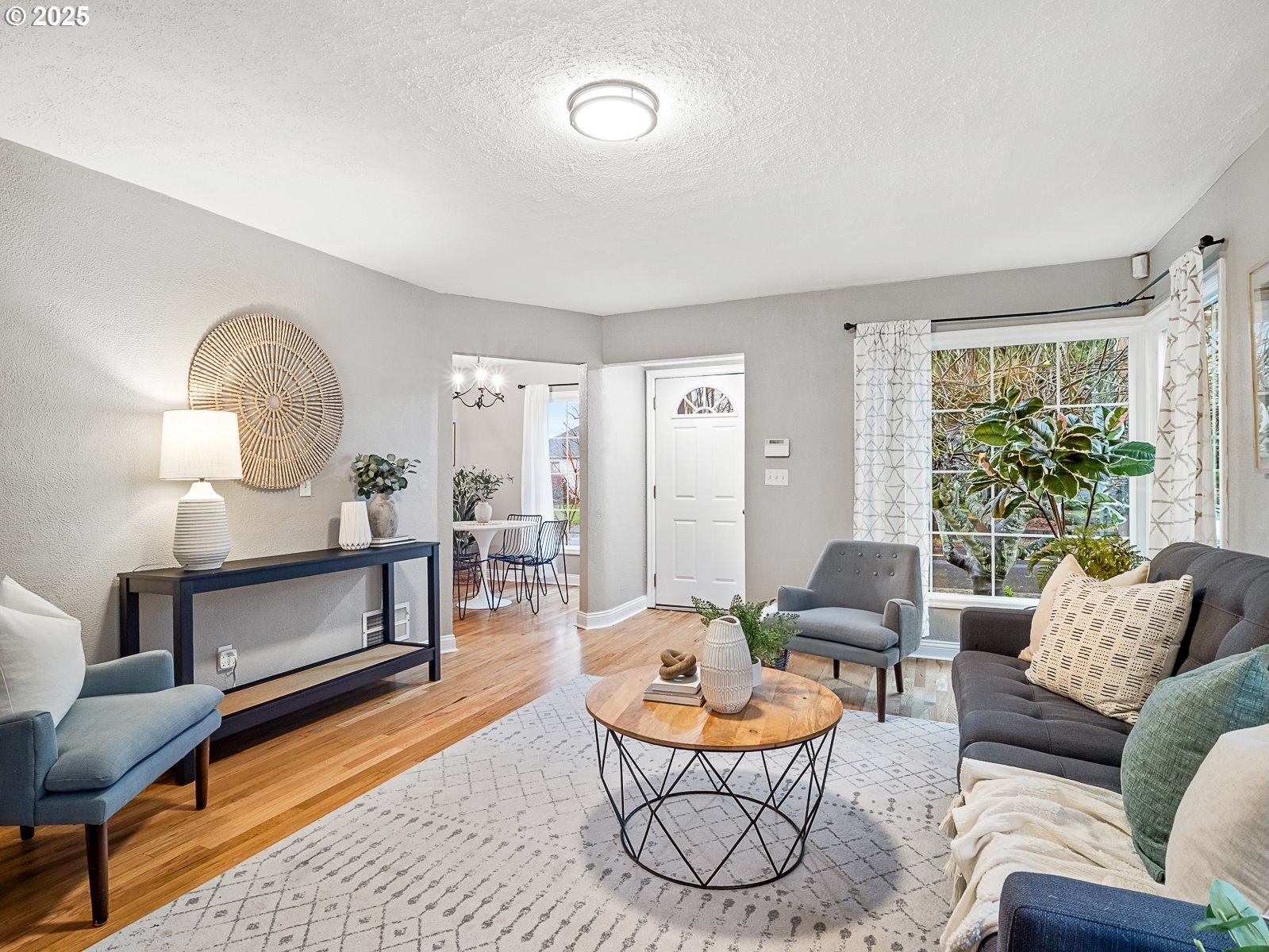 Perfectly located in the desirable Woodlawn neighborhood. Just a few short blocks from Dekum's hip, eclectic restaurants, cafes, and shops. This darling home is filled with the perfect amount of vintage charm and modern updates, the floorplan is ideal and has endless possibilities including a finished basement, with its own separate entrance. The large windows provide a lovely amount of natural light throughout the home. In the spring and summer, the front windows frame a gorgeous established fig tree and many other blooms and greenery for the perfect views. You will enjoy the original hardwood floors gleaming as they were just redone, the charming dining room built-ins, the appealing arches, original details and sophisticated fireplace mantel with woodstove insert for ultimate cozy-ness. The main living area is complete with two generous size bedrooms and one full bath, a lovely proper dining area, a comfortable living room and a renovated kitchen complete with everything you would need. The basement was recently finished and waiting for your next vision, holding endless possibilities to provide additional living space or whatever you might imagine. The fenced backyard is complete with a brick patio, plenty of room to garden, or host summer gatherings. Recent significant updates include a new roof in Fall of 2022, new windows in 2023, new exterior paint in 2023, new interior paint, new LVP flooring in the basement and the front yard was recently landscaped. Did I mention the home has Air Conditioning! Plenty of off-street parking in the secure driveway complete with one attached garage. Close proximity to all amenities. You must come see this charming home for yourself, its bright, comfortable and presents an amazing amount of opportunity.