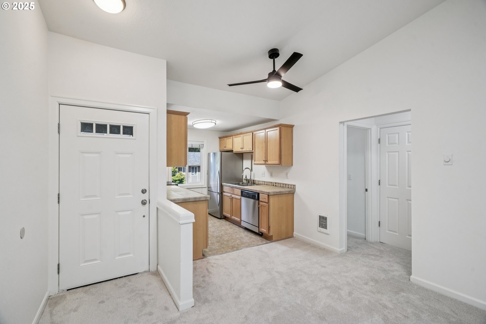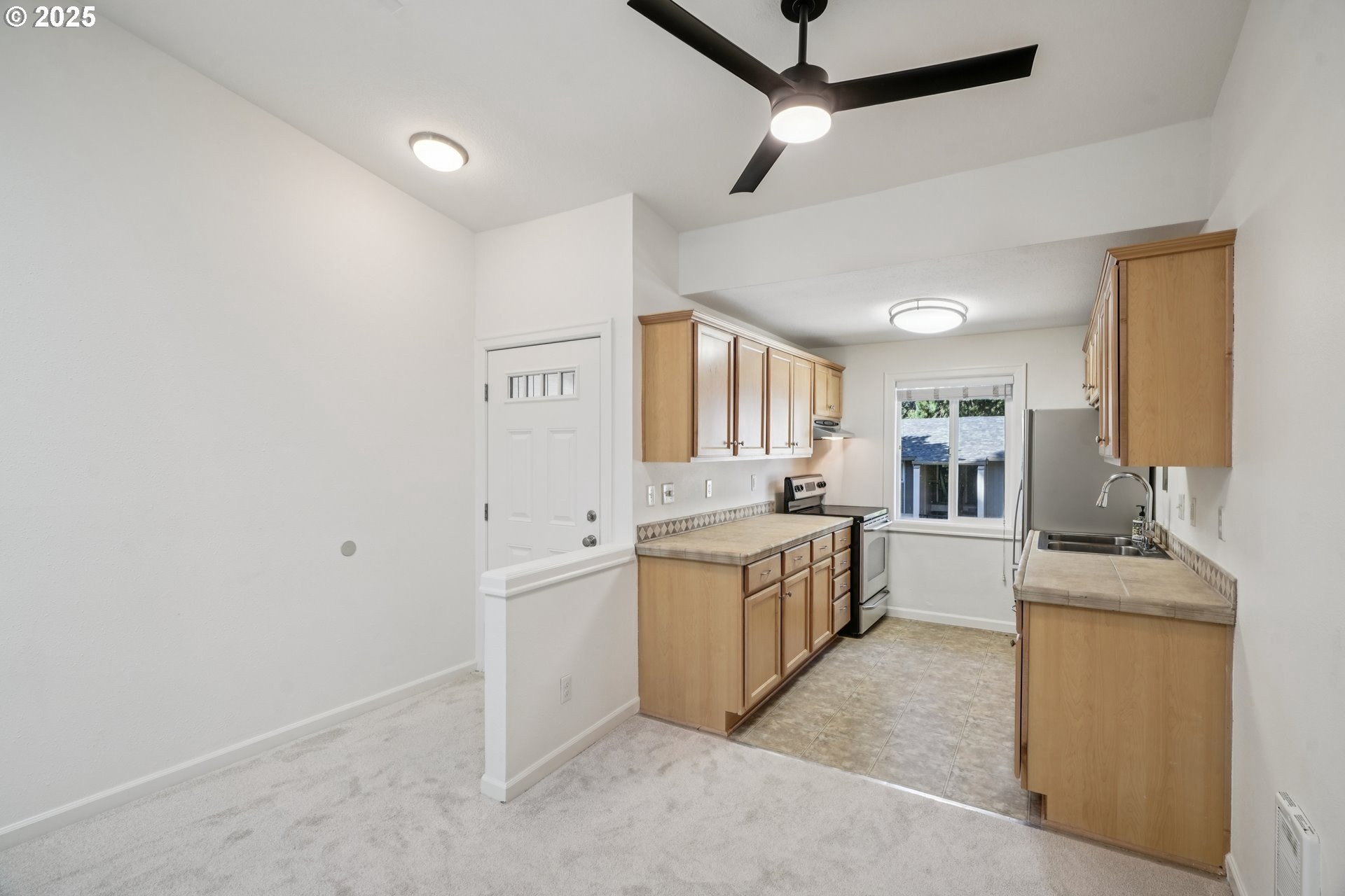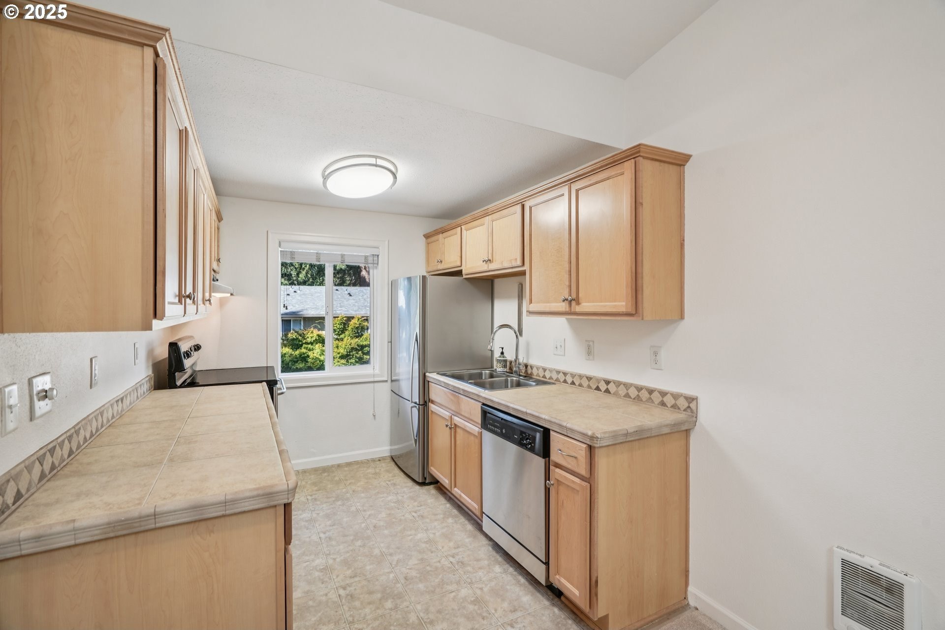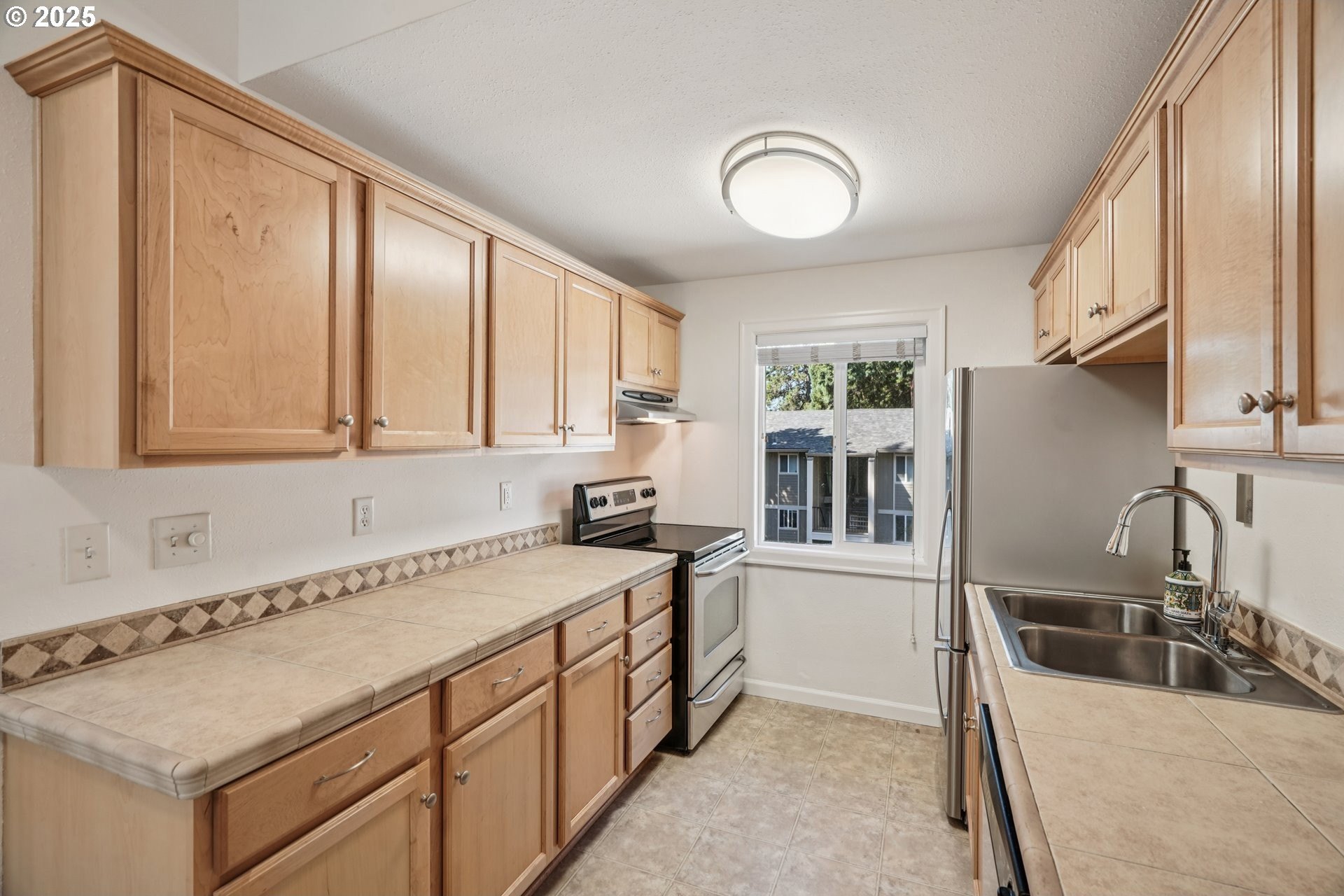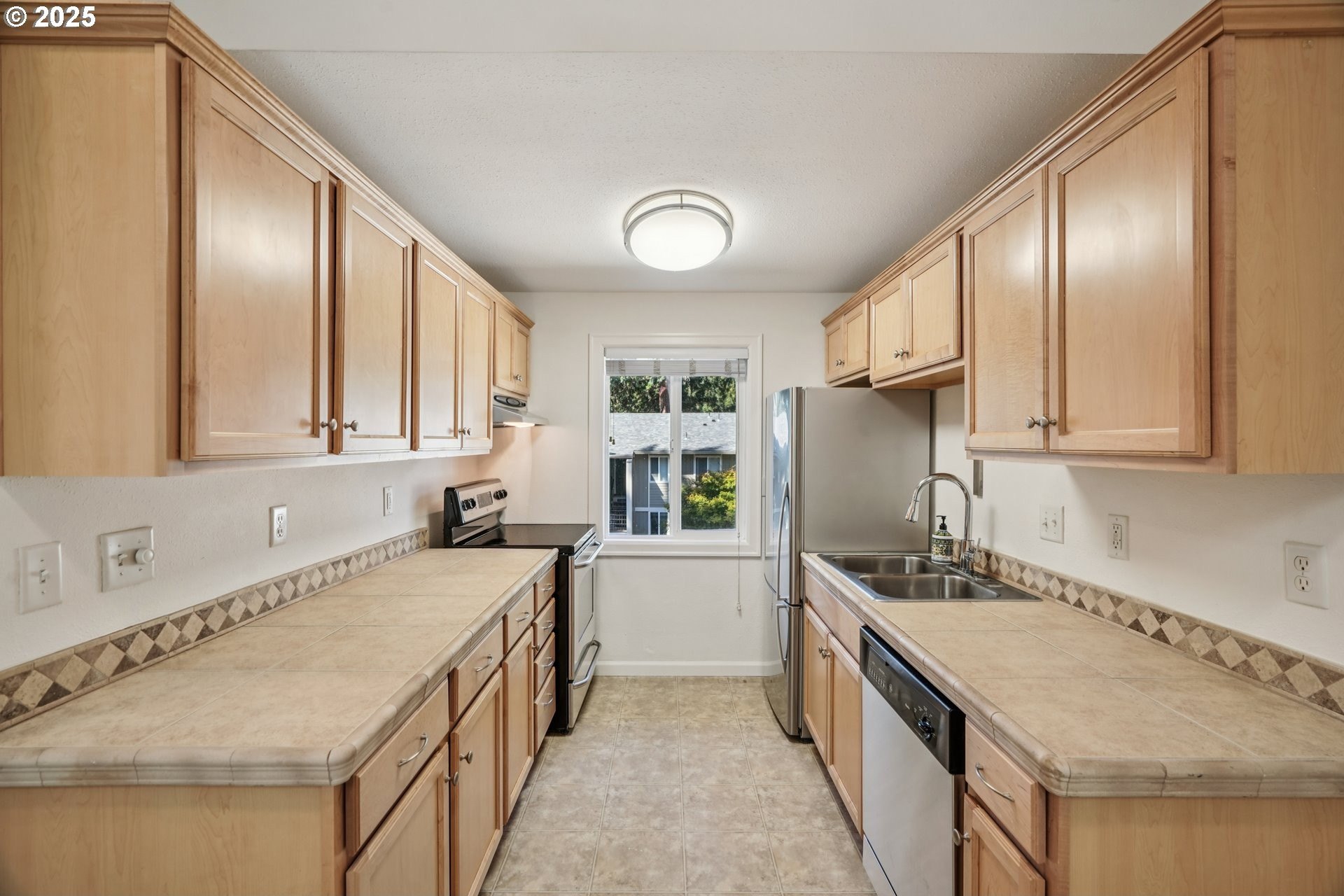 Welcome to this quiet, light-filled, private, top-floor condominium in the highly desirable West Slope neighborhood. Having just been completely renovated, this home offers a peaceful sanctuary surrounded by trees, yet it's just minutes from both downtown Beaverton and downtown Portland, an ideal location for commuting or enjoying city amenities.Spacious living room features a wood-burning fireplace and opens to a private patio with tree views. Kitchen is equipped with stainless-steel appliances and attractive tile countertops, offering both functionality and style. Covered carport parking is located directly in front of the unit for added convenience. Large, shared deck area, ideal for entertaining guests. Ceiling fan. Washer/Dryer hookups. No rental cap. Pets allowed. Professionally managed and well-funded smaller HOA. If you're looking for a serene, move-in-ready condo in a prime Portland location, this is the one.