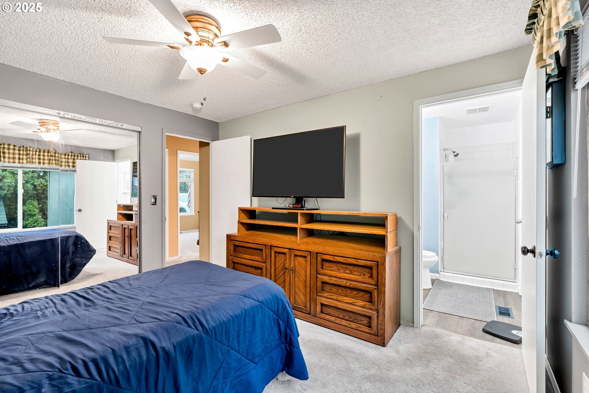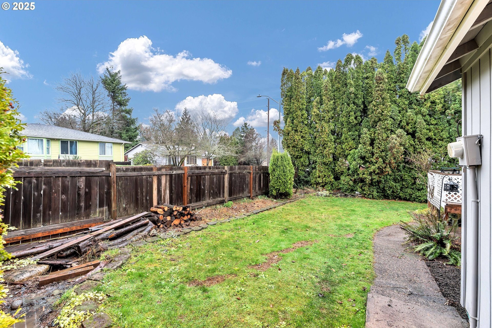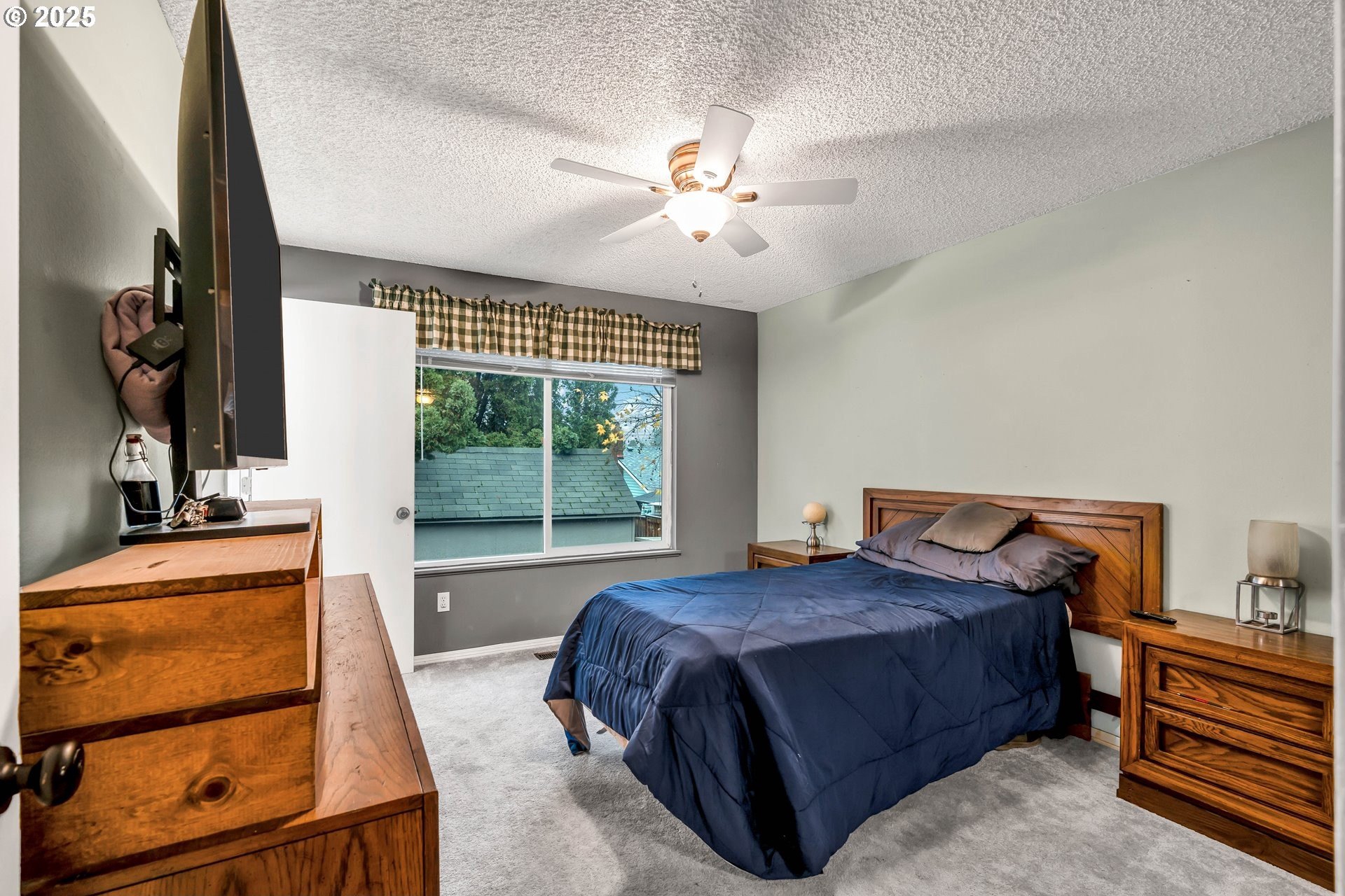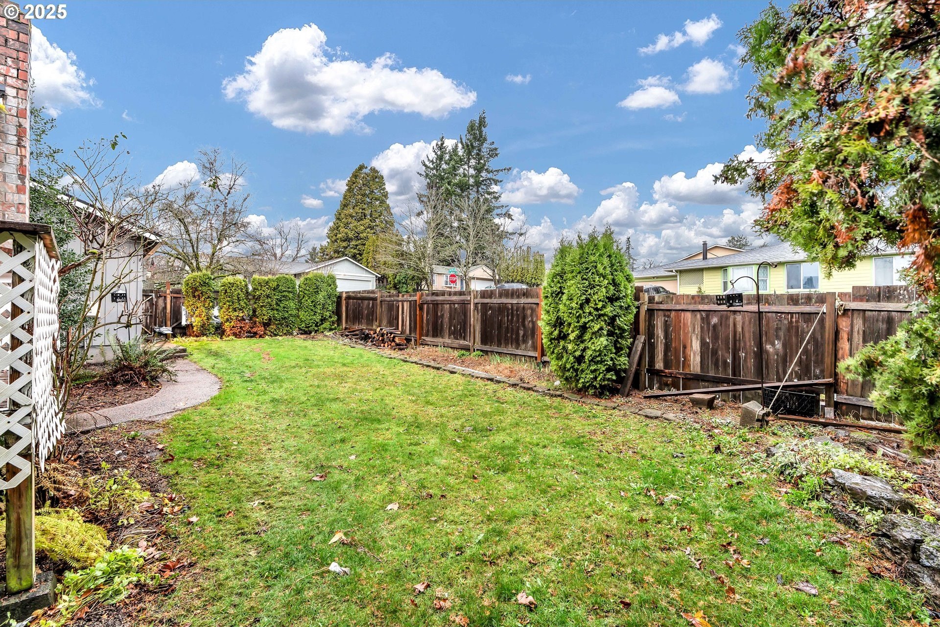Charming single-level home with 3 spacious bedrooms and multiple living areas. The living room features wall-to-wall carpet, a fireplace, and oversized windows that fill the space with natural light. The L-shaped kitchen and dining area boast laminate flooring and an open-concept layout, perfect for cooking and entertaining. A cozy family room with wall-to-wall carpet, wood-burning stove, oversized window, and sliding doors opens to a back deck. All bedrooms are generously sized, with the primary suite offering a ceiling fan, oversized window, and ensuite bath with walk-in shower. Additional features include washer and dryer hookups in the garage and a large fenced backyard-ideal for relaxing or entertaining.