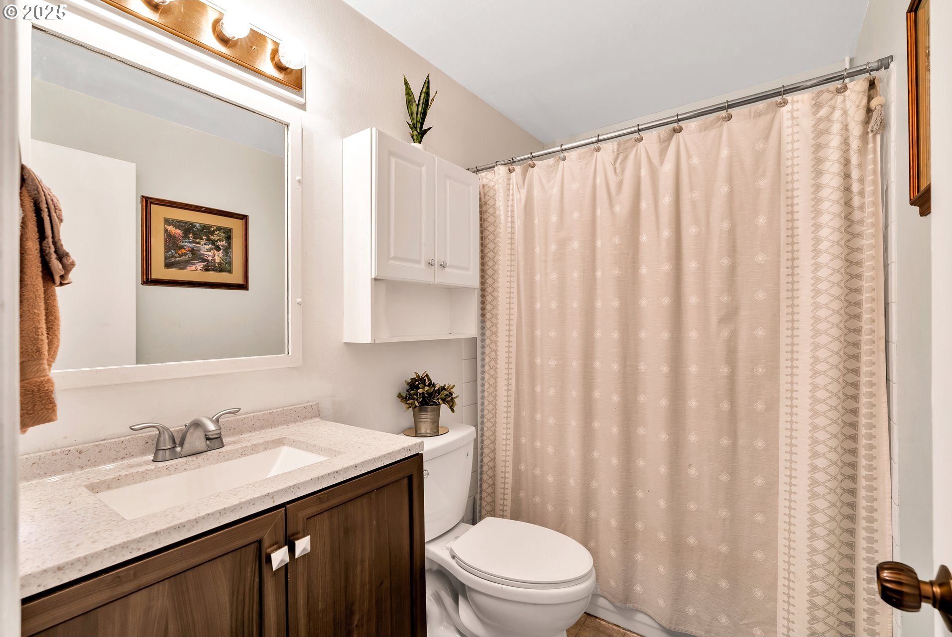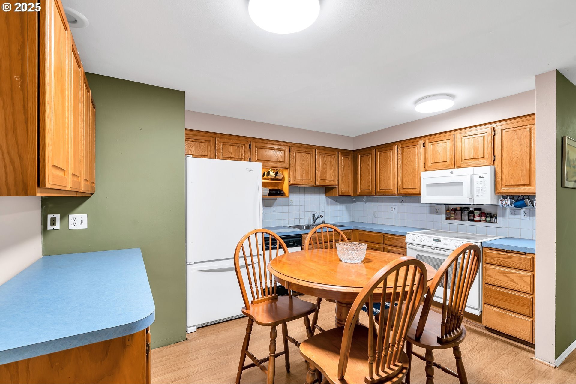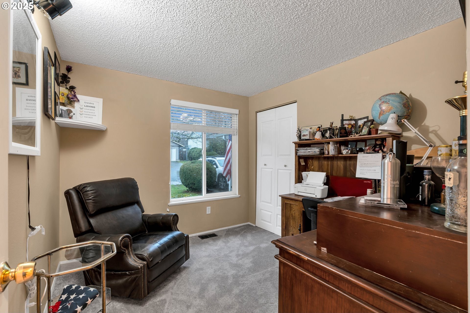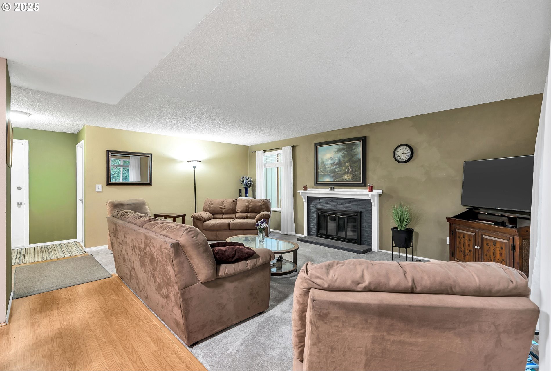 Charming single-level home with 3 spacious bedrooms and multiple living areas. The living room features wall-to-wall carpet, a fireplace, and oversized windows that fill the space with natural light. The L-shaped kitchen and dining area boast laminate flooring and an open-concept layout, perfect for cooking and entertaining. A cozy family room with wall-to-wall carpet, wood-burning stove, oversized window, and sliding doors opens to a back deck. All bedrooms are generously sized, with the primary suite offering a ceiling fan, oversized window, and ensuite bath with walk-in shower. Additional features include washer and dryer hookups in the garage and a large fenced backyard-ideal for relaxing or entertaining.