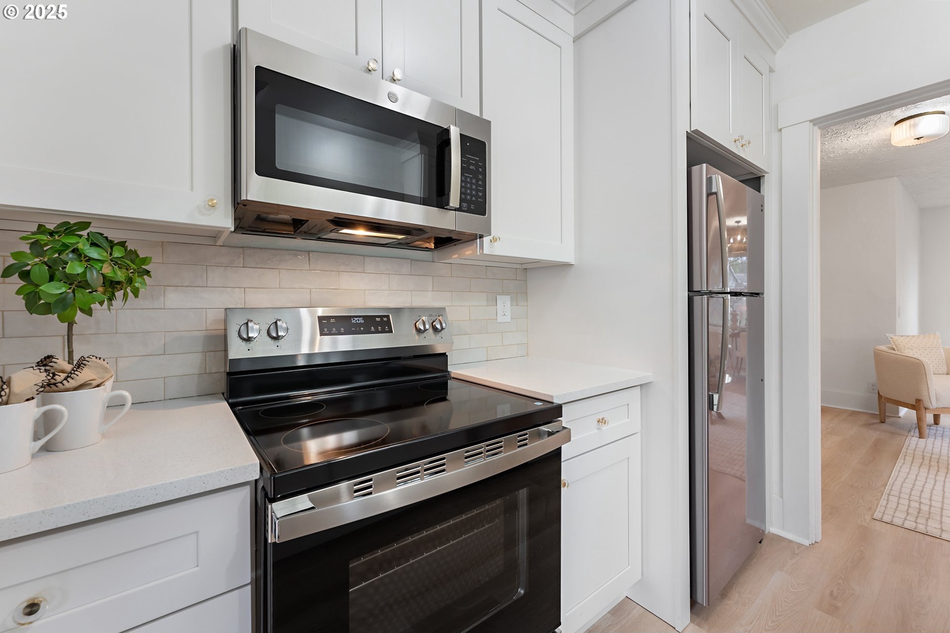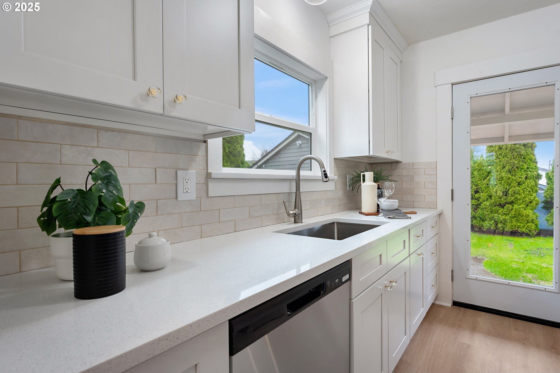 OPEN HOUSE SUNDAY Dec 14 from 12-2. Welcome to this gorgeous renovated St. Johns craftsman bungalow, where timeless charm meets a clean, modern design aesthetic. Nearly every surface has been refreshed, including new kitchen cabinets, solid-surface countertops, stainless steel appliances, stylish tile work in the kitchen and bath, updated doors and many new windows, fresh flooring, lighting, and fixtures throughout, plus new interior and exterior paint. Major improvements include updated electrical, blown-in insulation, a new roof on both the home and garage, and a new mini-split heating and cooling system Roomy bathroom has a new vanity and a fully tiled walk-in shower. The spacious basement has high ceilings, an exterior entrance, laundry area, and fresh paint and offers a ton of flexible potential!! Surrounded by lush greenery, the private fenced yard is a welcome retreat from the hustle and bustle. The oversized detached garage has a classic original workbench, pull down ladder for upper storage and adds even more functionality to this truly move-in-ready home. SQFT per tax records - buyer to verify. Listing agent related to seller.