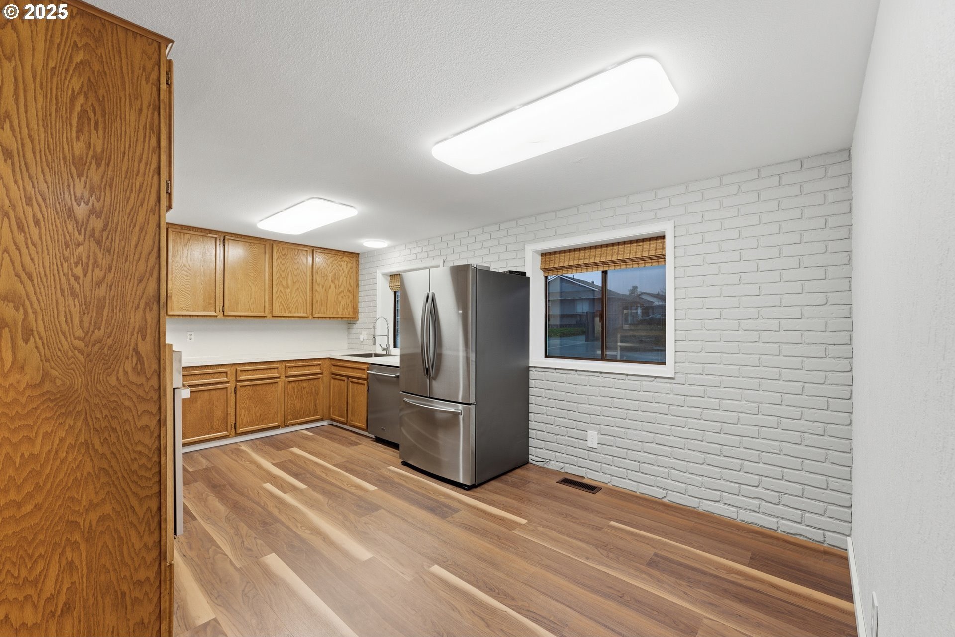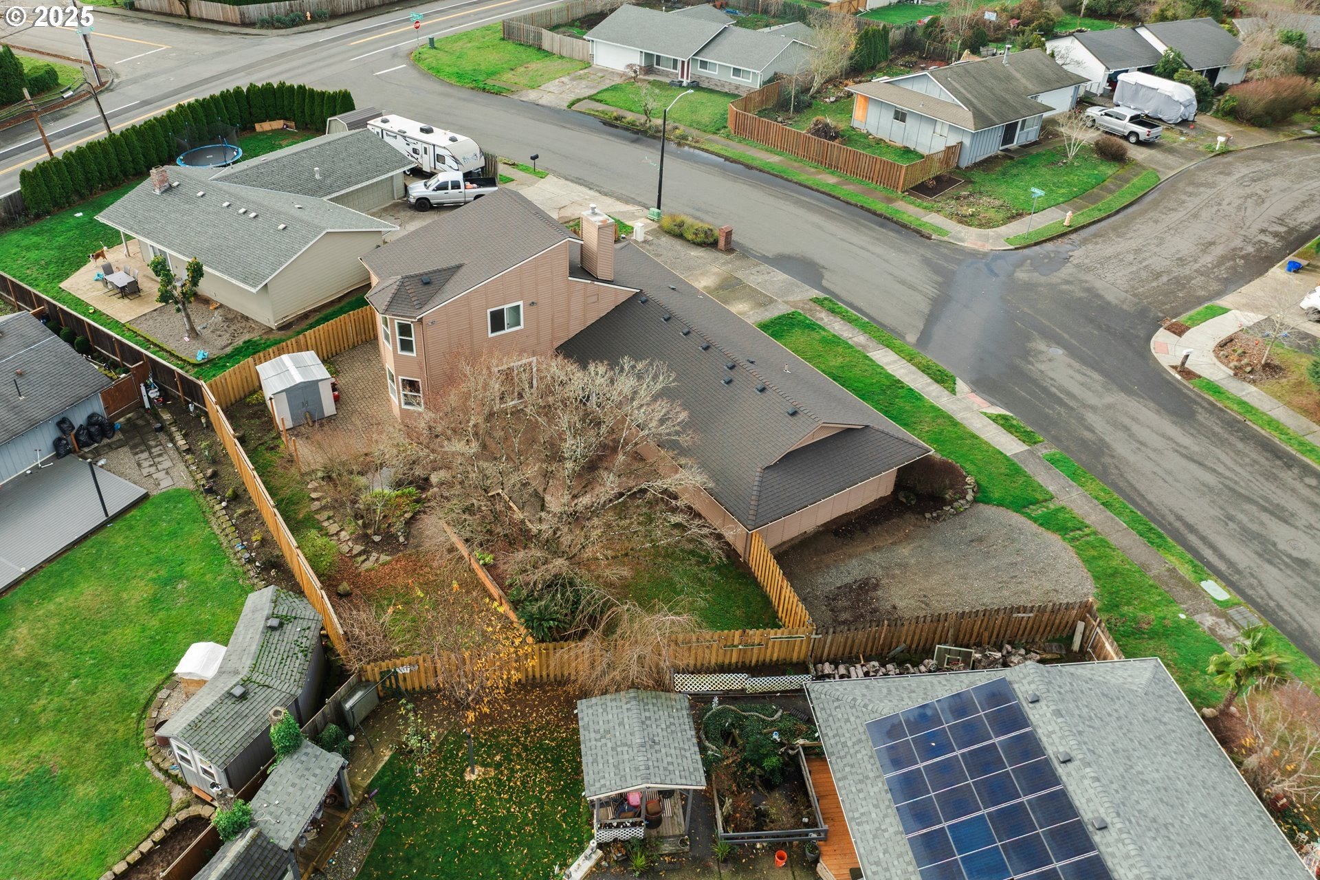 Beautifully maintained and thoughtfully updated home featuring two primary suites. The main floor includes 3 bedrooms and 2 bathrooms, while the spacious upstairs primary suite offers a private bath, walk-in closet, and an impressive cedar vaulted ceiling. Updates include new carpet, new toilets, new tile flooring in the upper primary bathroom, new laminate flooring throughout the main-level hallway, living room, dining room, and kitchen, fresh interior paint, updated lighting, and a new front door. Most windows have been replaced-all new upstairs and all except four on the main level. 90% of windows in the house are vinyl.The spacious kitchen offers an eating bar and abundant cabinet space, while the living room features French doors, a cozy fireplace, and a charming cedar accent wall. Kitchen appliances and washer/dryer are included in the sale. The family room includes a slider leading to the large deck.Step outside to a large deck with two access points from the house-perfect for relaxing, entertaining, or BBQs. The fully fenced backyard features a serene pond and plenty of space for gatherings.This home also offers flexibility and excellent potential for multi-generational living, house-hacking, or ADU possibilities (Buyer to do own due diligence). With a private entrance to the family room and upstairs, the layout is ideal for creating separate living quarters.A two-car garage and large RV/boat parking provide added convenience and flexibility. No HOA!Conveniently located by schools, parks, shopping, and just 45 minutes to Mt. Hood, 25 minutes to the Columbia Gorge, and 20 minutes to Portland. Schedule a showing today and imagine yourself living here!