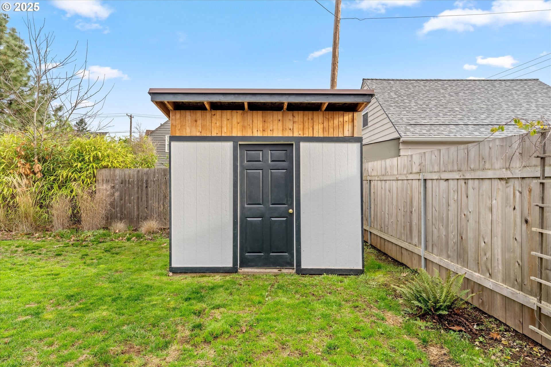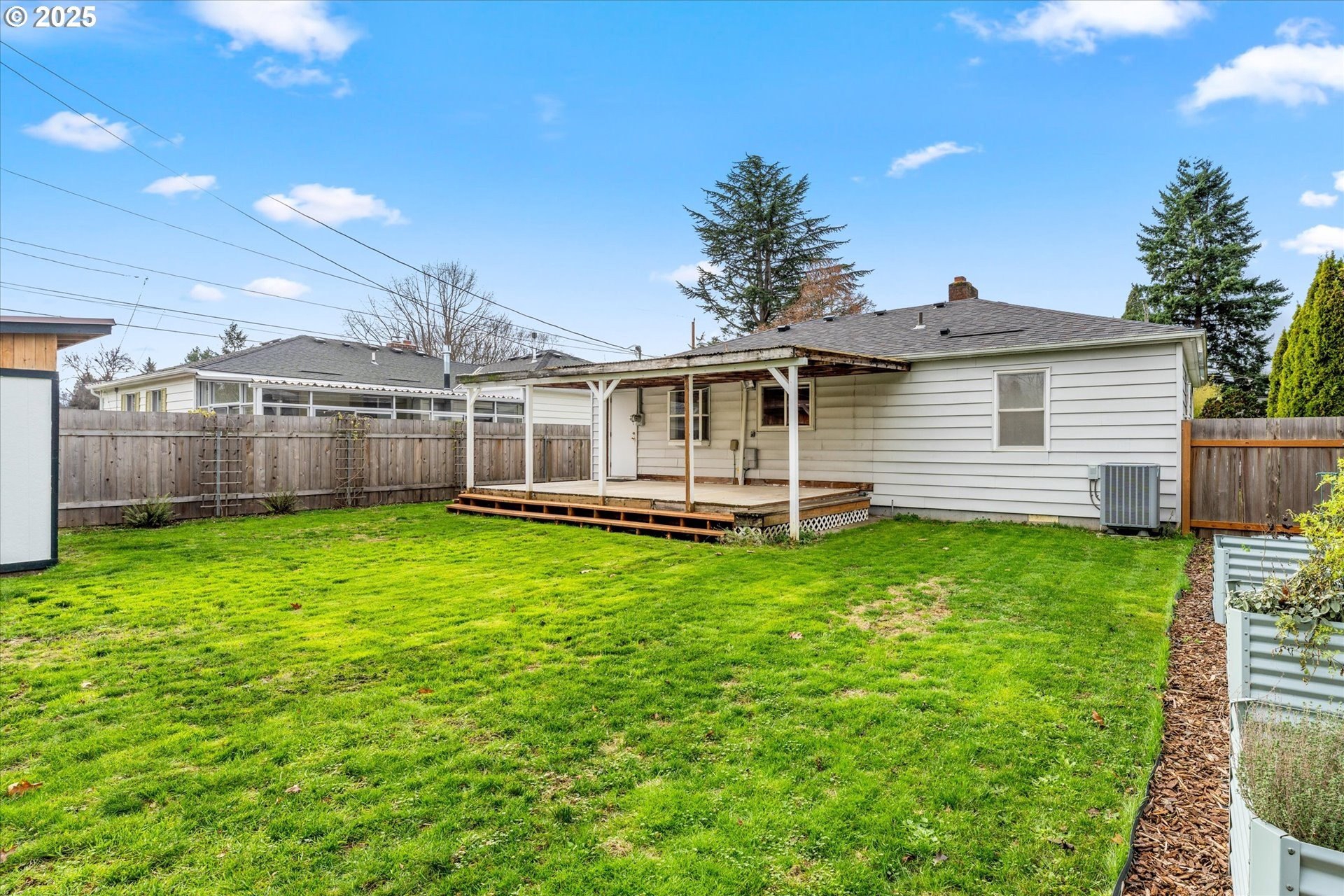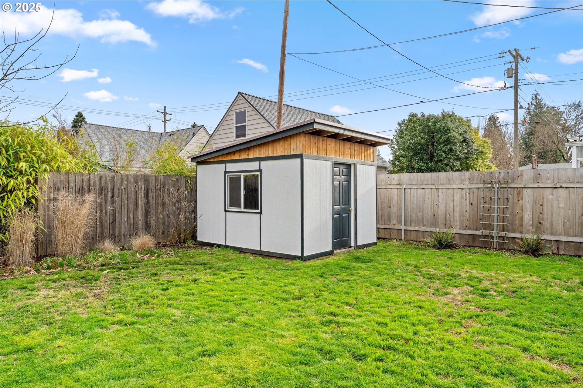 Located in the heart of Portland's Woodstock neighborhood, this single-level home sits on a quiet dead-end street and offers a practical, comfortable layout. The open floor plan features hardwood floors throughout, generously sized windows, and a wood-burning brick fireplace with custom built-ins. Recent updates include a new roof (2021), new heat pump + A/C (2022), new hot water heater (2021), and a new garage door (2021). The home also includes a dedicated laundry/wash room and a 1-car garage. Outside, the large, fully fenced yard provides ample space for gardening, play, and outdoor projects. Planter boxes, a storage shed, and a spacious covered deck add useful functionality. A solid home in a highly desirable location near Woodstock Park, New Seasons, Dining + Shopping on nearby Woodstock Blvd. A must see!!