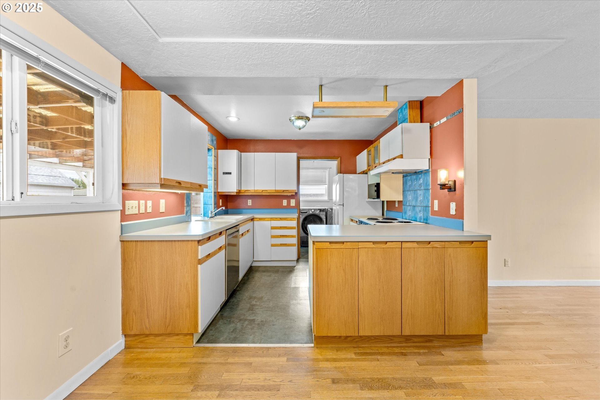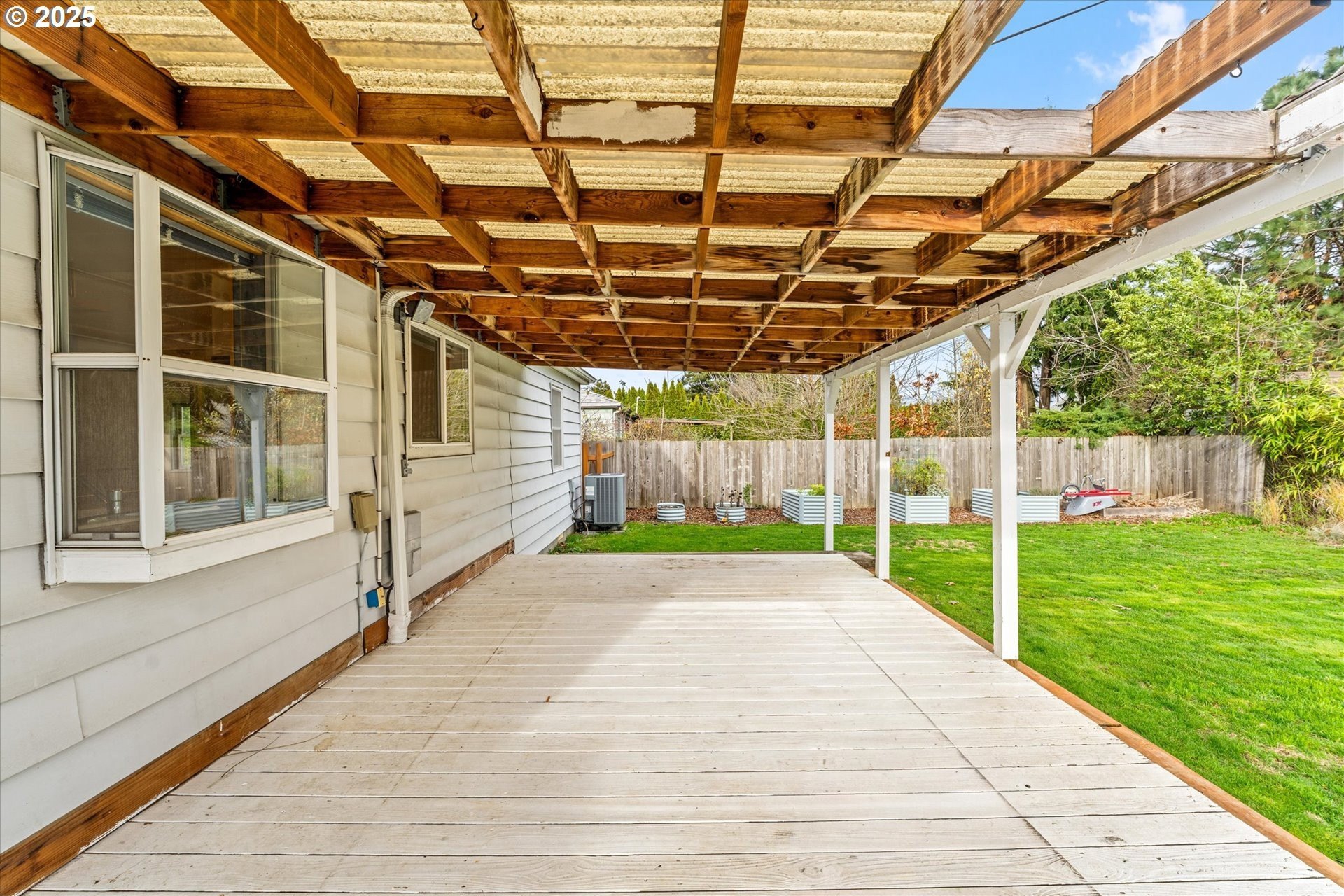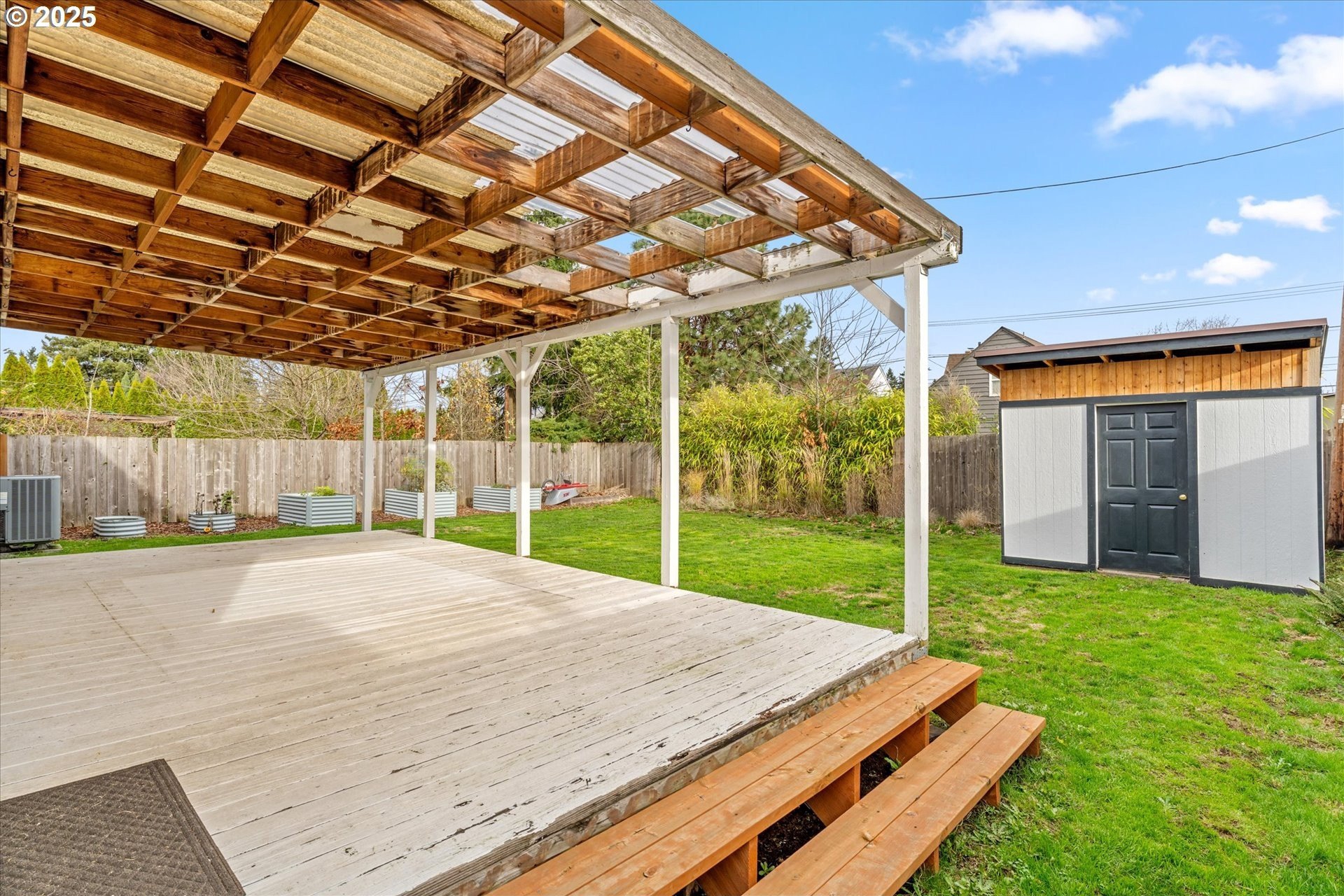 Located in the heart of Portland's Woodstock neighborhood, this single-level home sits on a quiet dead-end street and offers a practical, comfortable layout. The open floor plan features hardwood floors throughout, generously sized windows, and a wood-burning brick fireplace with custom built-ins. Recent updates include a new roof (2021), new heat pump + A/C (2022), new hot water heater (2021), and a new garage door (2021). The home also includes a dedicated laundry/wash room and a 1-car garage. Outside, the large, fully fenced yard provides ample space for gardening, play, and outdoor projects. Planter boxes, a storage shed, and a spacious covered deck add useful functionality. A solid home in a highly desirable location near Woodstock Park, New Seasons, Dining + Shopping on nearby Woodstock Blvd. A must see!!