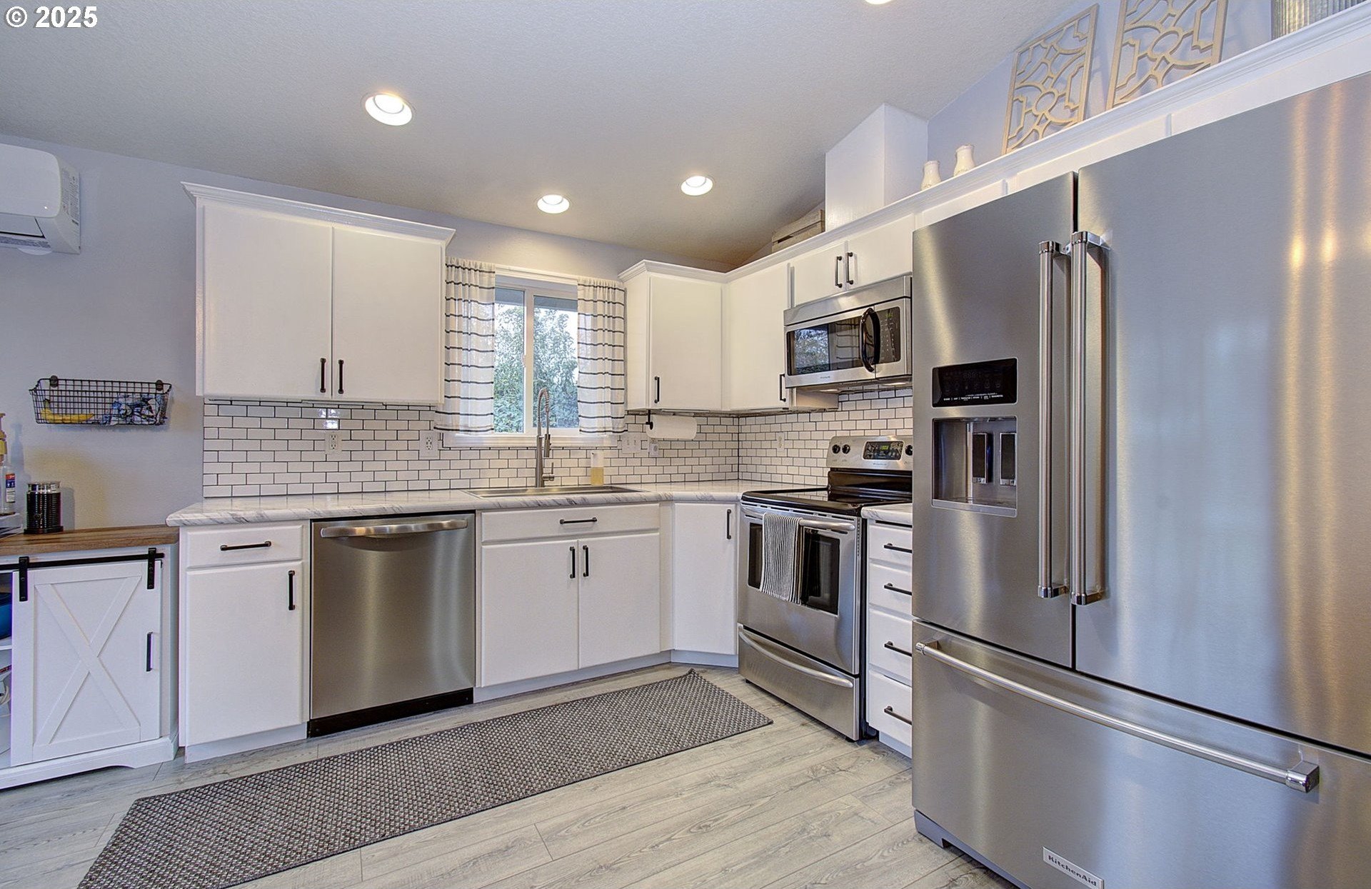 Step inside this charming 3-bedroom, 2-bath ranch-style home and enjoy fresh interior paint, new carpet in the bedrooms, and beautiful laminate flooring throughout the main living areas. The light and bright kitchen feels wonderfully open with vaulted ceilings, an inviting eating area, and a large slider that fills the space with natural light and leads directly to the backyard. It has been tastefully updated with classic subway tile, stainless steel appliances, and new lighting that enhances its modern yet timeless feel. The updated baths, new mini-split heating and air conditioning system, and cozy gas fireplace add comfort and convenience throughout the home. Outside, the large yard offers room to relax or play, with RV parking for added flexibility. Centrally located in the heart of Vancouver and close to shopping, schools, and freeway access, this home is truly move-in ready-cute as a button and ready to go.