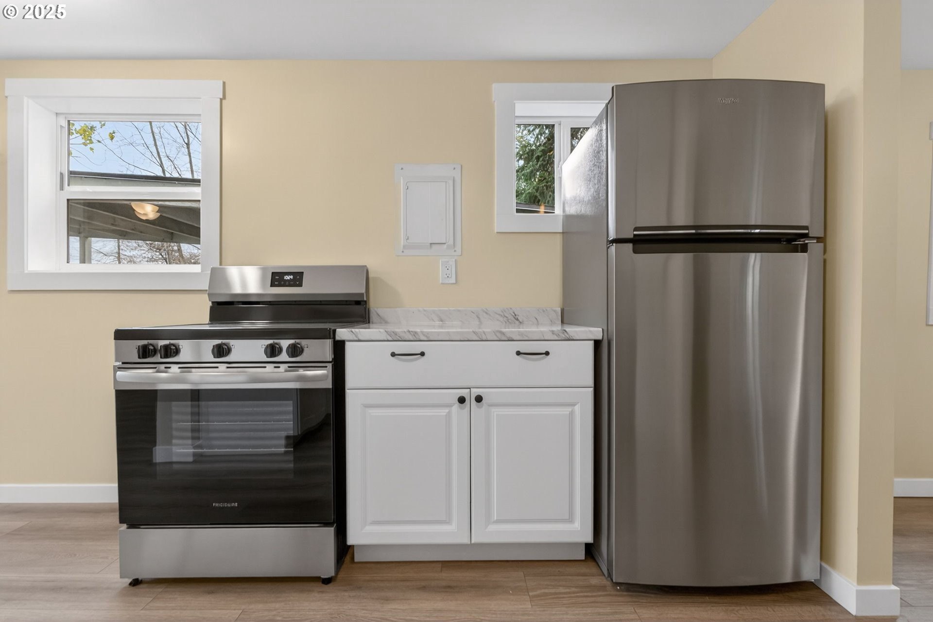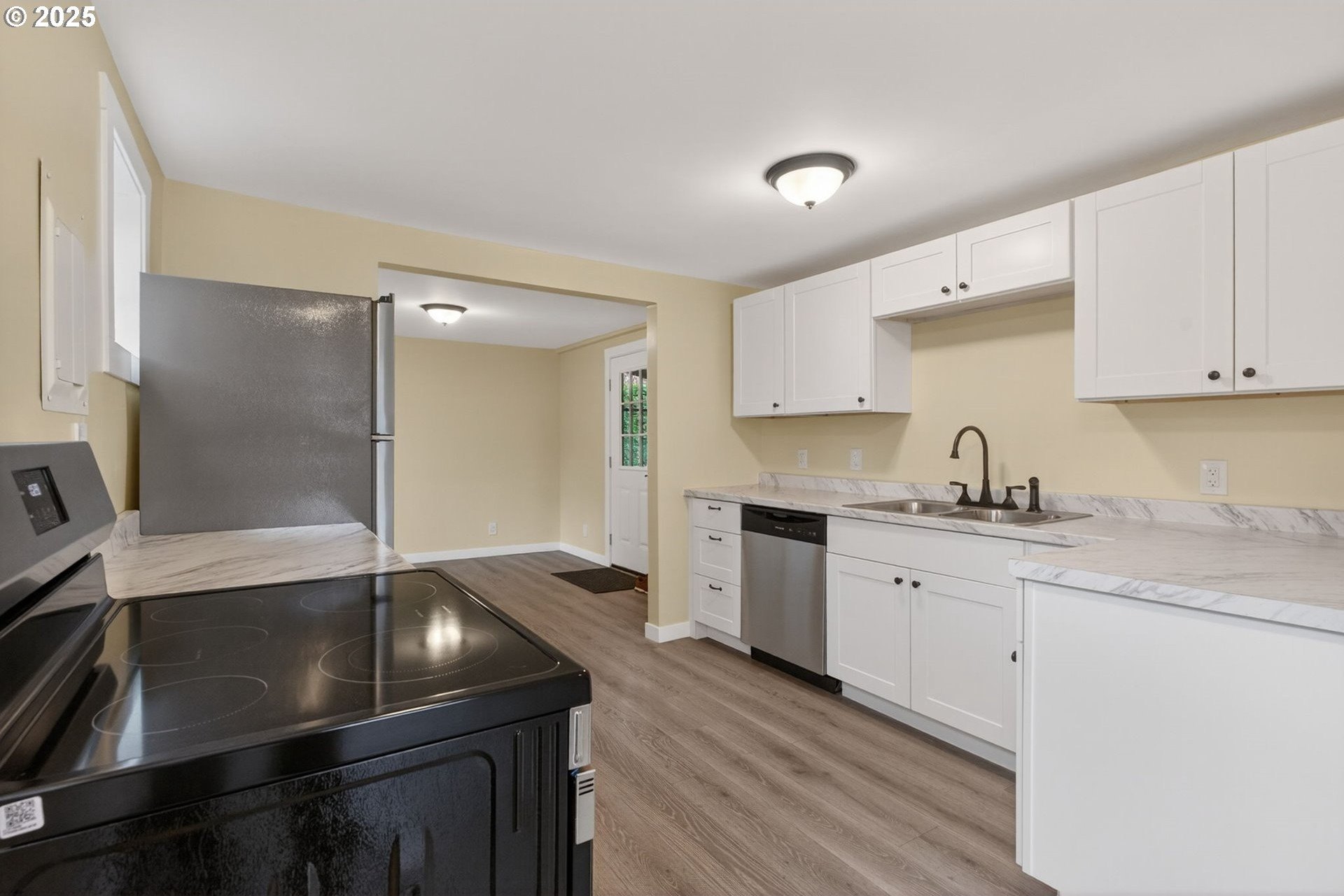 Completely remodeled and truly move-in ready, this corner-lot home has all the updates you want. New appliances, a new mini-split, updated cabinets, paint, flooring, roofing, siding, and a new water heater make it easy to settle right in.The fully fenced backyard, community greenspace, and 8x12 storage shed add plenty of room for both recreation and relaxation.Within easy reach of public transit, I-5, and PDX, the property is nestled in a well-established and friendly community, with several nearby homes also undergoing improvements-contributing to the continued growth and revitalization of the area.If you're looking for a solid, low-maintenance home in a convenient NE Portland location, this one's perfect for you. [Home Energy Score = 6. HES Report