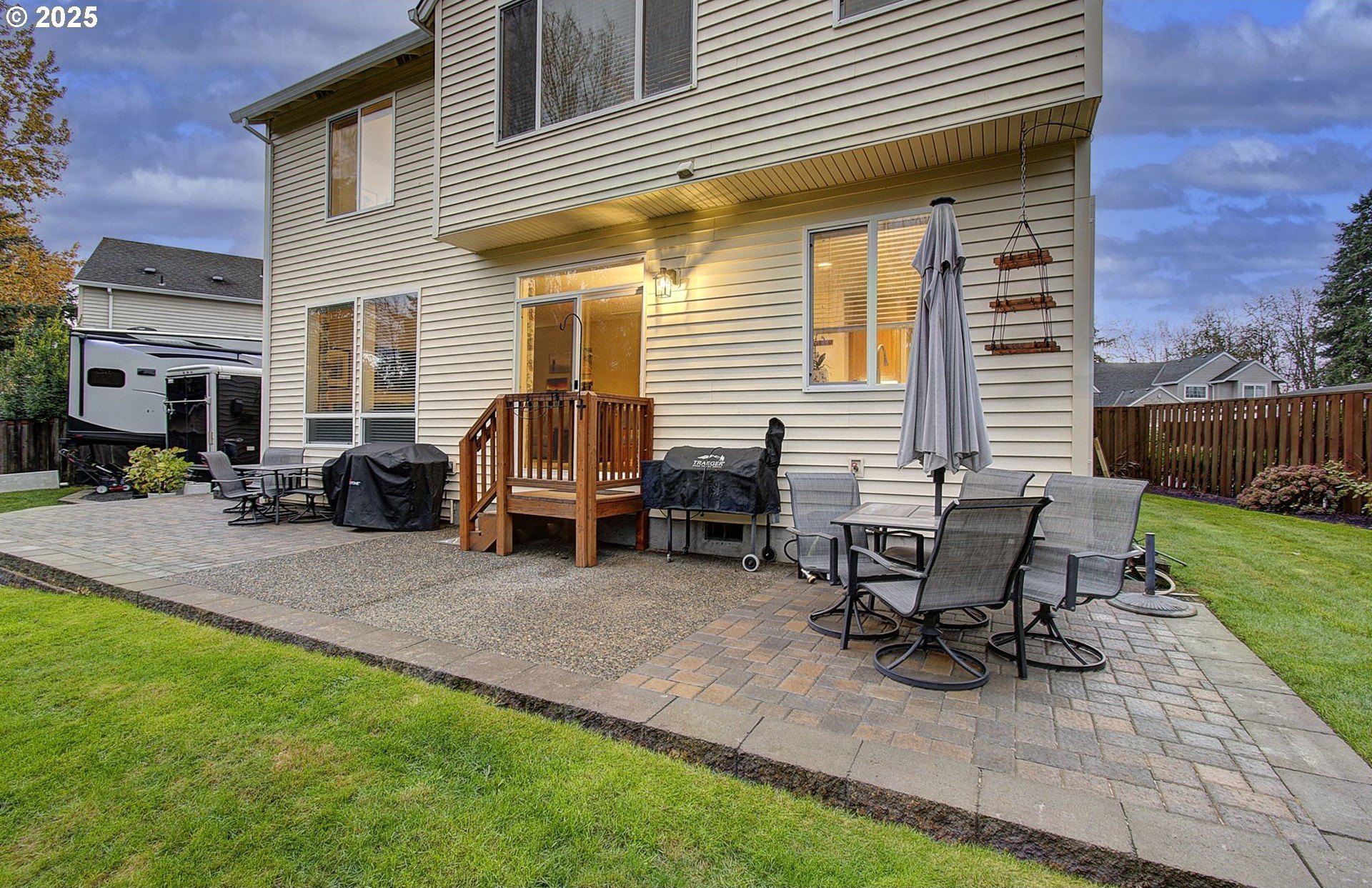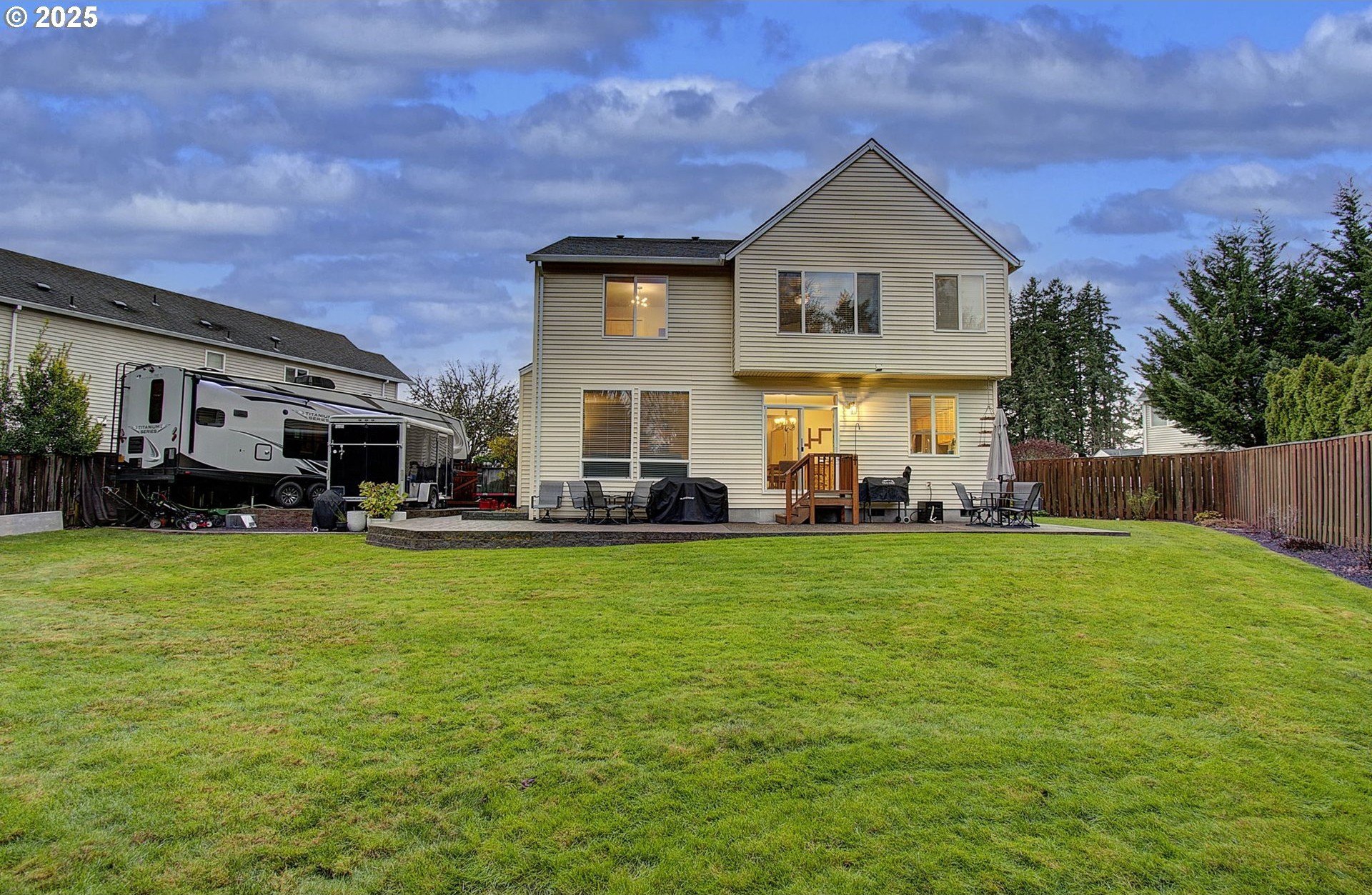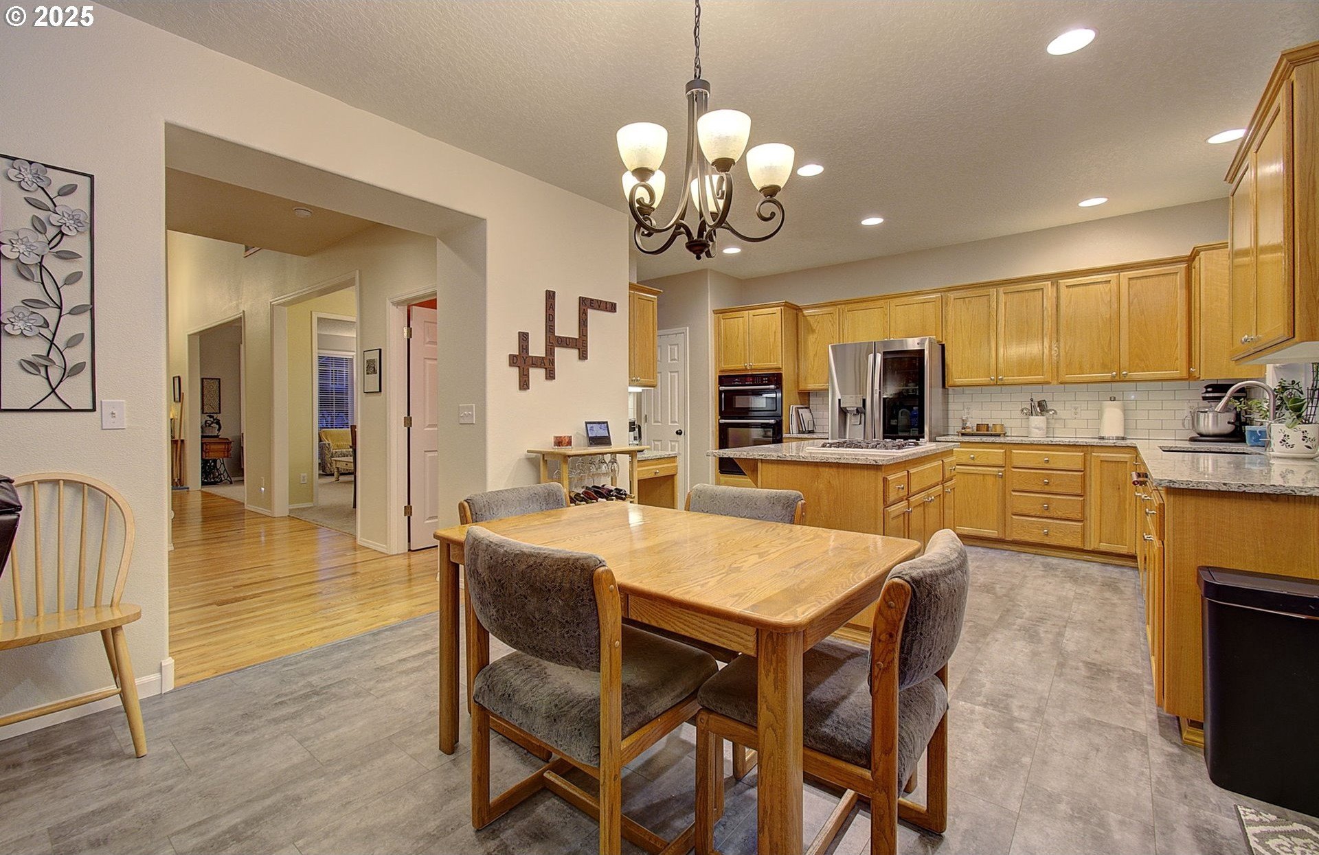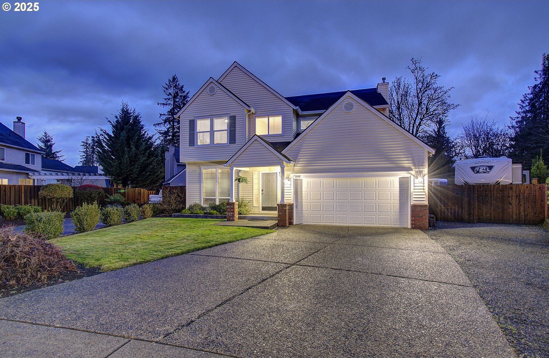 Move-in ready and thoughtfully updated, this 2,810 sq ft home in Parkwood Crossing blends modern comfort with Pacific Northwest charm.Upon entry, you are welcomed into the home by a beautiful high-ceiling foyer area and spotless clean living and dining rooms. The home features light and warm colors, natural hardwood floors, and abundant daylight coming in through the large windows throughout. The chef's kitchen has been modernized with white subway tile and quartz countertops and features a pantry, eating bar with gas cook-top, workstation and a sliding door to the back patio. The casual dining area flows effortlessly to the cozy family room with gas fireplace. More recent updates in the home include areas of refinished and all new flooring, heat pump, and a newer hot water tank. The Bainbridge floorplan boasts closets and storage galore. It offers a main-level office/fourth bedroom (with closet and French doors) and an upstairs bonus room that can easily serve as a fifth bedroom or media room. The spacious primary suite has a walk-in closet, soaking tub, coved ceiling with fan and serene greenspace views.The landscape has been upgraded with terracing to provide ample parking for a large boat/RV/trailers. The backyard is perfect for entertaining and looks out to a green space that will have you again appreciating Oregon's greenery with its maple, Douglas fir and cedar trees. Keep an eye on the deer bedding down by the trees-and know it's going to be a cozy winter watching your local wildlife! Just minutes to shopping, dining, and local schools, it is the notable convenience and livability that keeps this neighborhood a great place to live.