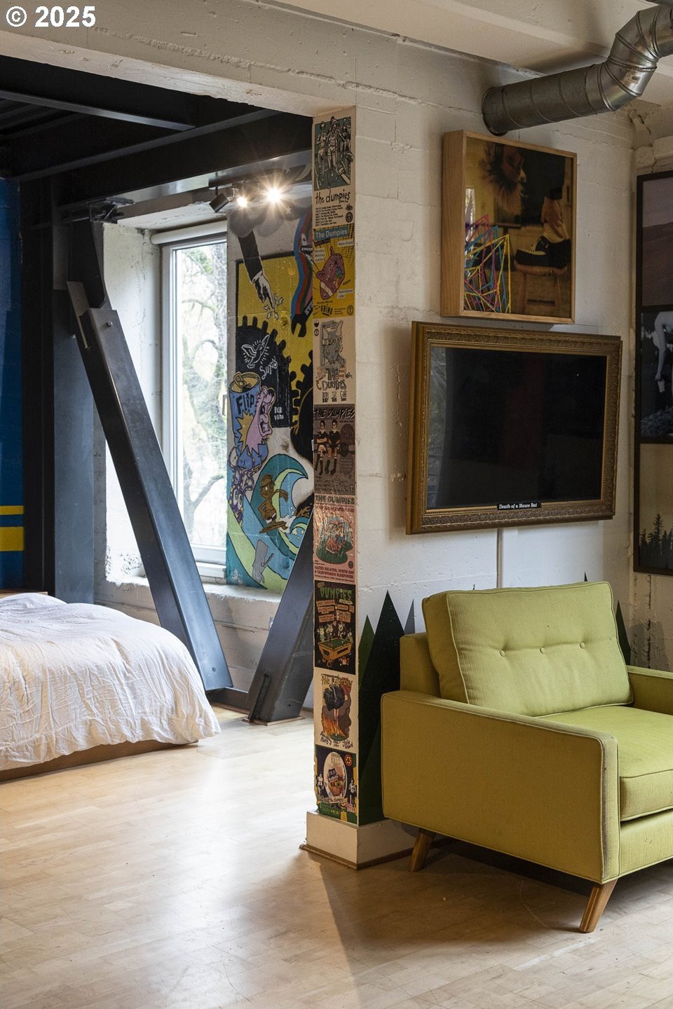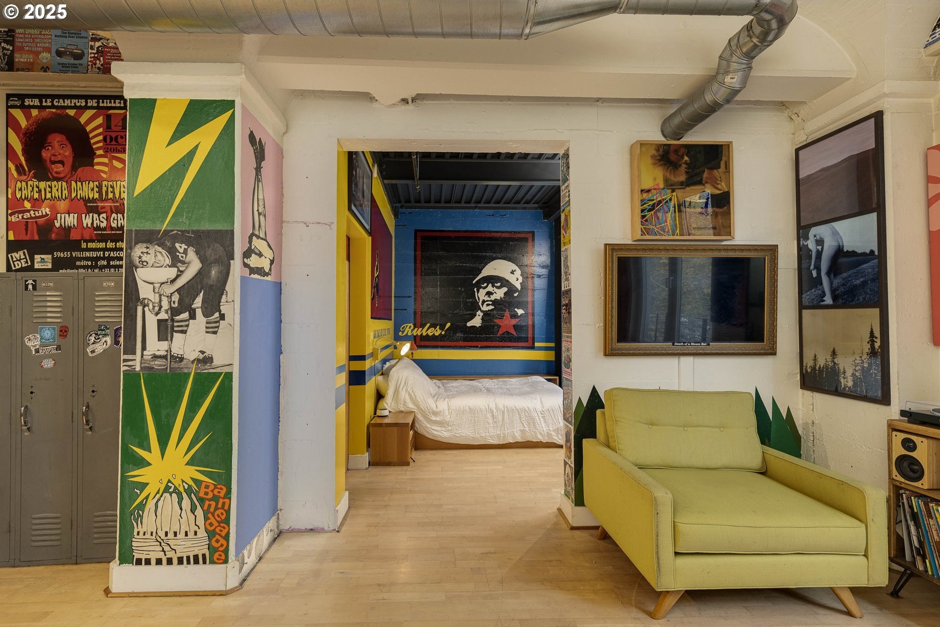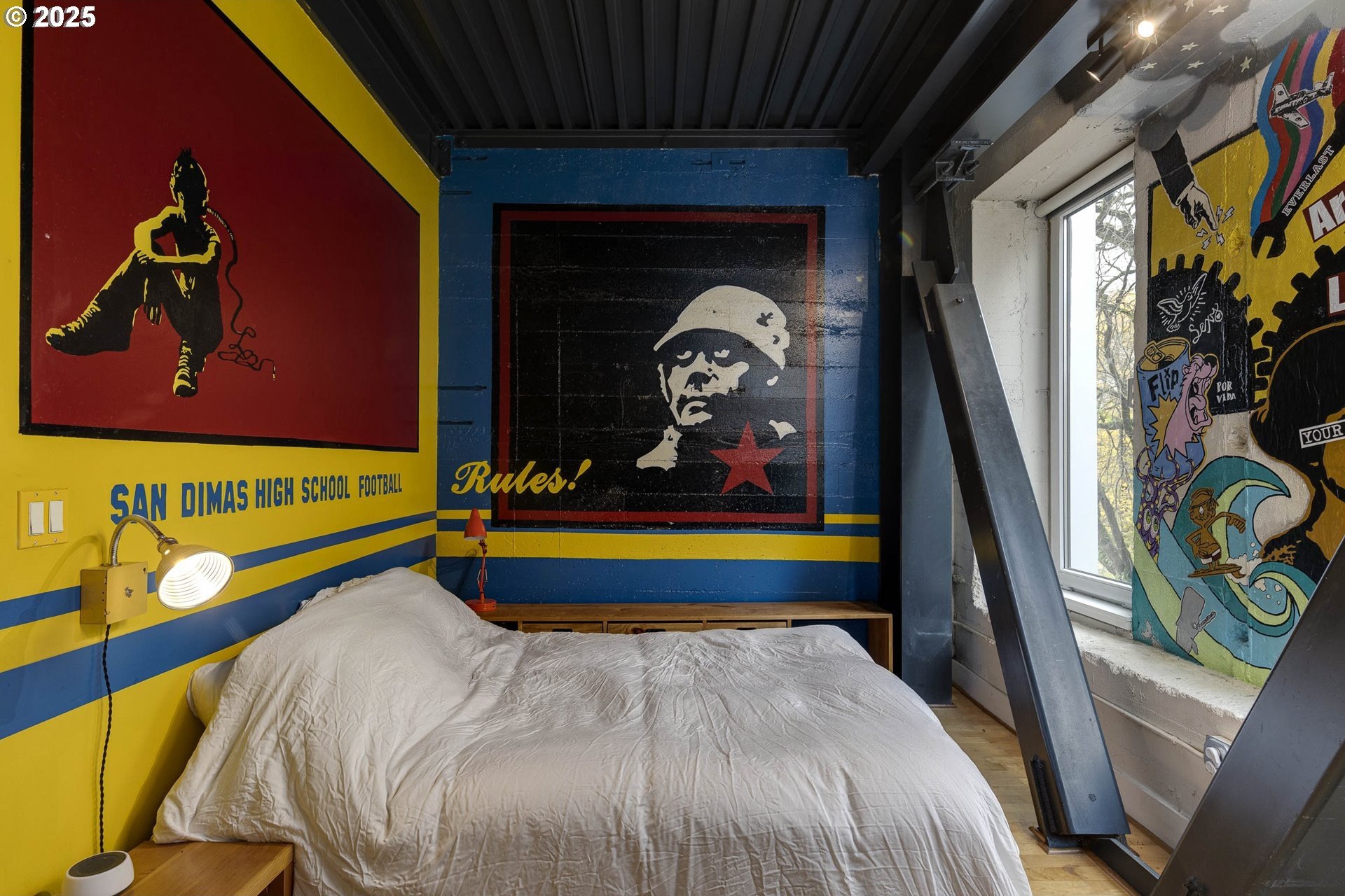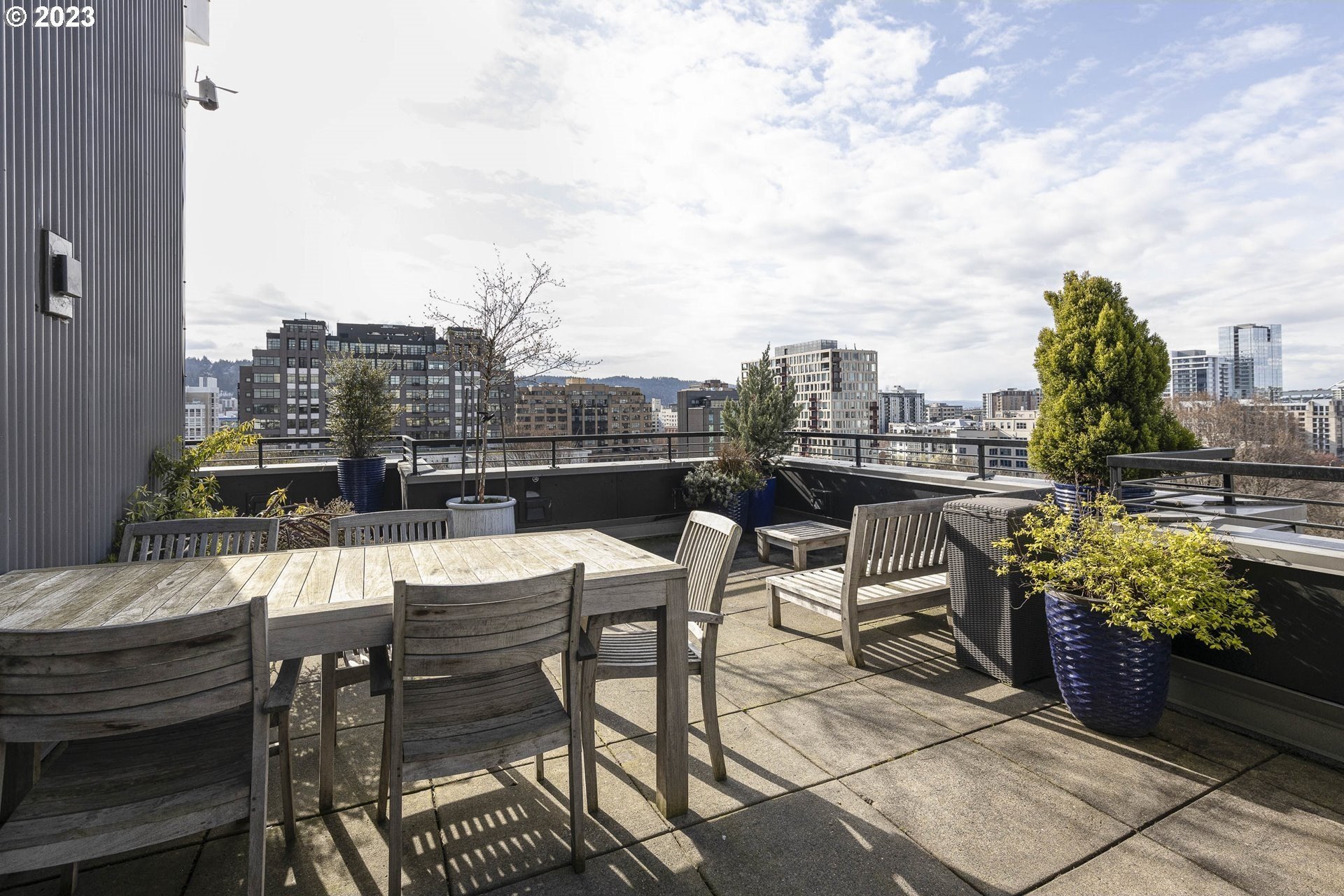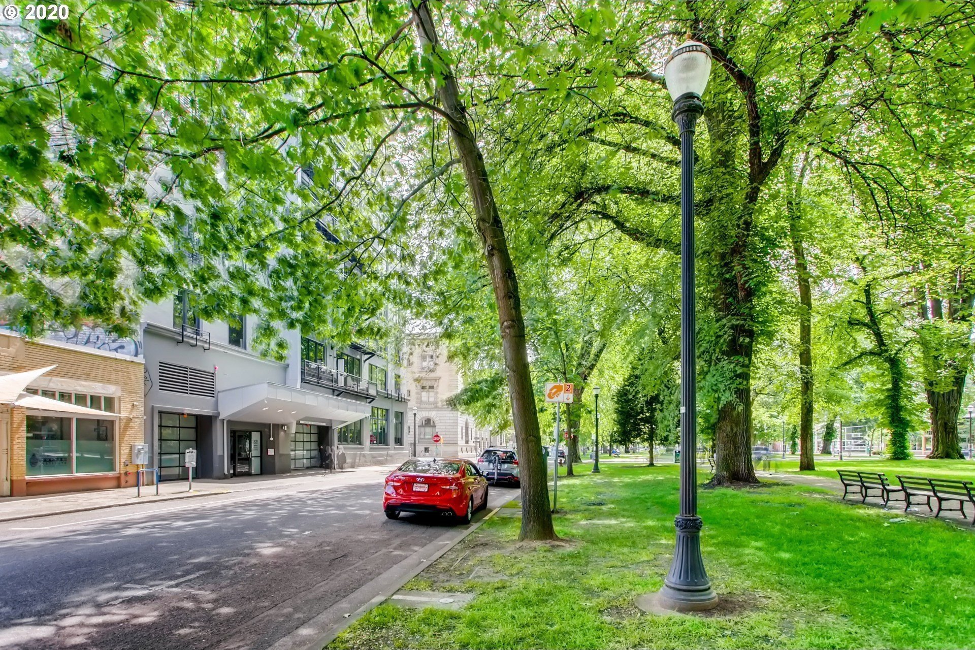 Step into a true artist's loft where raw architectural character meets modern comfort. This striking 4th-floor space channels unmistakable Andy Warhol "Factory" vibes, bringing that iconic NYC loft energy right into the heart of Stumptown. Concrete, steel, soaring ceilings, and an infusion of urban texture create a home that's equal parts creative and contemporary. Set within a historic 1909 warehouse converted into lofts, the unit faces the venerable North Park Blocks, offering a peaceful green canopy just outside your massive European windows. Open them wide and enjoy your own urban treehouse moment. Inside, you'll find all the essentials: A/C, in-unit washer/dryer, granite surfaces, custom tile, stainless appliances, and deeded secure garage parking. The building also features an outstanding rooftop common area and party room with breathtaking city views. With a 99 Walk Score and 99 Bike Score, plus a strong, well-funded HOA with no special assessments, this loft delivers effortless urban living in one of Portland's most vibrant locations.