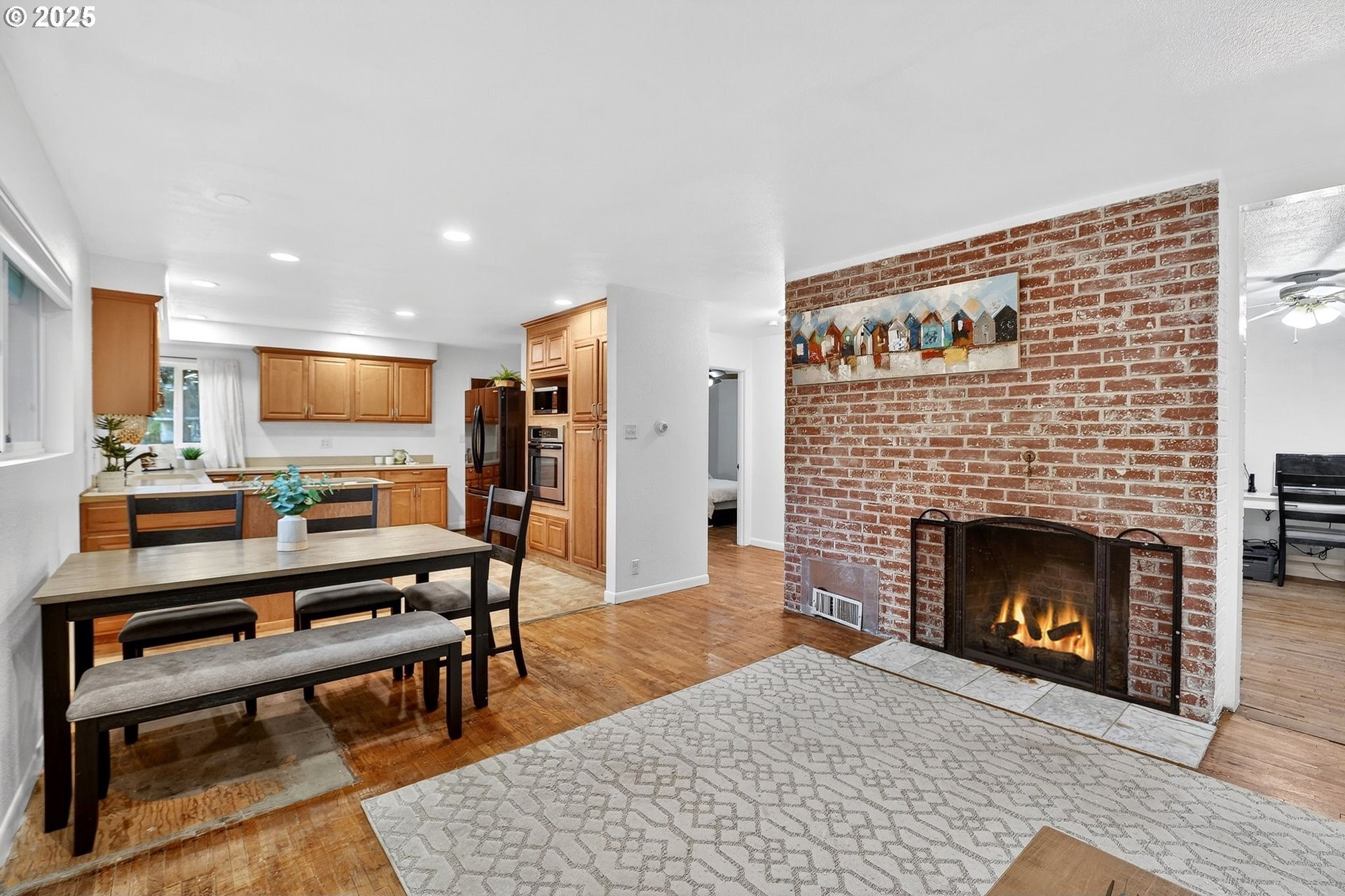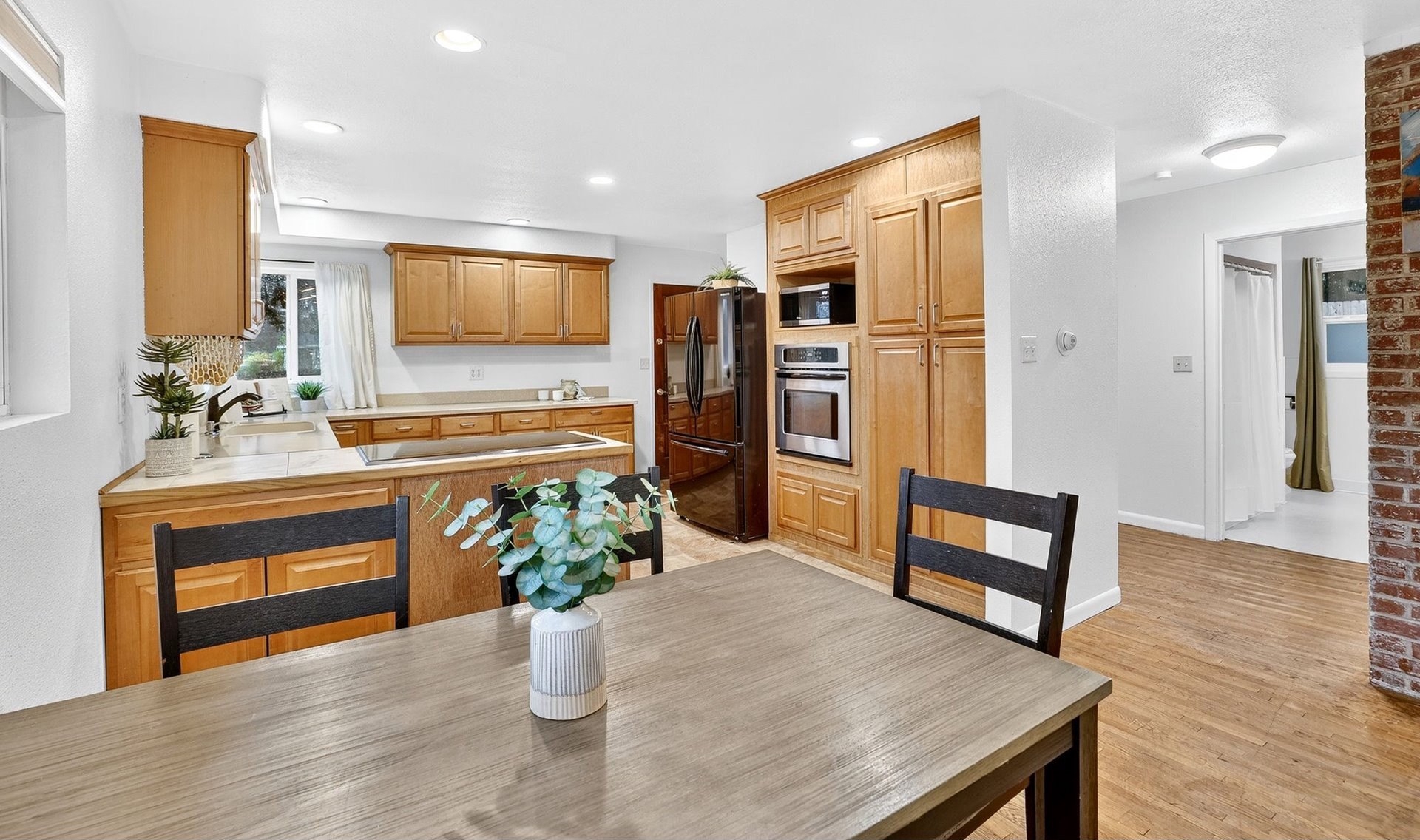 Welcome to this quaint up and coming little neighborhood! This one level ranch is the perfect starter home for adding your touches and making it your own. The bright open kitchen, dining and living room make up the heart of the home with a brick fireplace center stage in the middle. The bathroom, laundry area and family room separate one bedroom to the left, and two to the right of the house. New furnace just installed. The 16x13 workshop is a finished unconditioned space perfect for home improvement tinkering or a relaxing man cave/she shed hangout that is not included in the square footage. The huge 10,340 SF lot lends possibilities for RV parking or building a detached shop or ADU (buyer to do their due diligence). Ask your agent for the attached list of great amenities, including info on the Trolley Trail walking/bike path located just one block away.