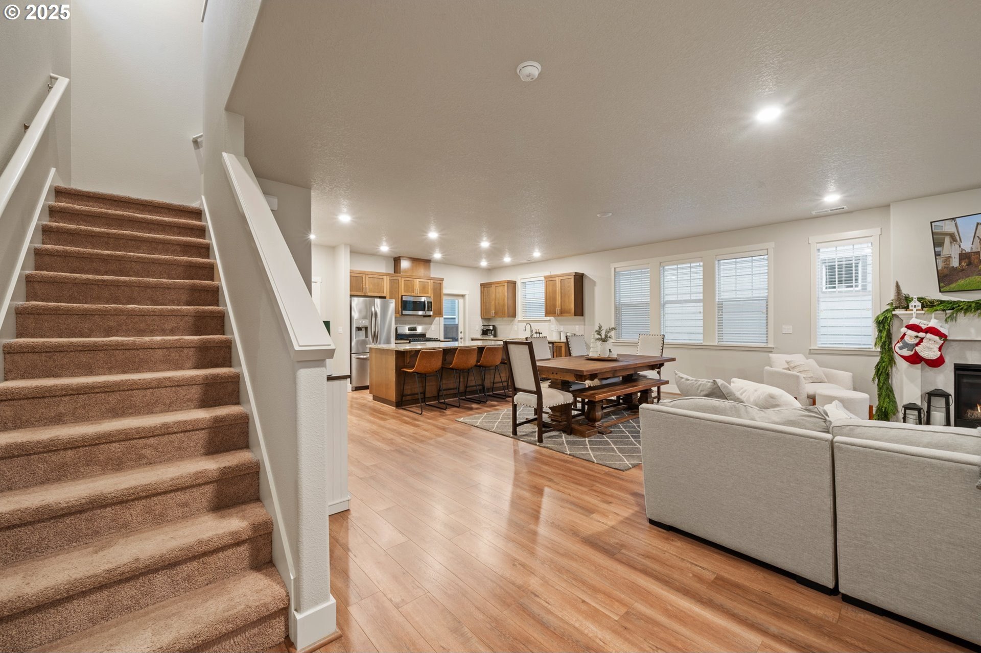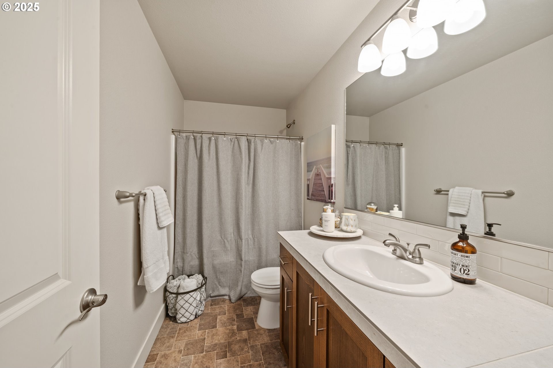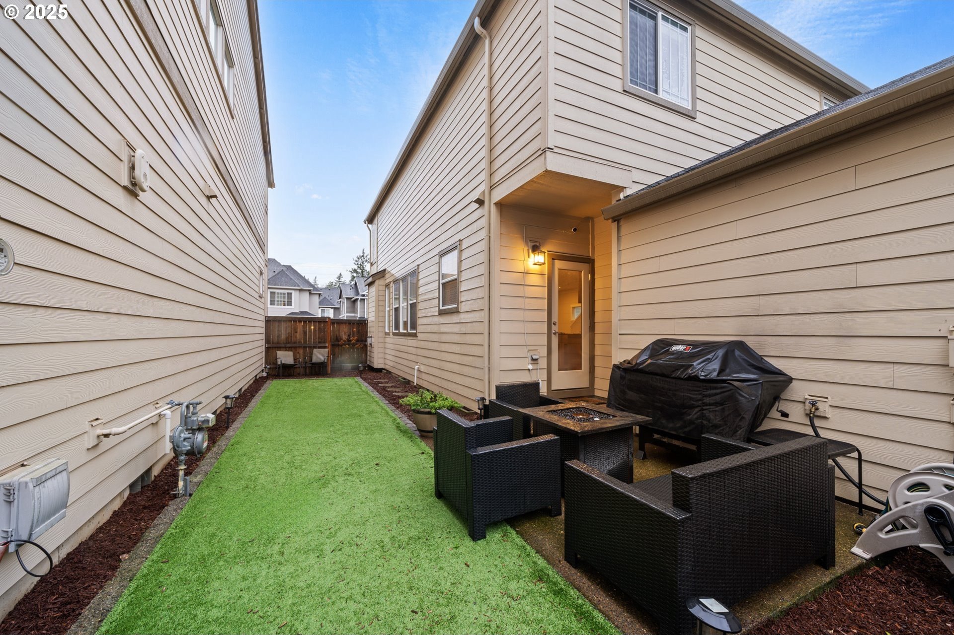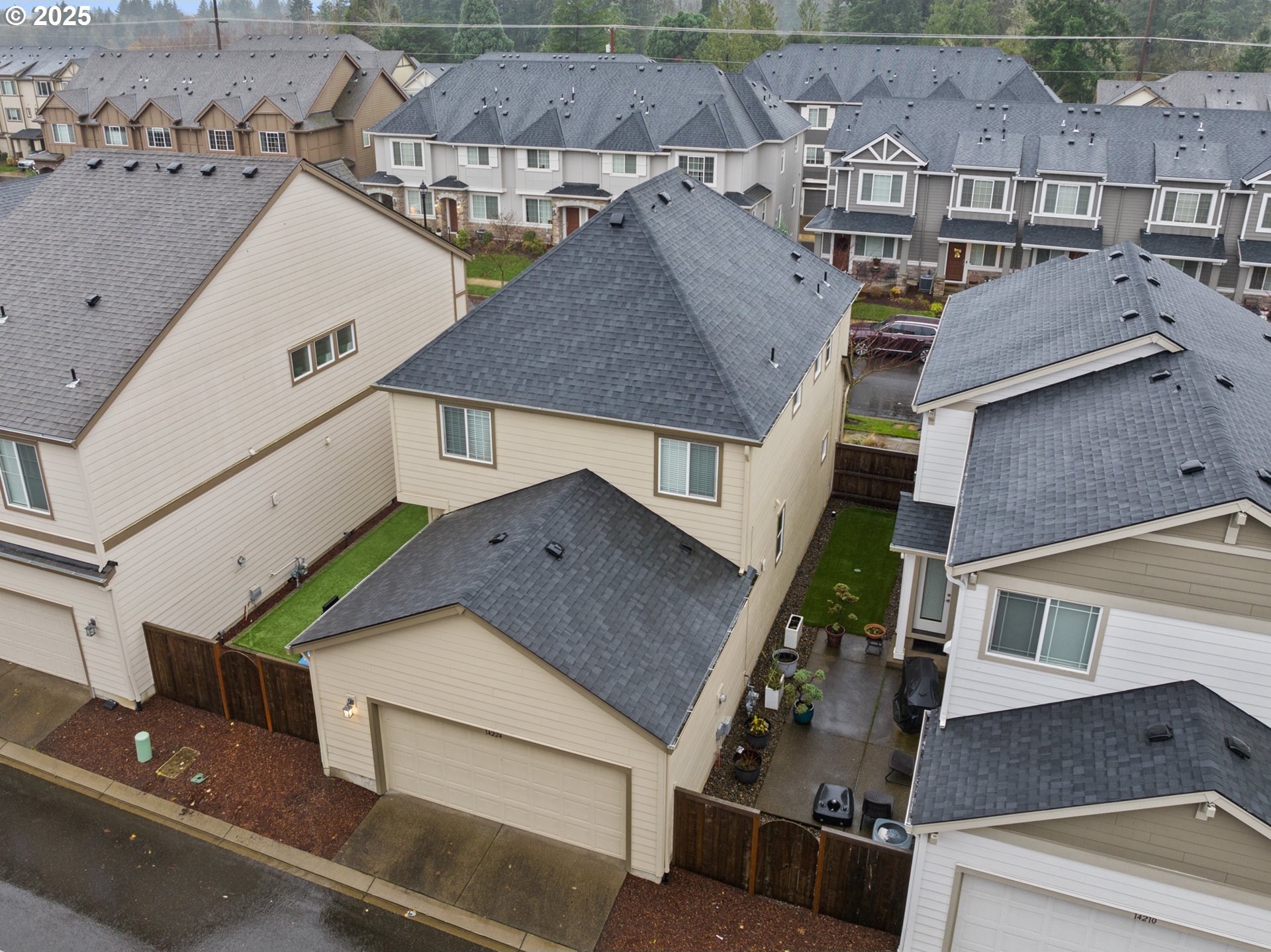 Welcome to Bull Mountain, where this immaculate Contemporary Craftsman with striking curb appeal and charming stone accents welcome you. Inside, the light-filled open concept design features a spacious living area anchored by a cozy fireplace. The kitchen is perfectly set up for entertaining, boasting shaker style cabinetry, sleek subway tile backsplash, stainless steel appliances, and a massive granite island with bar-style seating. Upstairs, the primary suite serves as a true haven, highlighted by coved ceilings, plush carpeting, and a private ensuite bathroom with dual sinks and soaking tub. The home is completed by a private, fully fenced side yard with turf designed for a low-maintenance lifestyle and an established HOA offering convenient amenities including a gym, outdoor pool, and clubhouse. Nearby, experience the art of easy living minutes from parks, Progress Ridge, Willamette Valley wineries, and freeways.