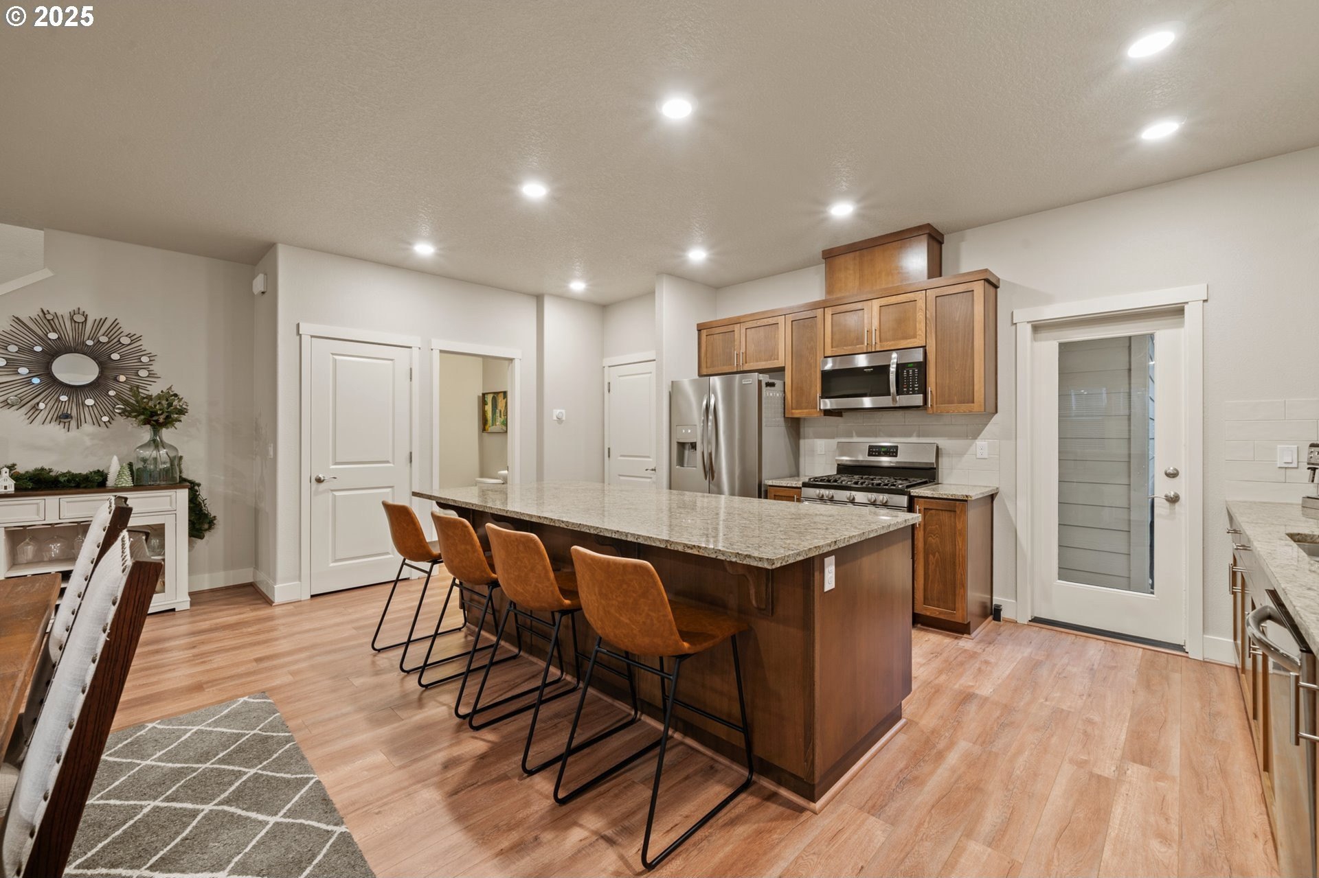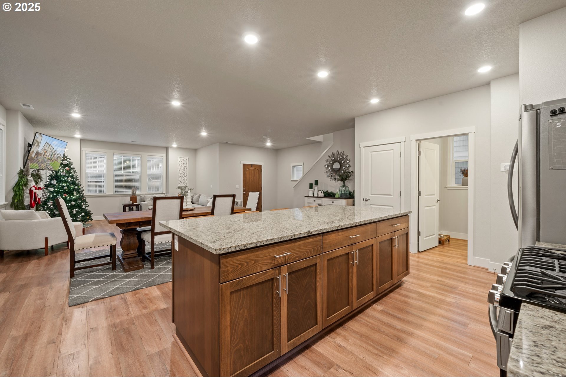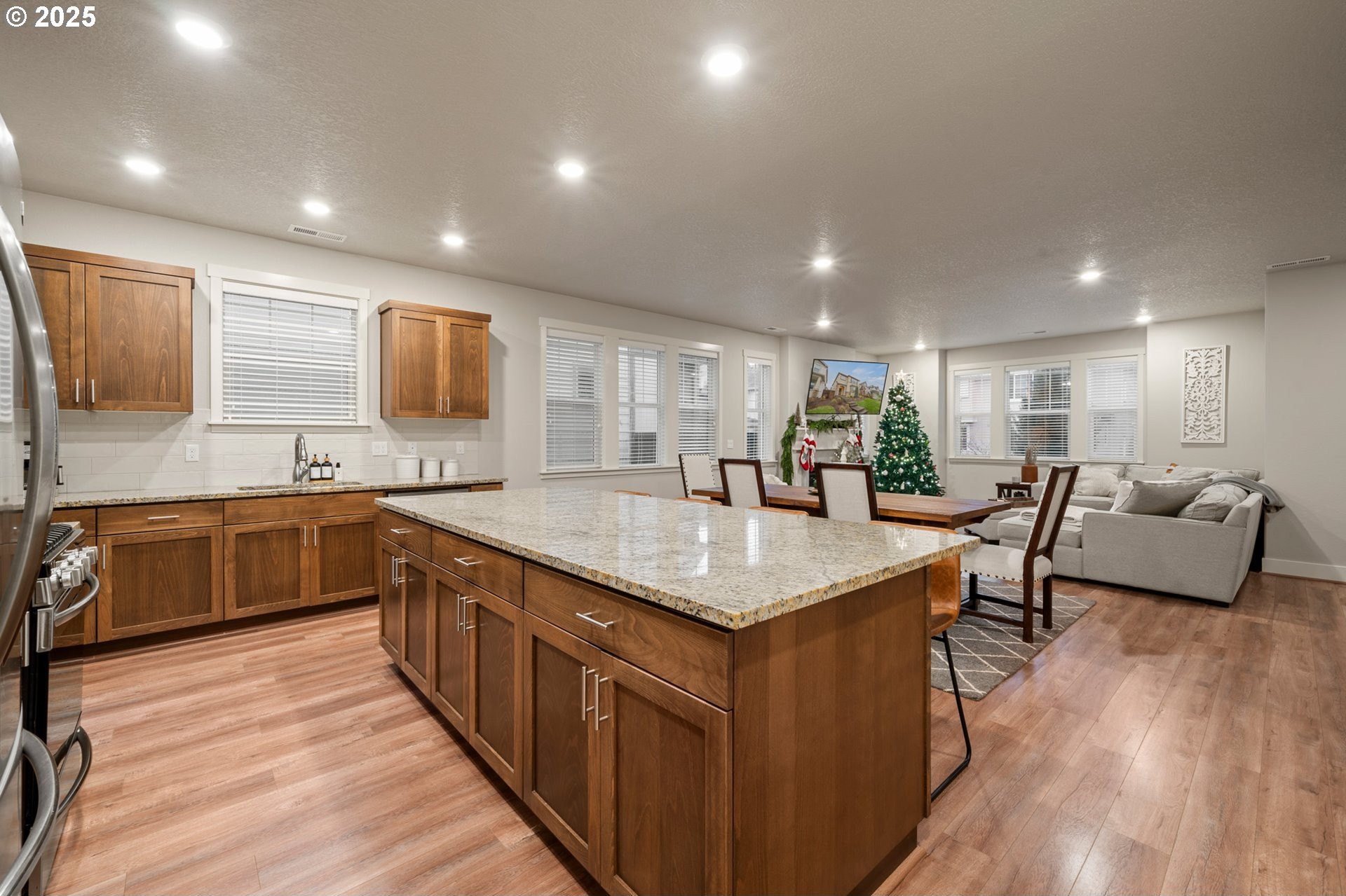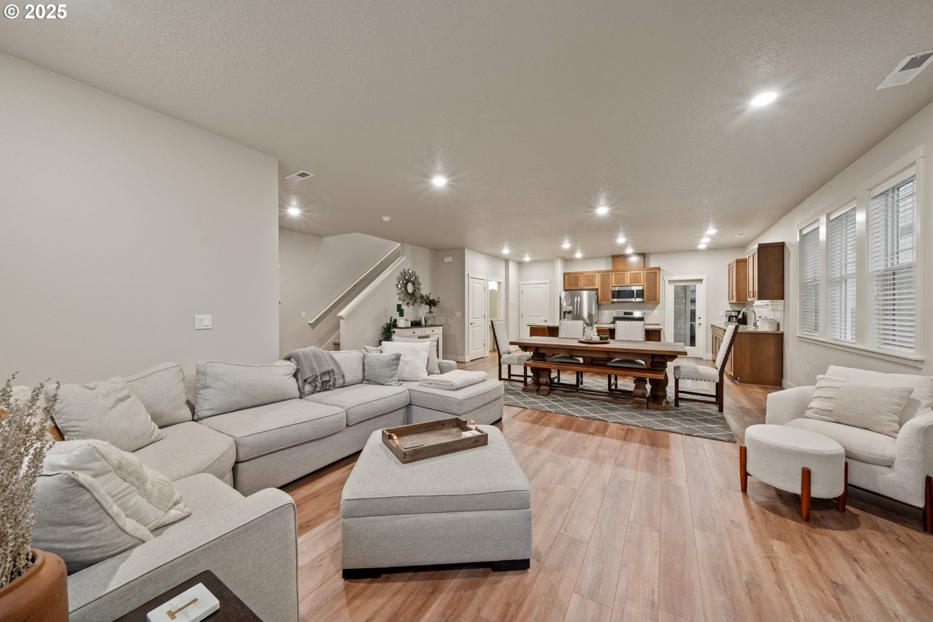 Welcome to Bull Mountain, where this immaculate Contemporary Craftsman with striking curb appeal and charming stone accents welcome you. Inside, the light-filled open concept design features a spacious living area anchored by a cozy fireplace. The kitchen is perfectly set up for entertaining, boasting shaker style cabinetry, sleek subway tile backsplash, stainless steel appliances, and a massive granite island with bar-style seating. Upstairs, the primary suite serves as a true haven, highlighted by coved ceilings, plush carpeting, and a private ensuite bathroom with dual sinks and soaking tub. The home is completed by a private, fully fenced side yard with turf designed for a low-maintenance lifestyle and an established HOA offering convenient amenities including a gym, outdoor pool, and clubhouse. Nearby, experience the art of easy living minutes from parks, Progress Ridge, Willamette Valley wineries, and freeways.