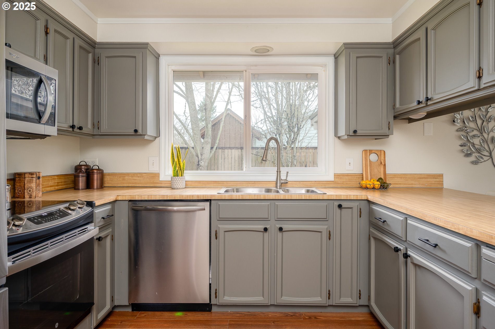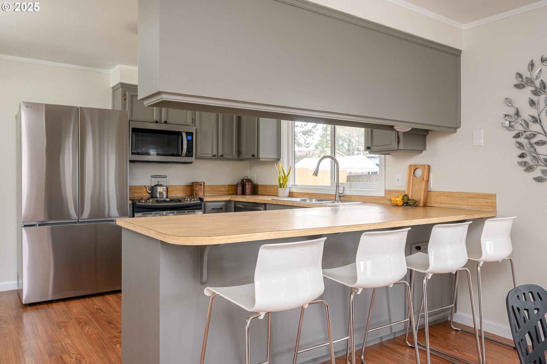 Don't just drive by! This home offers a wonderful yard with a covered patio and a long list of thoughtful updates. Improvements include two new bathrooms, new interior doors, new flooring in the kitchen, newer carpet in the family room, and newer laminate flooring in the living room and hall. The home also features newer vinyl windows, newer interior and exterior paint, and a newer roof. A gas fireplace and gas stove were installed approximately two years ago. Additional updates include refreshed light and plumbing fixtures, updated door and cabinet hardware, and appliances including the refrigerator and stove-making this a well-maintained, move-in-ready home.