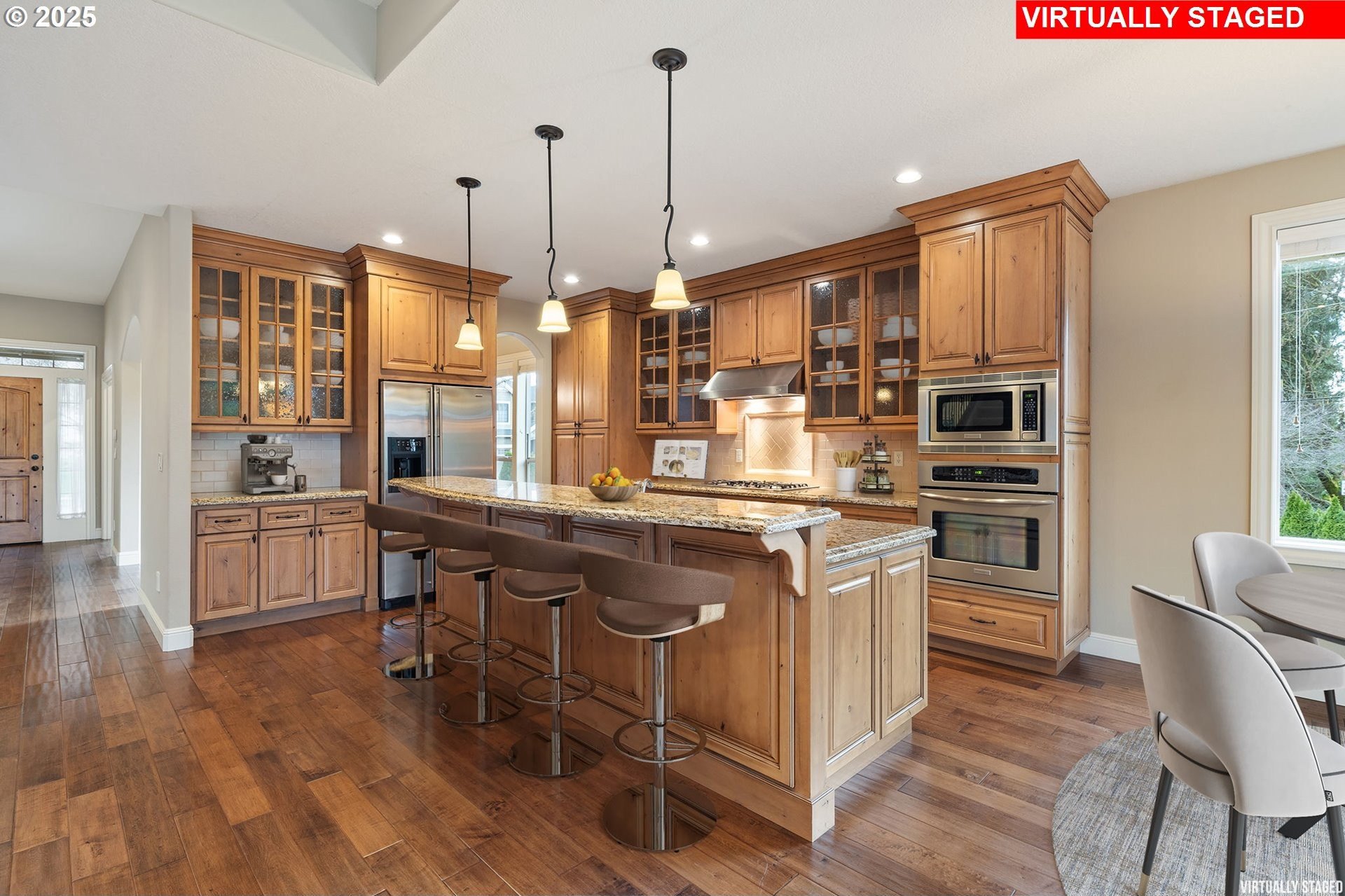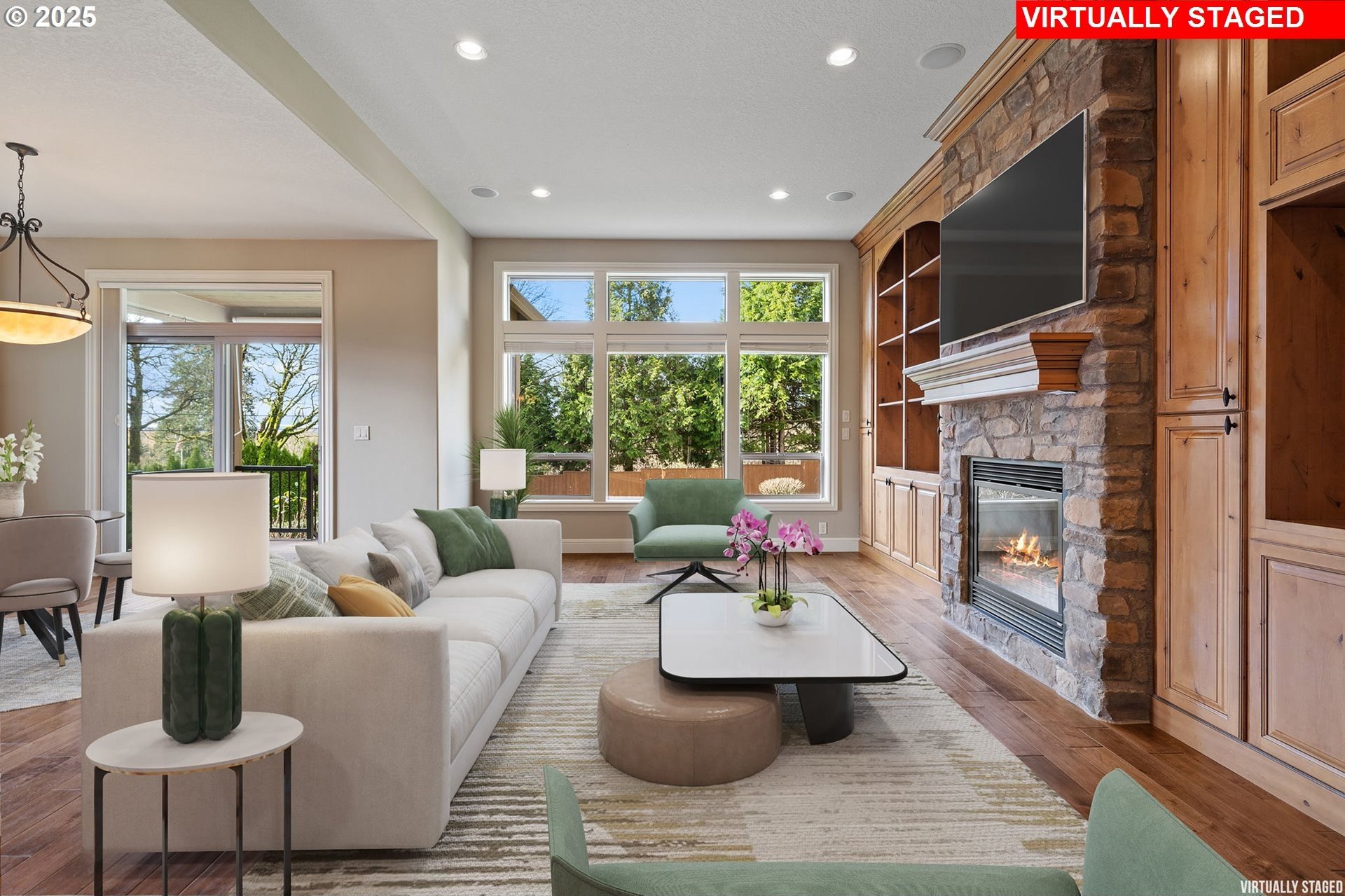 This amazing home is conveniently located in quiet cul-de-sac & made for entertaining. From the gourmet kitchen with SS appliances with easy access to the outdoor living space with inviting well manicured grounds, you will be impressed. The Kitchen with dramatic granite counter tops, is open to the gathering room and you will find a large granite island that is more than enough room for 2 chef's. With an impressive amount 0f cabinets, there is more than enough room to store all your housewares. The kitchen overlooks the adjoining abundant great room, with a gas fireplace surrounded by beautiful stonework and built in shelving, finished with crown molding. Perfect for the cozy conversation. Enjoy dinners in the prestigious formal dining room surrounded with magnificent natural light. After your full day, retire for the evening in the main floor Primary Suite, that welcomes you into a generous peaceful sanctuary. The primary bathroom features double vanities, a spacious shower, Large tub, private water closet and a well appointed walk-in closet. For an extra touch, you will enjoy the view into the serene back yard that is sure to help you relax at the end of your day. On the main floor there are an additional two considerable bedrooms that add to the sought after main floor living accessibility. In addition to this living space there is front multi purpose room that could be used for and office, den or formal sitting room, in all there are endless possibilities. On the upper level, there is a well appointed private bedroom with a bathroom and sitting area, perfect for that guest that likes their quiet time. There will be so manyspectacular gatherings in the beautifully landscaped & covered patio area or imagine tranquil morning coffee listening to all of natures sounds.This home has been well maintained and has only had one owner, which will be evident when you tour this amazing home. Make this your next home. 15 min to PDX, Shopping, Waterfront.