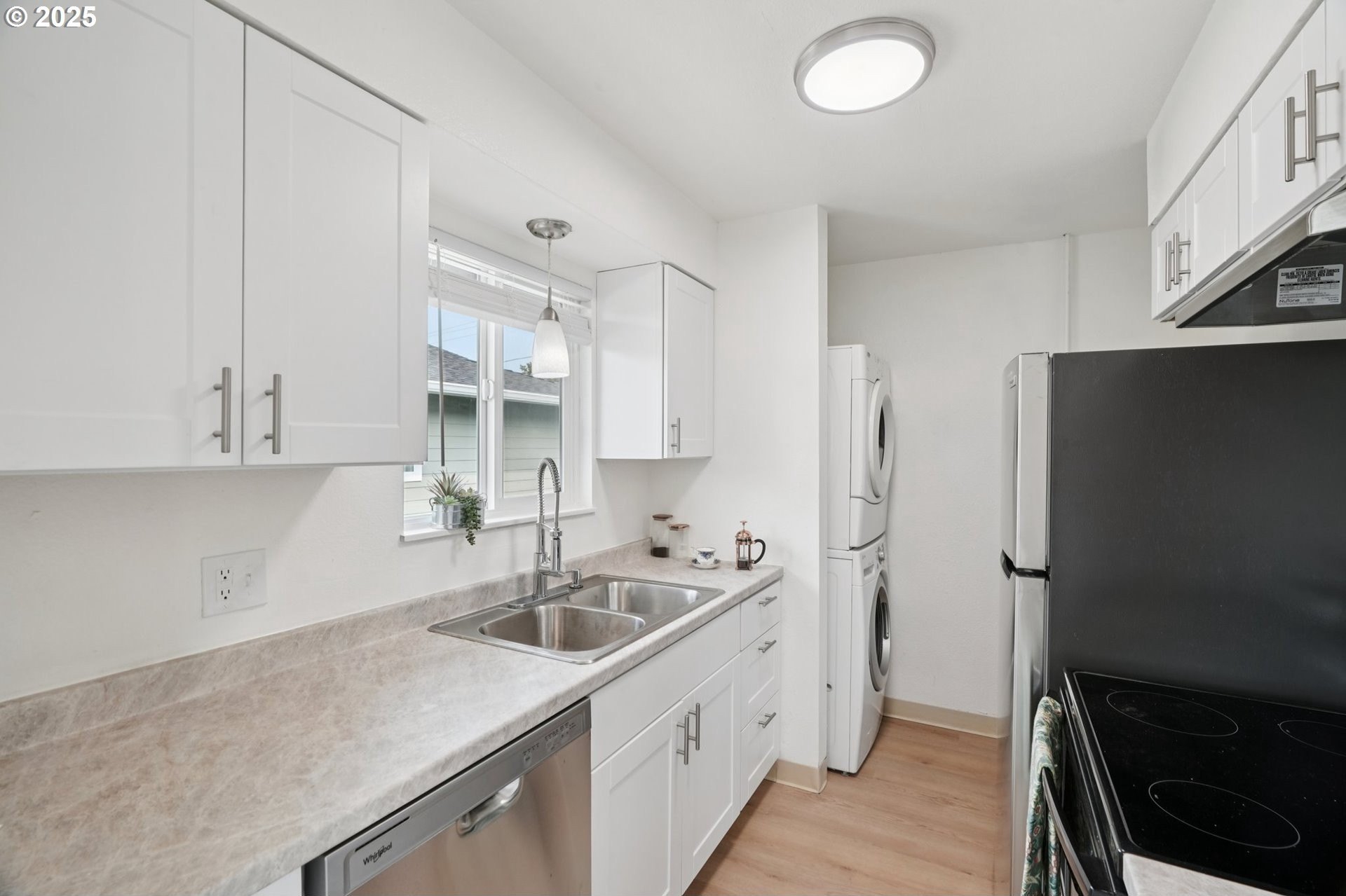 Welcome home to this completely remodeled 2-bedroom 1 bath condo with private deck! All new appliances and washer/dryer included. Move in ready then relax. No work to do here! This condominium is in a quiet and secluded neighborhood. It has 798 sqft of living space and a shared garage with a storage closet. This cozy unit is perfect for first-time homebuyers or those looking to downsize. It has some recently completed updates including a new roof, siding, gutters and windows. Enjoy the peace and tranquility of the neighborhood. Conveniently located near shopping, dining, and entertainment. Don't miss out on this opportunity. The HOA covers exterior maintenance, water, sewer, and garbage. Located close to extra RV parking and a community dog park. This property has no rental cap, making it a great investment opportunity.