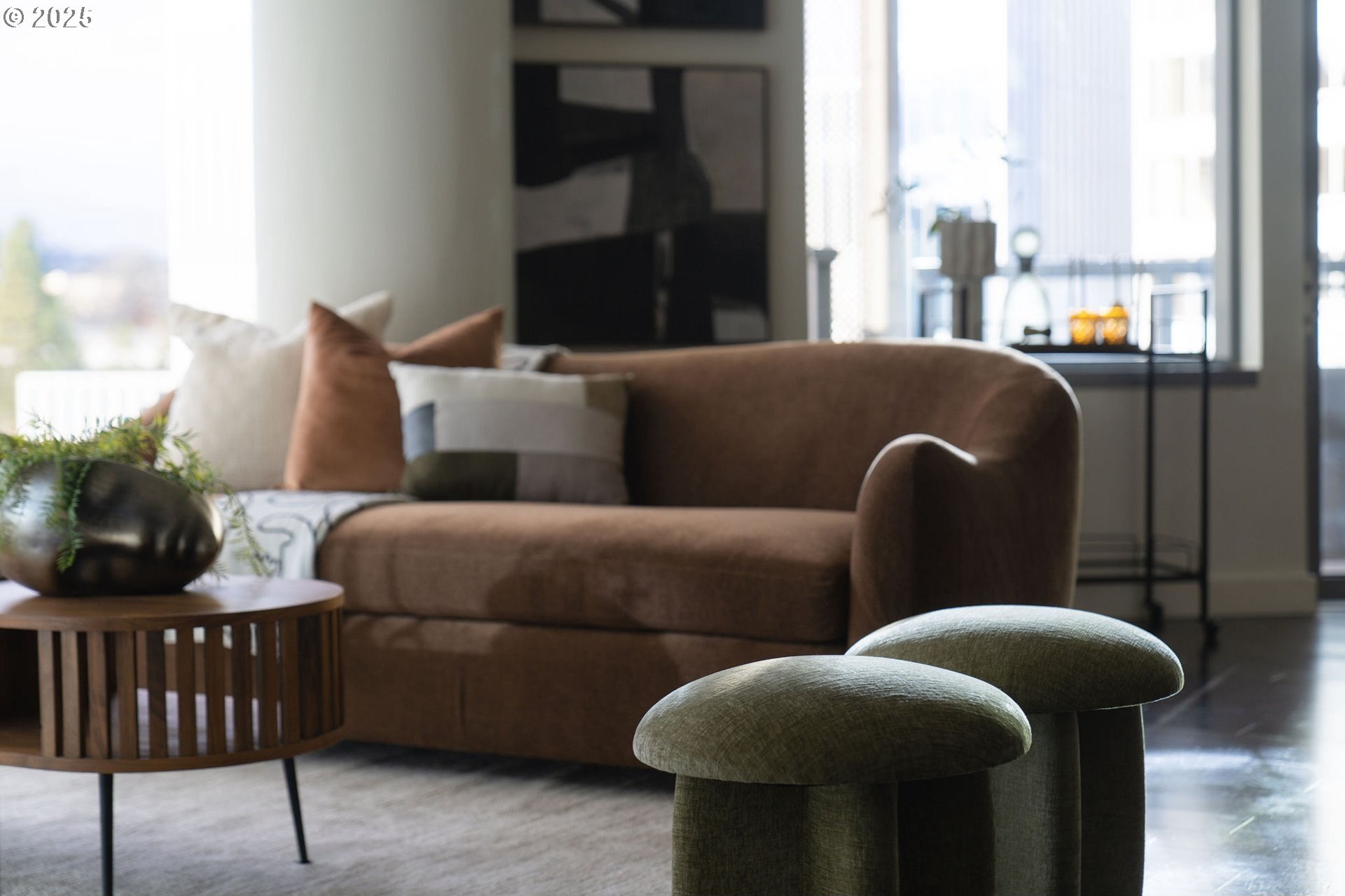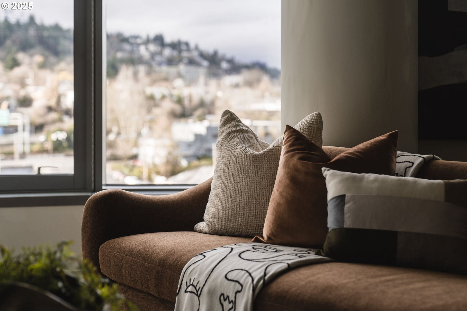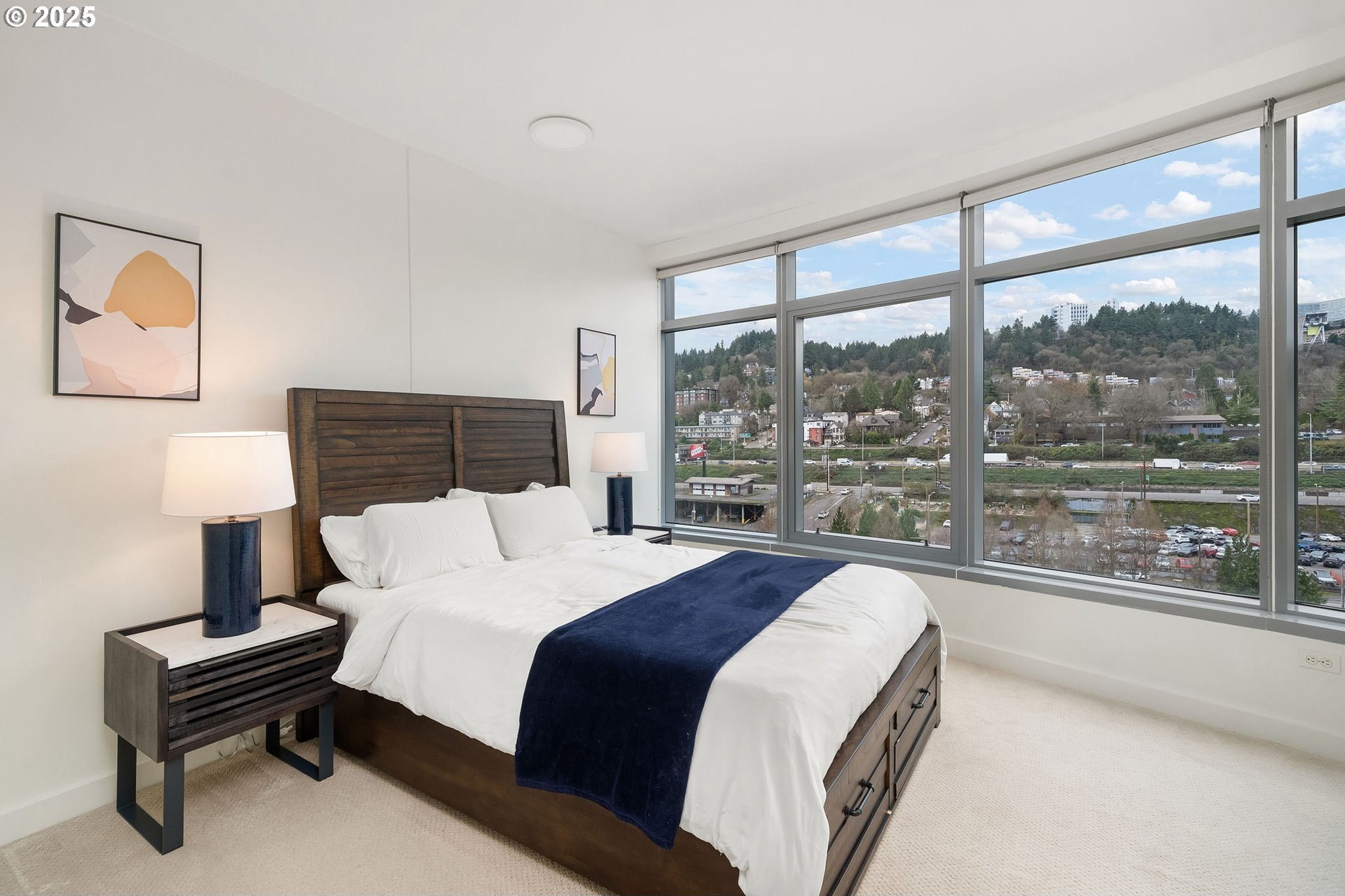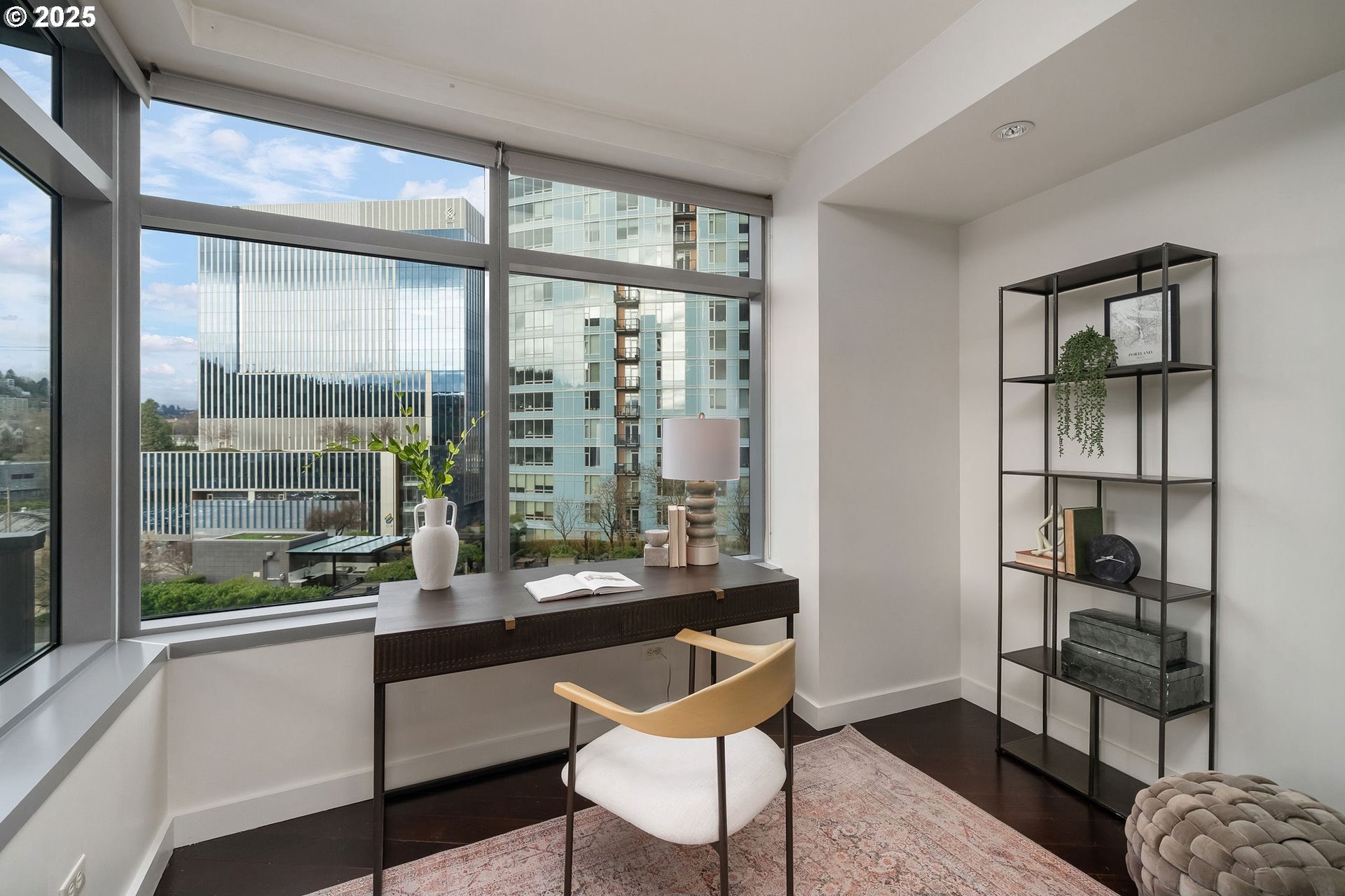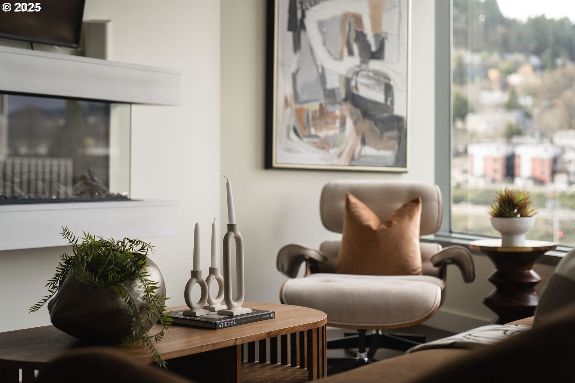 This west-facing residence at the John Ross offers privacy, protected views, and a flexible layout rarely found in the building. Expansive windows allow light year-round, framing an unobstructed hillside outlook with seasonal color, views of the aerial tram, and a glimpse of the river, without neighboring towers looking back in.The living space features a Modern Flames 58" wall-mounted electric fireplace that can be easily removed, offering flexibility for future design preferences. The open plan supports both everyday living and entertaining. A smart home gym setup (Tonal) is available by separate consideration.One of the few units with a divided corner, the office provides a true work-from-home solution or potential second bedroom without compromising the main living area.Additional highlights include tandem parking for two vehicles and one of the largest storage units in the building, well-suited for bikes, outdoor gear, or passive rental income.Enjoy walkable access to the Portland Opera House, OMSI, and Zidell Yards for concerts and events. The streetcar is steps away, with easy connections to downtown, the Springwater Corridor Trail, and miles of waterfront paths. Weekly farmers markets, movies in the park, and seasonal community events round out the South Waterfront lifestyle.
